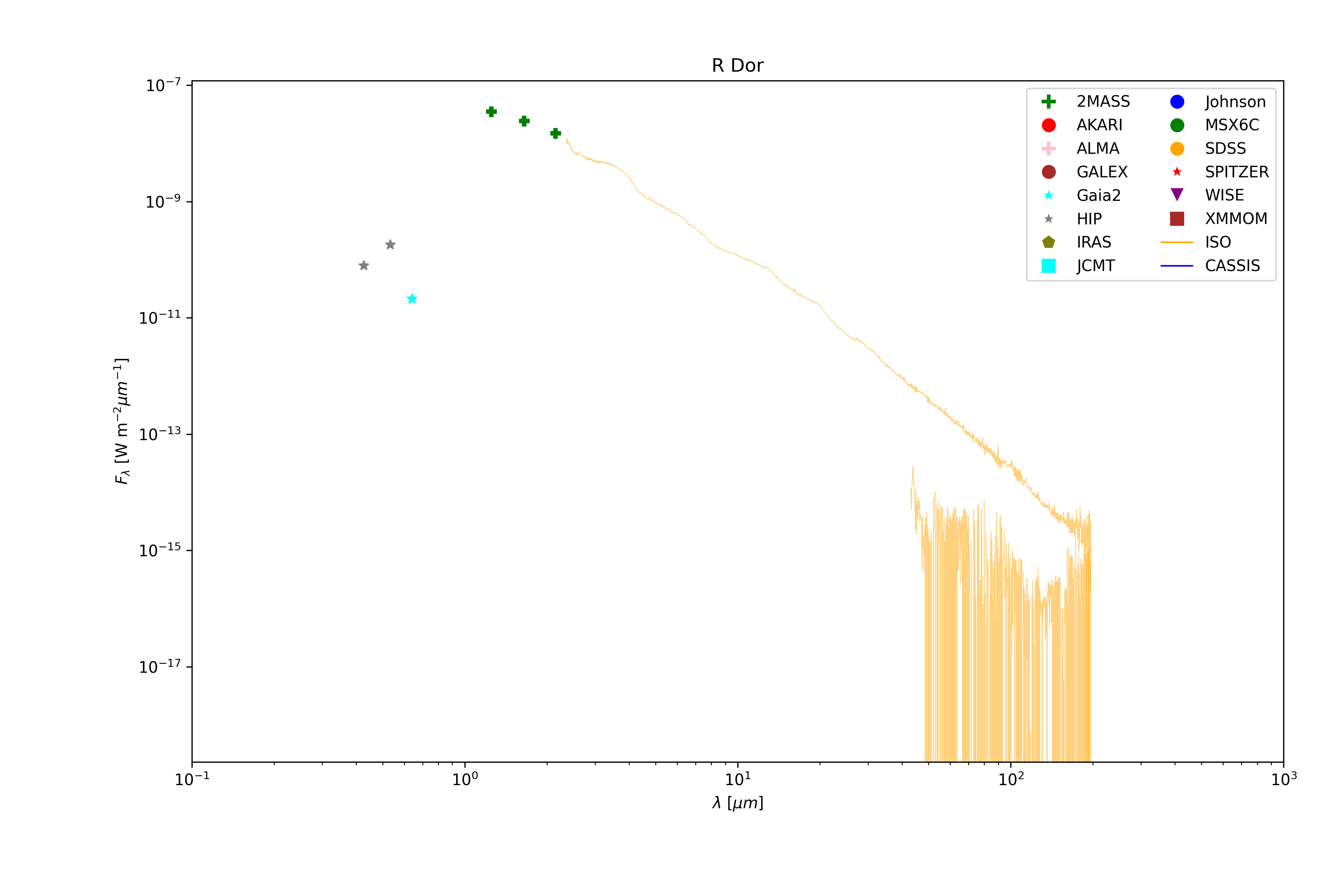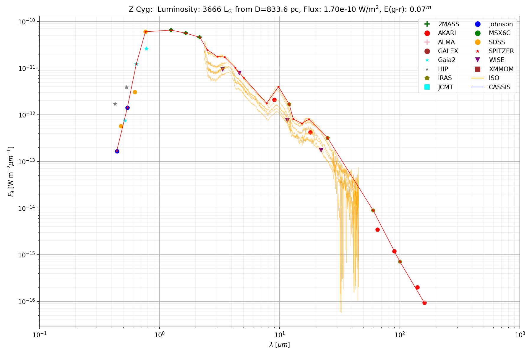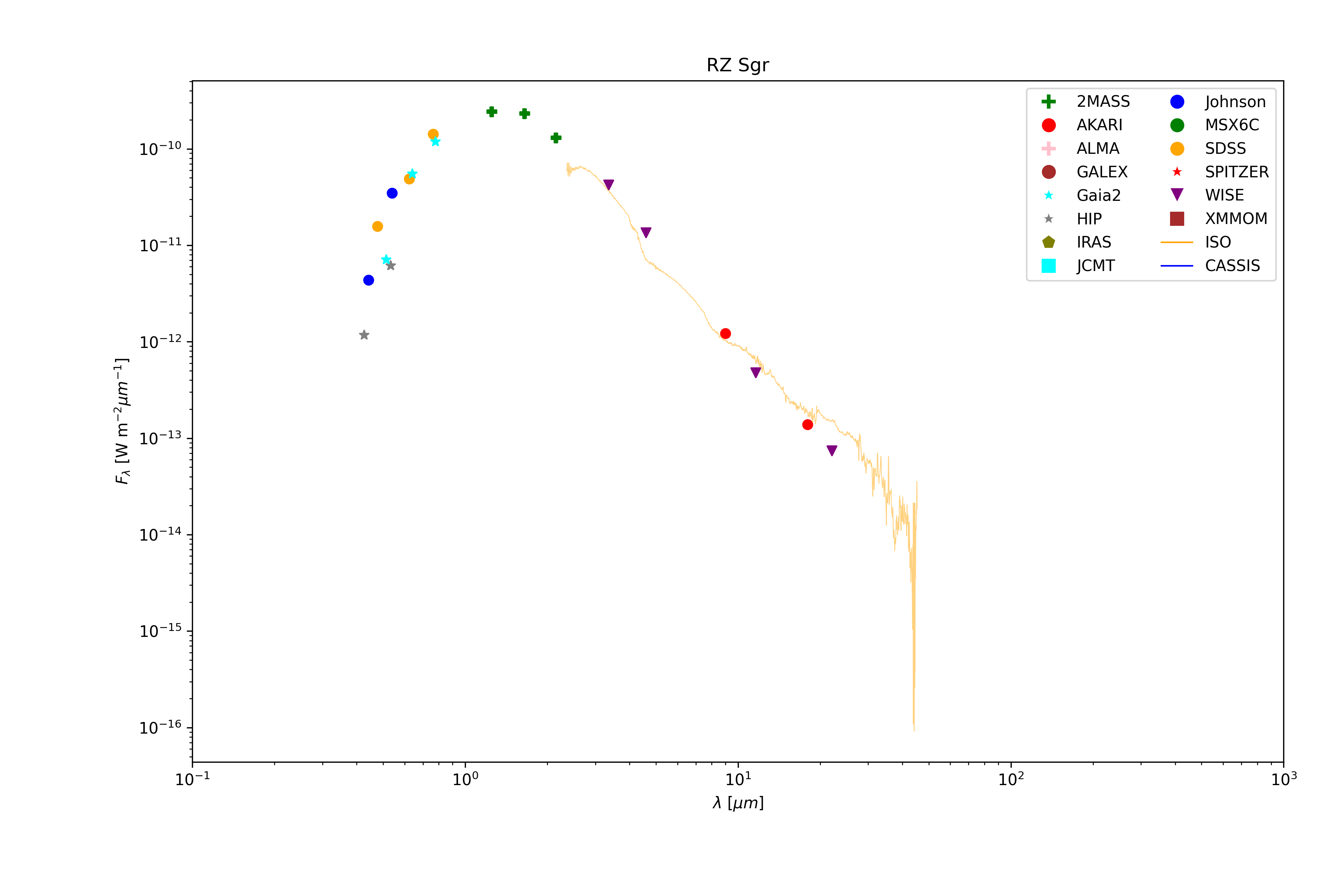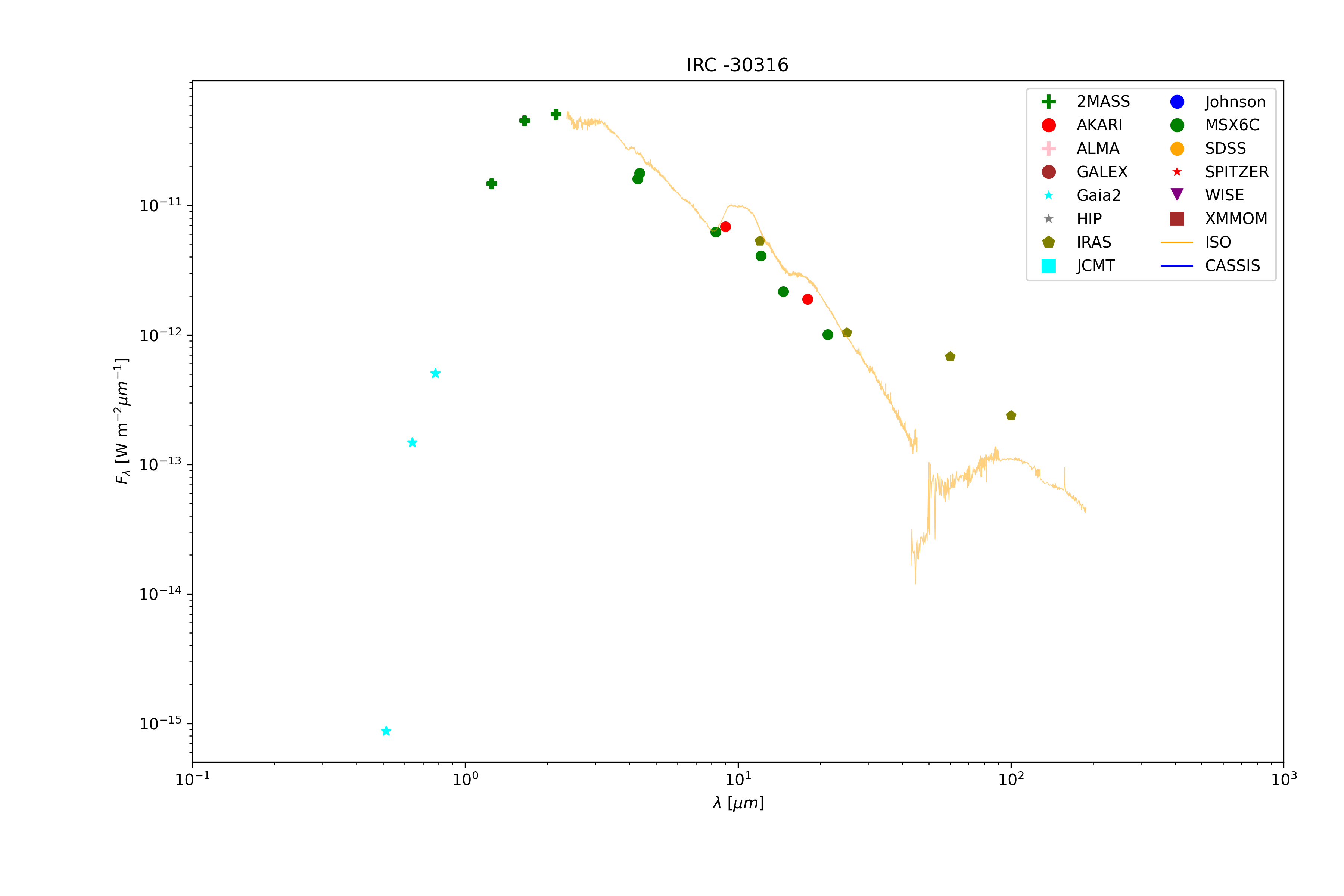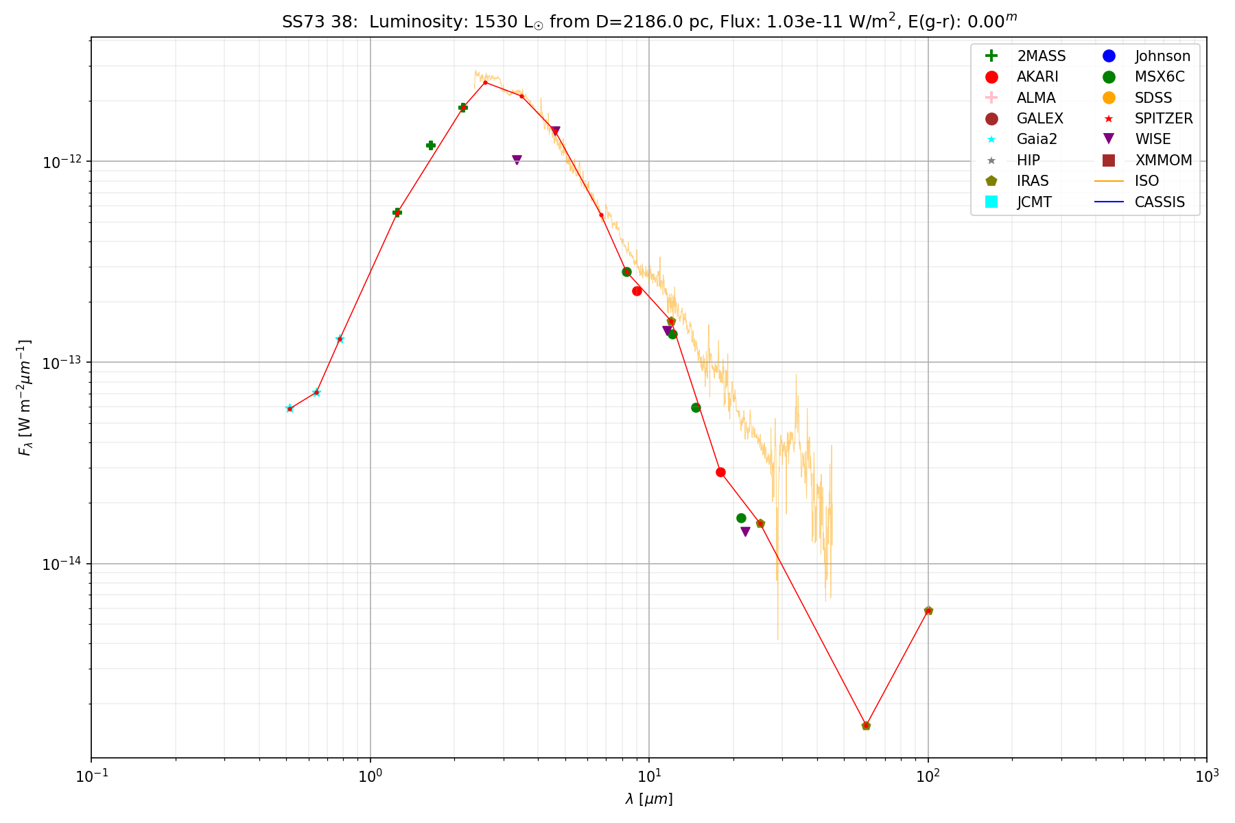 So, for each object, a file with our collected photometry, a file with the SED (corrected and uncorrected for interstellar absorption), a JSON containing all defined and collected data, and an archive with all ISO and Spitzer data and spectra (if available) are available.