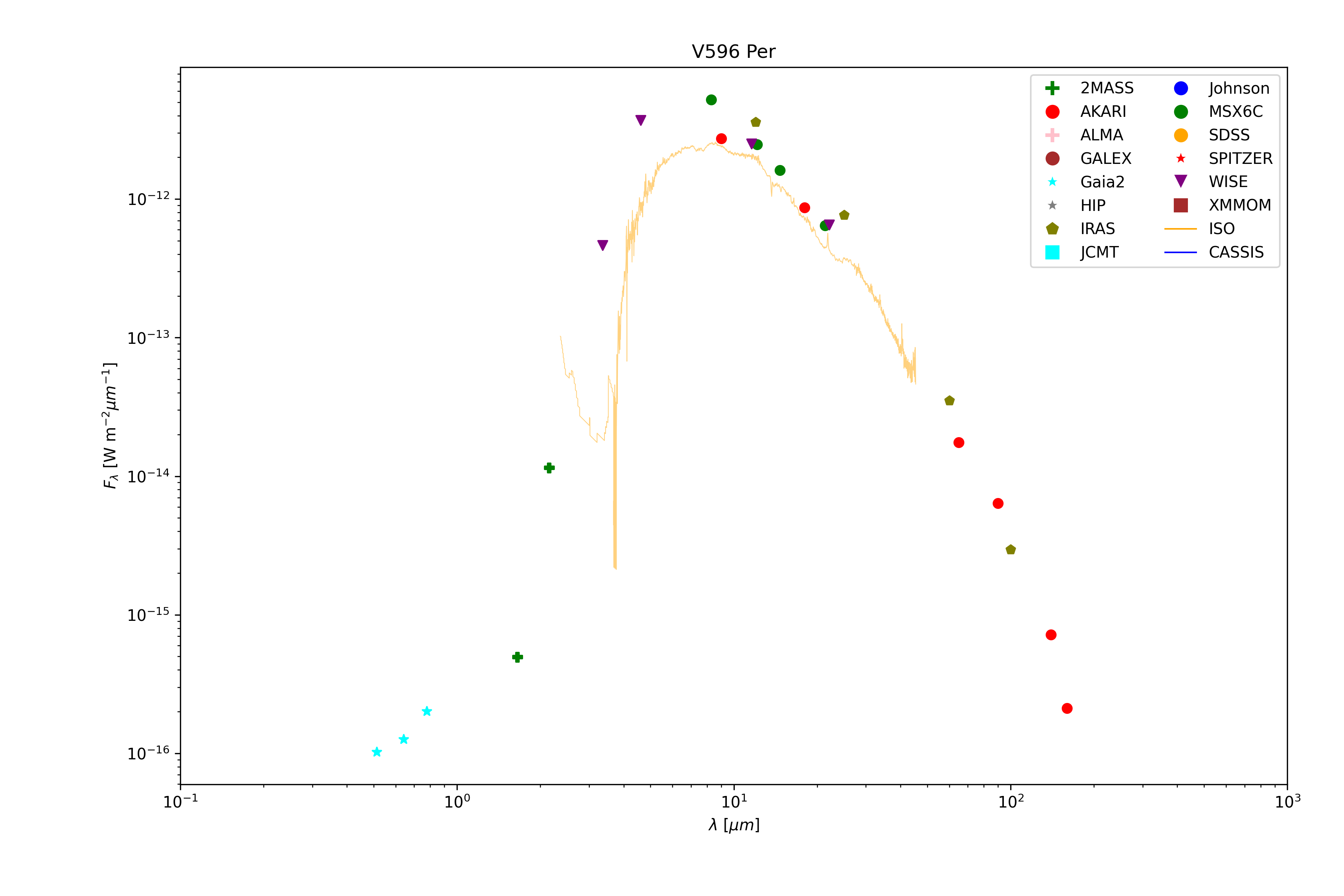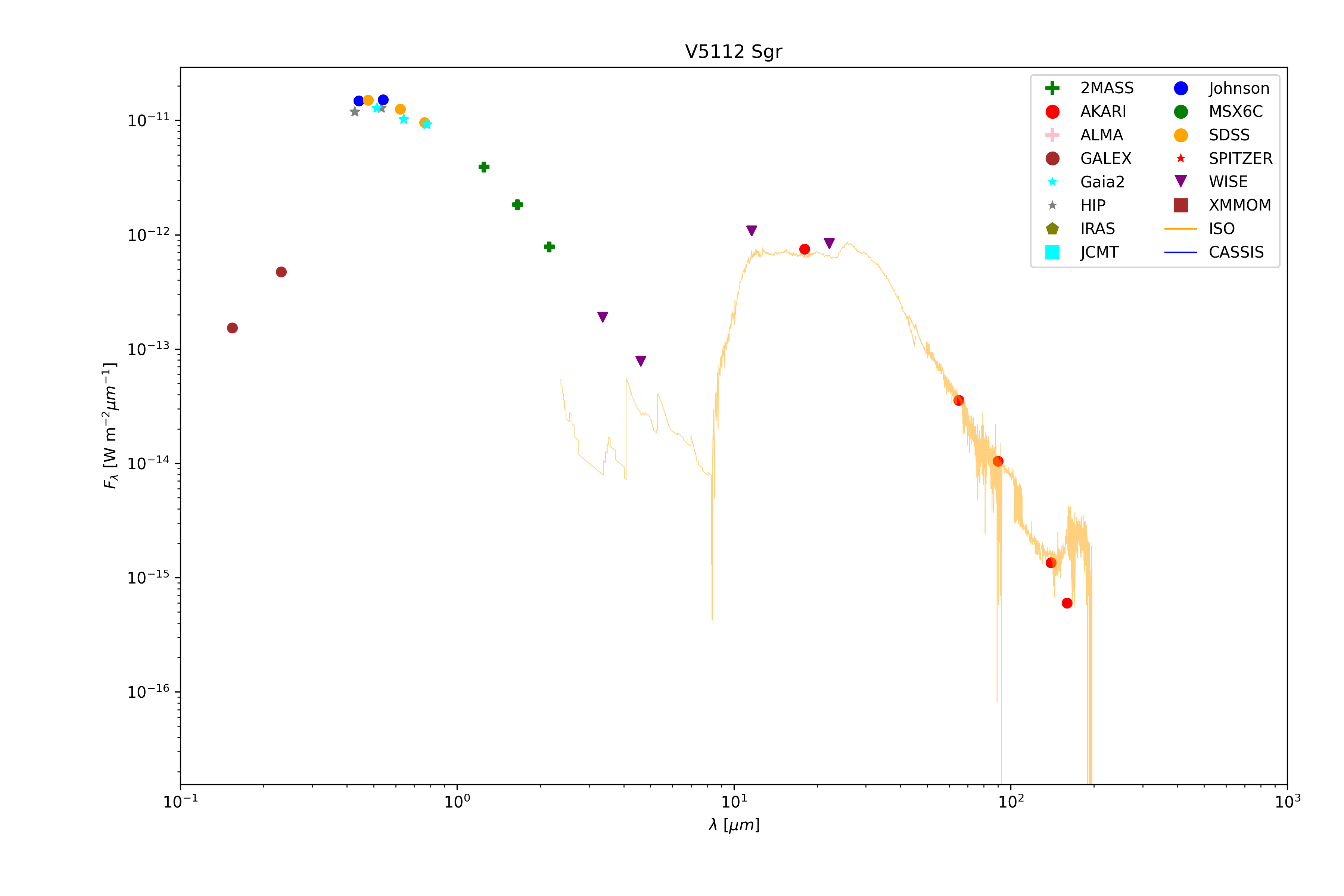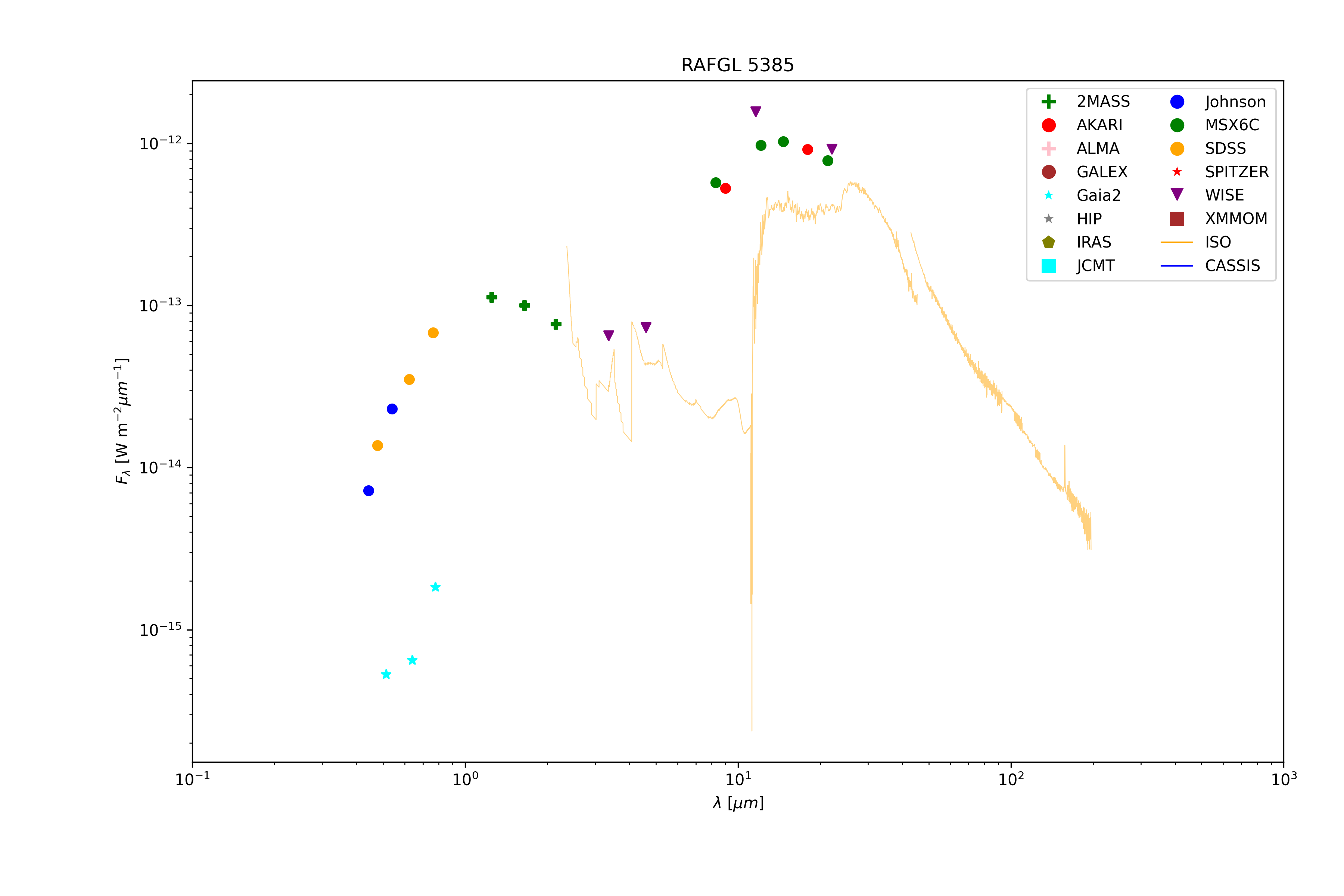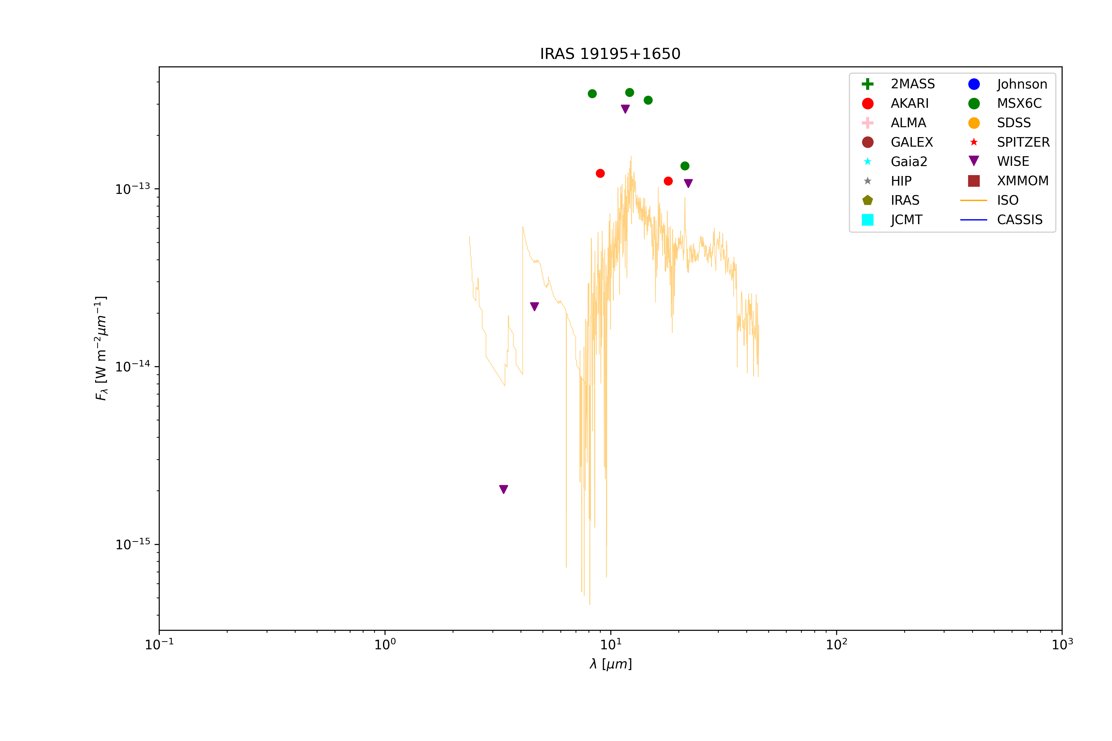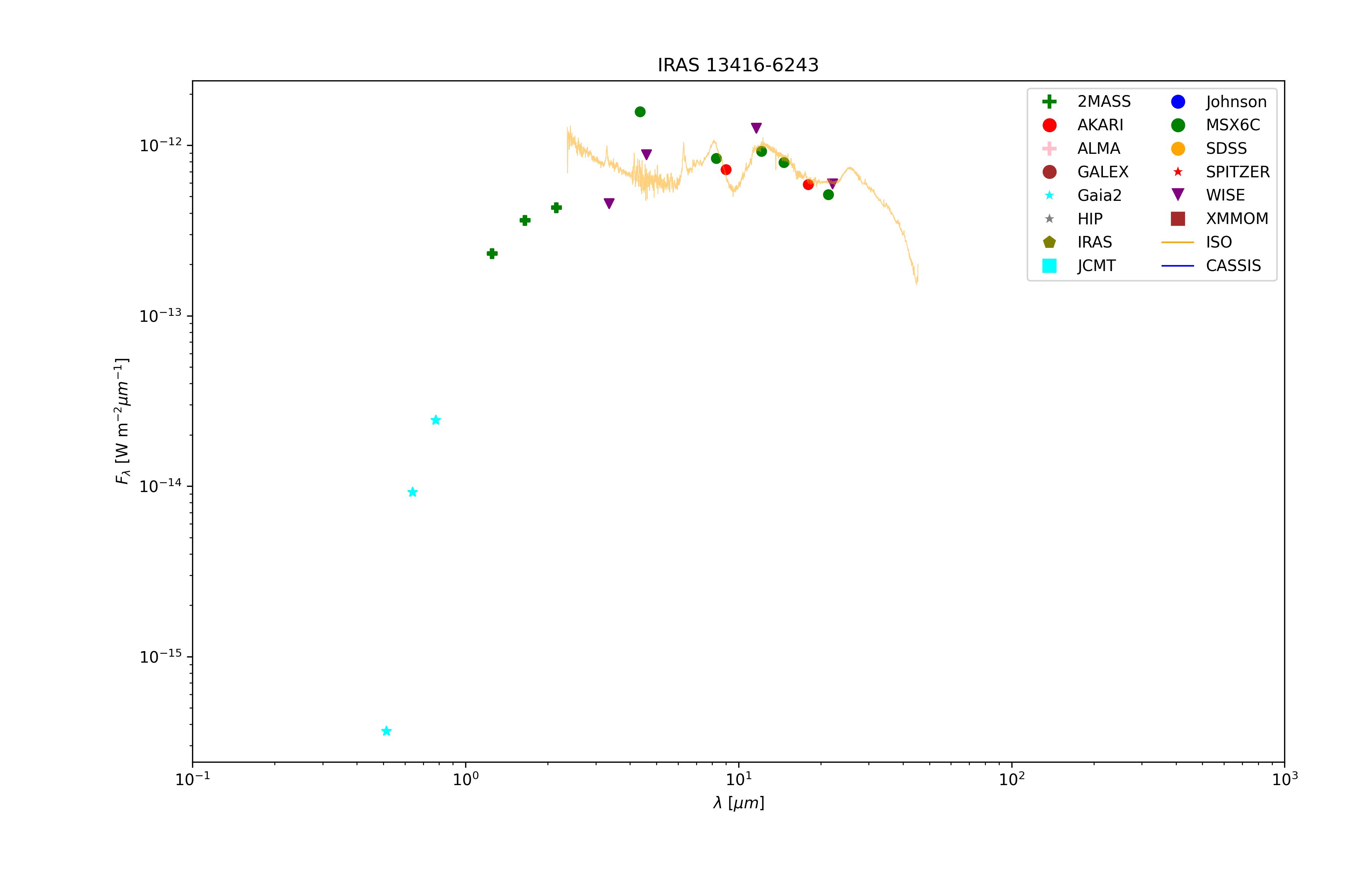 So, for each object, a file with our collected photometry, a file with the SED (corrected and uncorrected for interstellar absorption), a JSON containing all defined and collected data, and an archive with all ISO and Spitzer data and spectra (if available) are available.