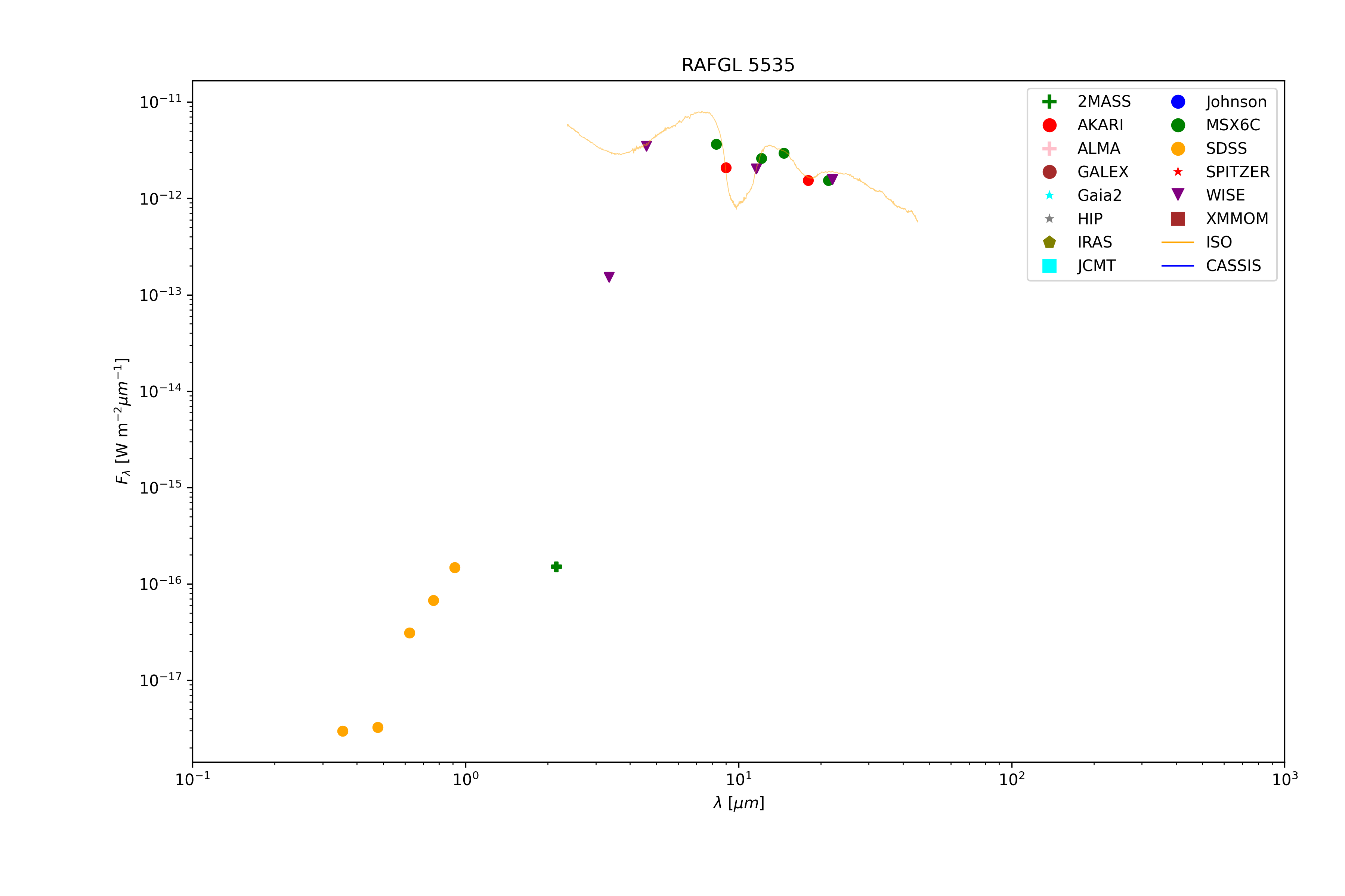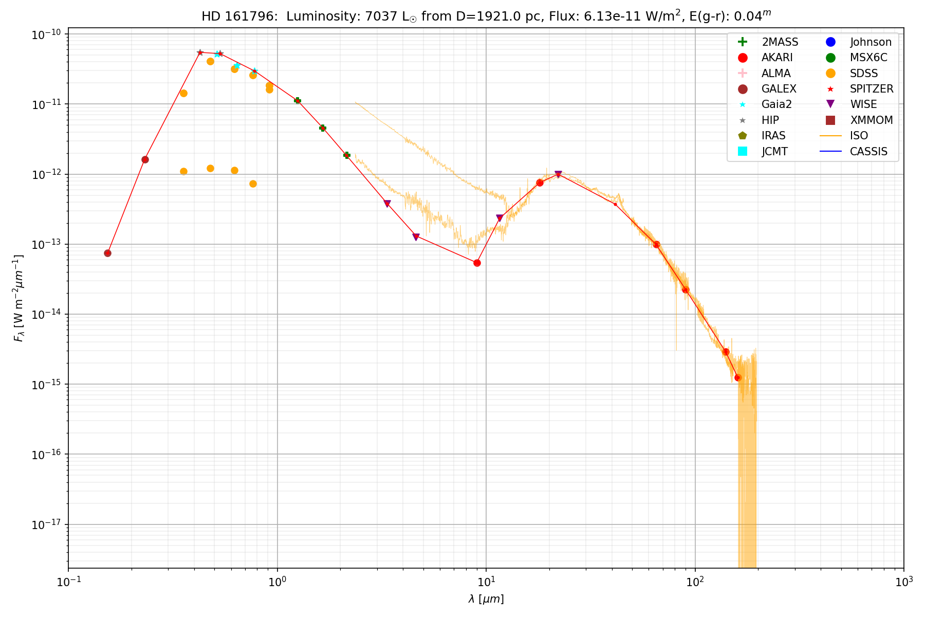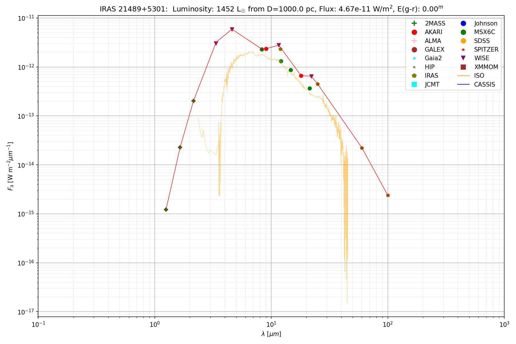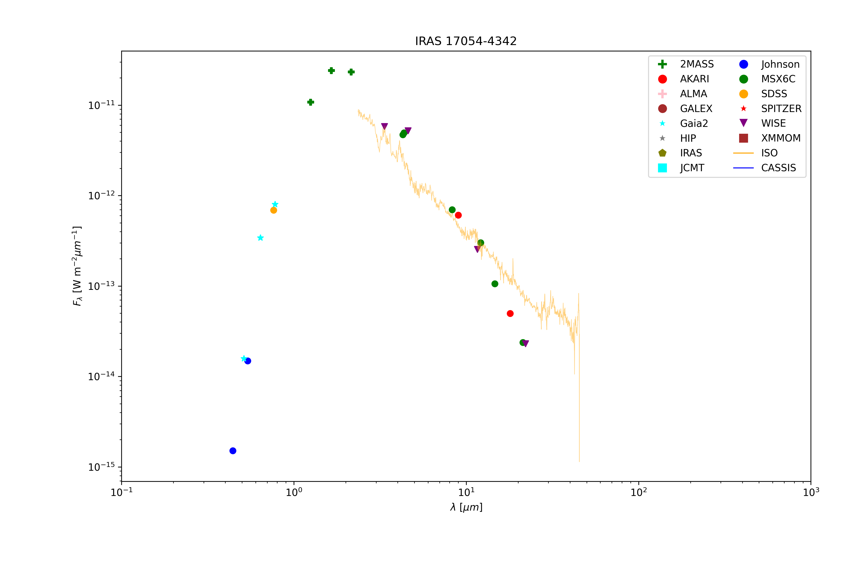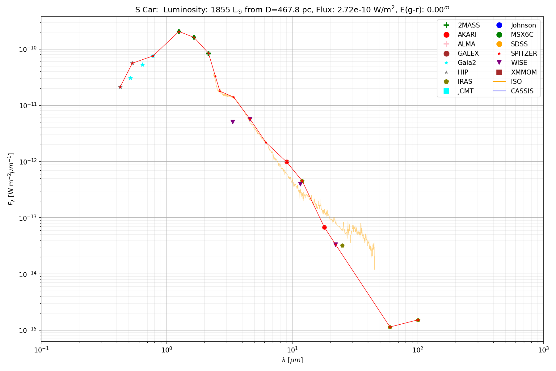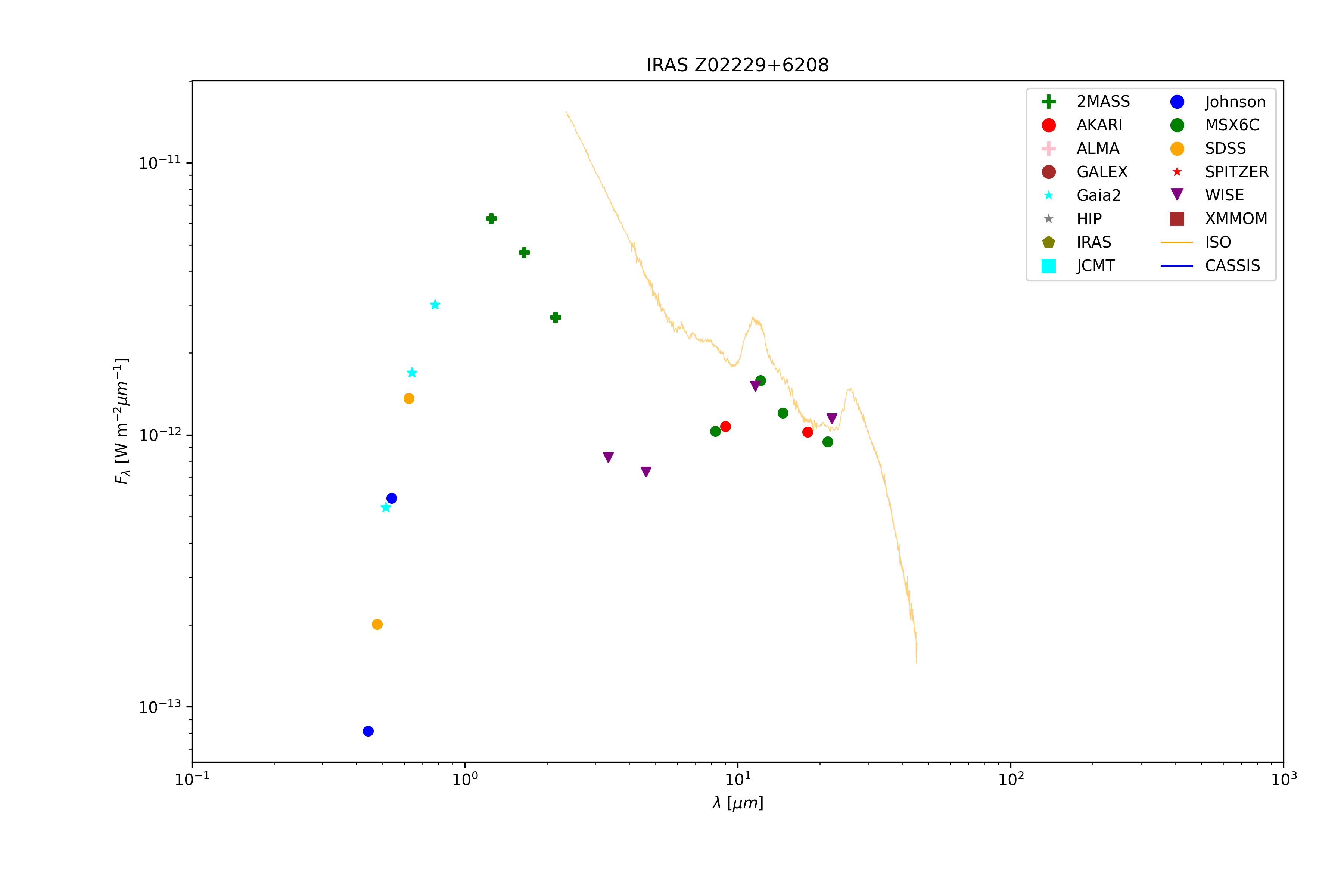 So, for each object, a file with our collected photometry, a file with the SED (corrected and uncorrected for interstellar absorption), a JSON containing all defined and collected data, and an archive with all ISO and Spitzer data and spectra (if available) are available.