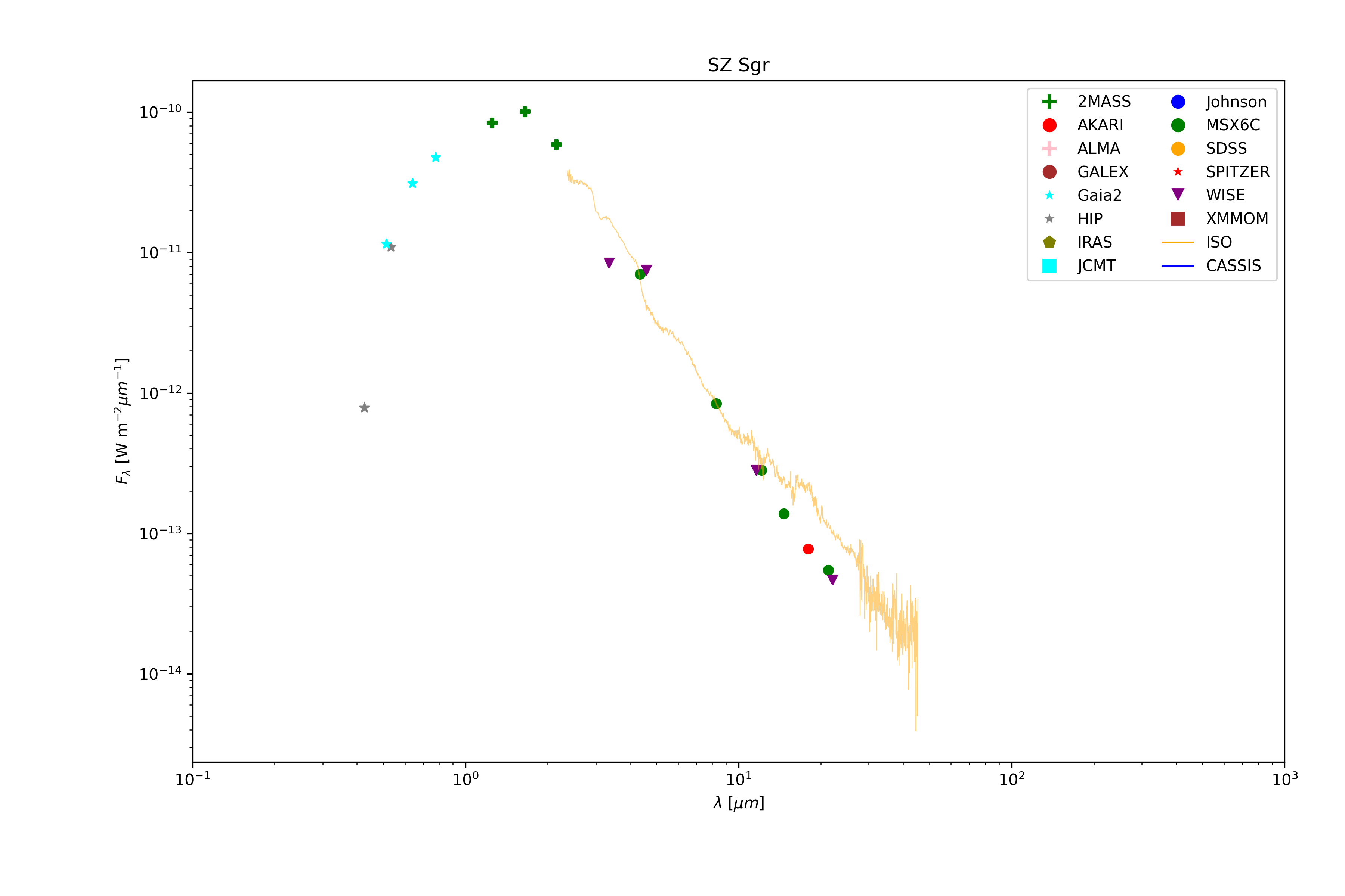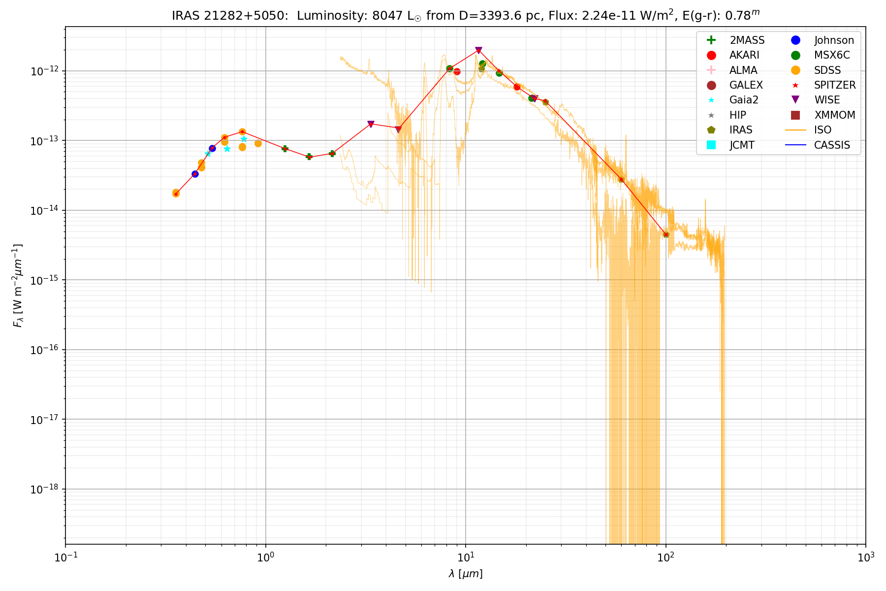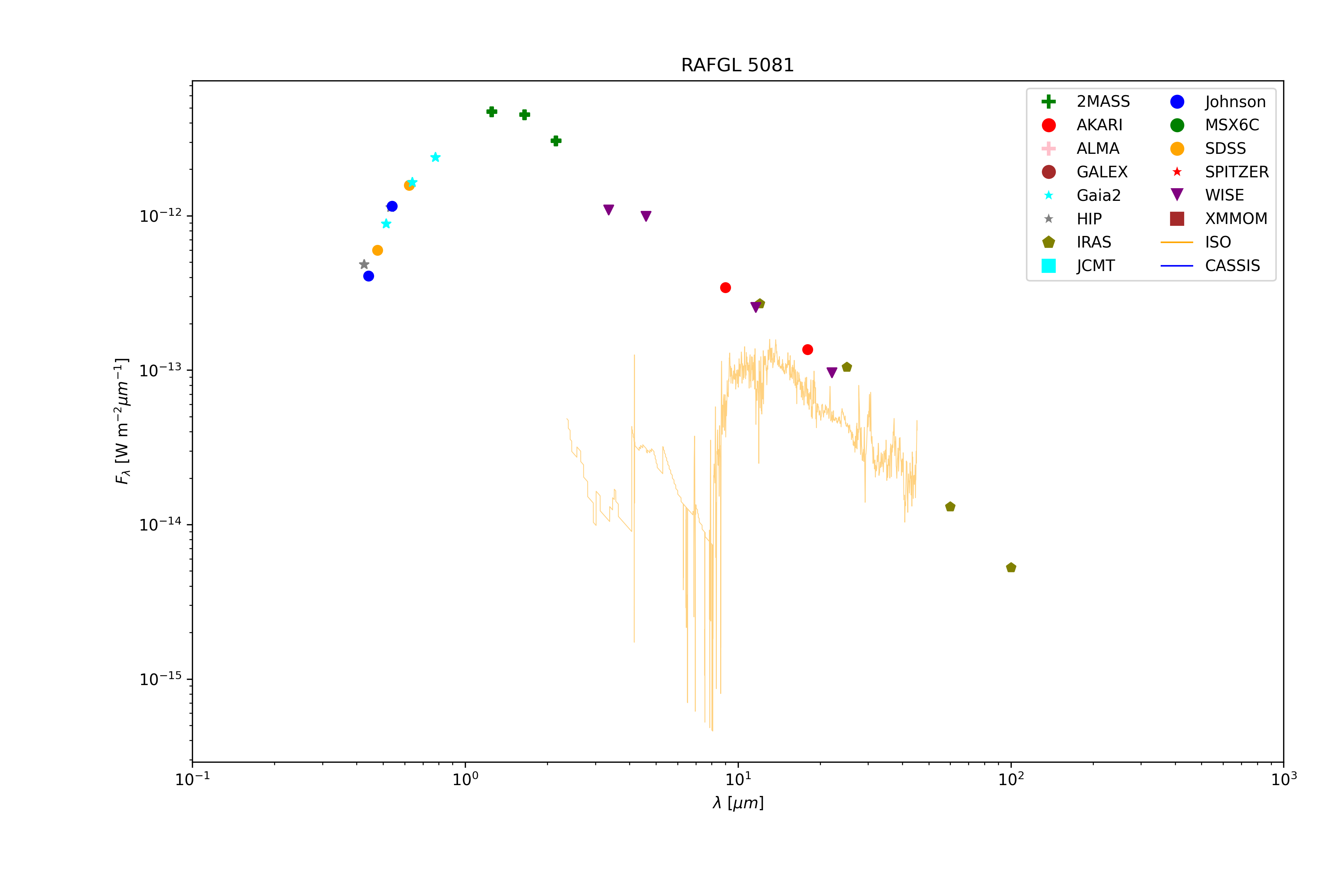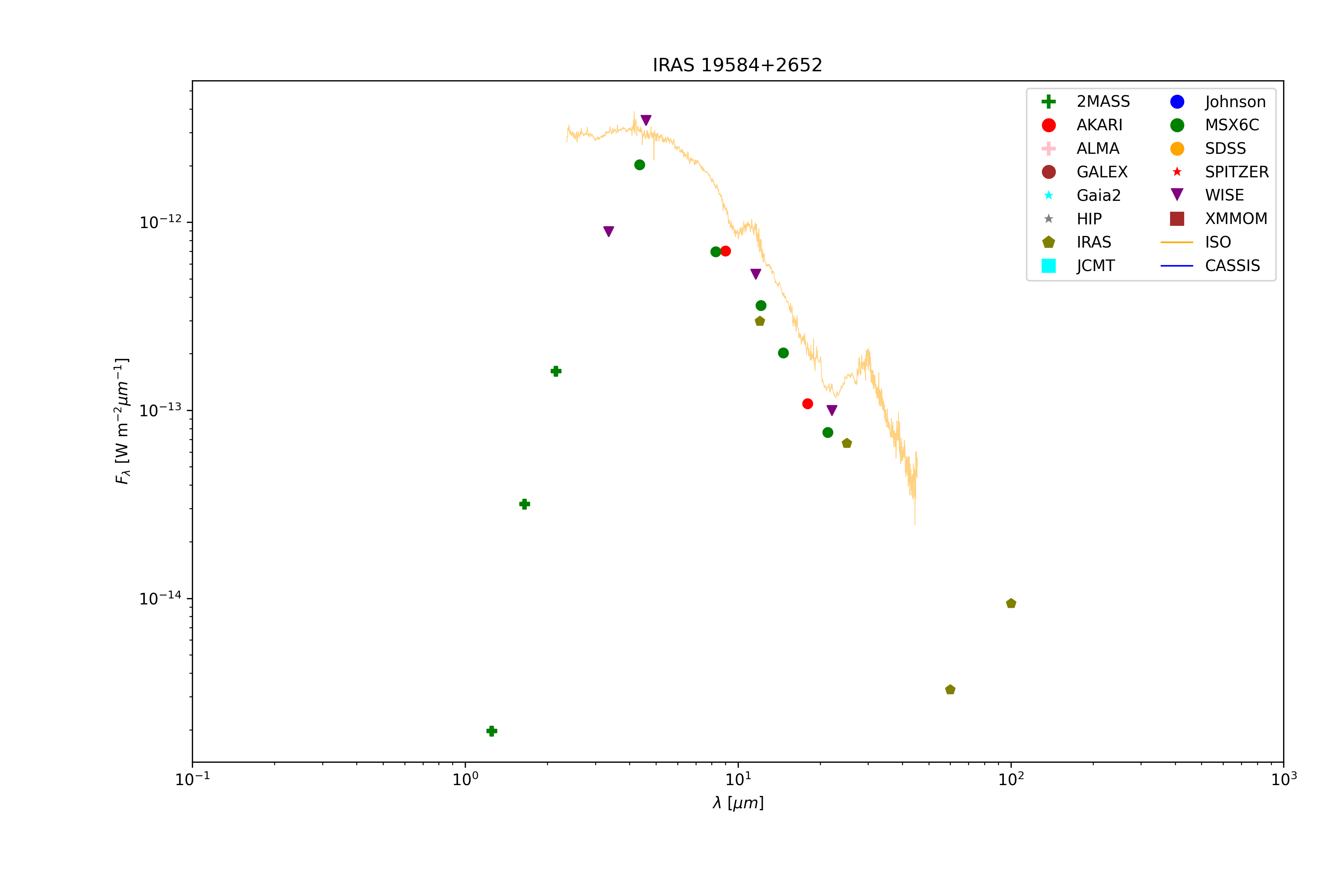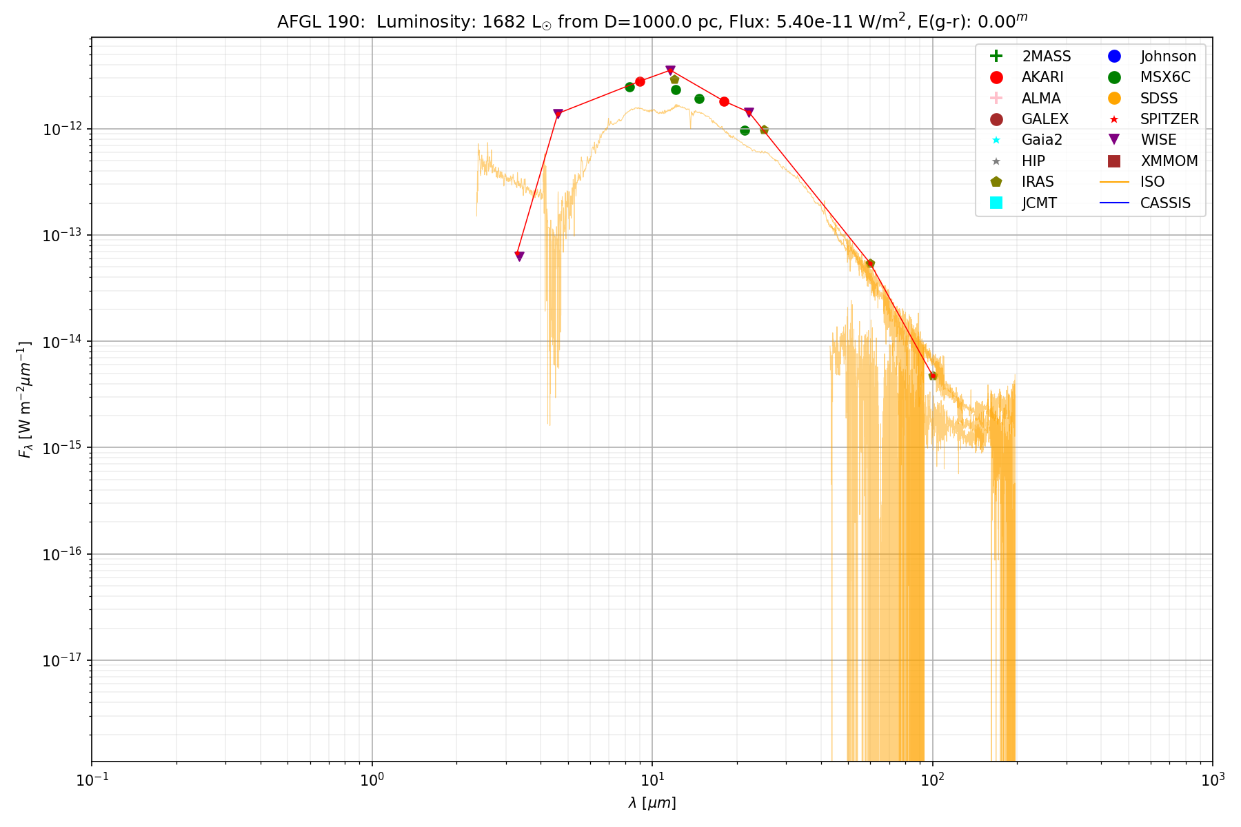 So, for each object, a file with our collected photometry, a file with the SED (corrected and uncorrected for interstellar absorption), a JSON containing all defined and collected data, and an archive with all ISO and Spitzer data and spectra (if available) are available.