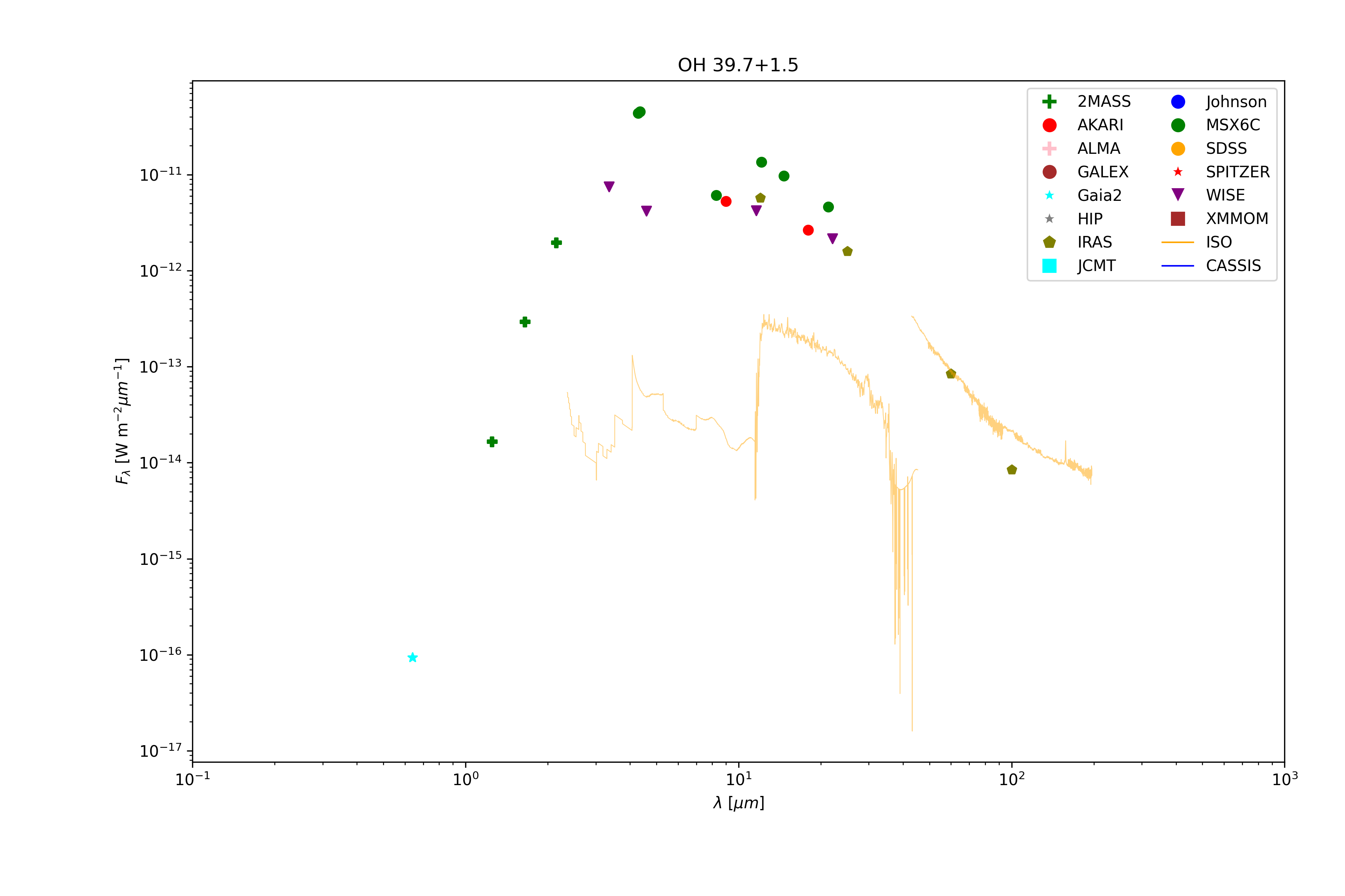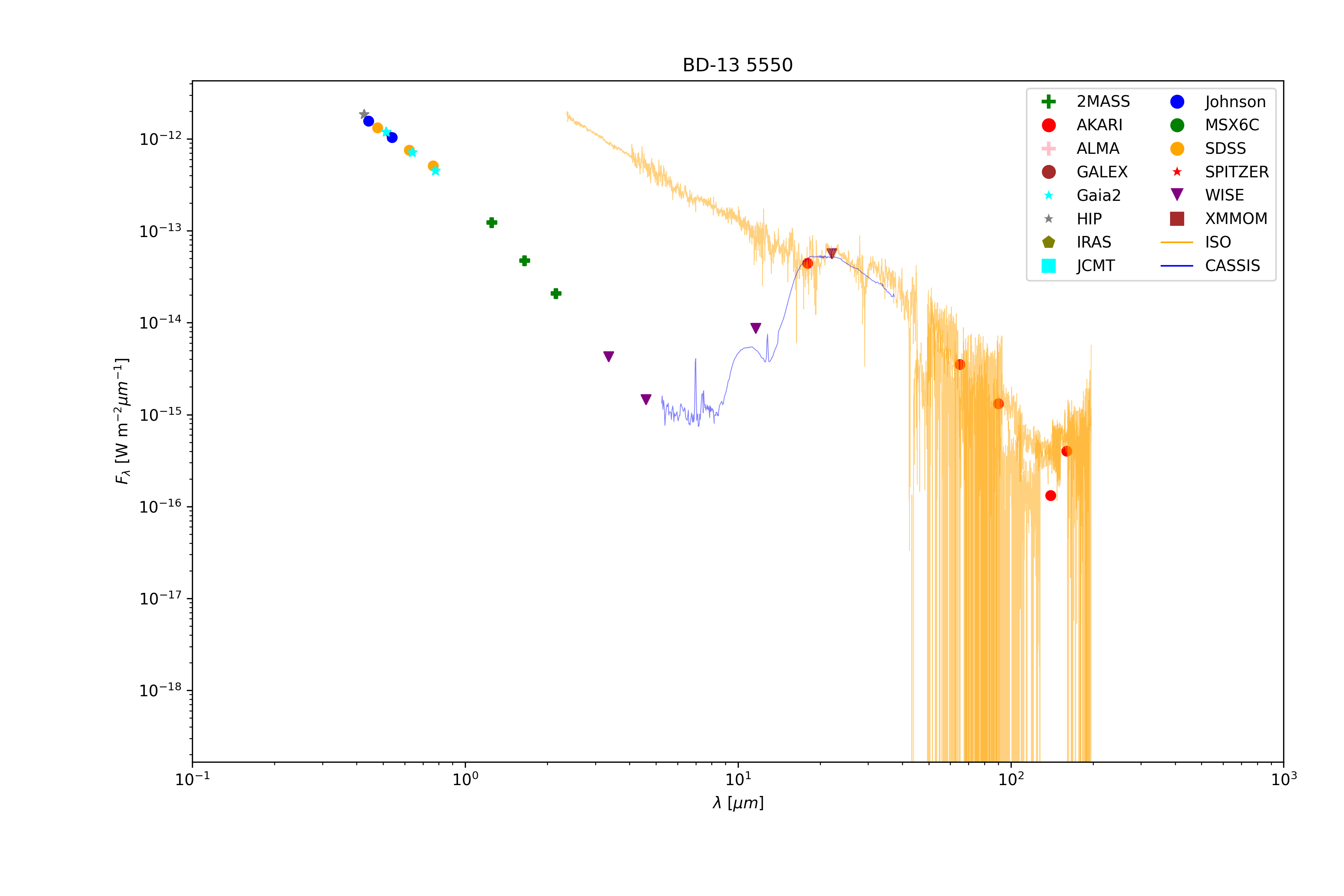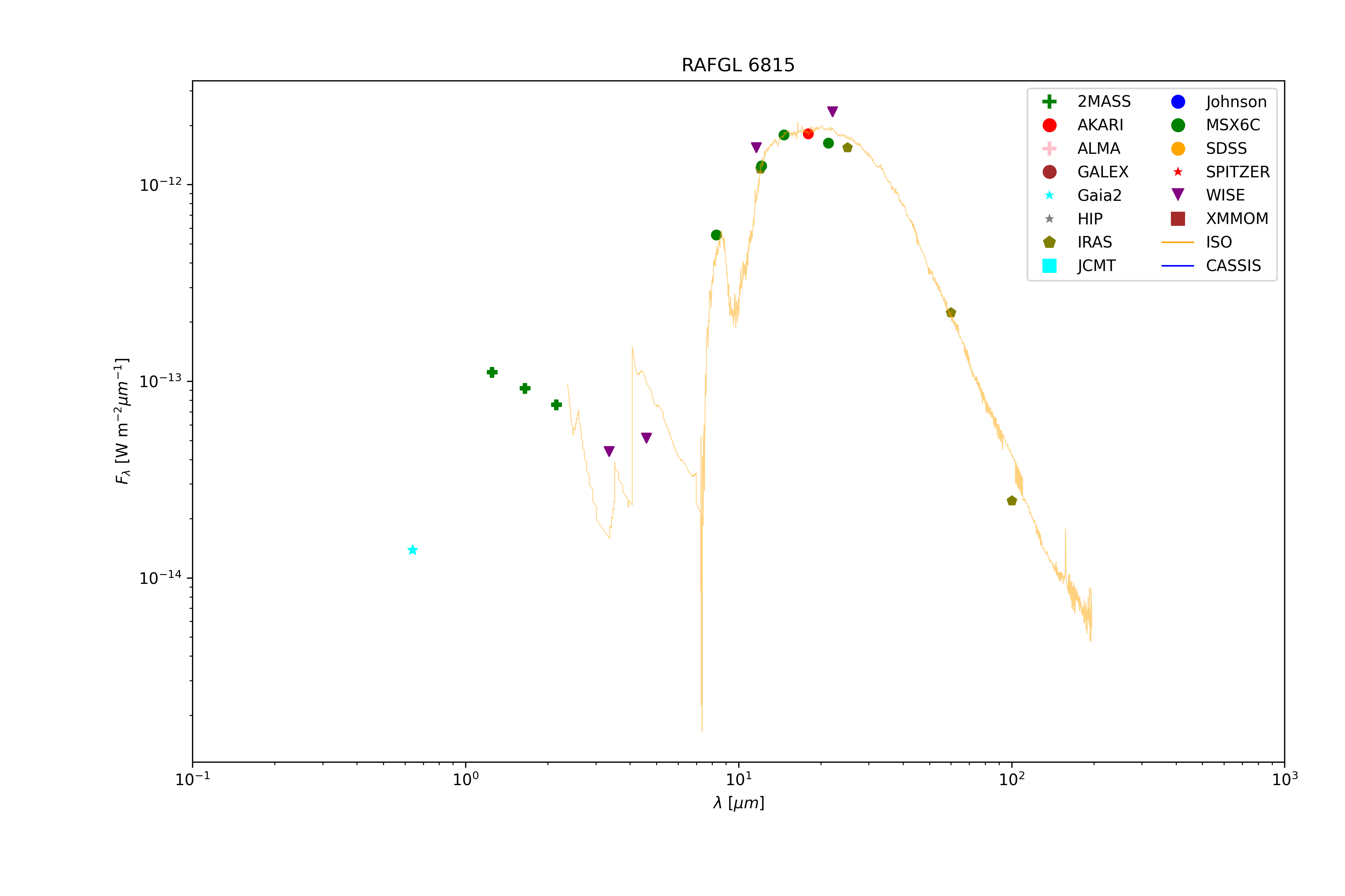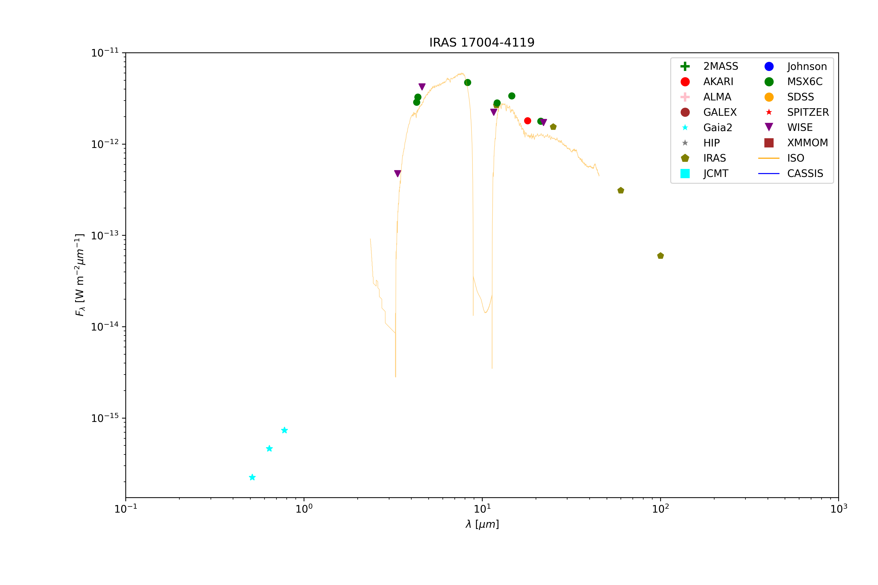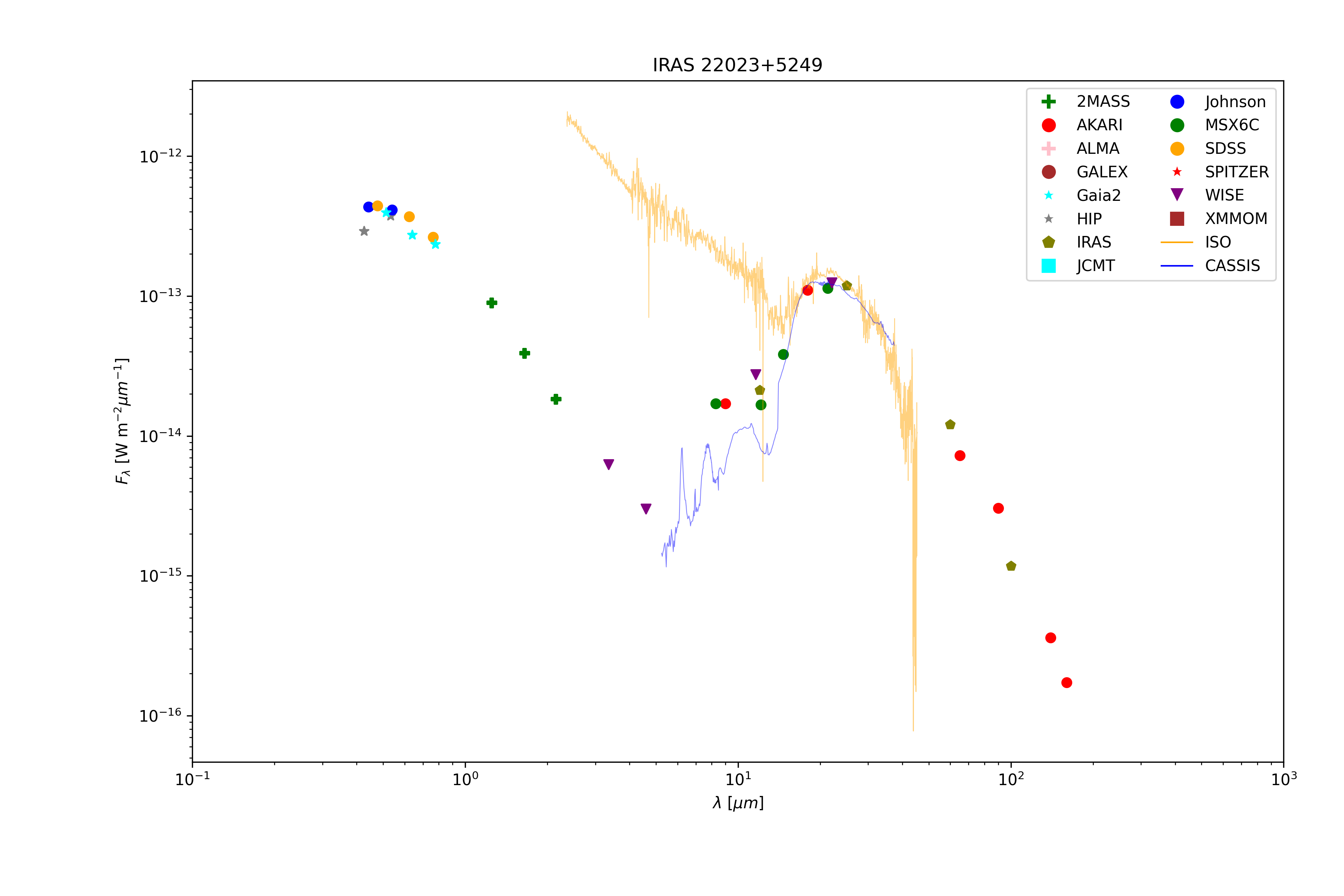 So, for each object, a file with our collected photometry, a file with the SED (corrected and uncorrected for interstellar absorption), a JSON containing all defined and collected data, and an archive with all ISO and Spitzer data and spectra (if available) are available.