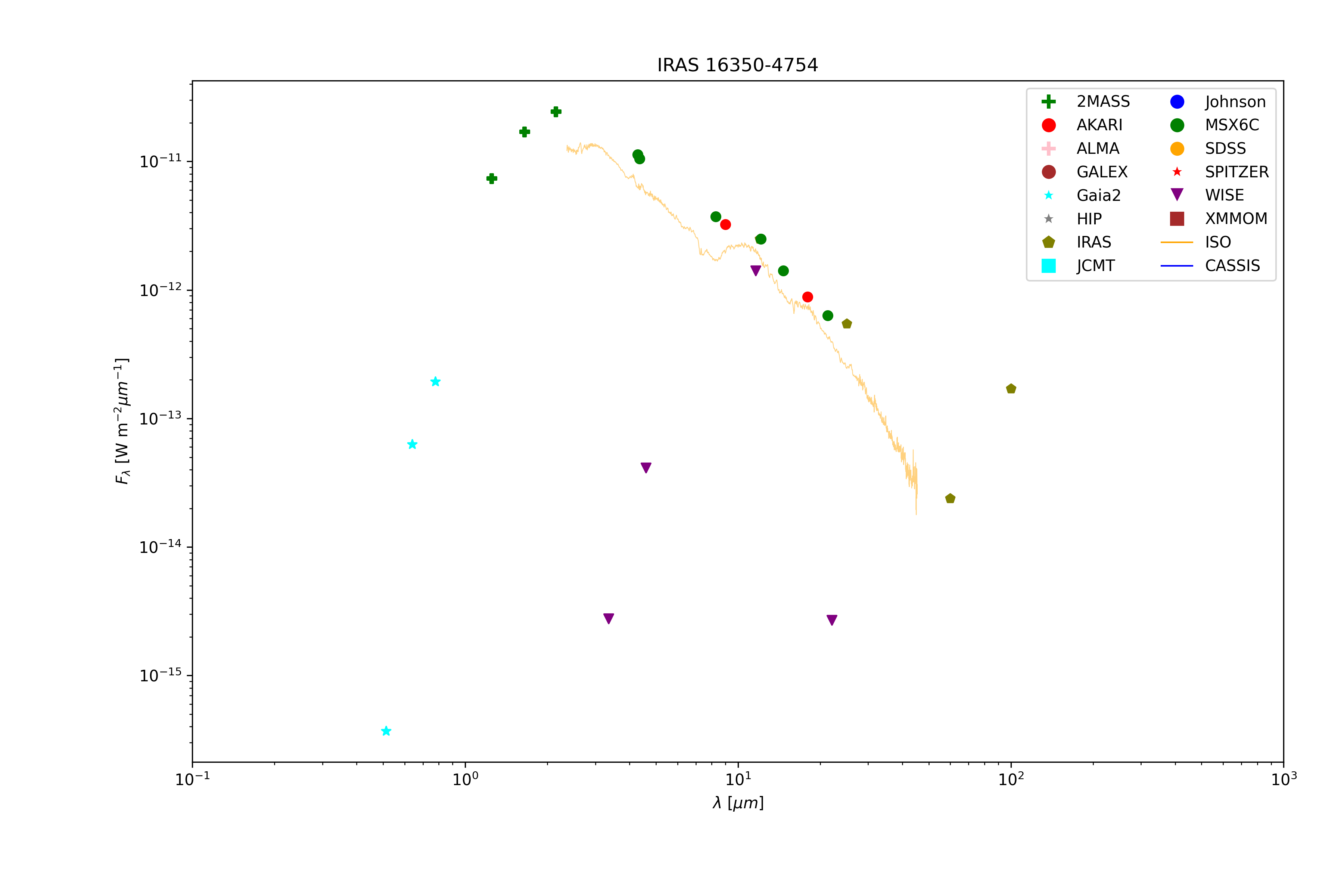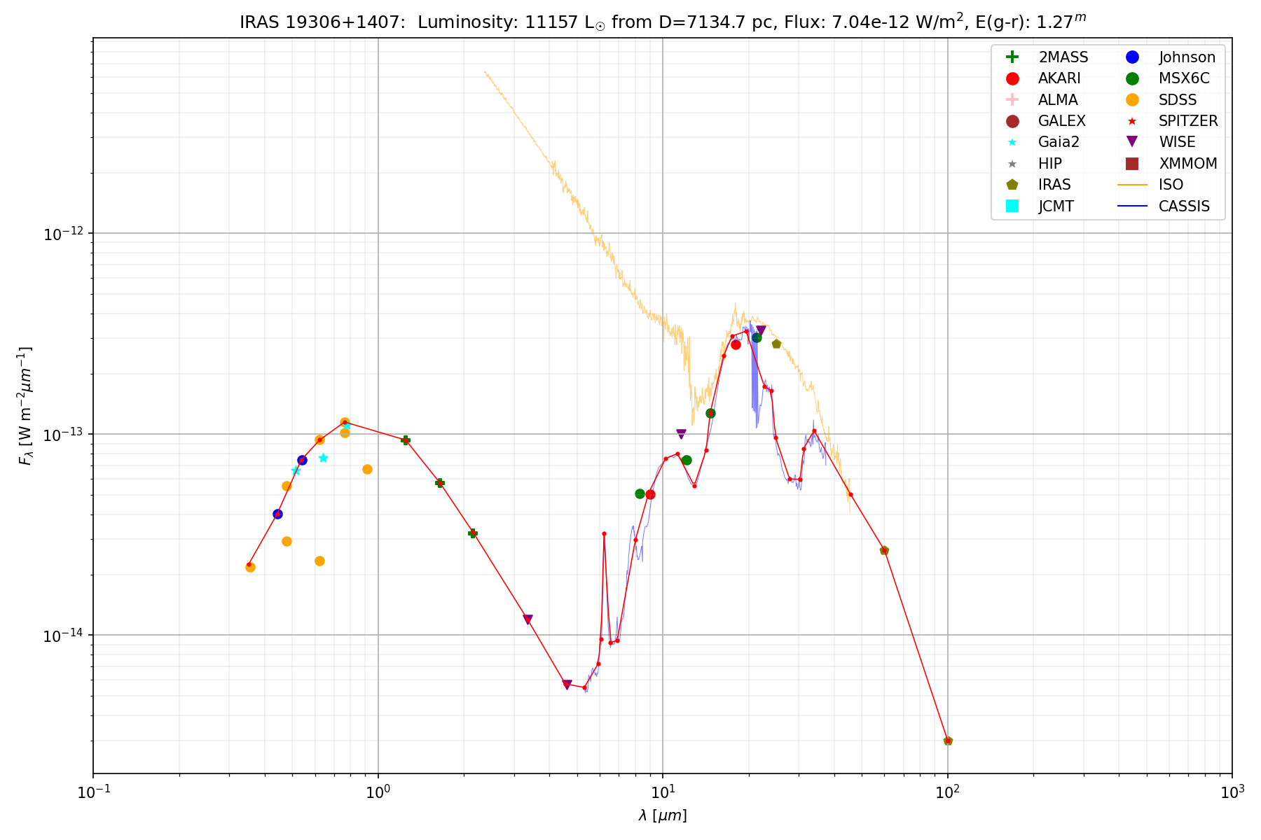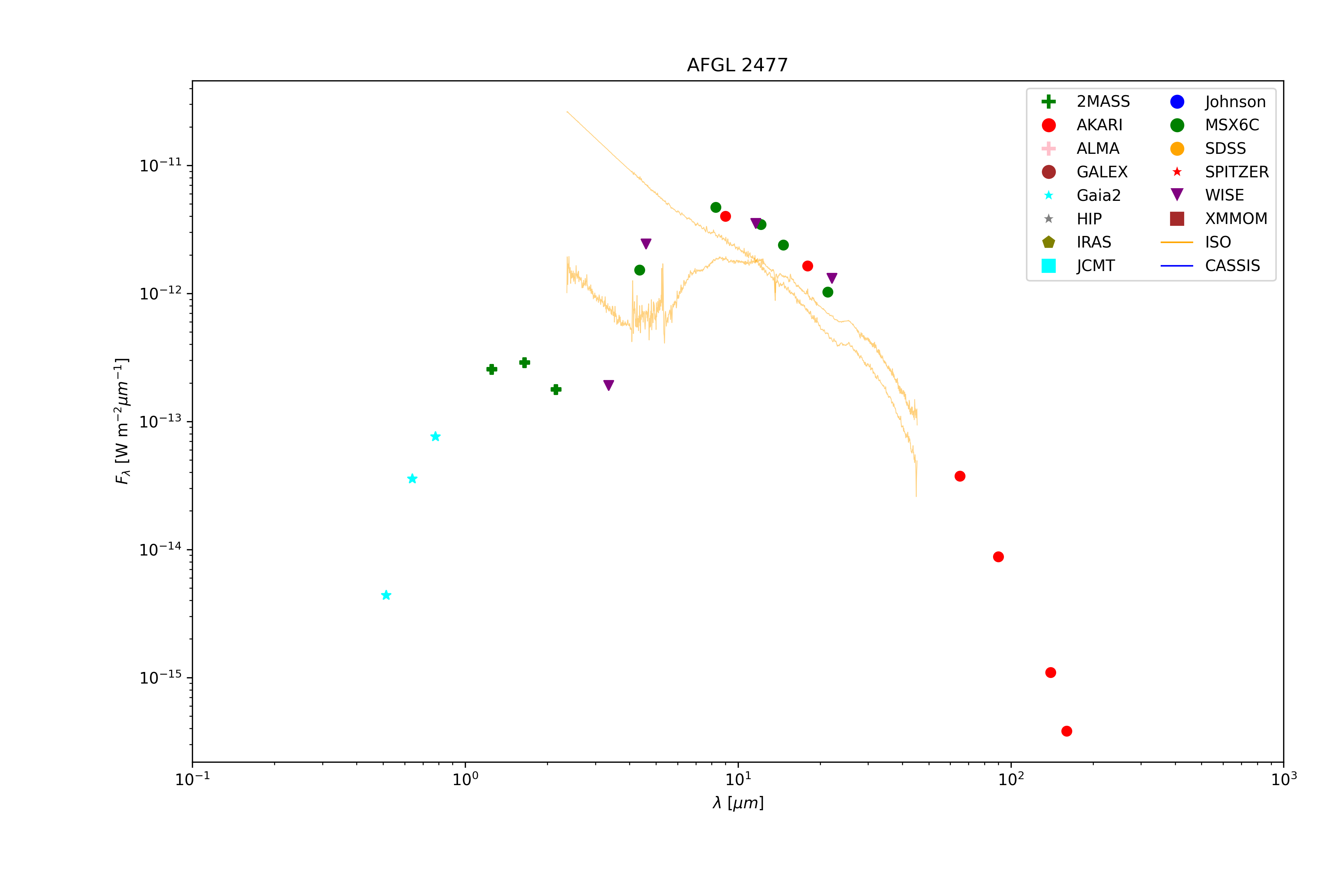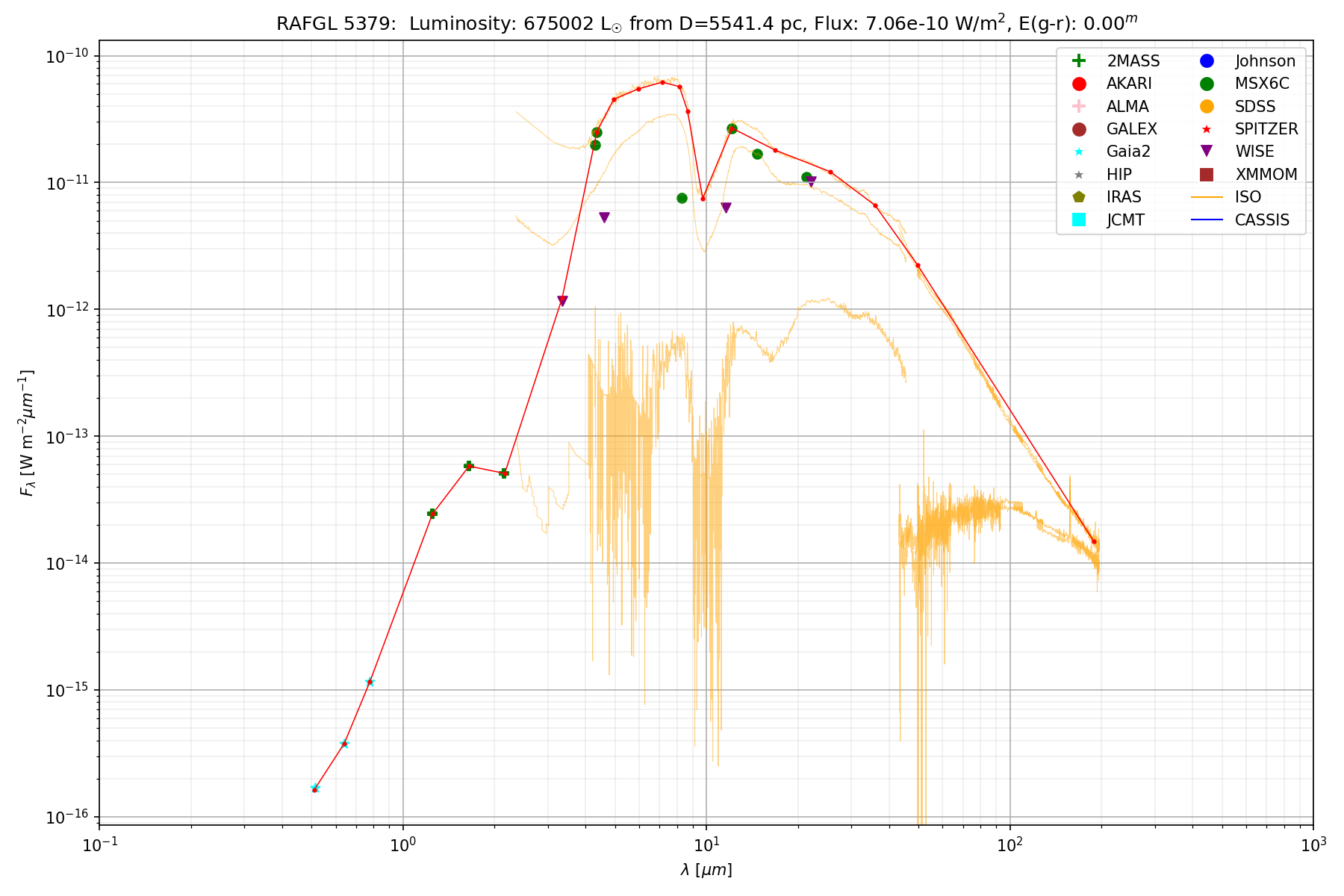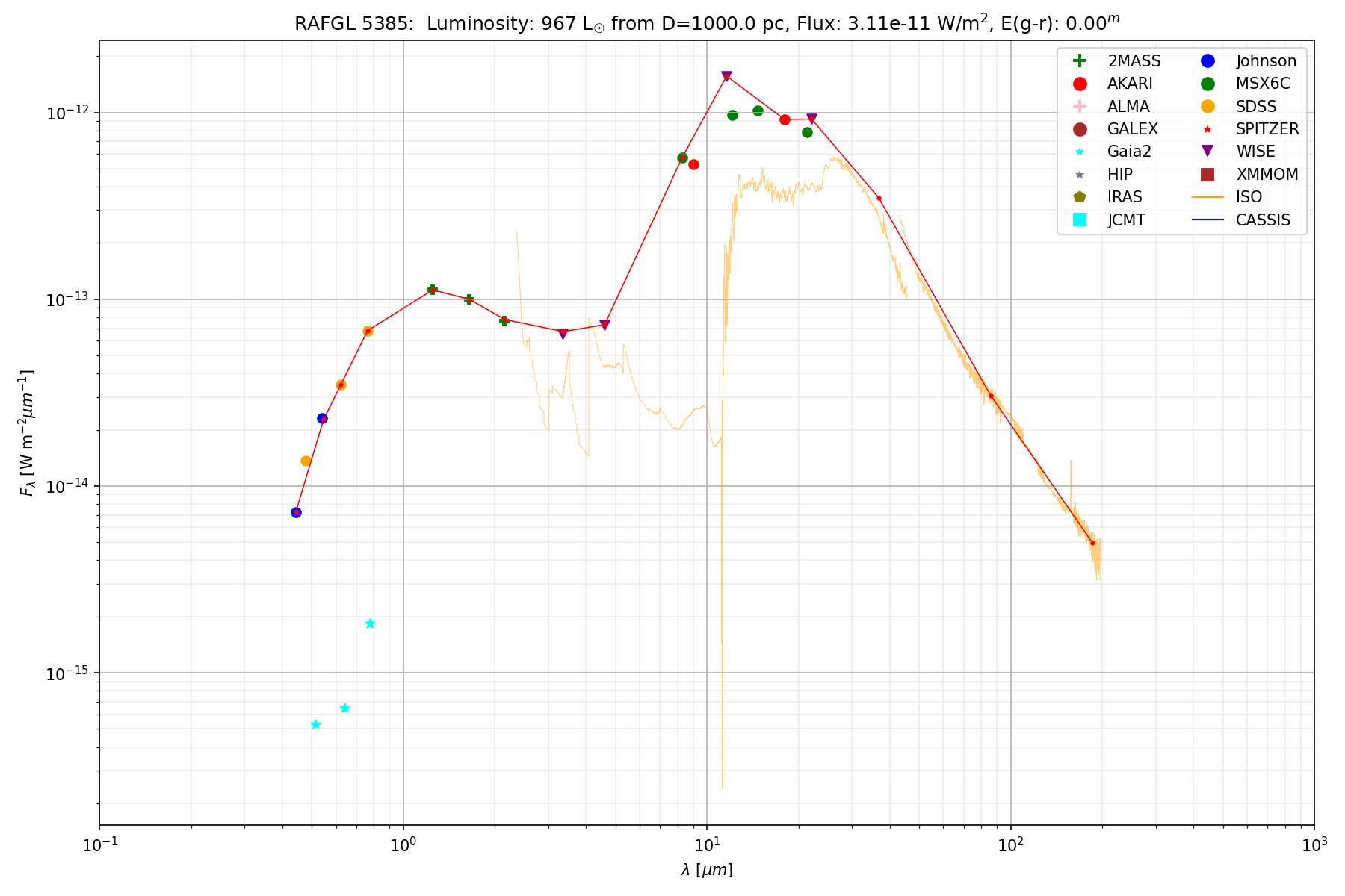 So, for each object, a file with our collected photometry, a file with the SED (corrected and uncorrected for interstellar absorption), a JSON containing all defined and collected data, and an archive with all ISO and Spitzer data and spectra (if available) are available.