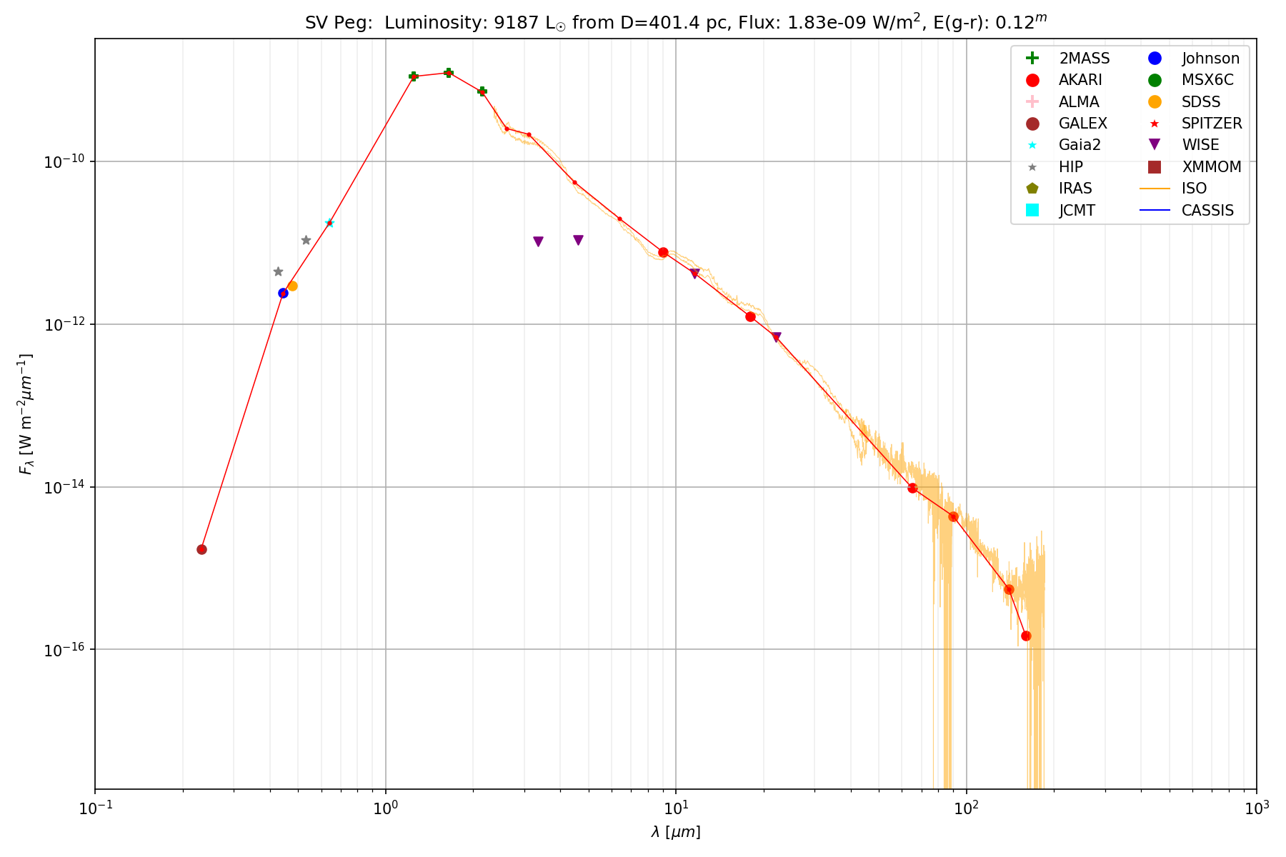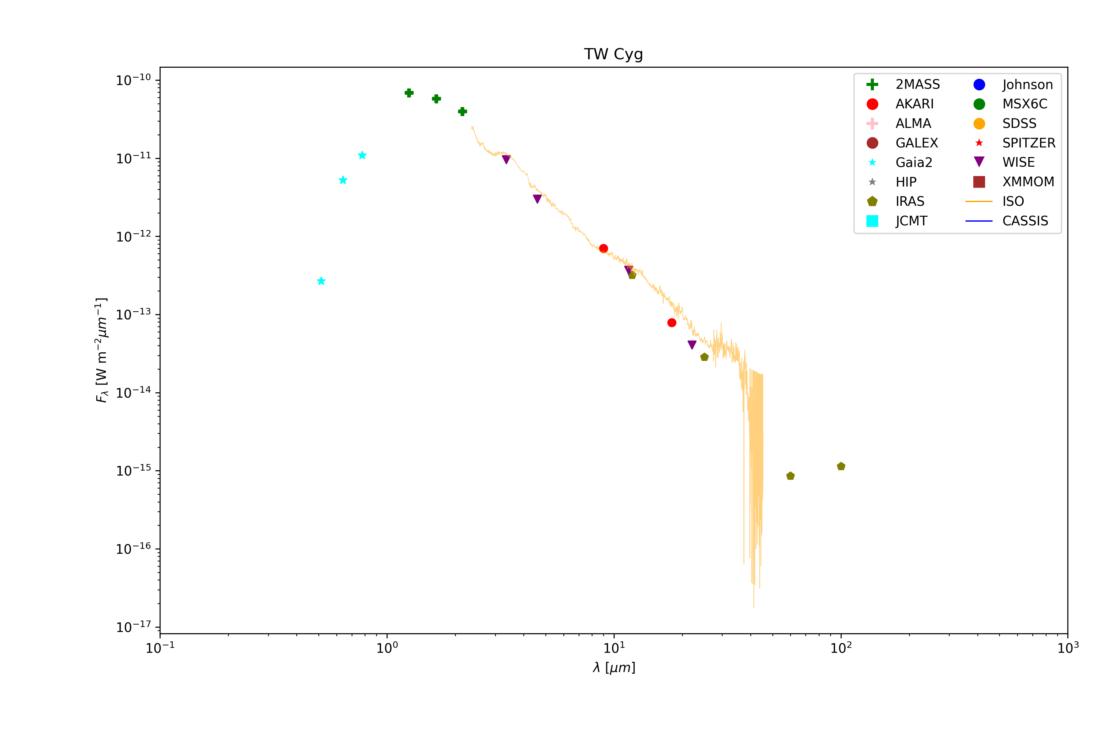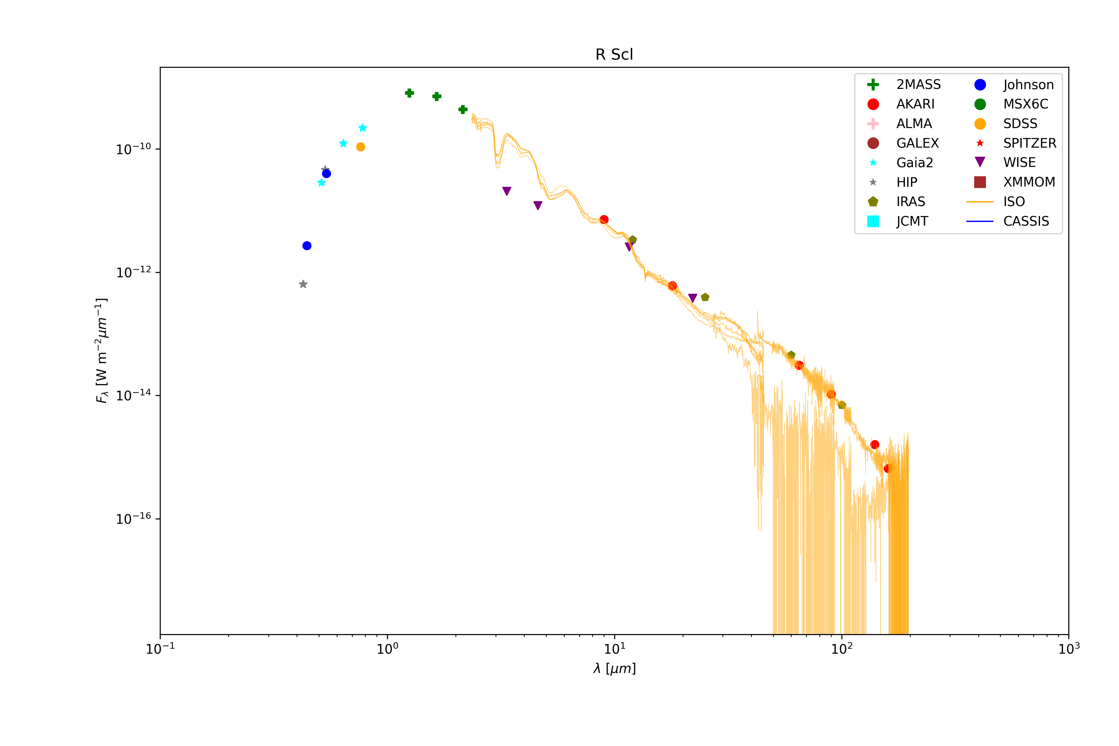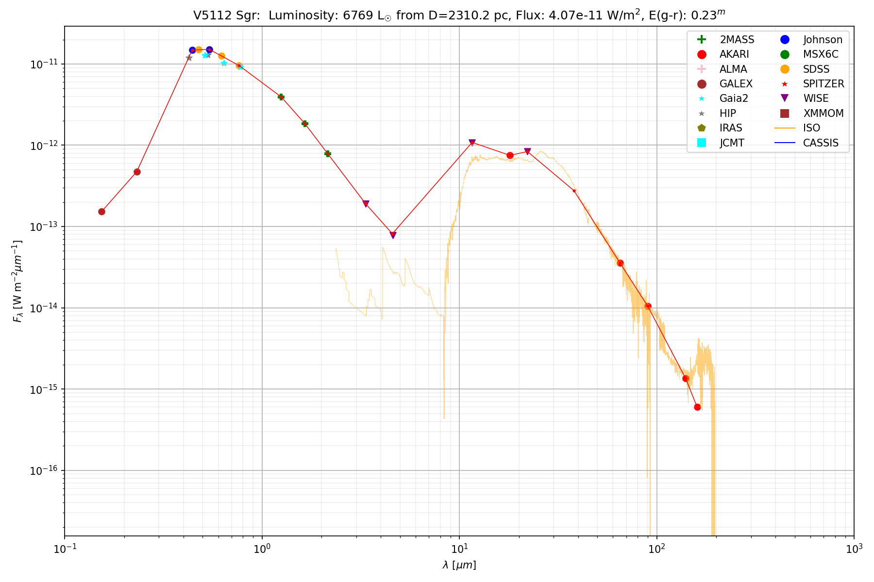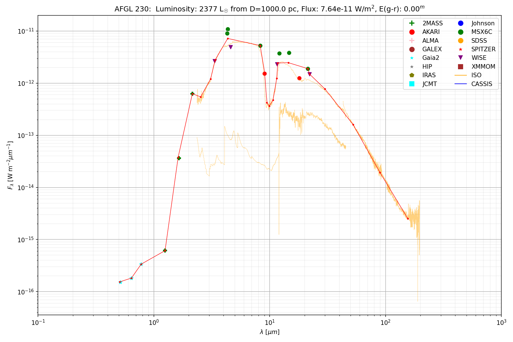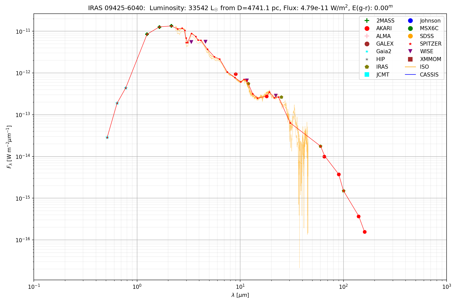 So, for each object, a file with our collected photometry, a file with the SED (corrected and uncorrected for interstellar absorption), a JSON containing all defined and collected data, and an archive with all ISO and Spitzer data and spectra (if available) are available.