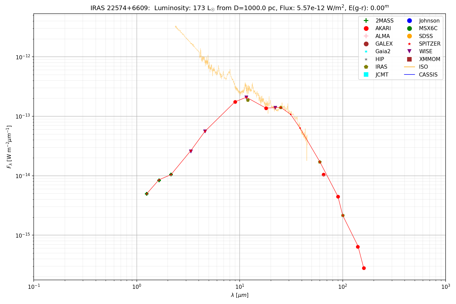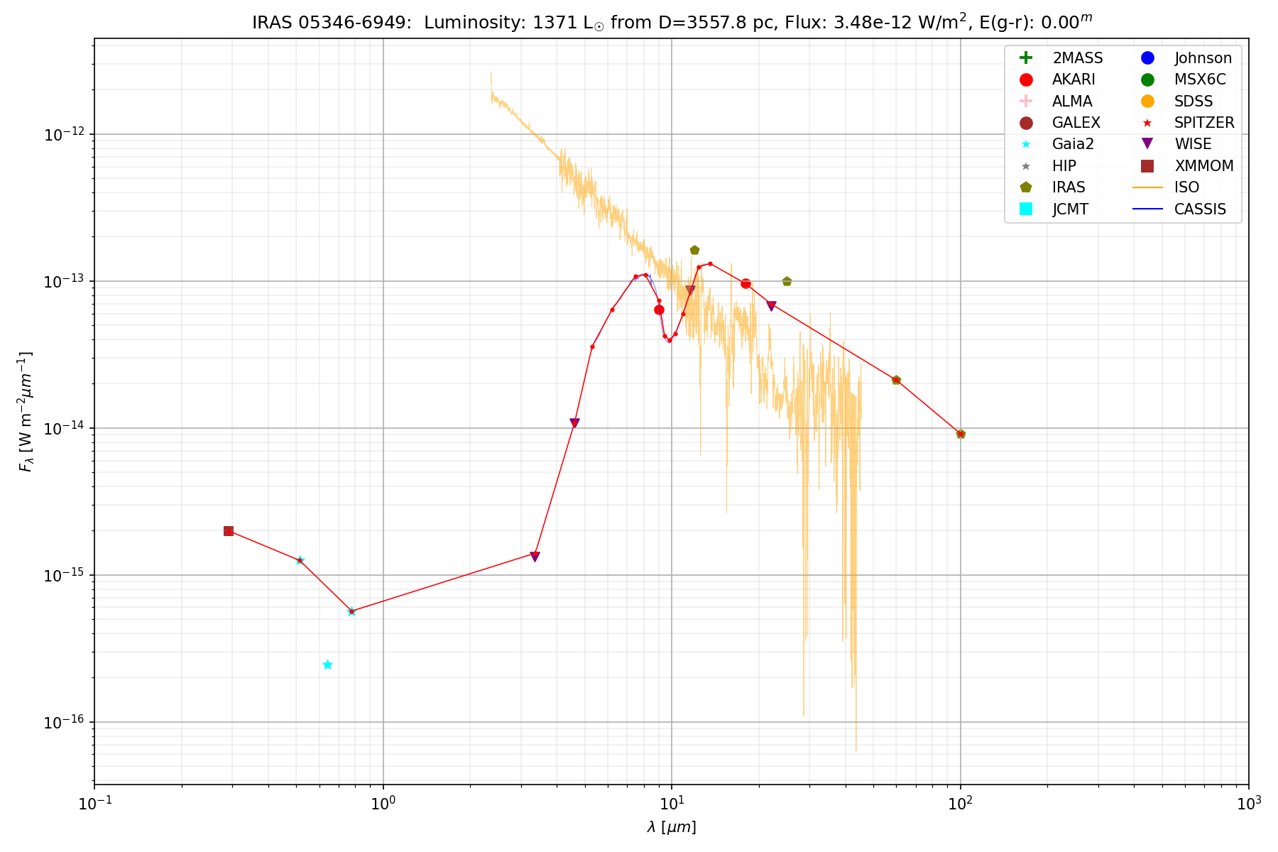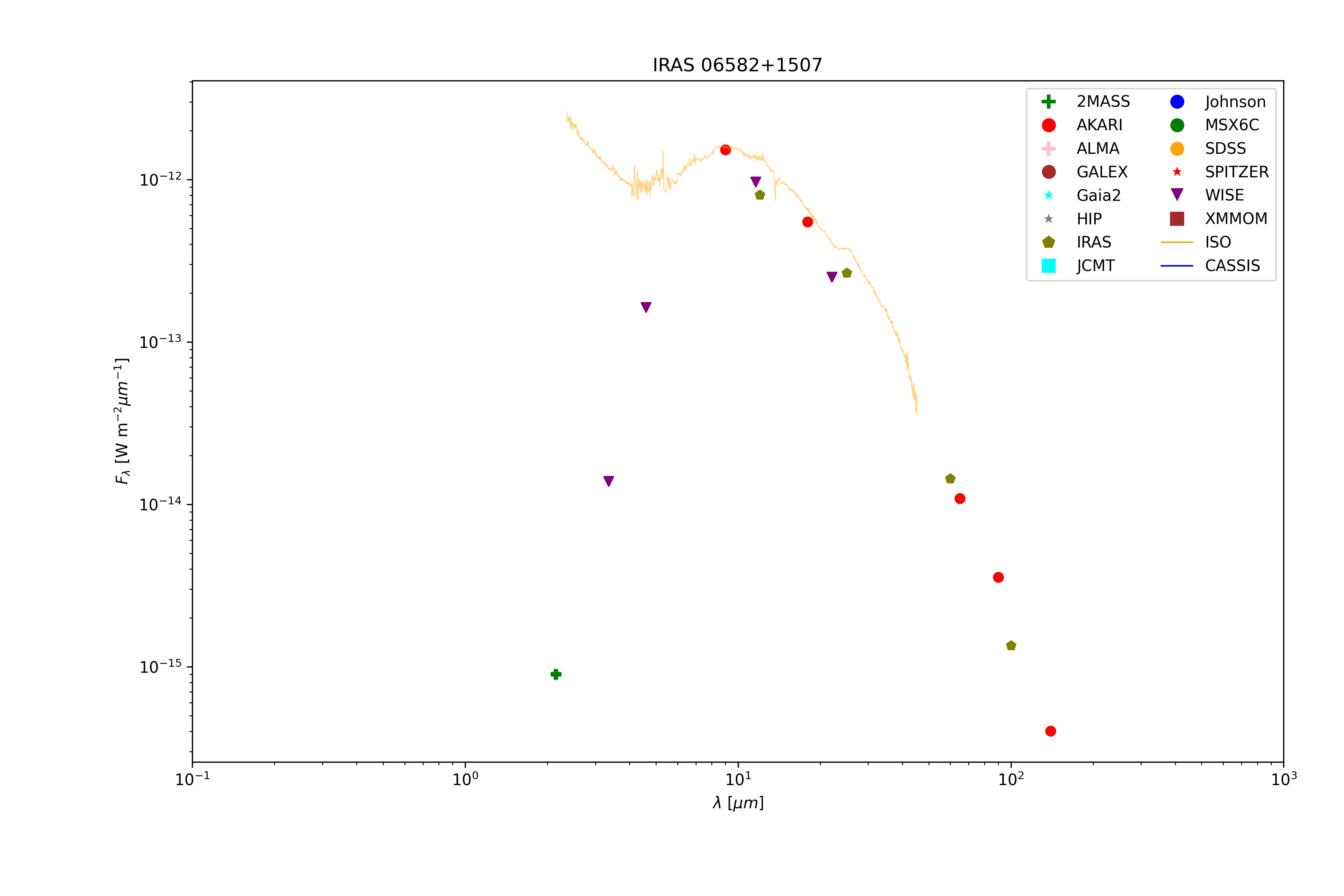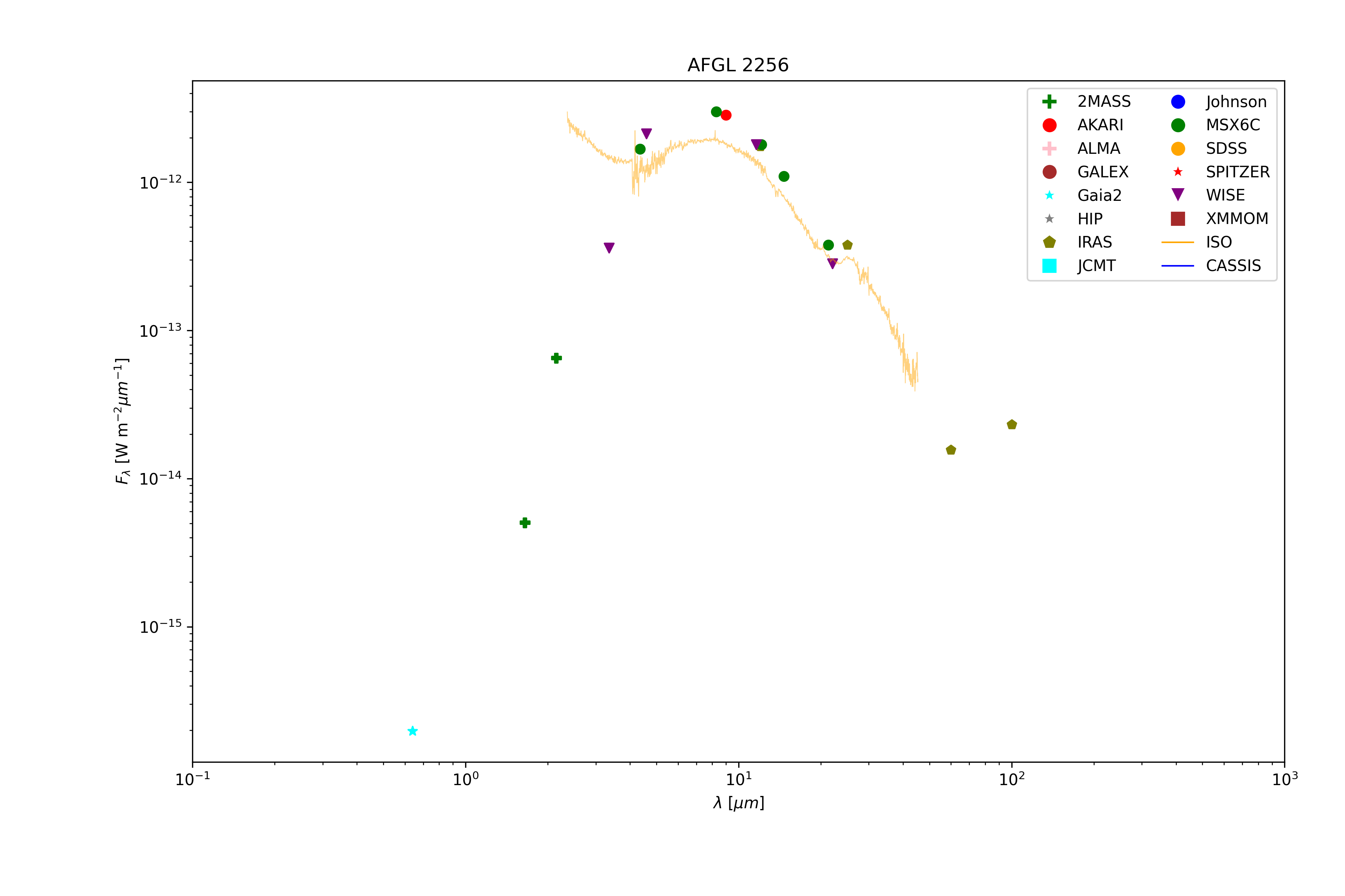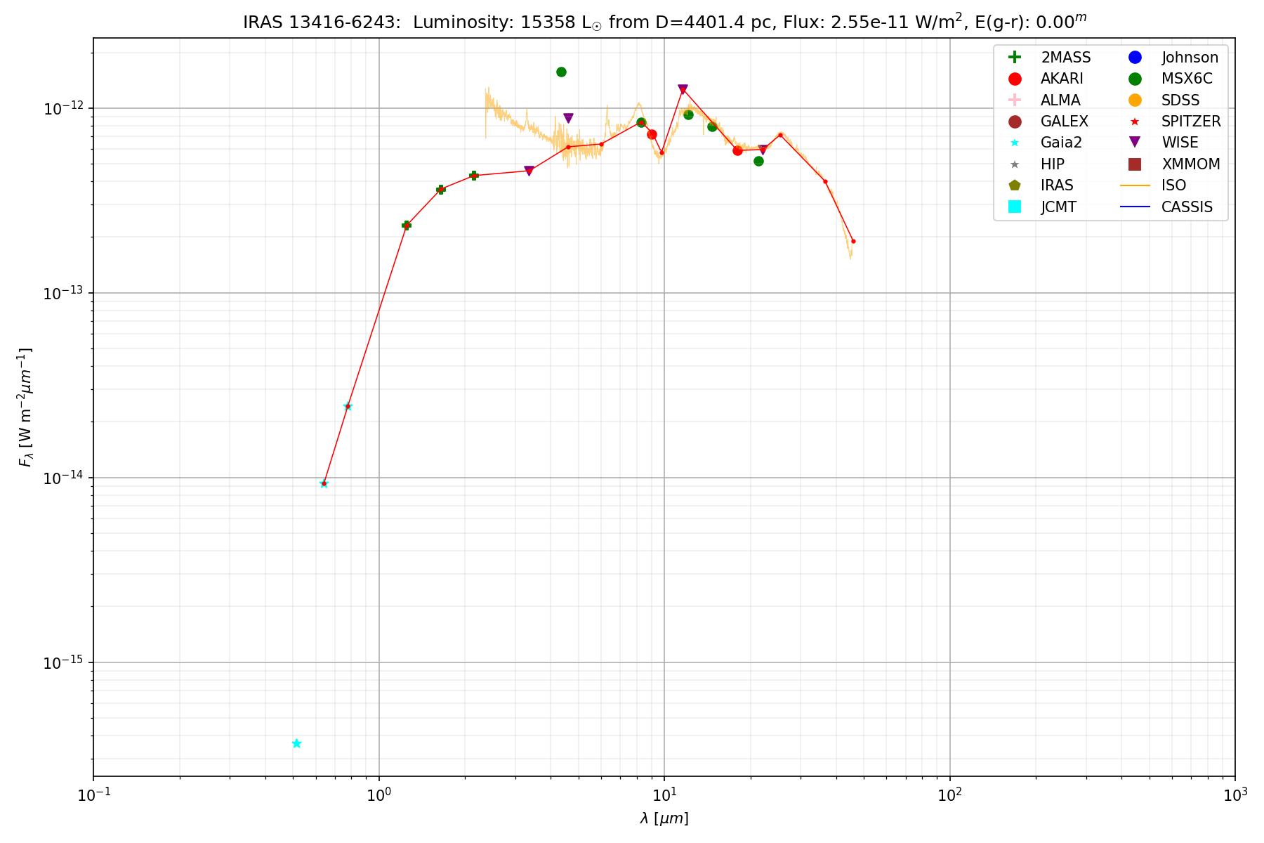 So, for each object, a file with our collected photometry, a file with the SED (corrected and uncorrected for interstellar absorption), a JSON containing all defined and collected data, and an archive with all ISO and Spitzer data and spectra (if available) are available.