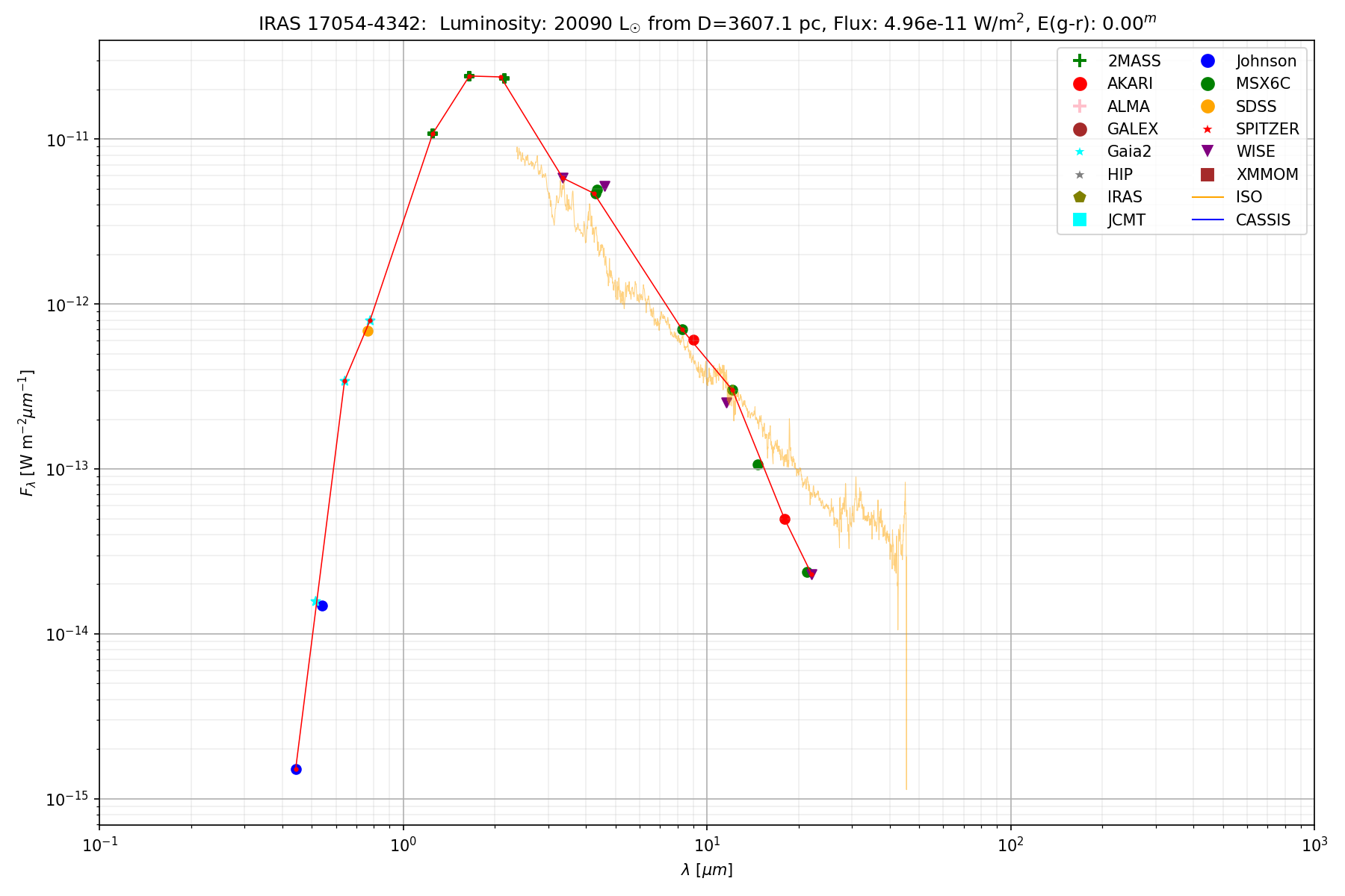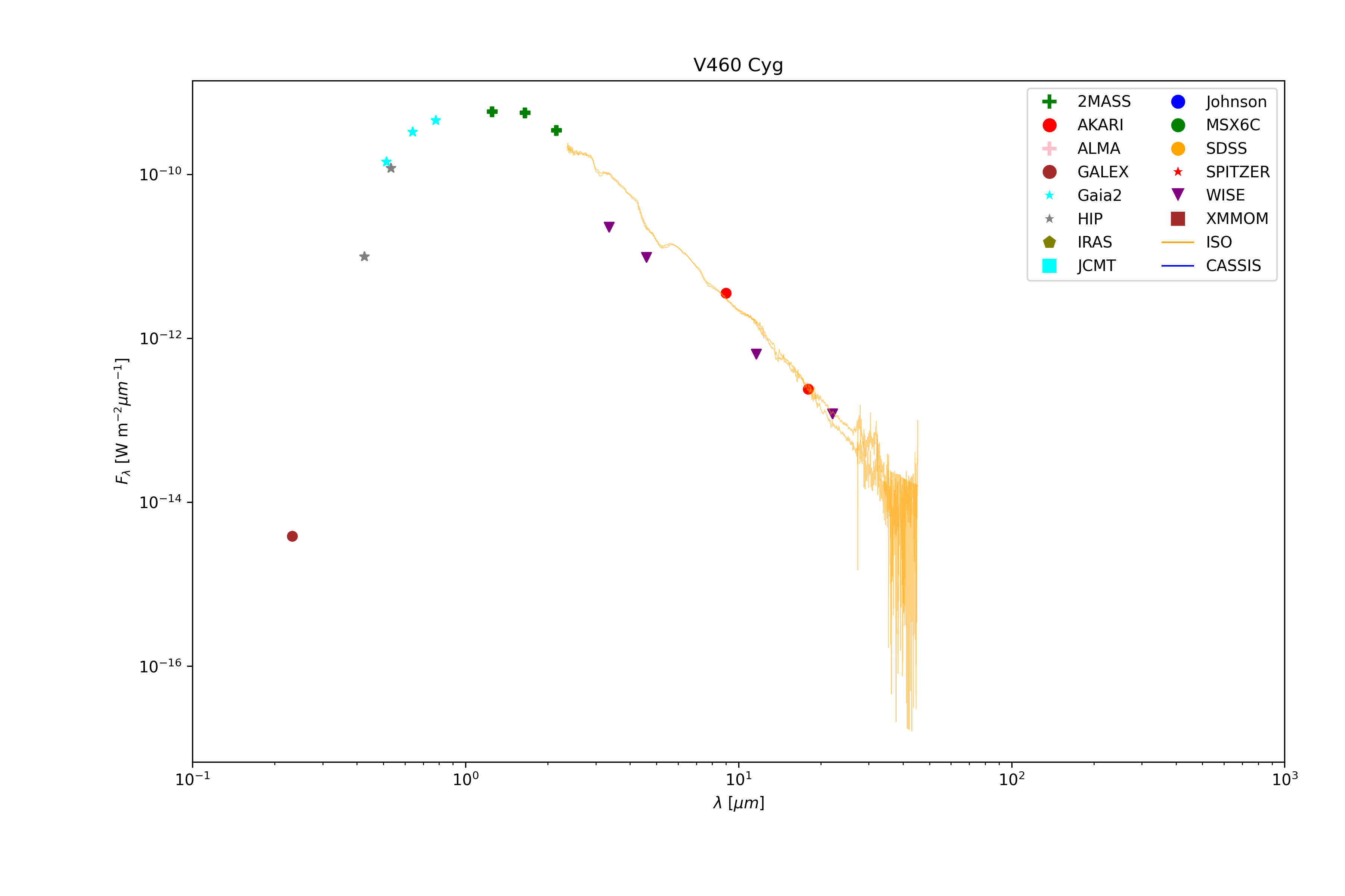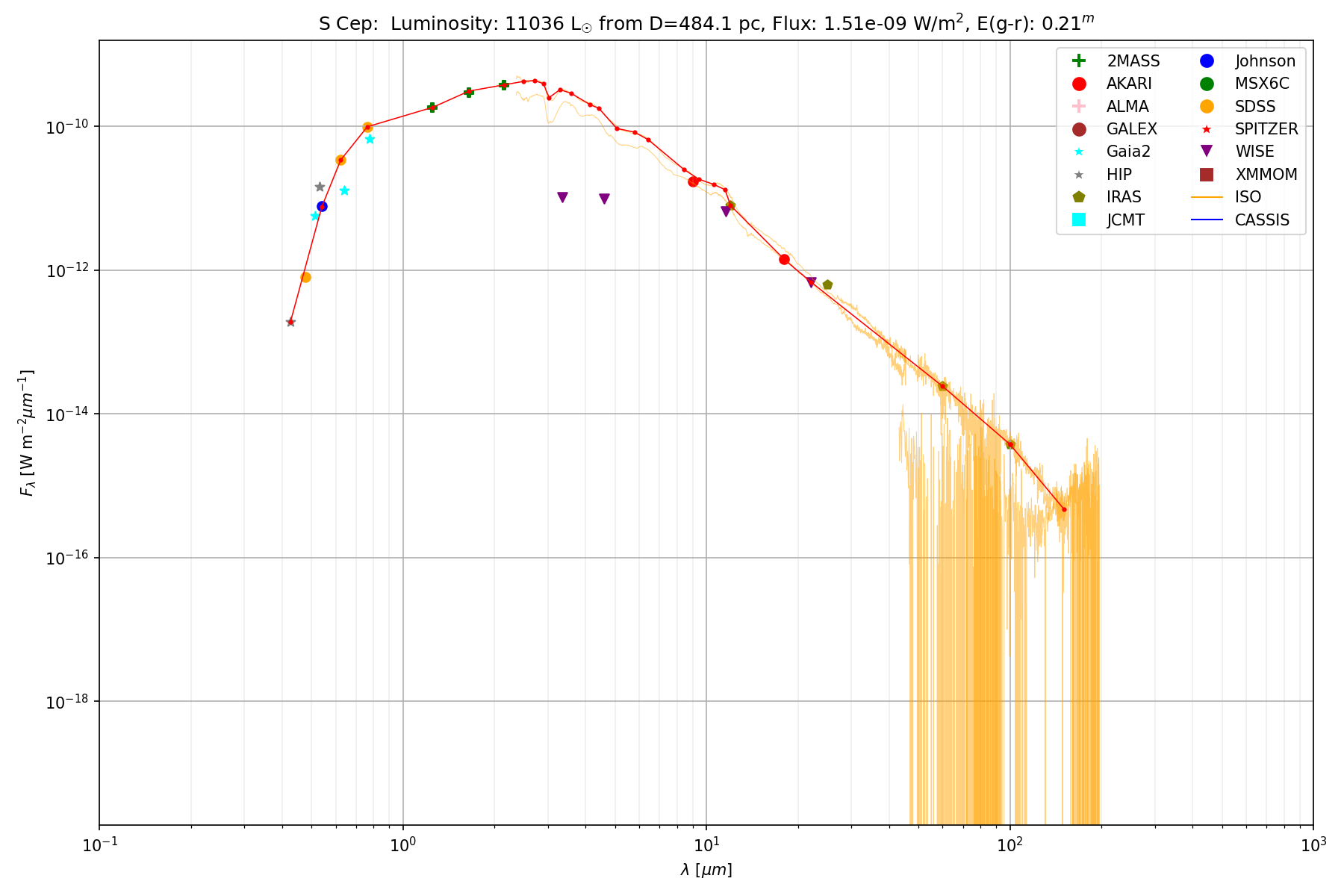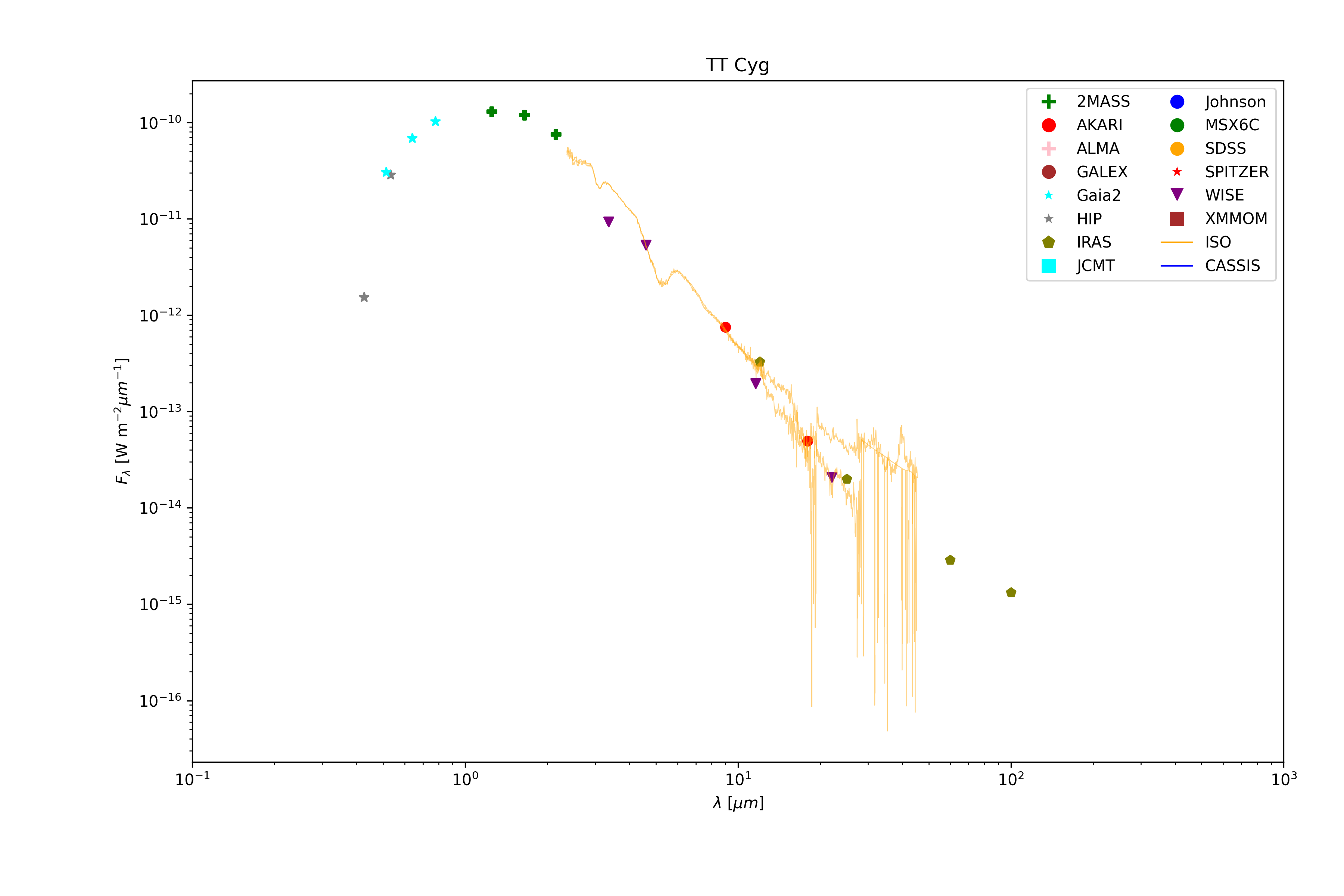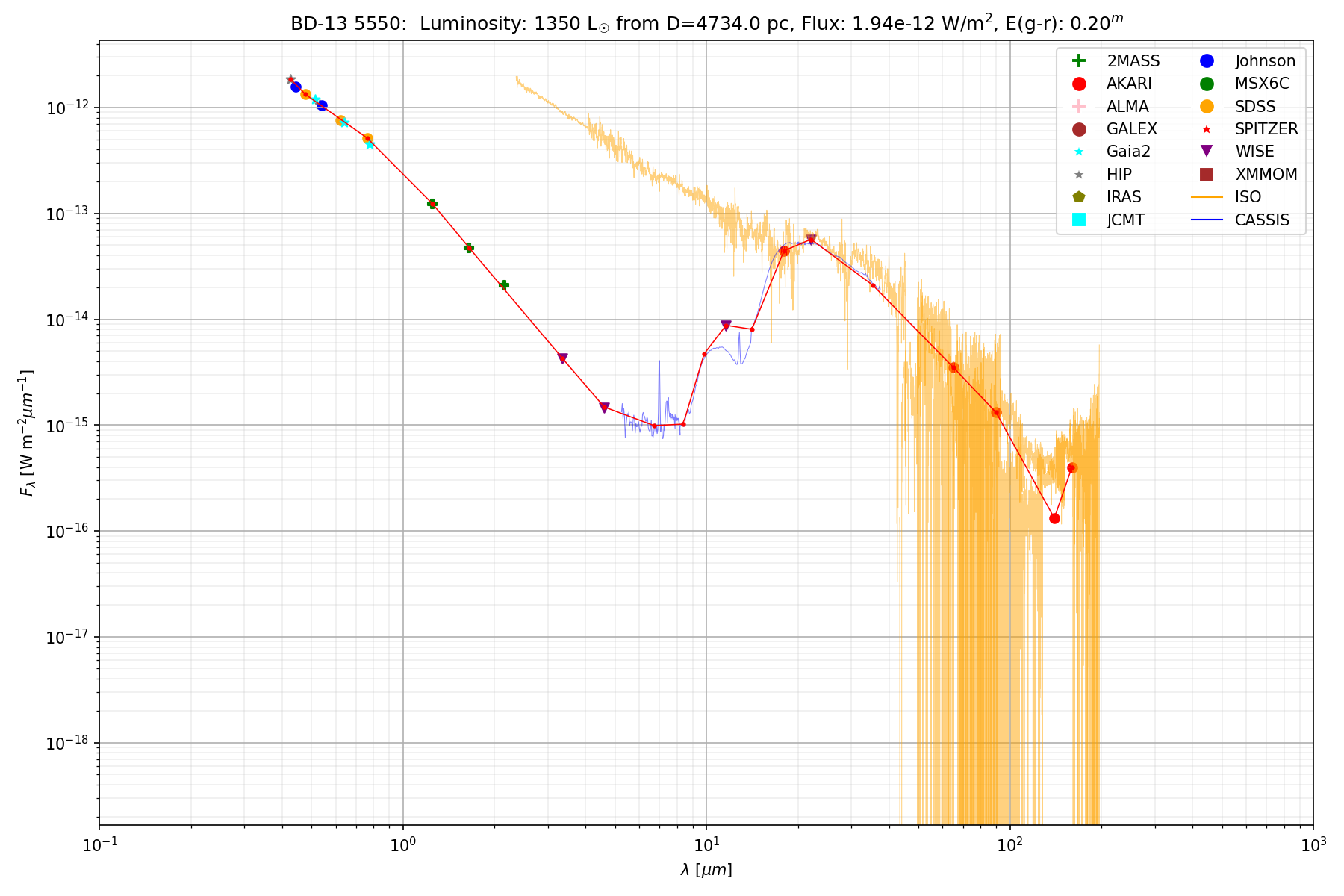 So, for each object, a file with our collected photometry, a file with the SED (corrected and uncorrected for interstellar absorption), a JSON containing all defined and collected data, and an archive with all ISO and Spitzer data and spectra (if available) are available.