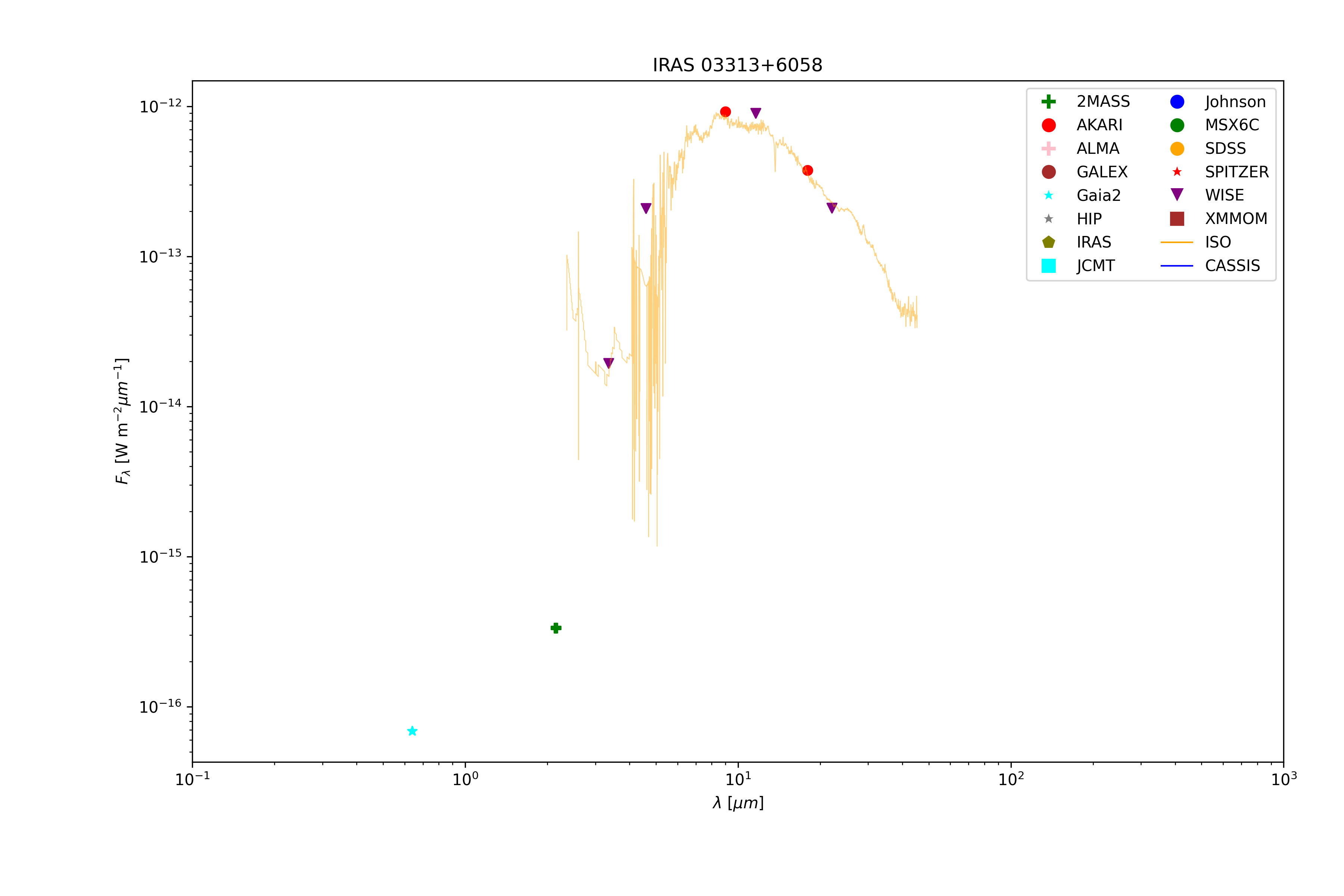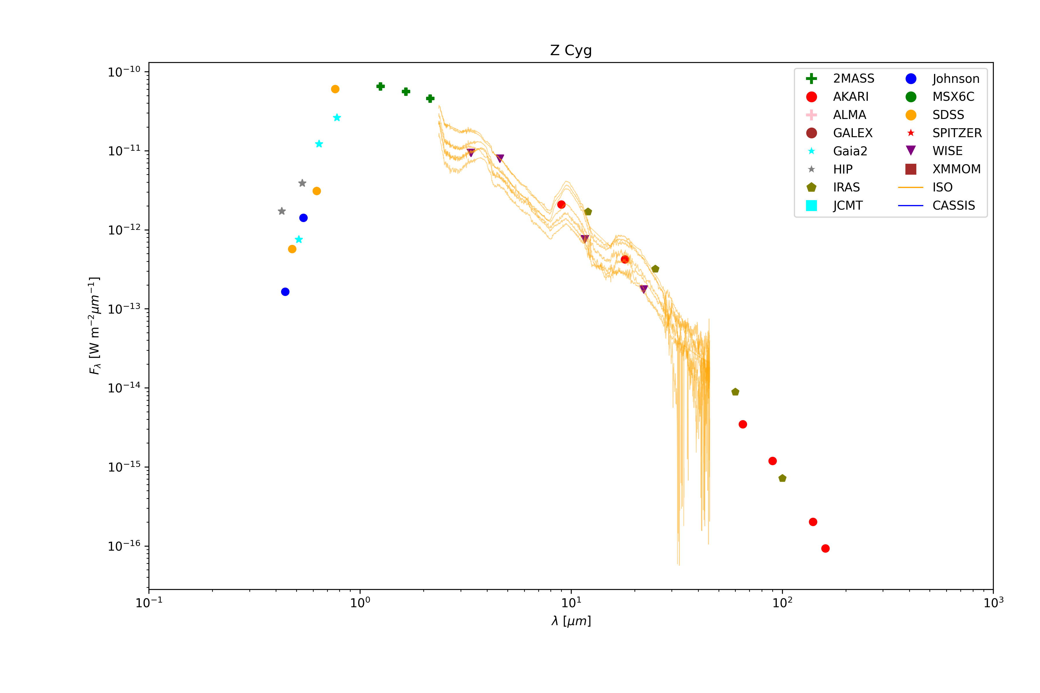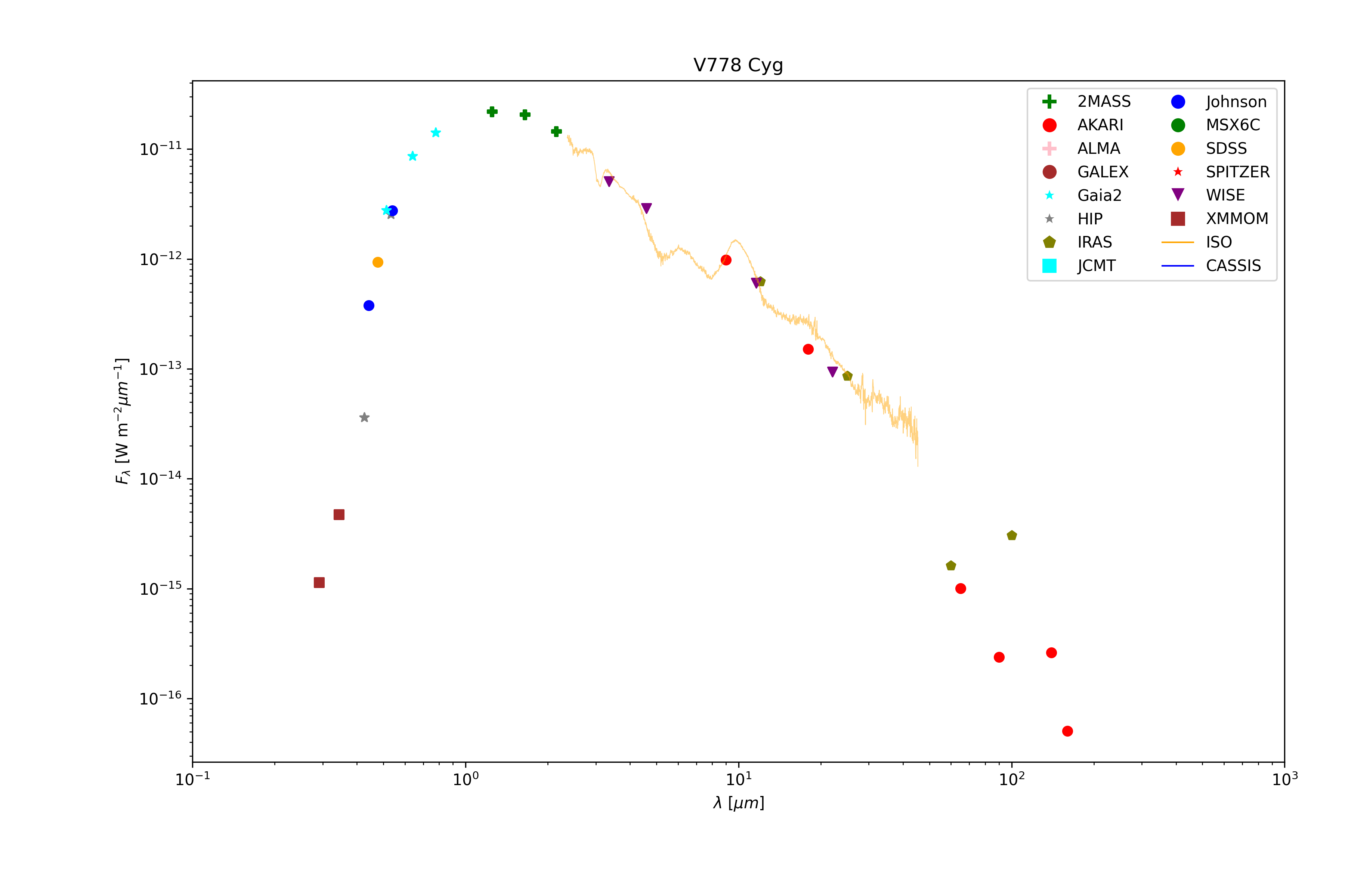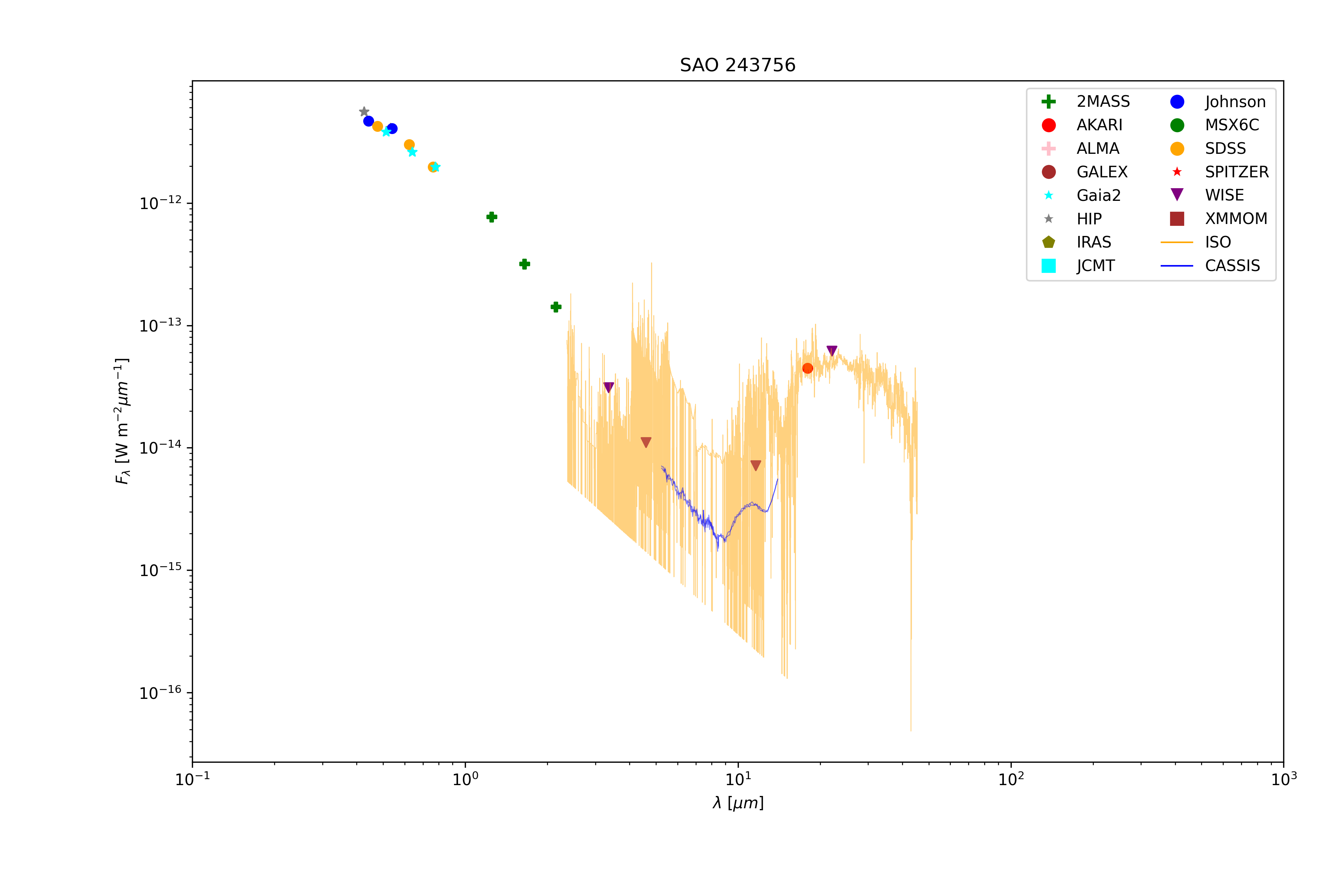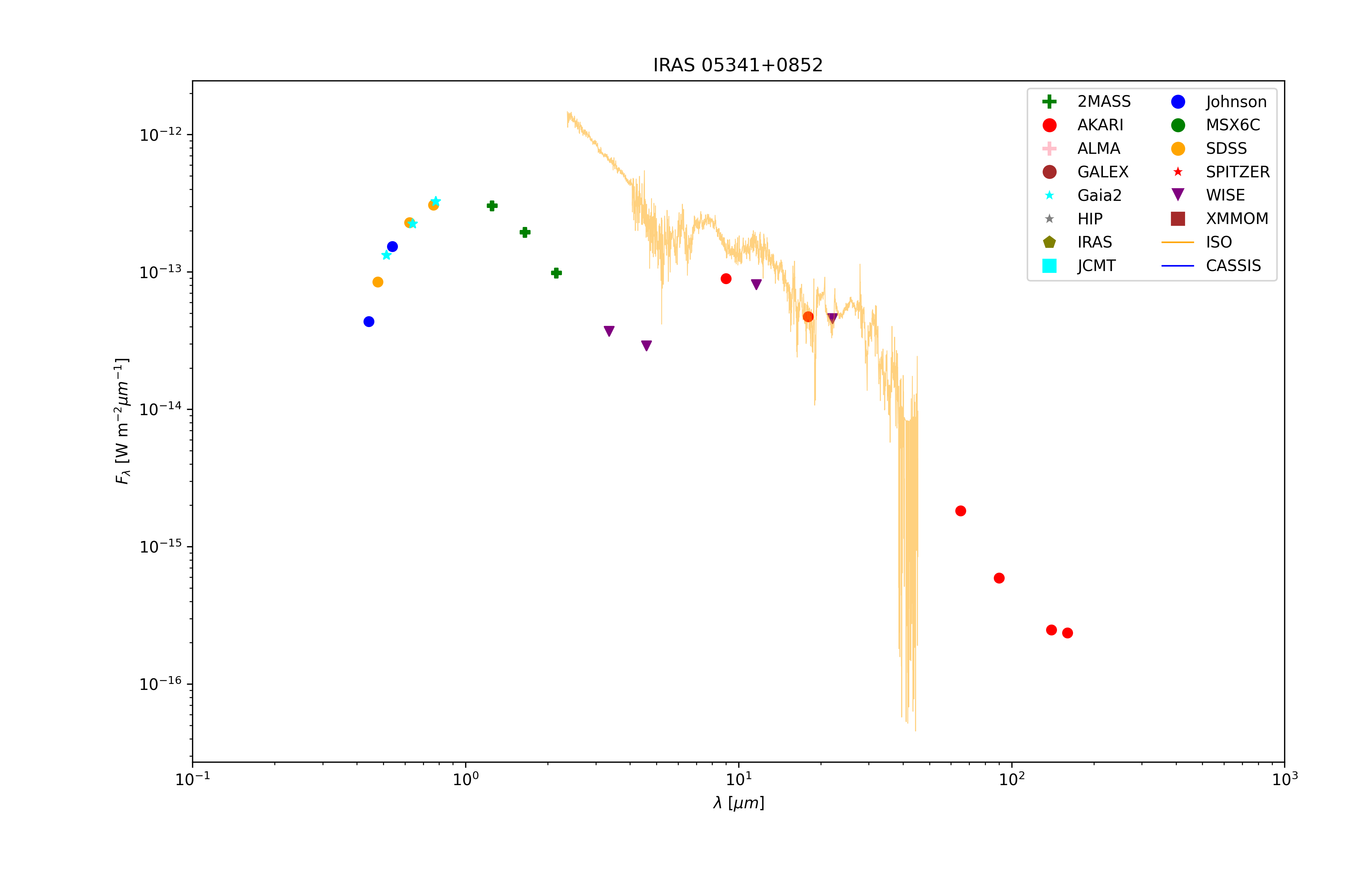 So, for each object, a file with our collected photometry, a file with the SED (corrected and uncorrected for interstellar absorption), a JSON containing all defined and collected data, and an archive with all ISO and Spitzer data and spectra (if available) are available.