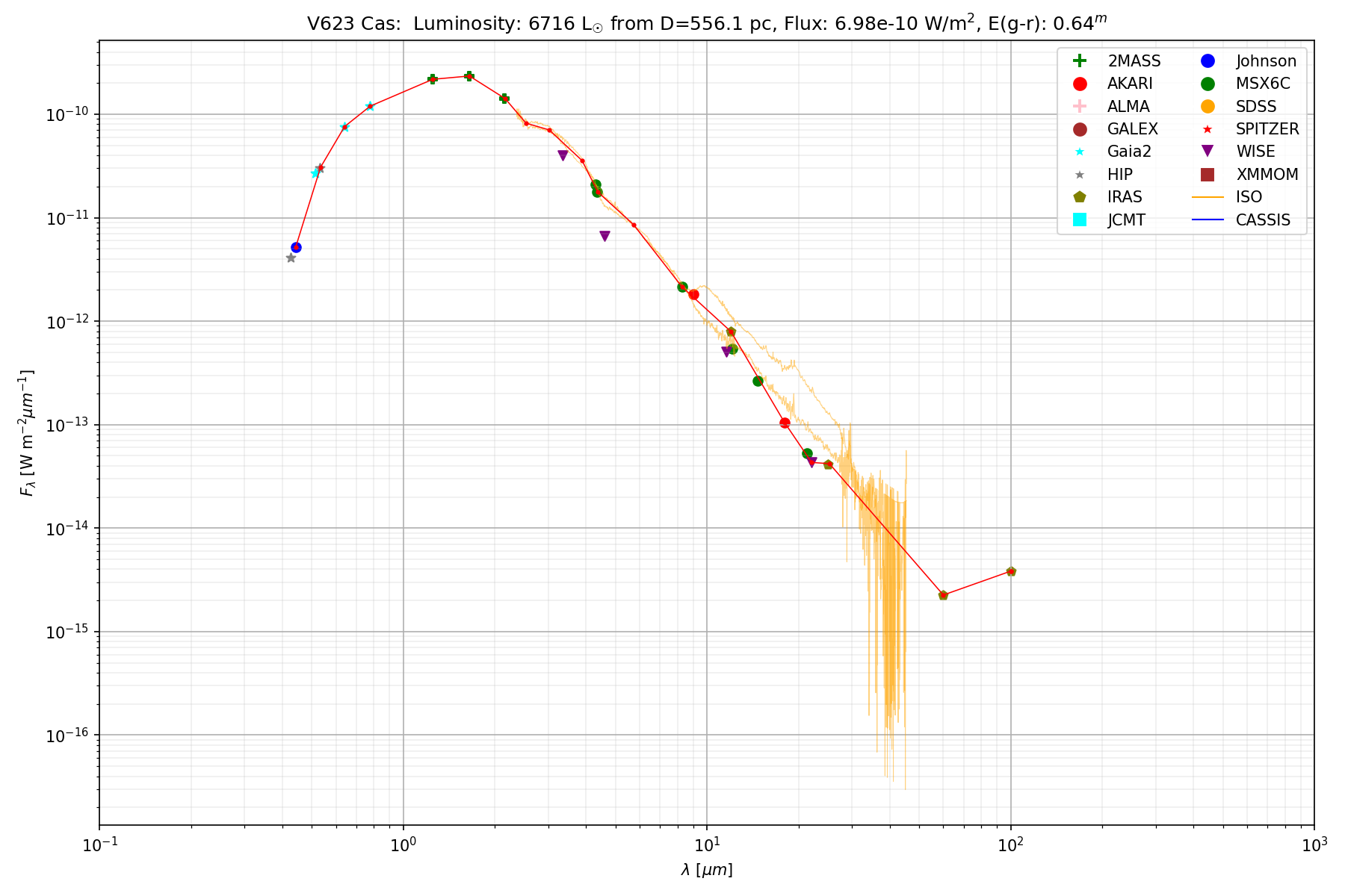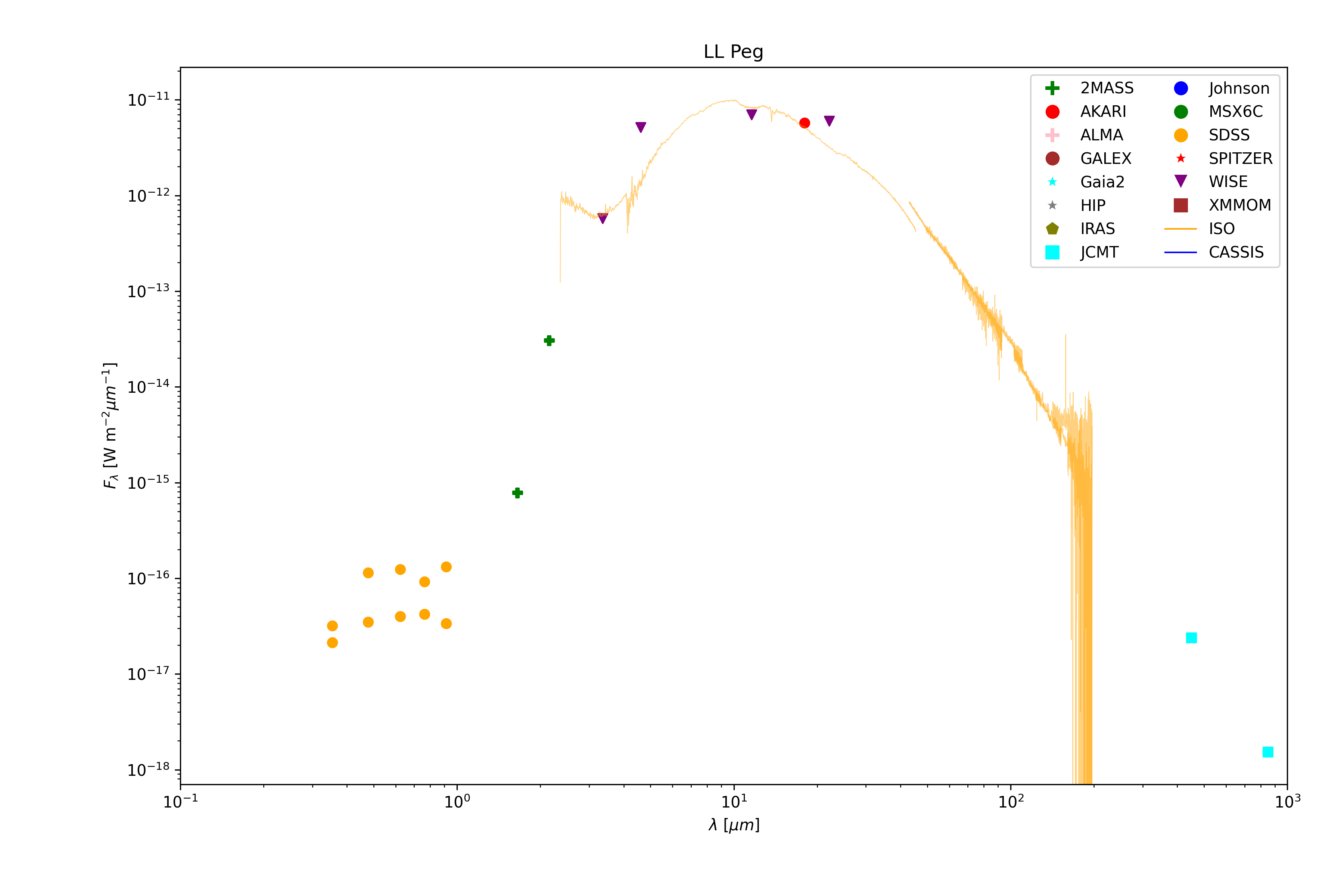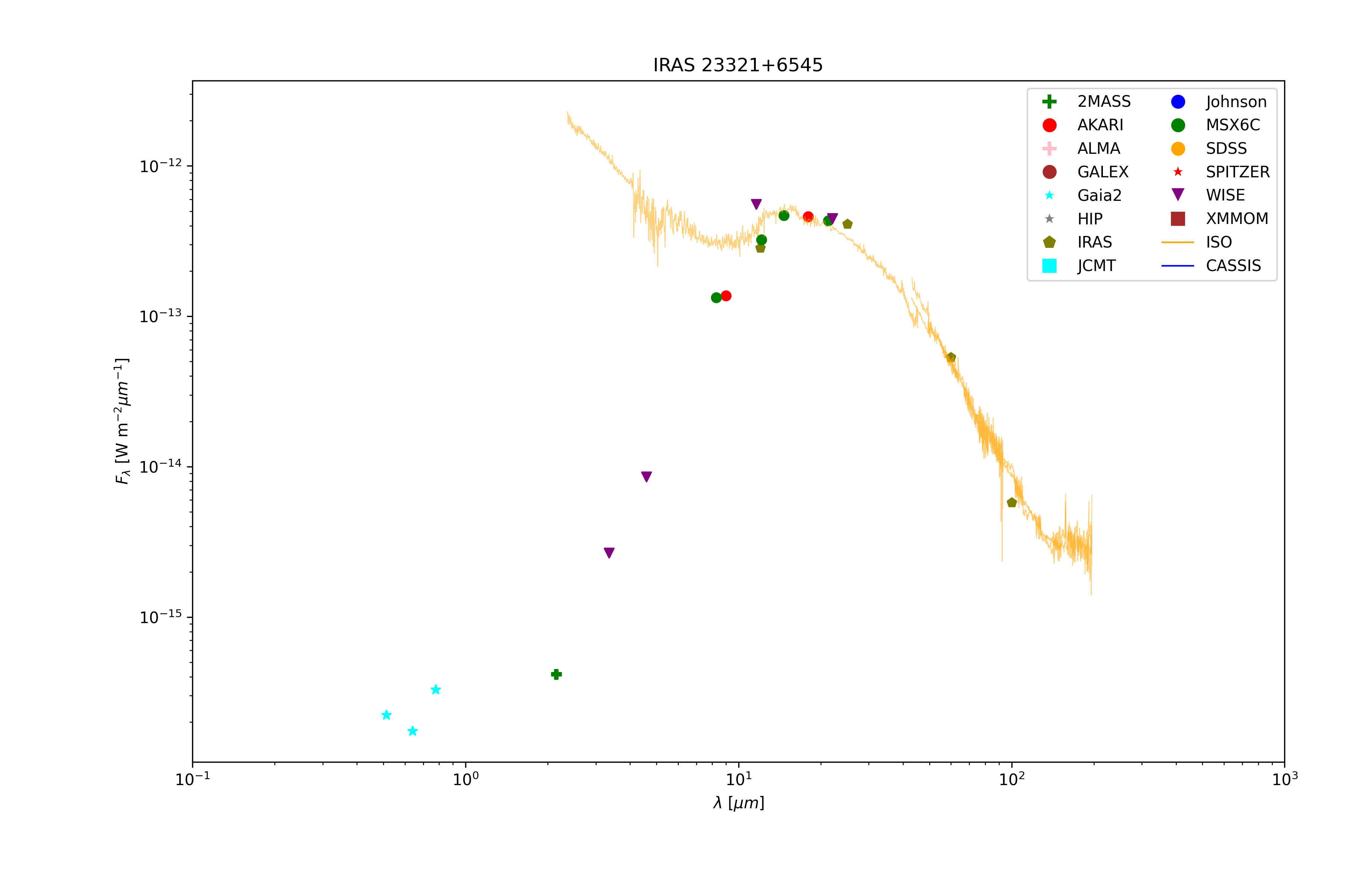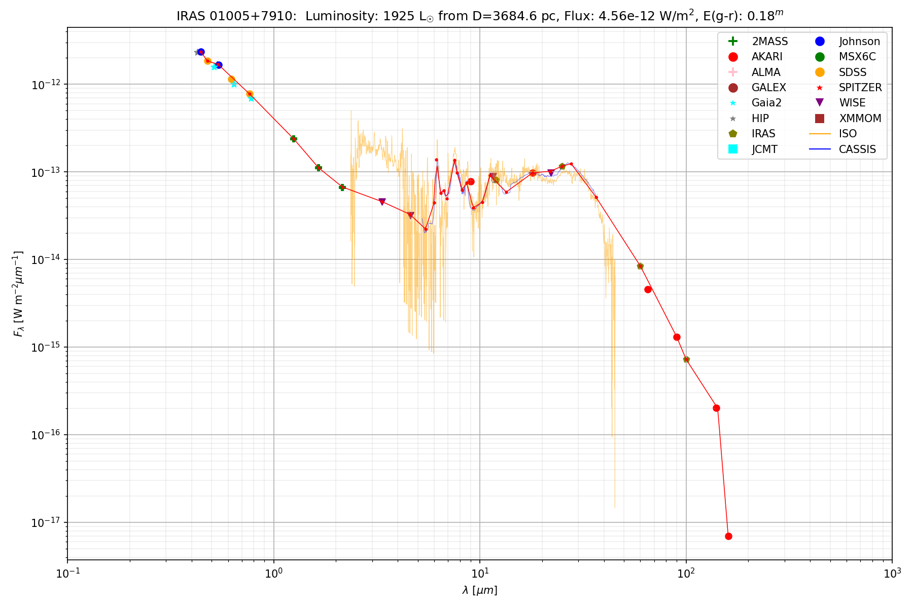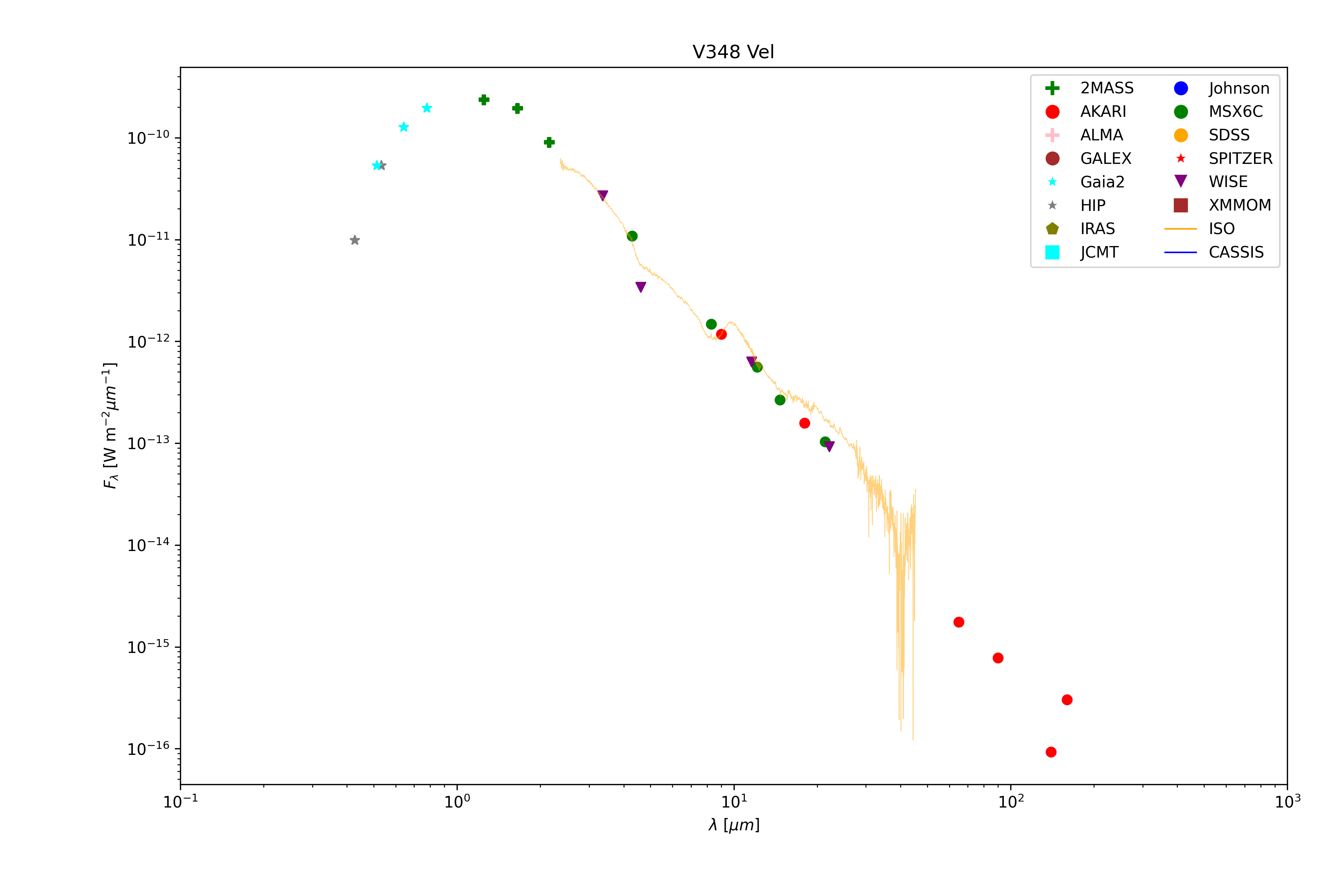 So, for each object, a file with our collected photometry, a file with the SED (corrected and uncorrected for interstellar absorption), a JSON containing all defined and collected data, and an archive with all ISO and Spitzer data and spectra (if available) are available.