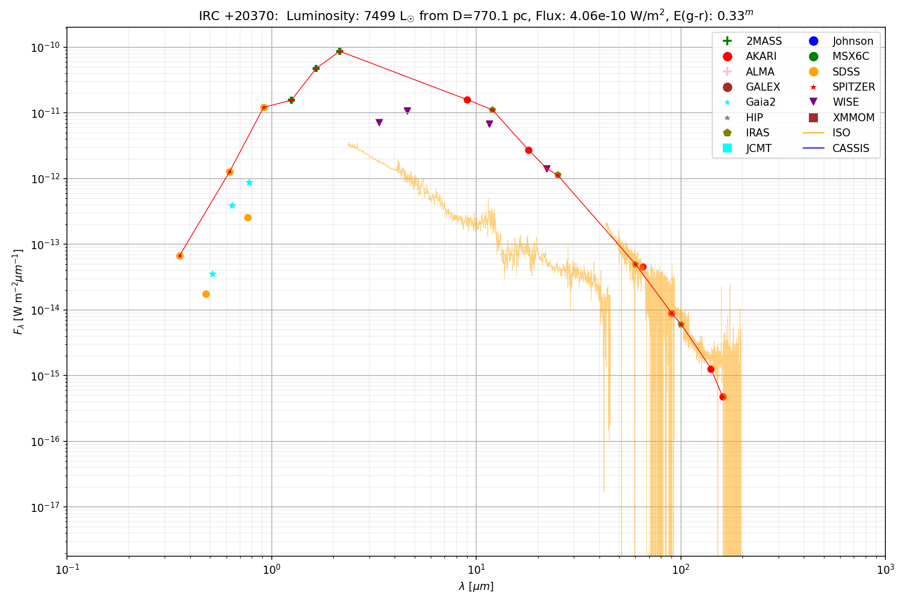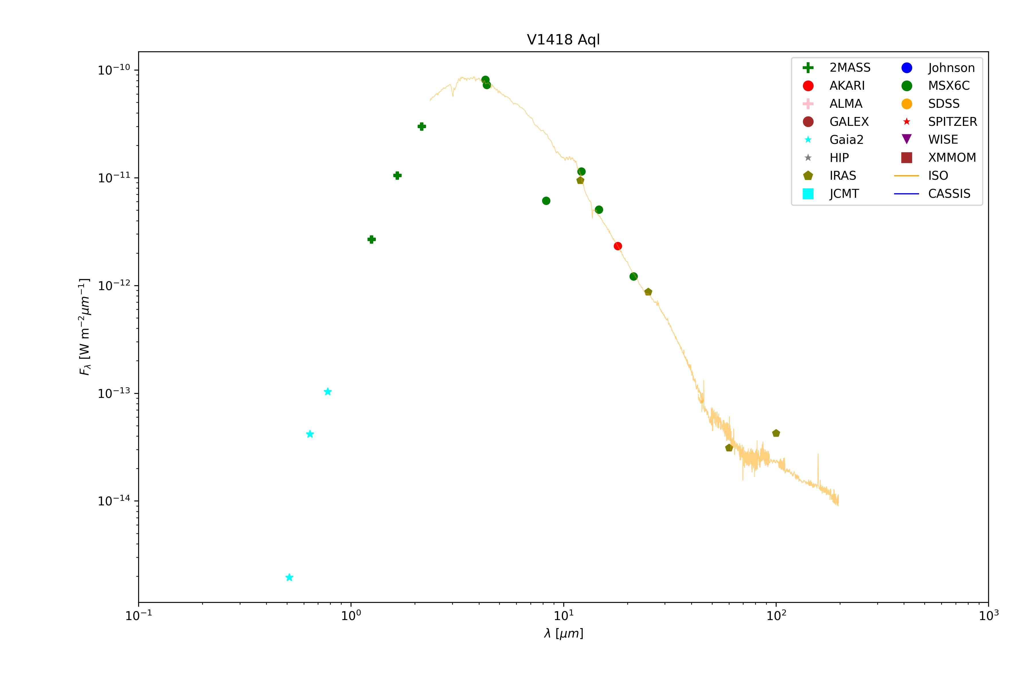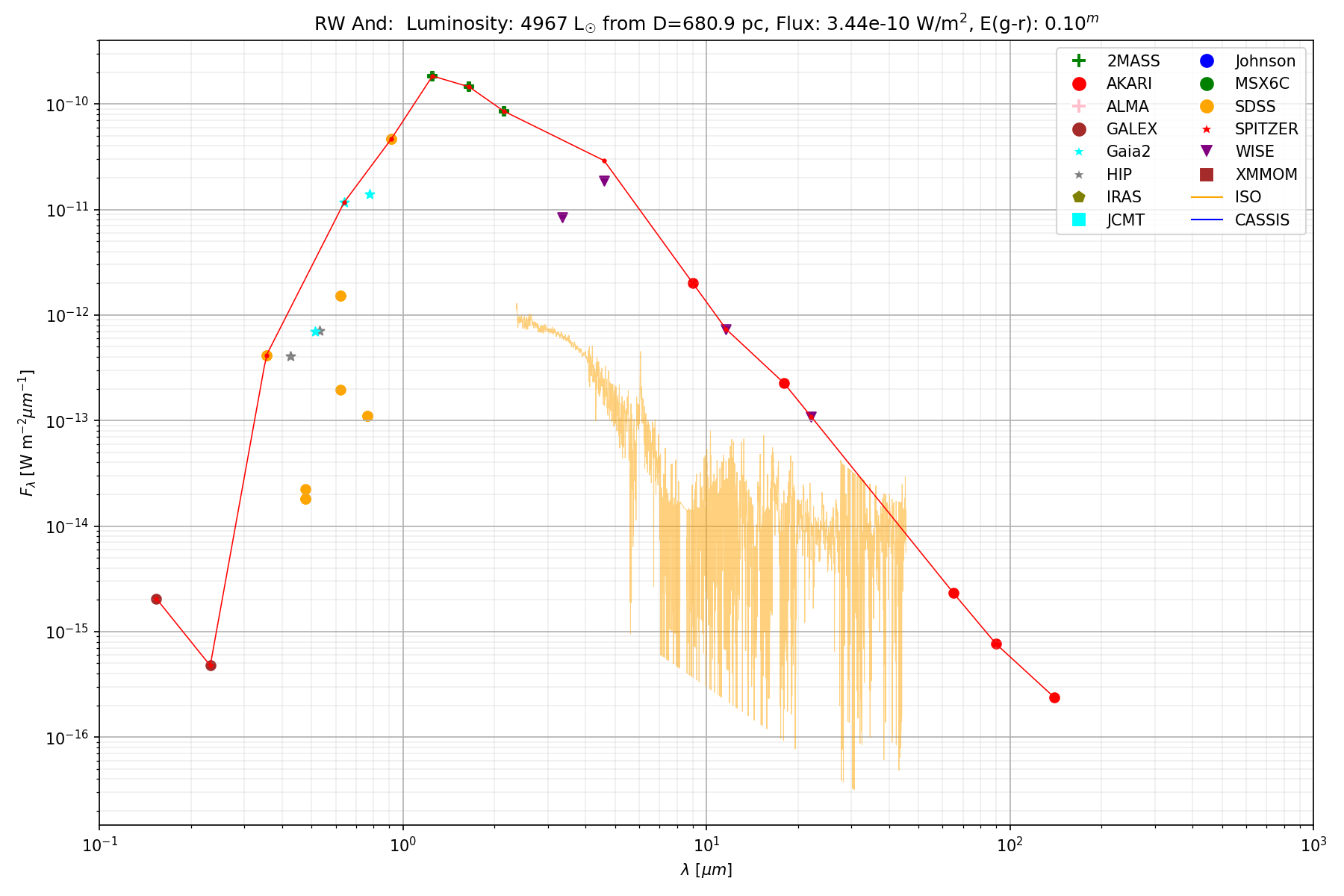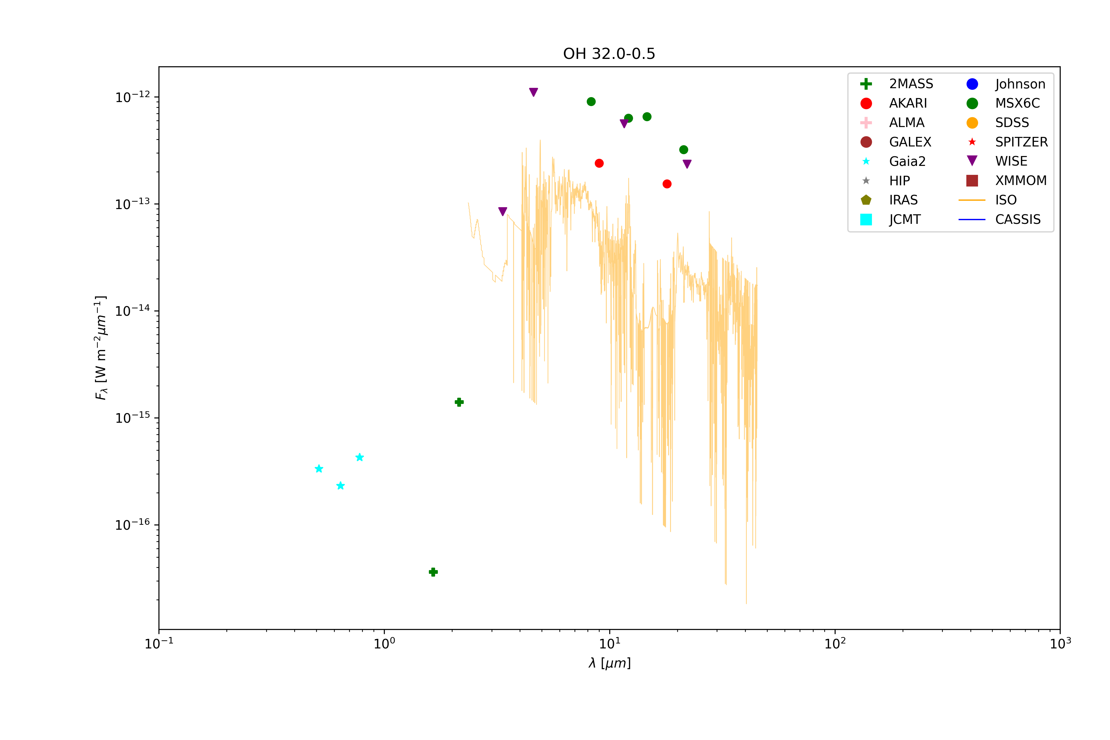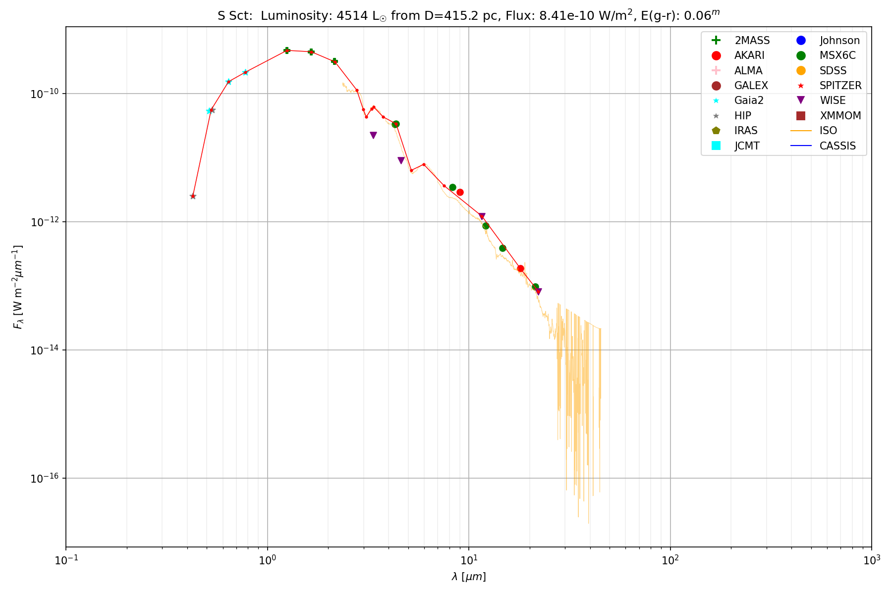 So, for each object, a file with our collected photometry, a file with the SED (corrected and uncorrected for interstellar absorption), a JSON containing all defined and collected data, and an archive with all ISO and Spitzer data and spectra (if available) are available.
