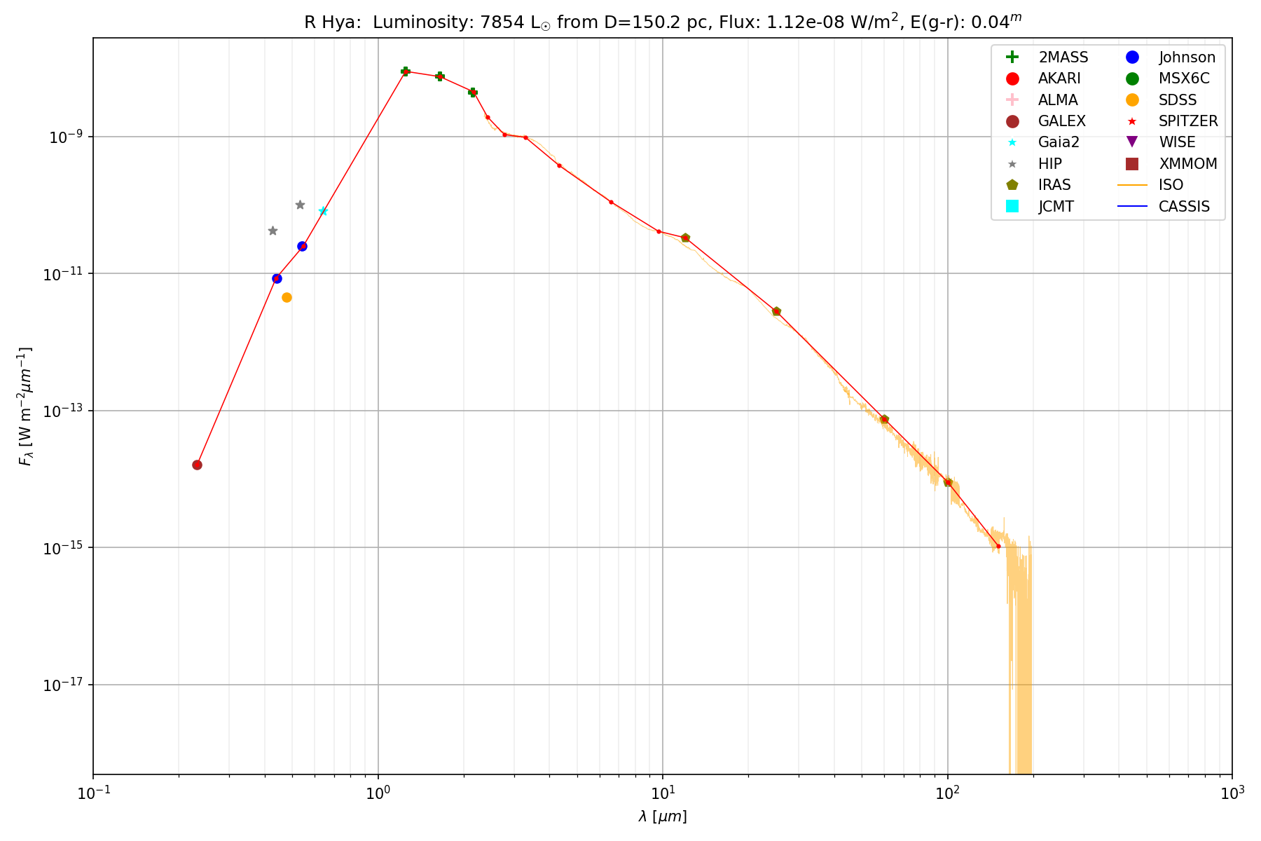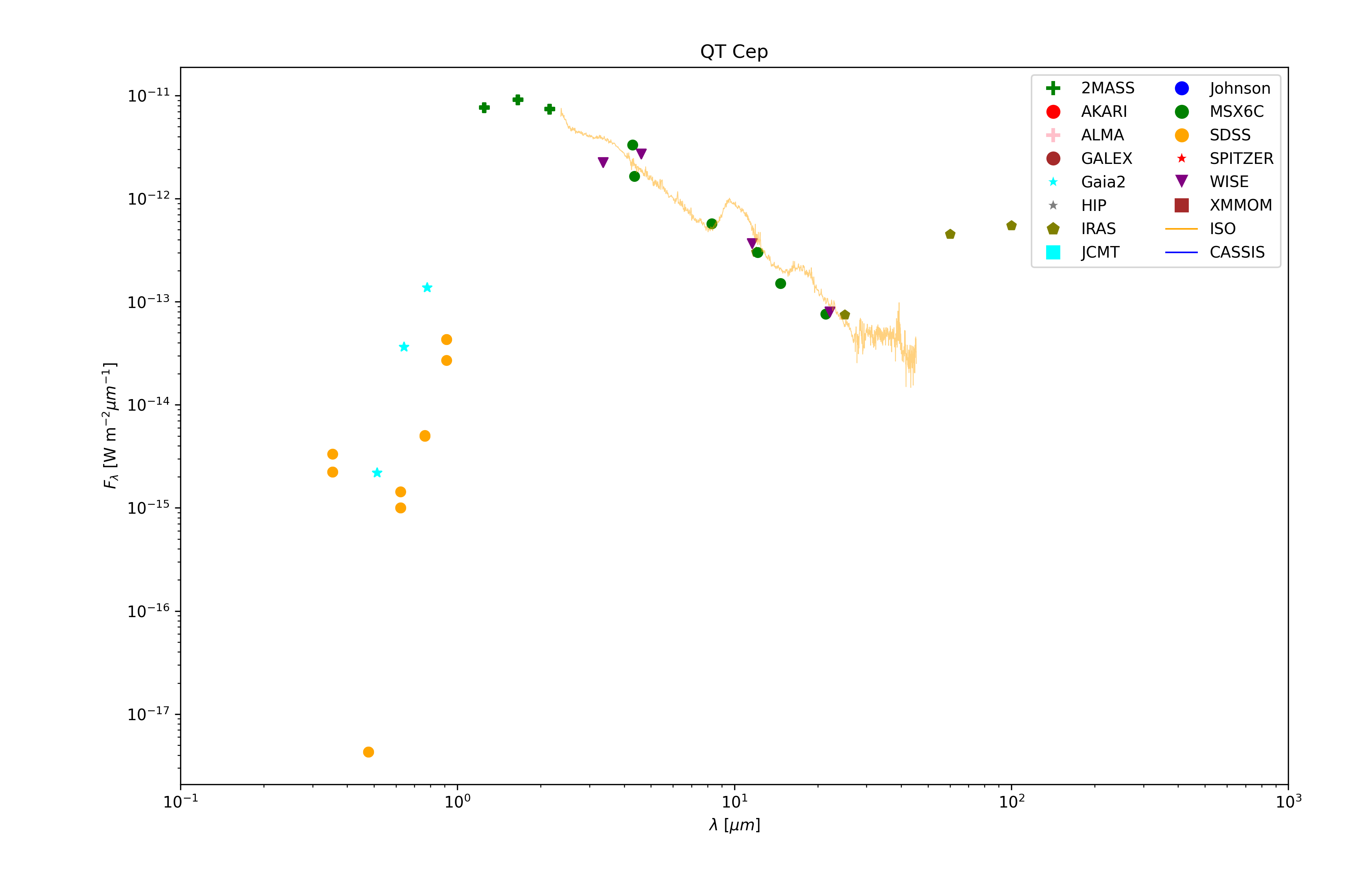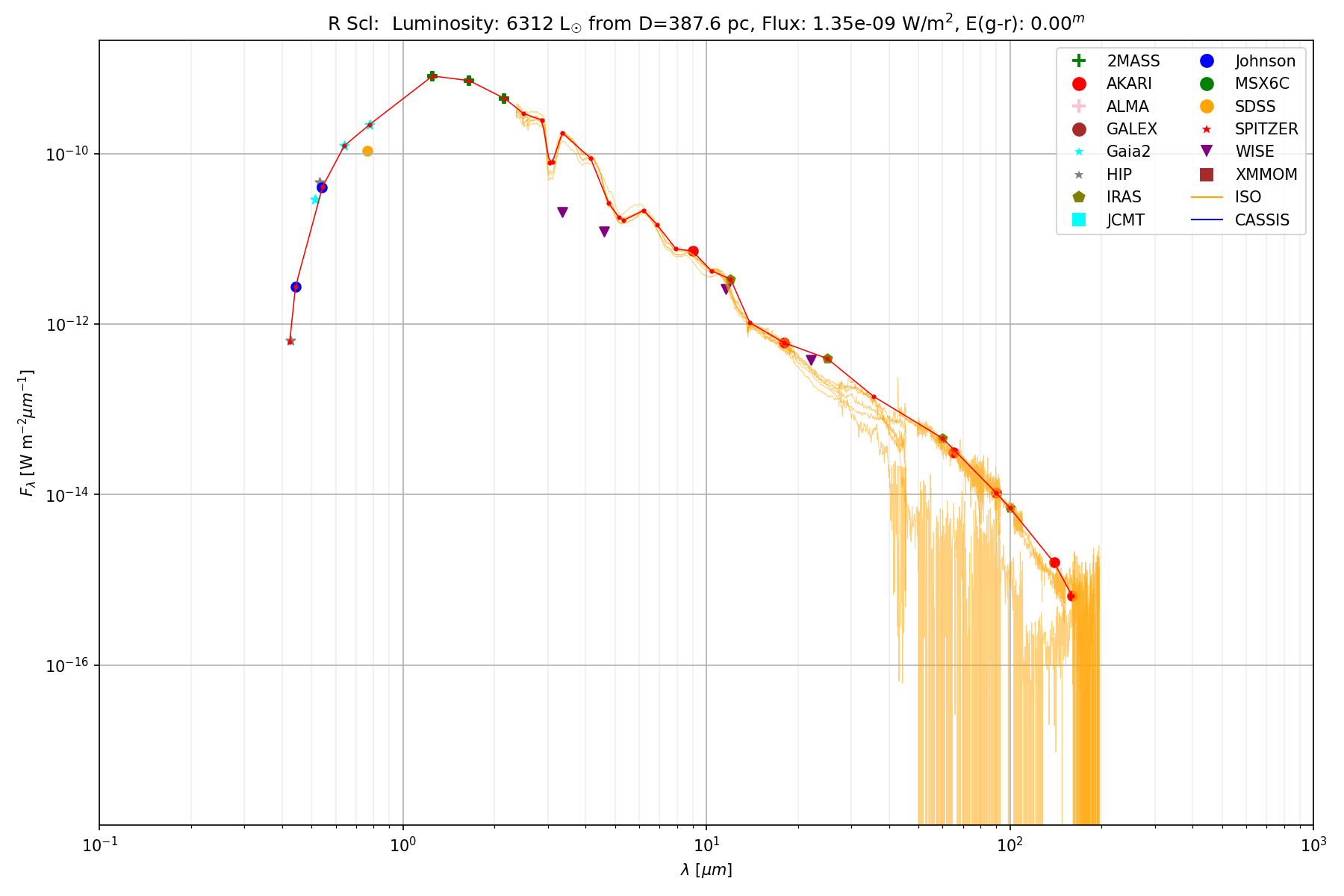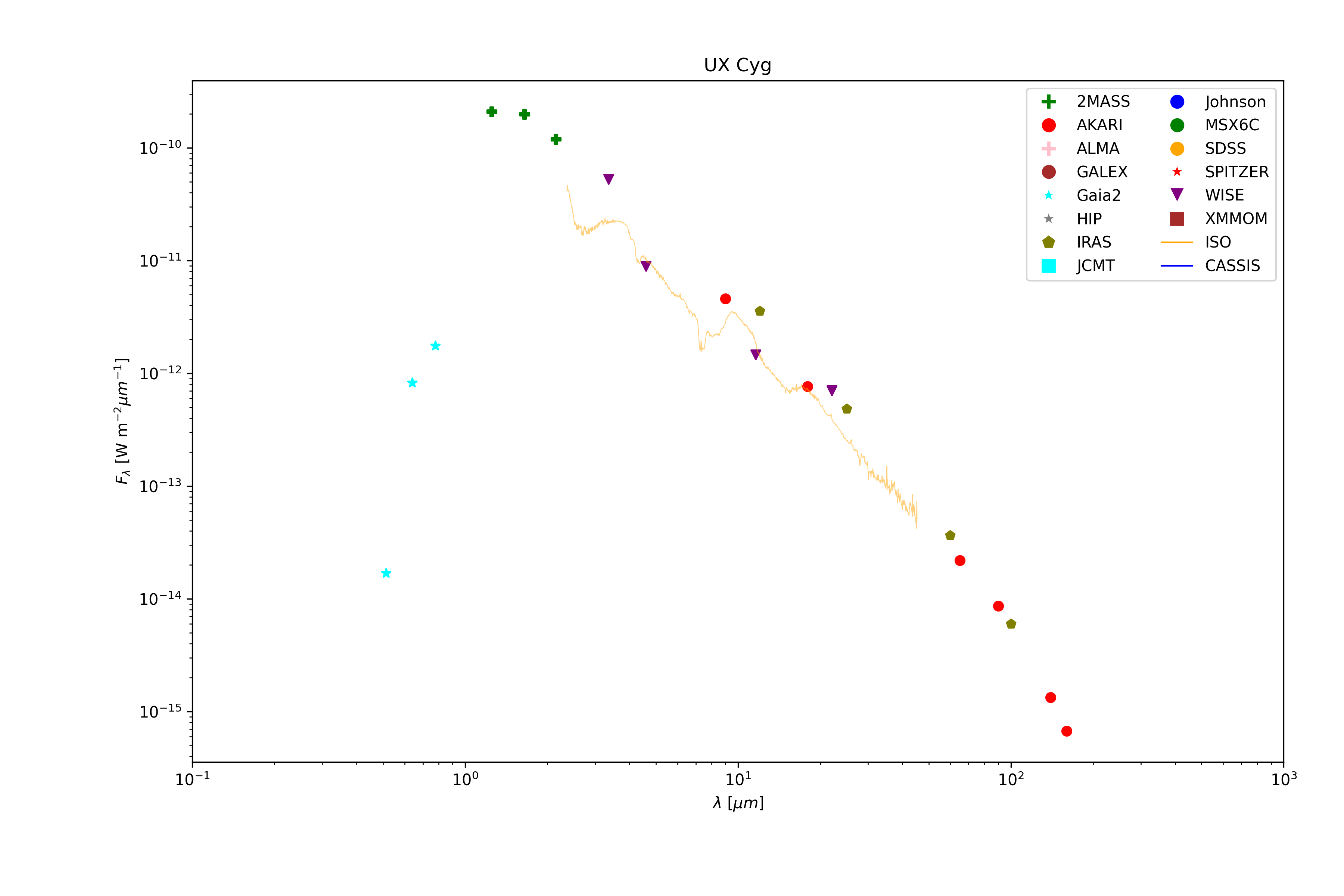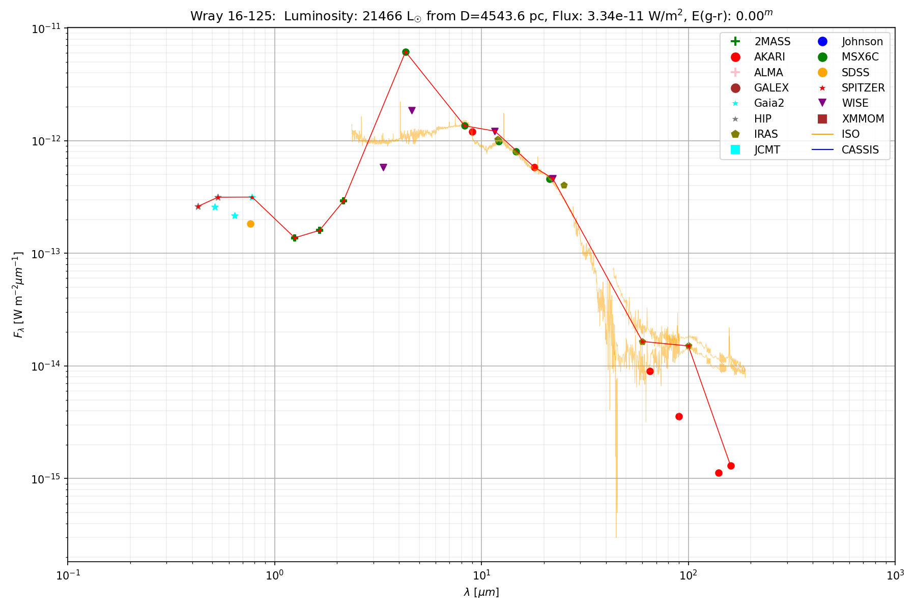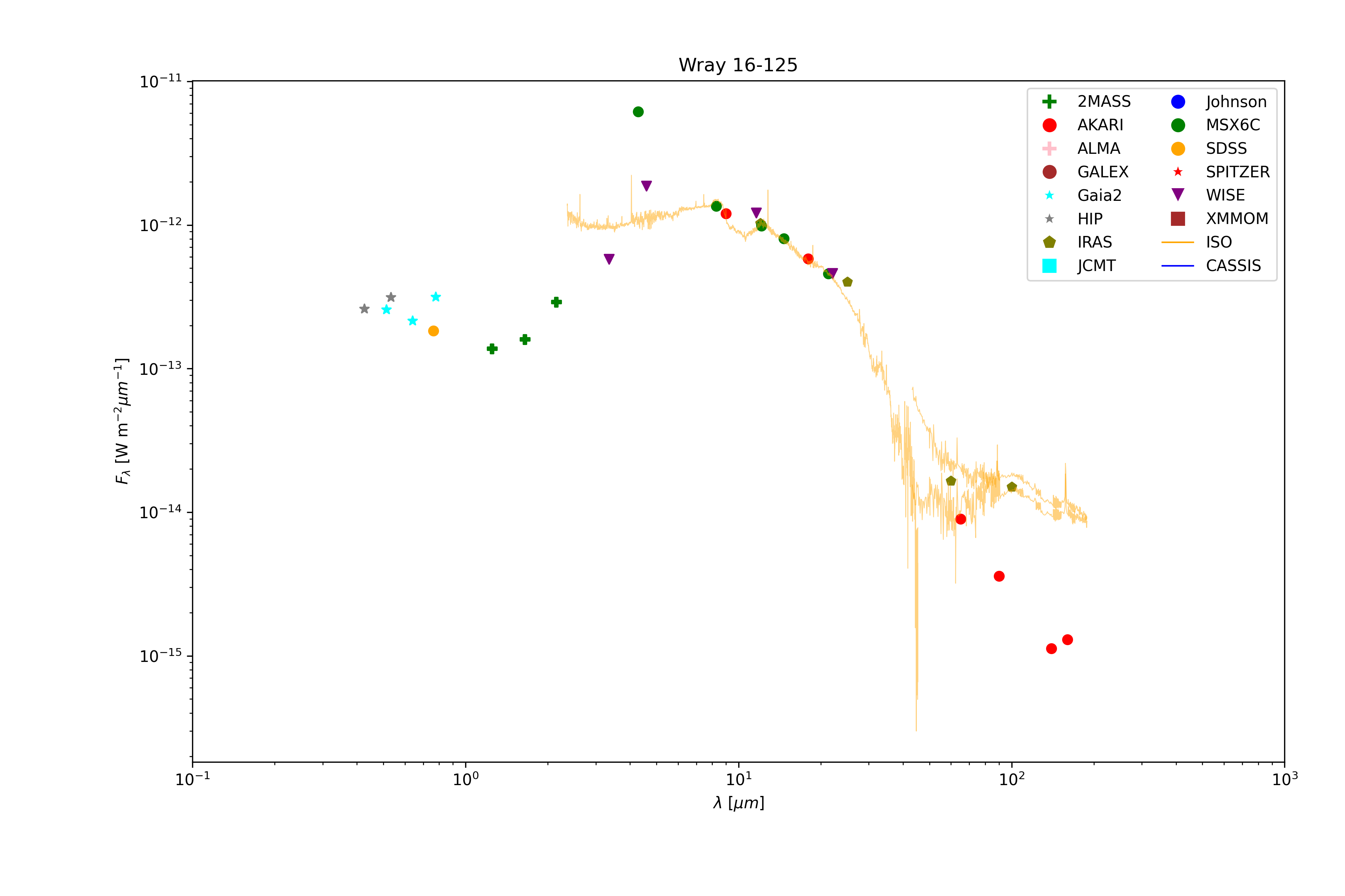 So, for each object, a file with our collected photometry, a file with the SED (corrected and uncorrected for interstellar absorption), a JSON containing all defined and collected data, and an archive with all ISO and Spitzer data and spectra (if available) are available.
