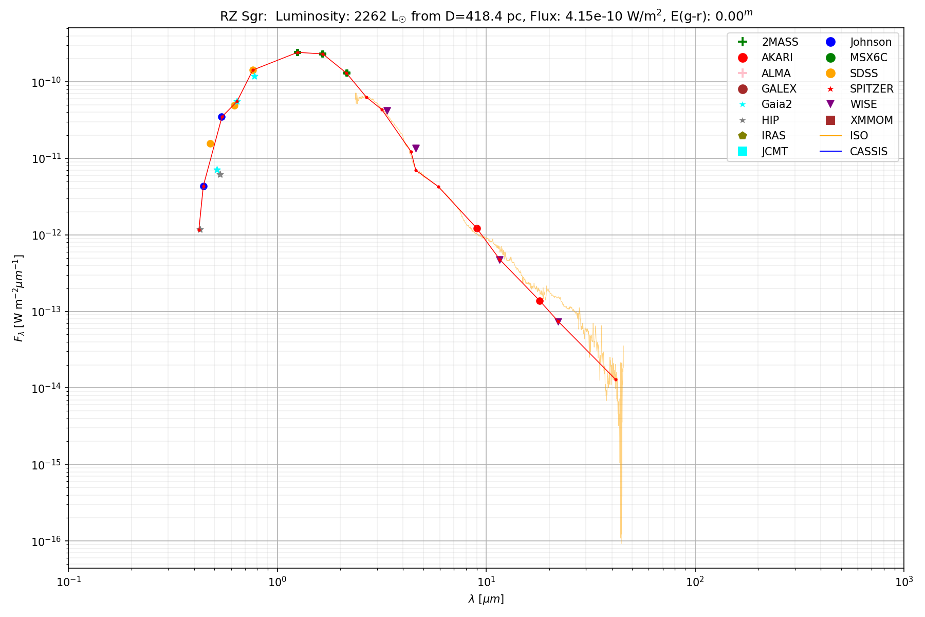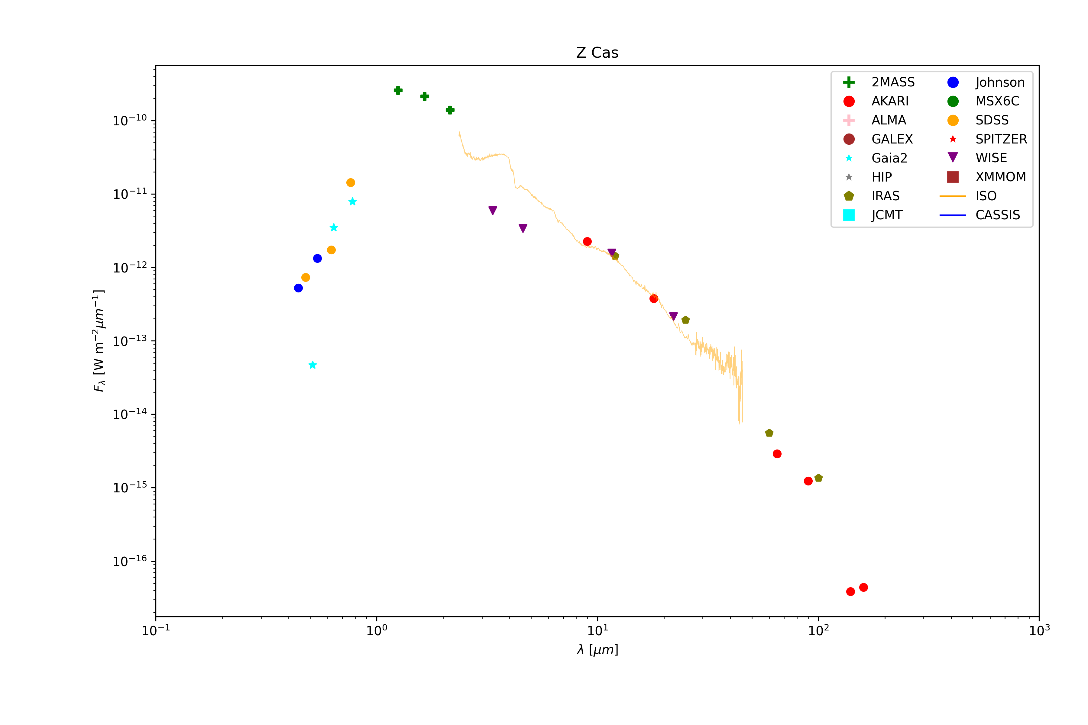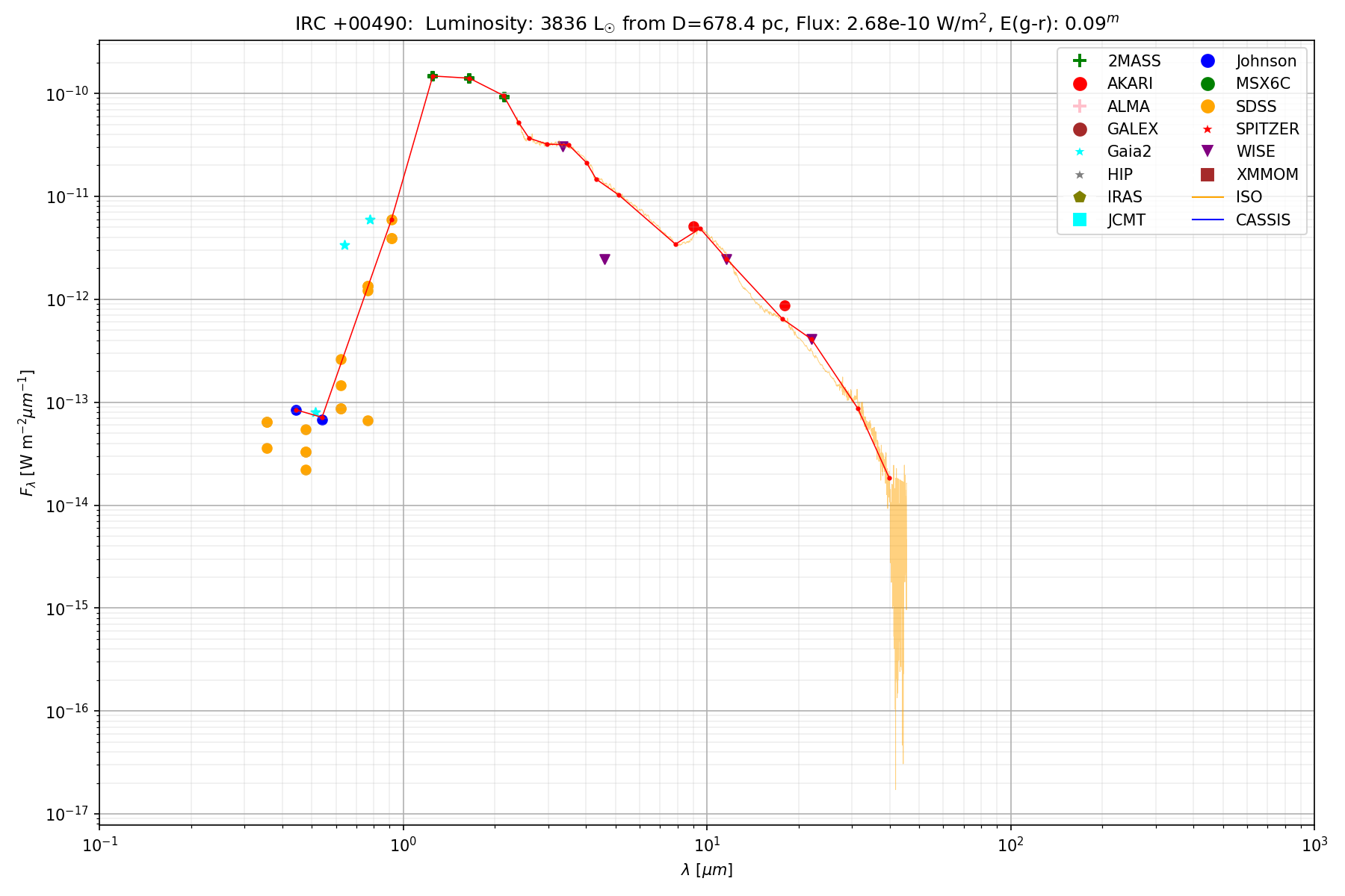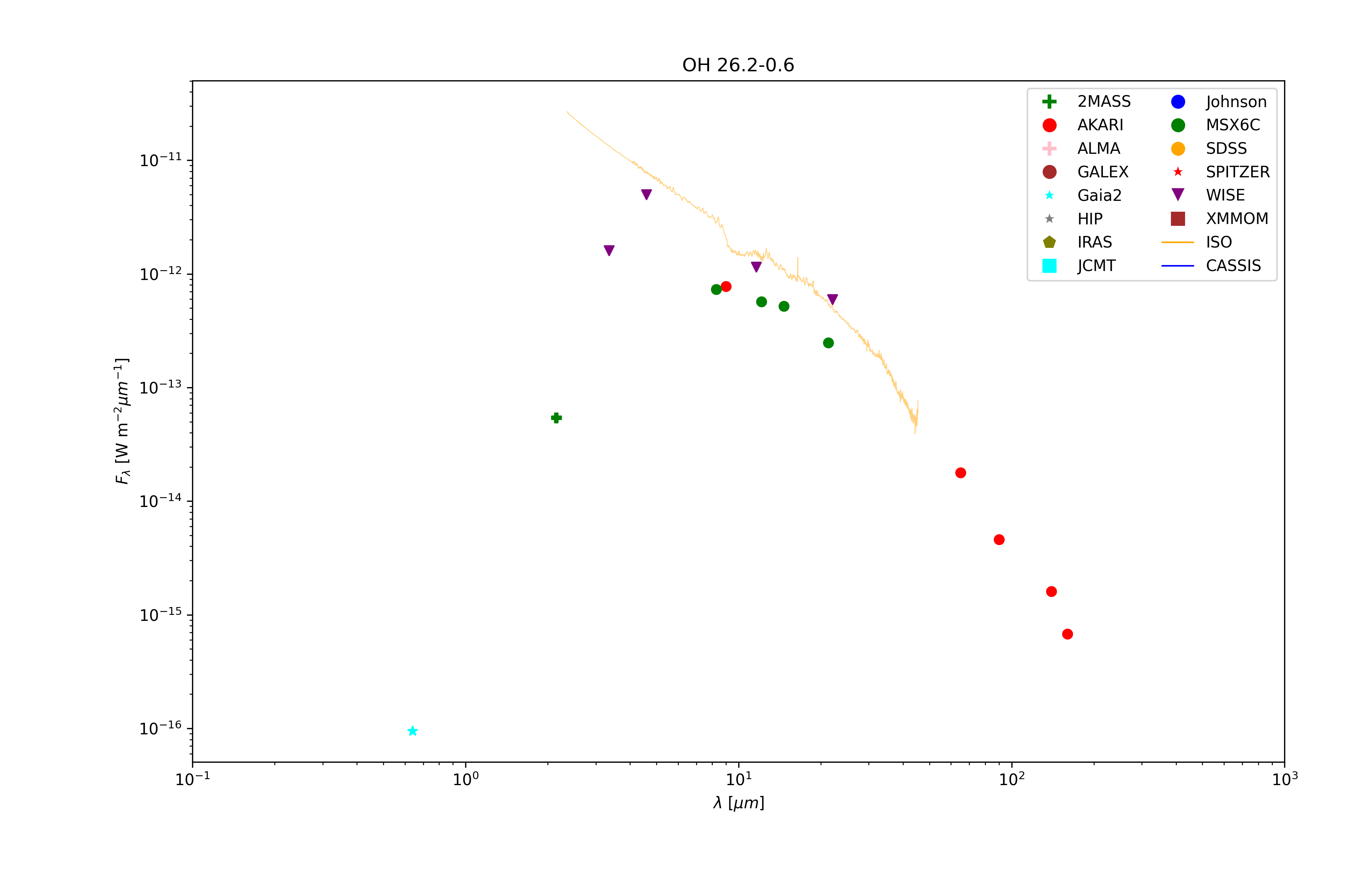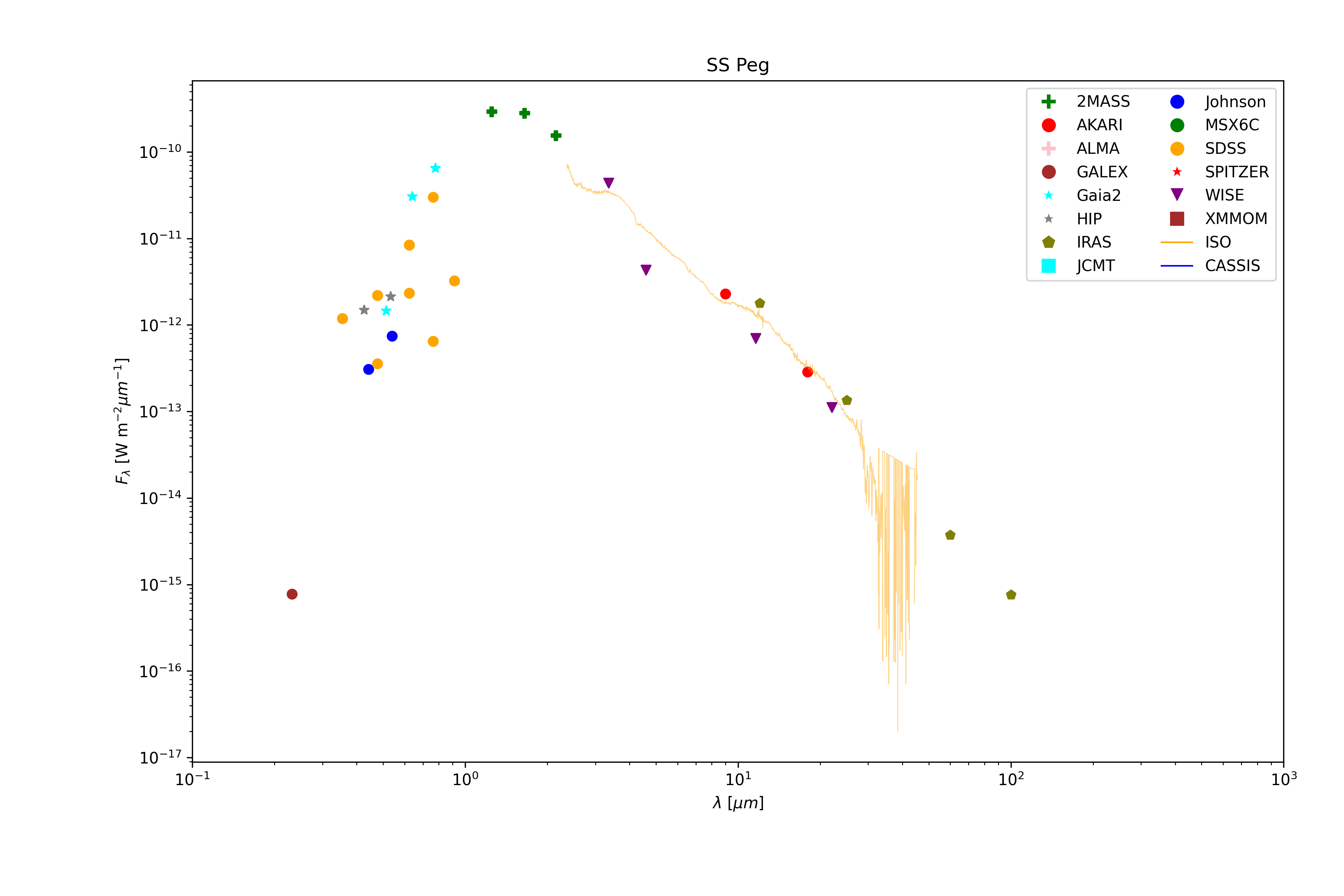 So, for each object, a file with our collected photometry, a file with the SED (corrected and uncorrected for interstellar absorption), a JSON containing all defined and collected data, and an archive with all ISO and Spitzer data and spectra (if available) are available.
