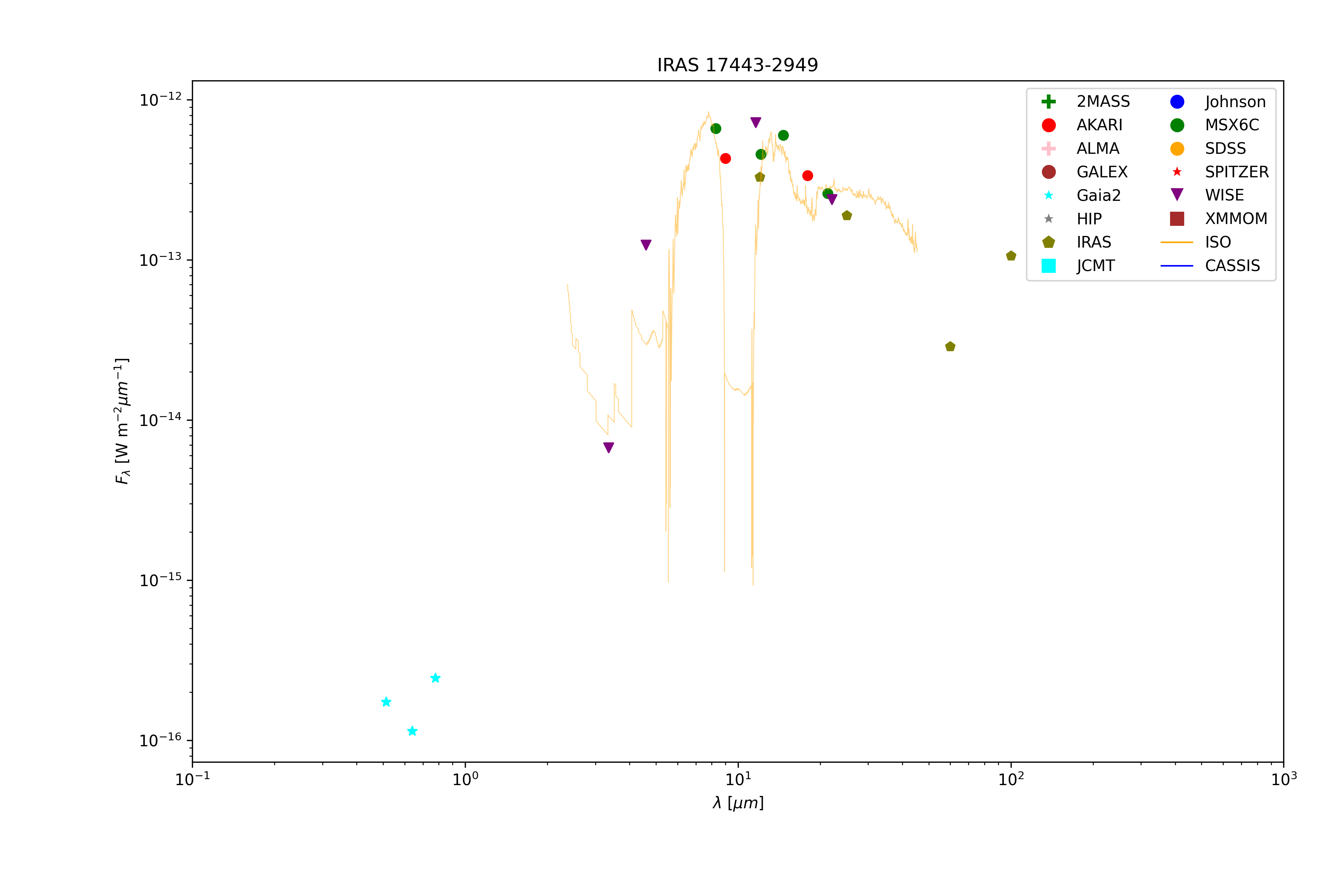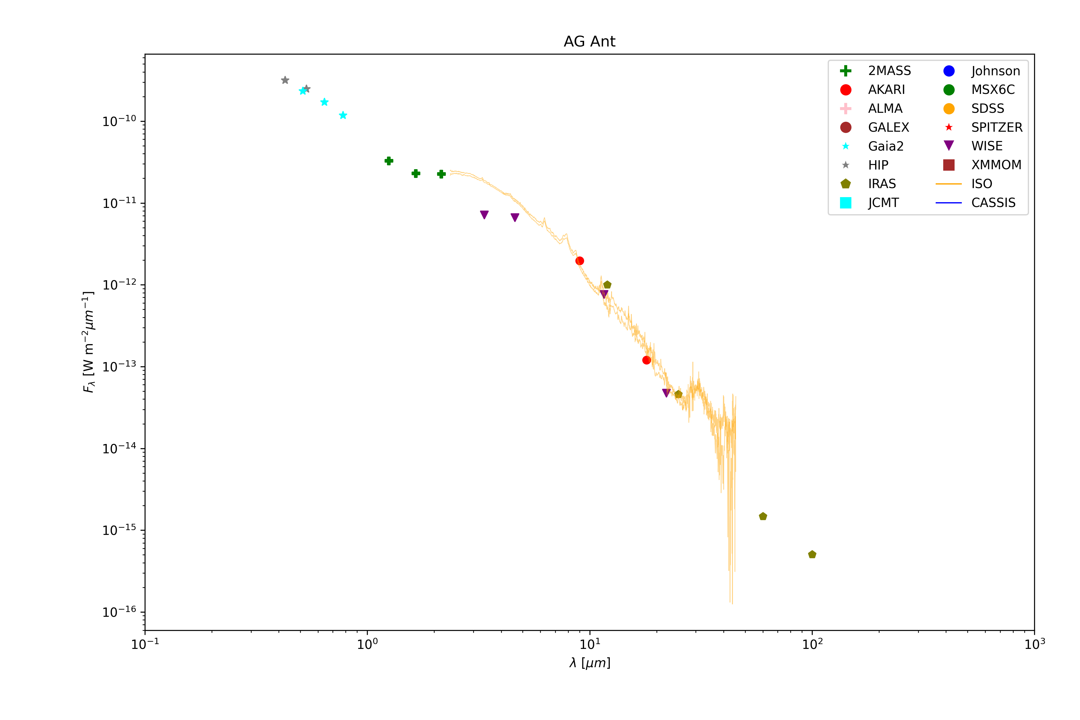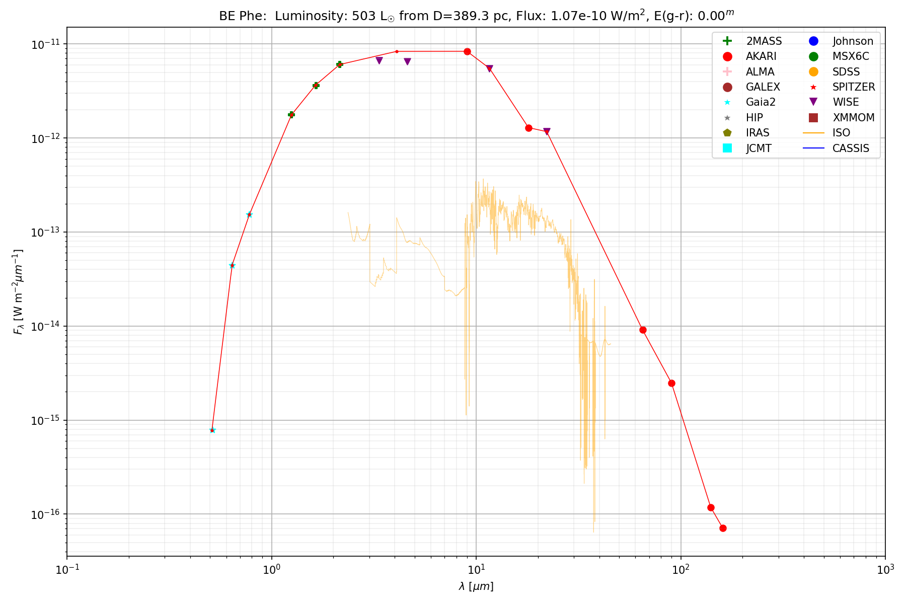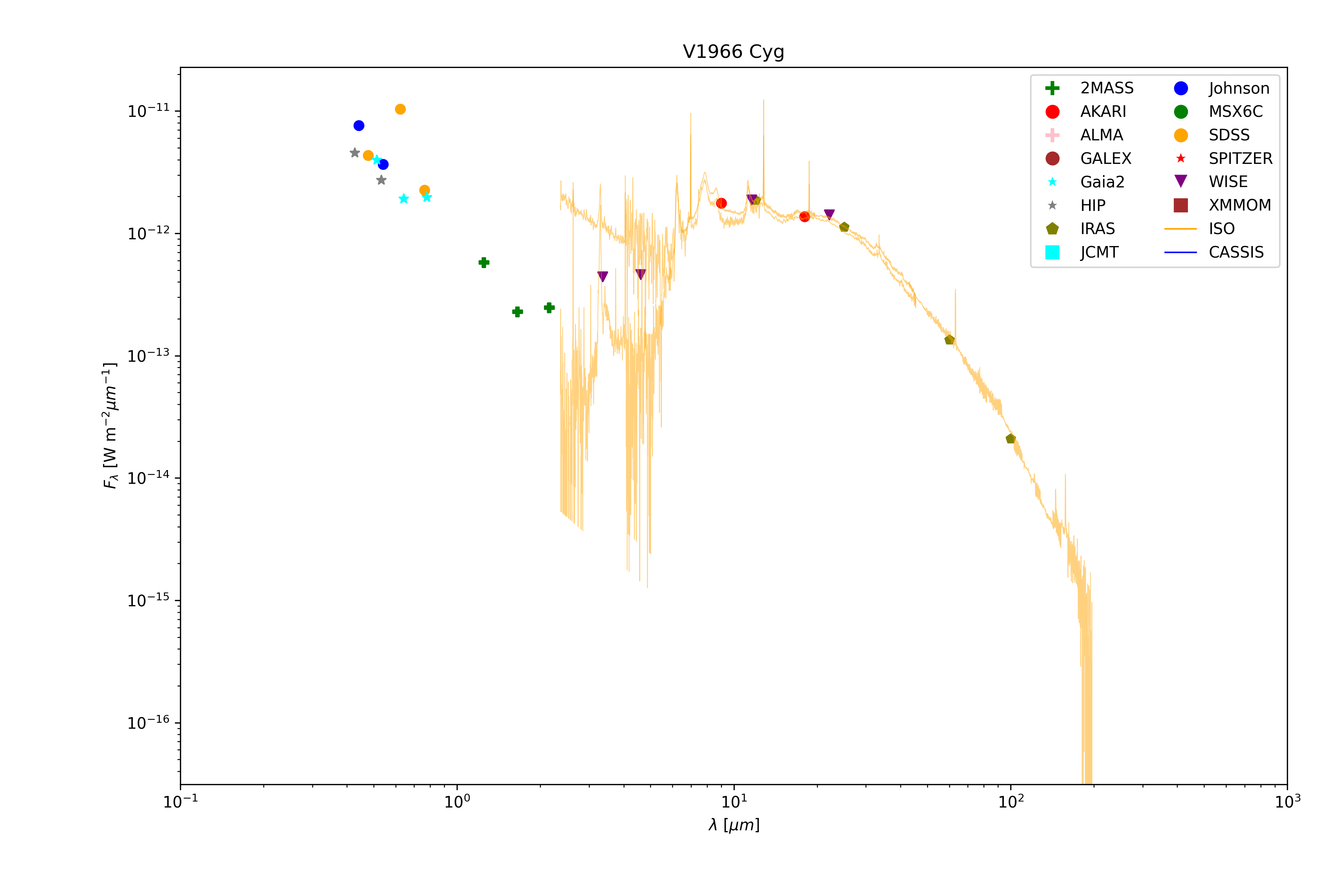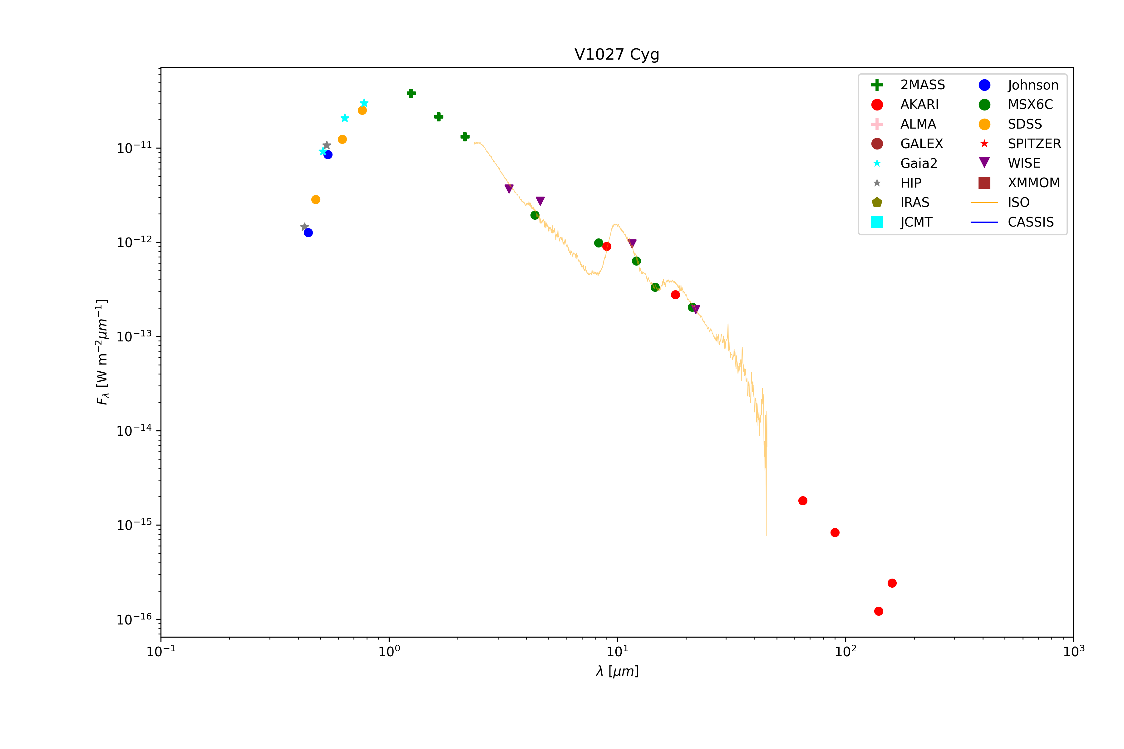 So, for each object, a file with our collected photometry, a file with the SED (corrected and uncorrected for interstellar absorption), a JSON containing all defined and collected data, and an archive with all ISO and Spitzer data and spectra (if available) are available.