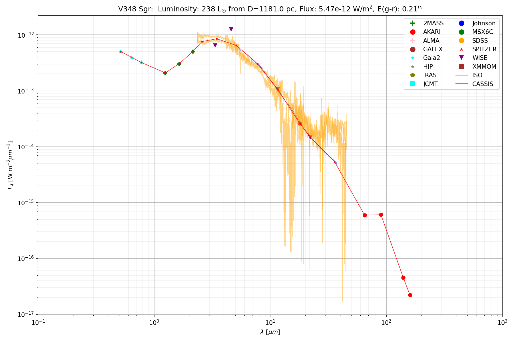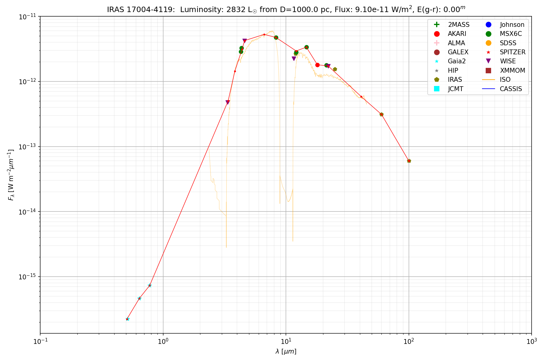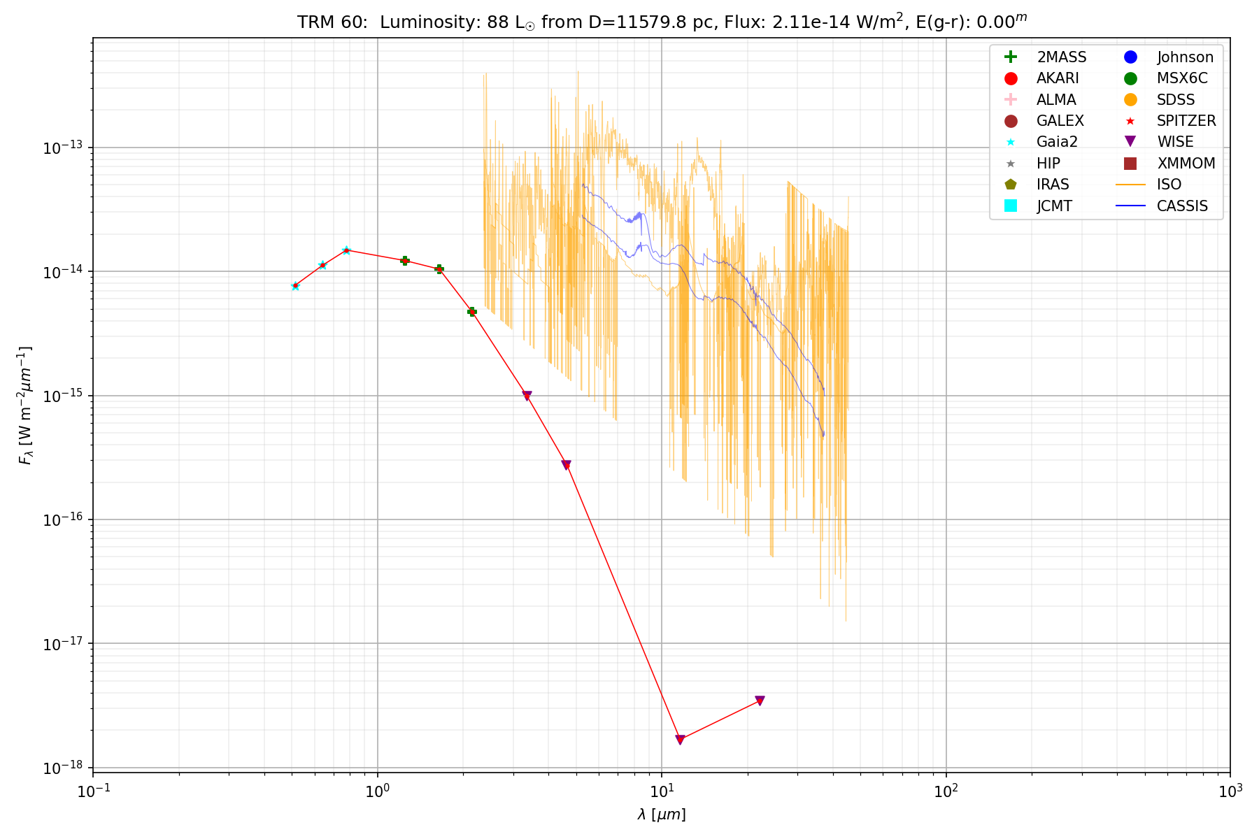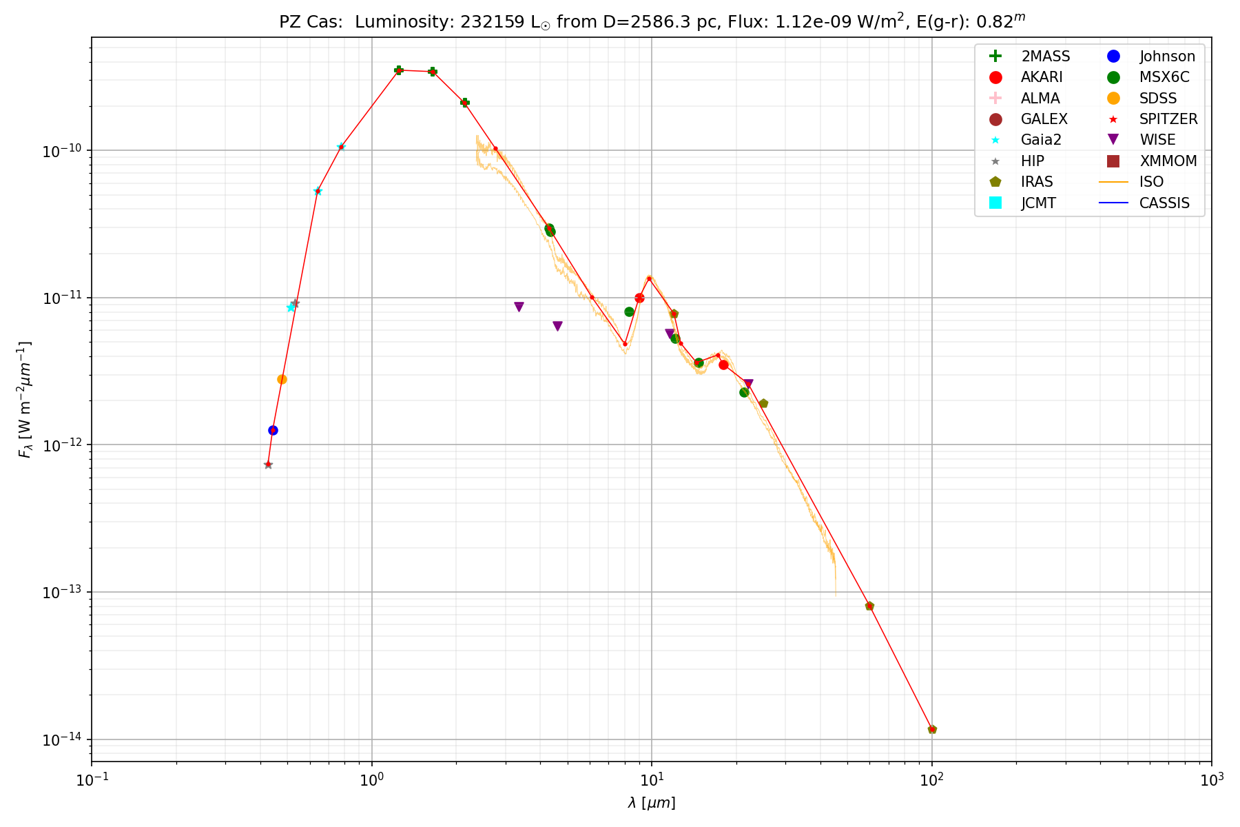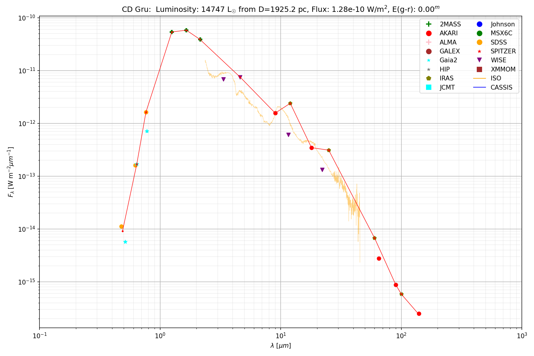 So, for each object, a file with our collected photometry, a file with the SED (corrected and uncorrected for interstellar absorption), a JSON containing all defined and collected data, and an archive with all ISO and Spitzer data and spectra (if available) are available.