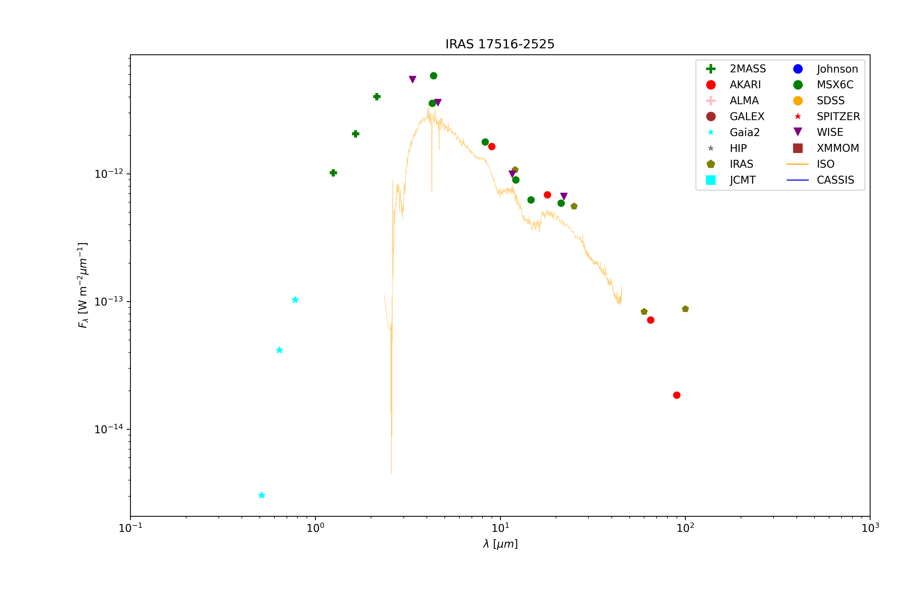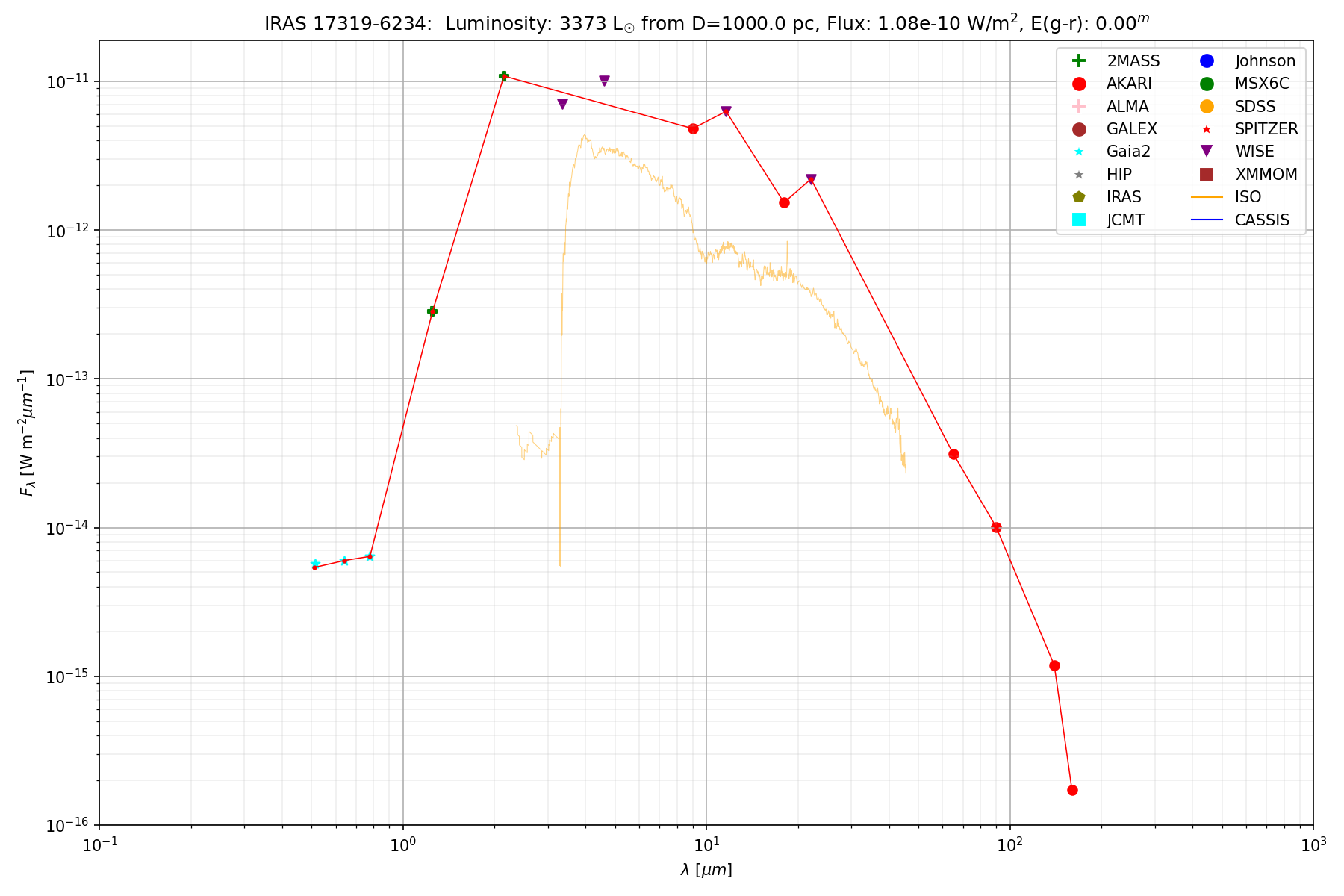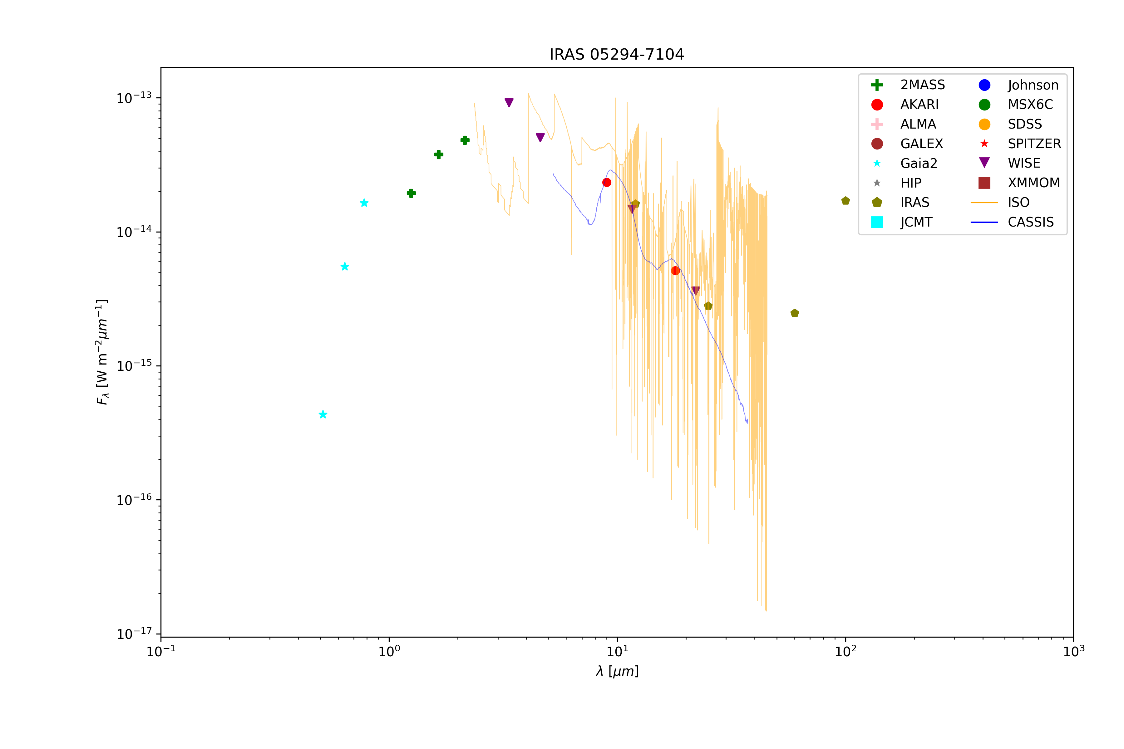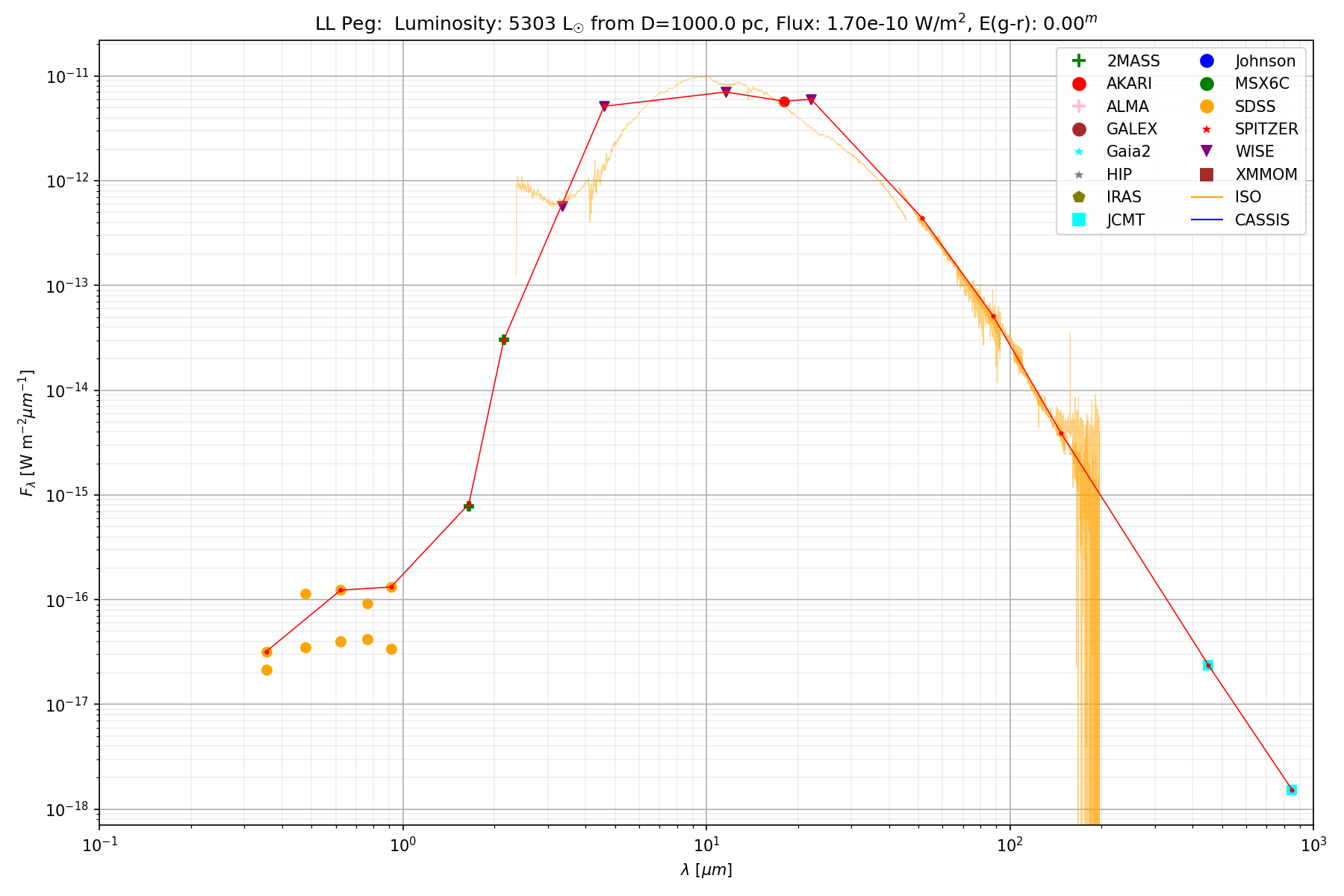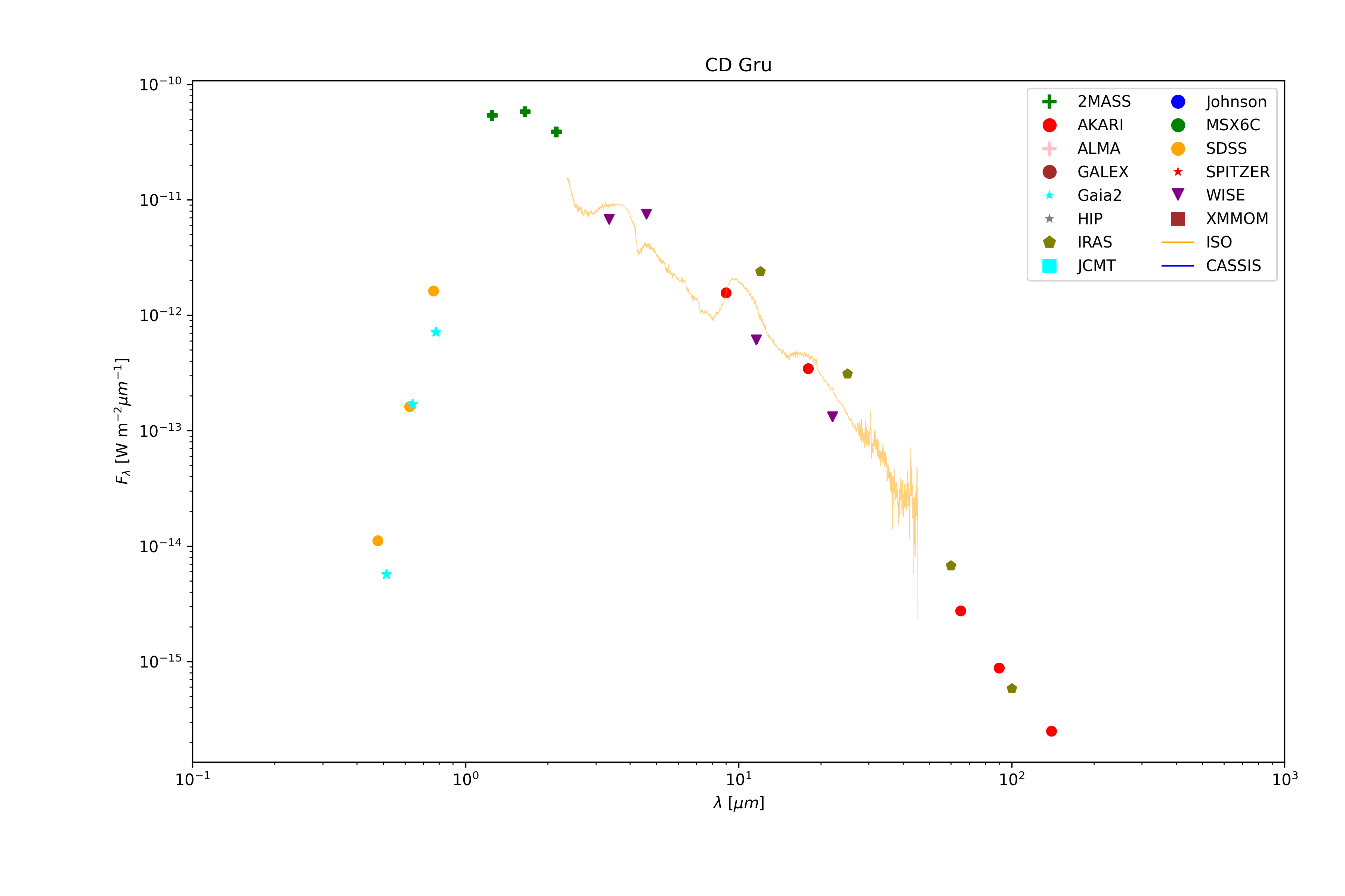 So, for each object, a file with our collected photometry, a file with the SED (corrected and uncorrected for interstellar absorption), a JSON containing all defined and collected data, and an archive with all ISO and Spitzer data and spectra (if available) are available.