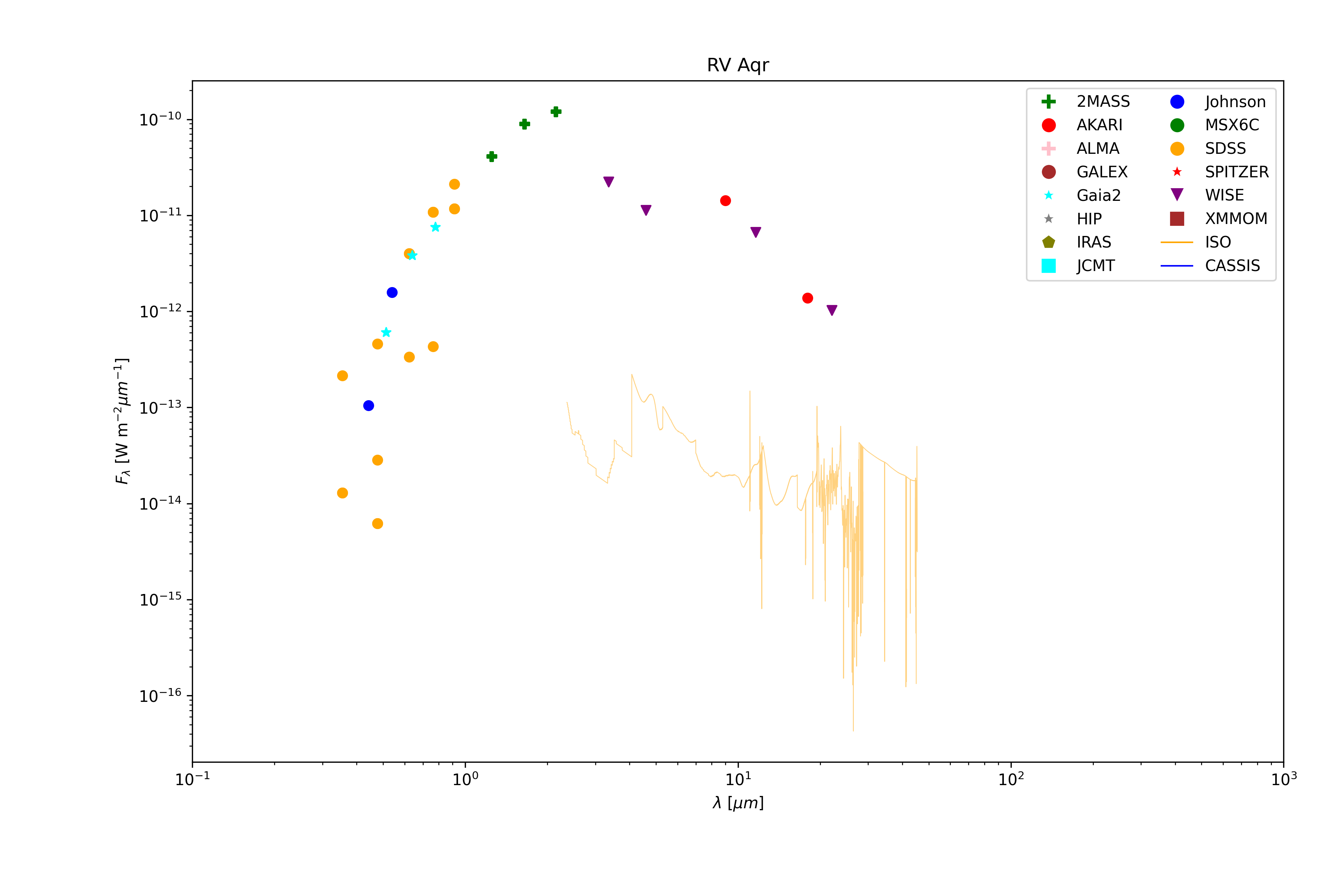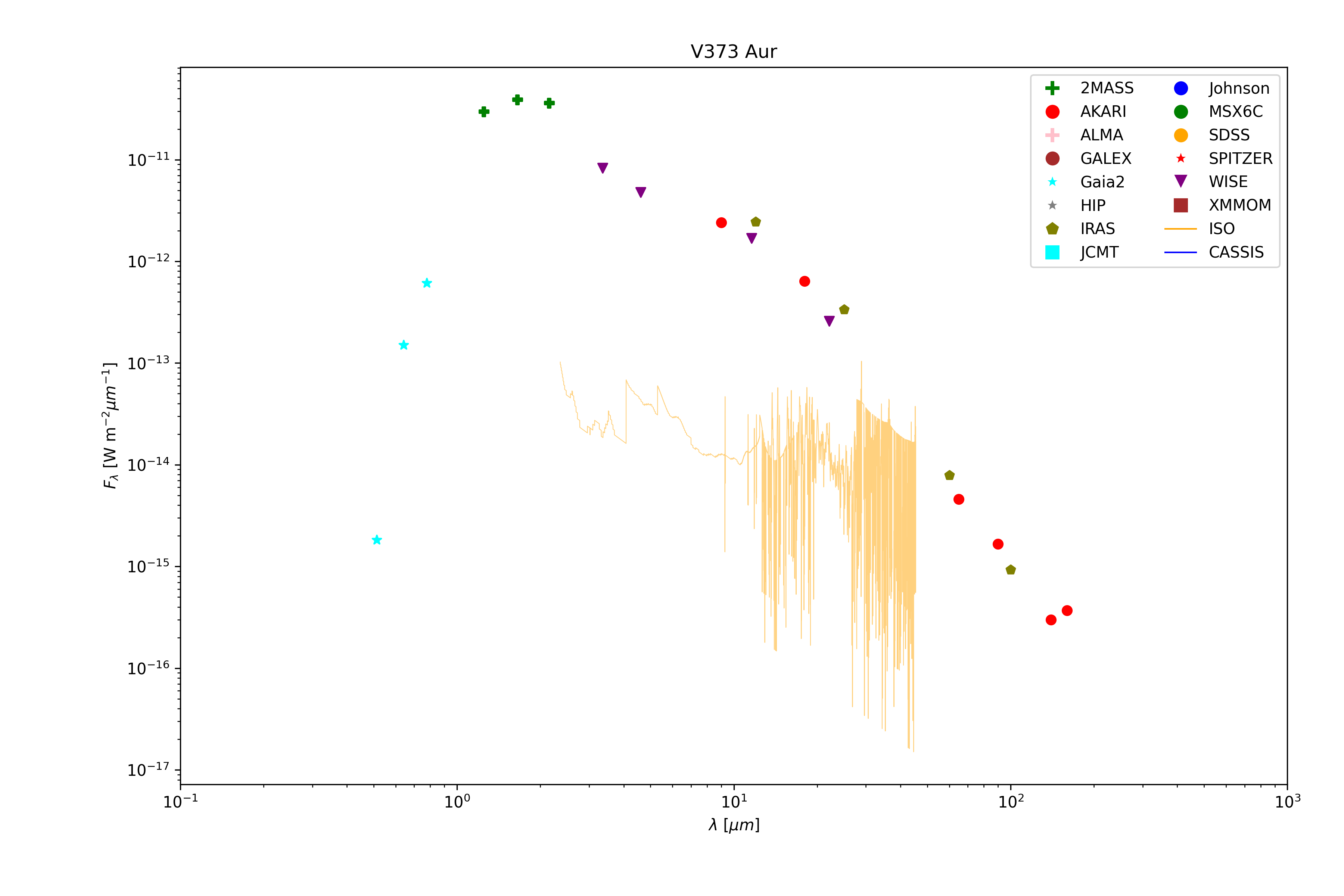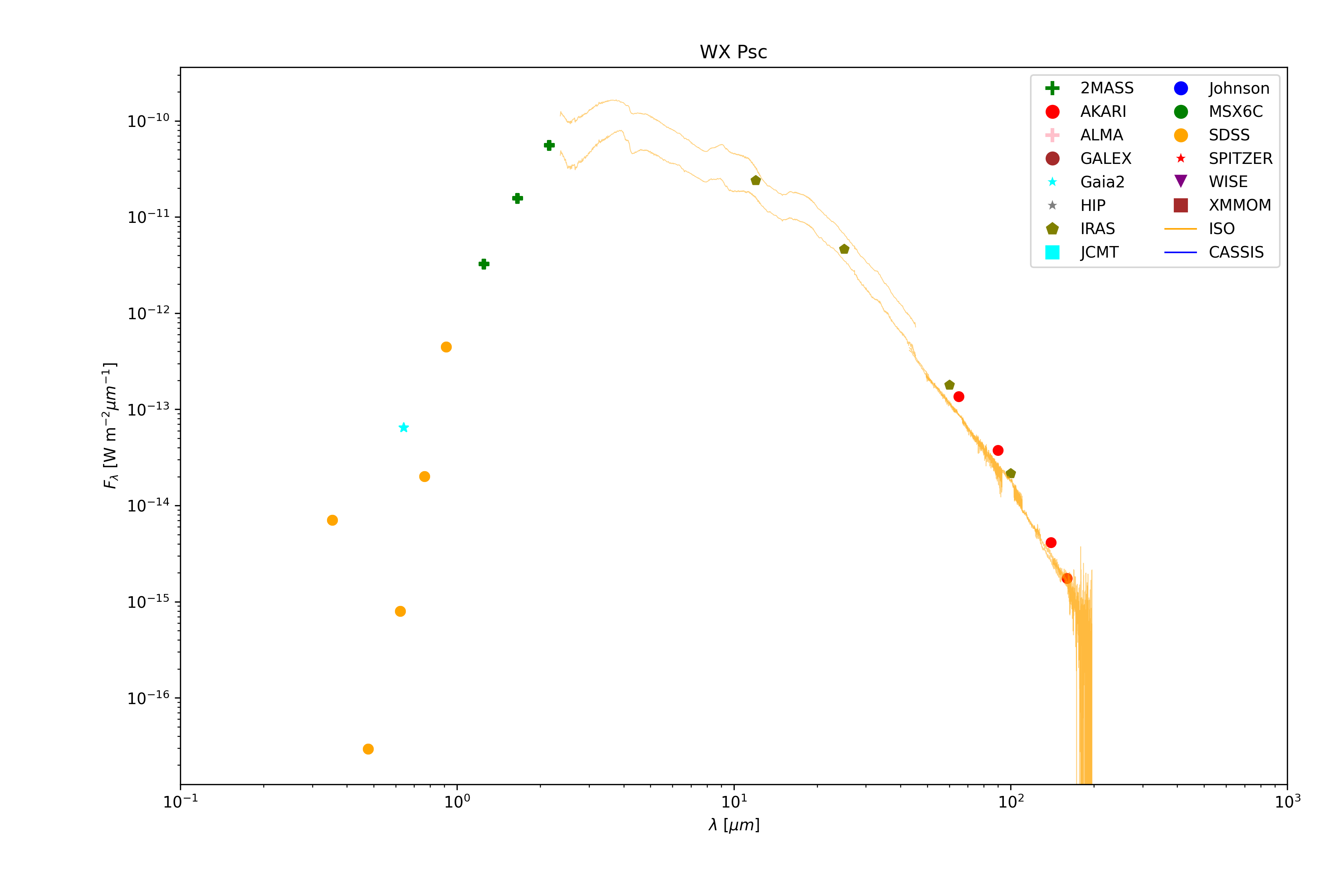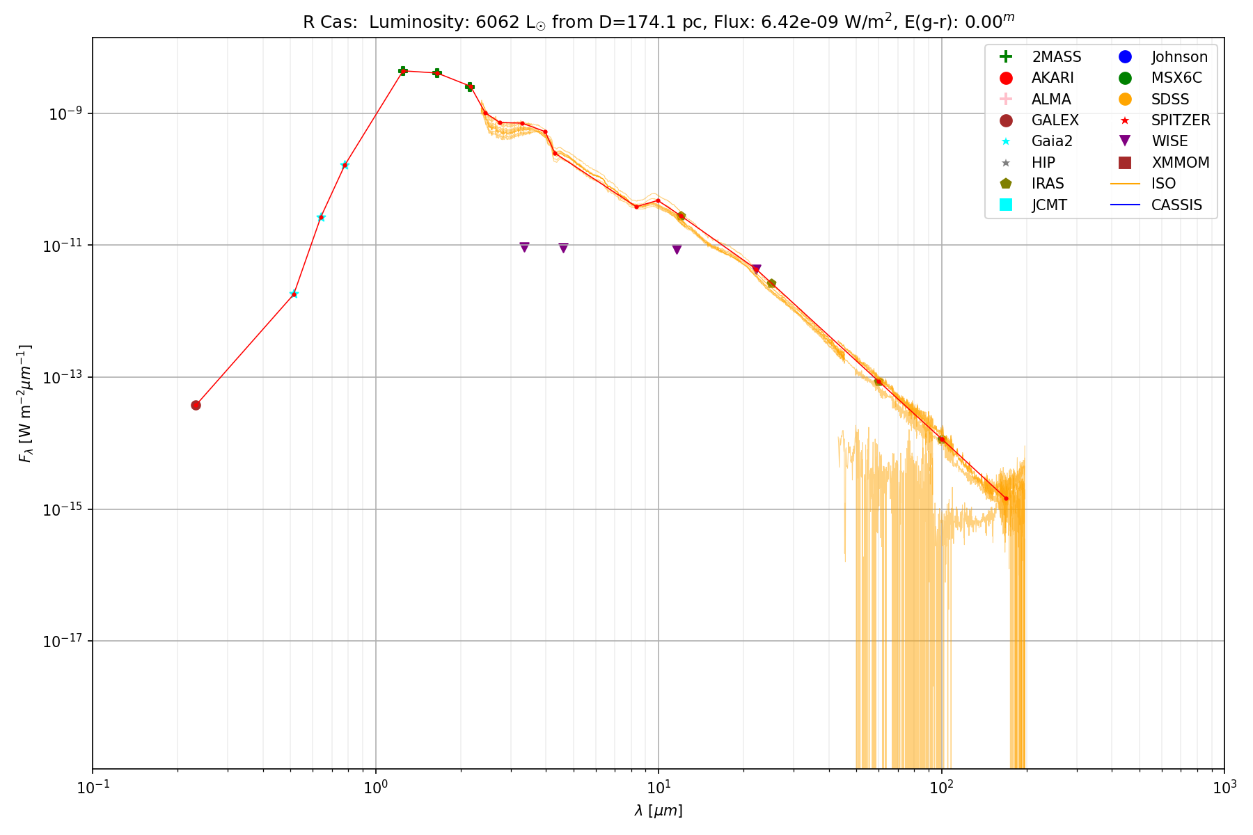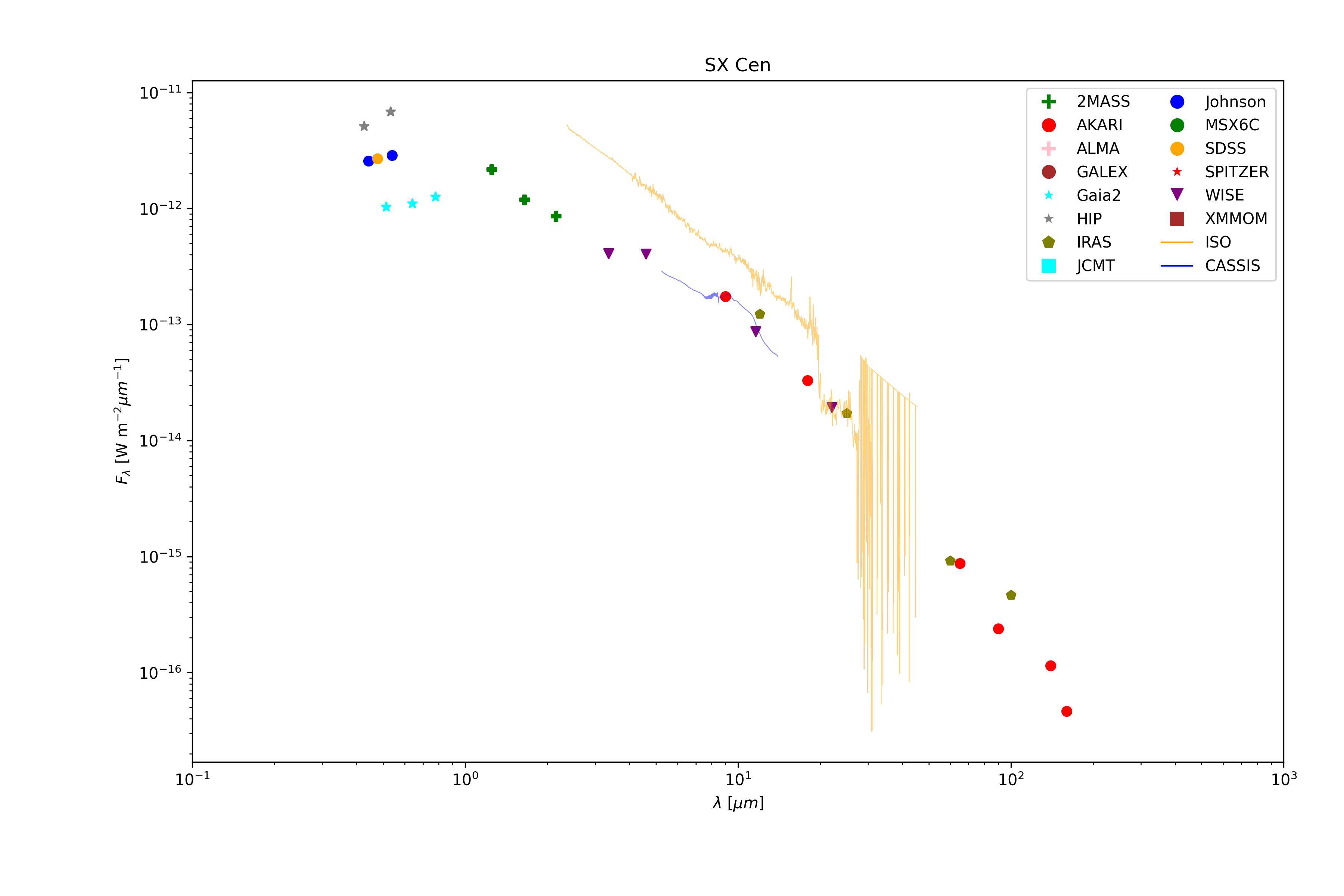 So, for each object, a file with our collected photometry, a file with the SED (corrected and uncorrected for interstellar absorption), a JSON containing all defined and collected data, and an archive with all ISO and Spitzer data and spectra (if available) are available.