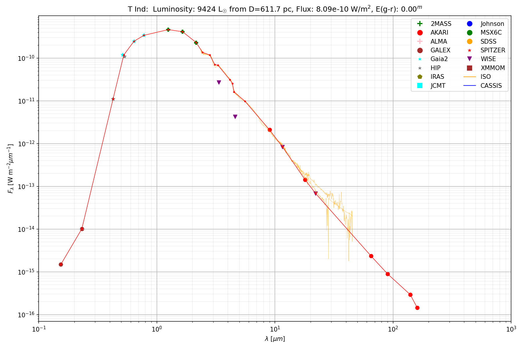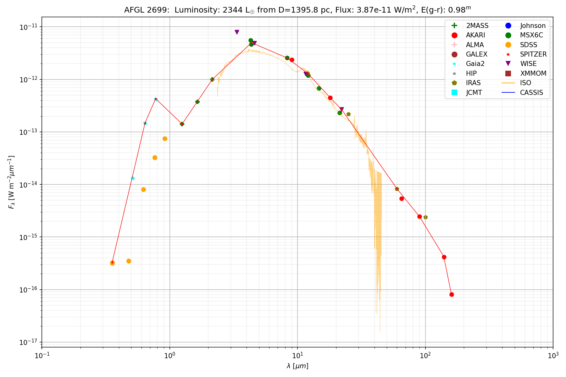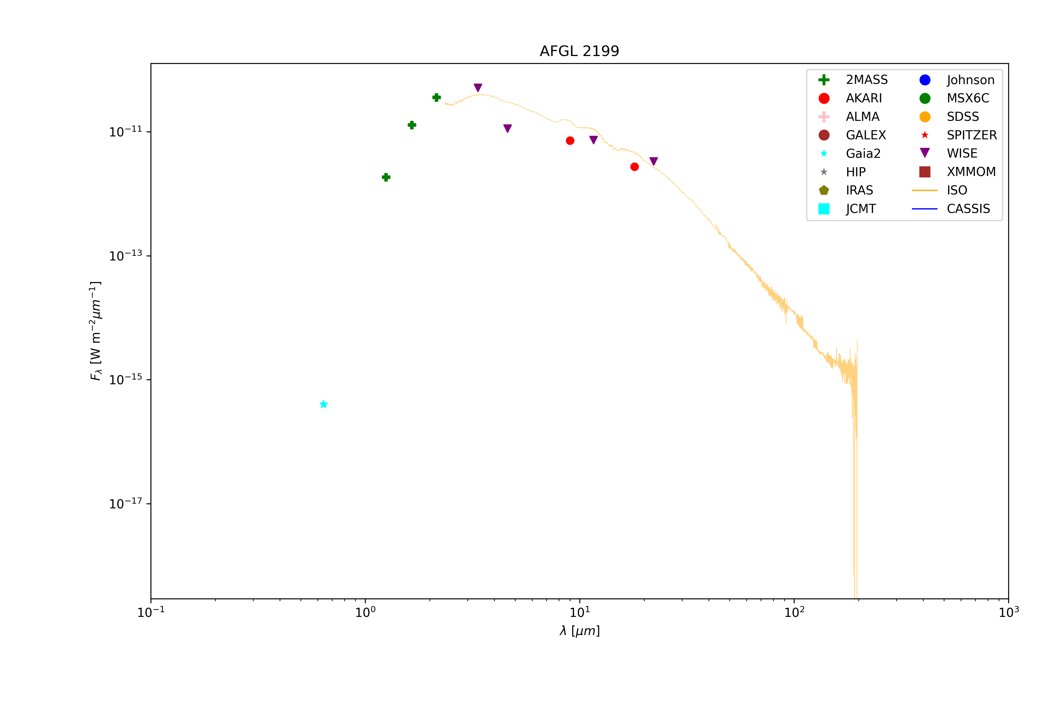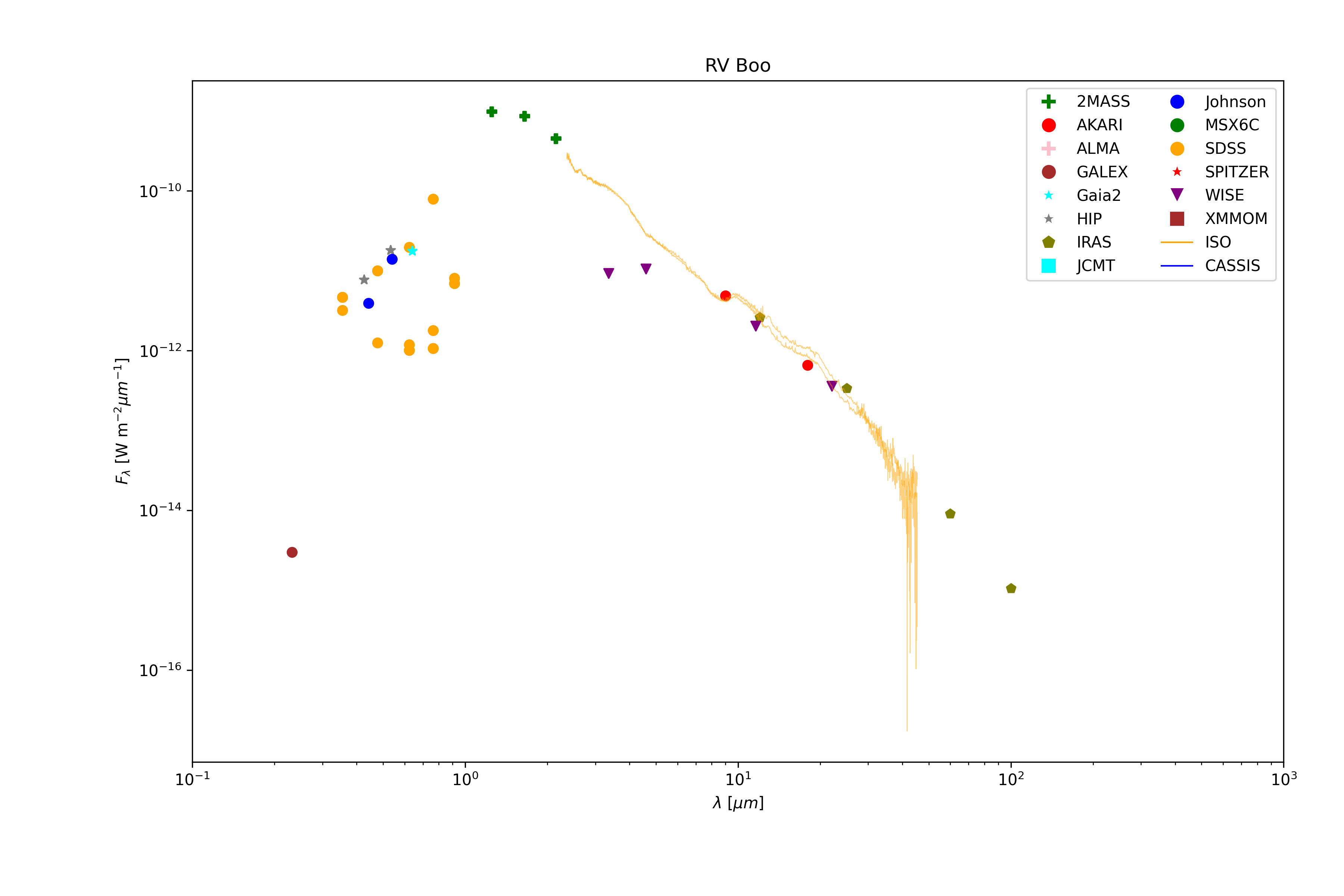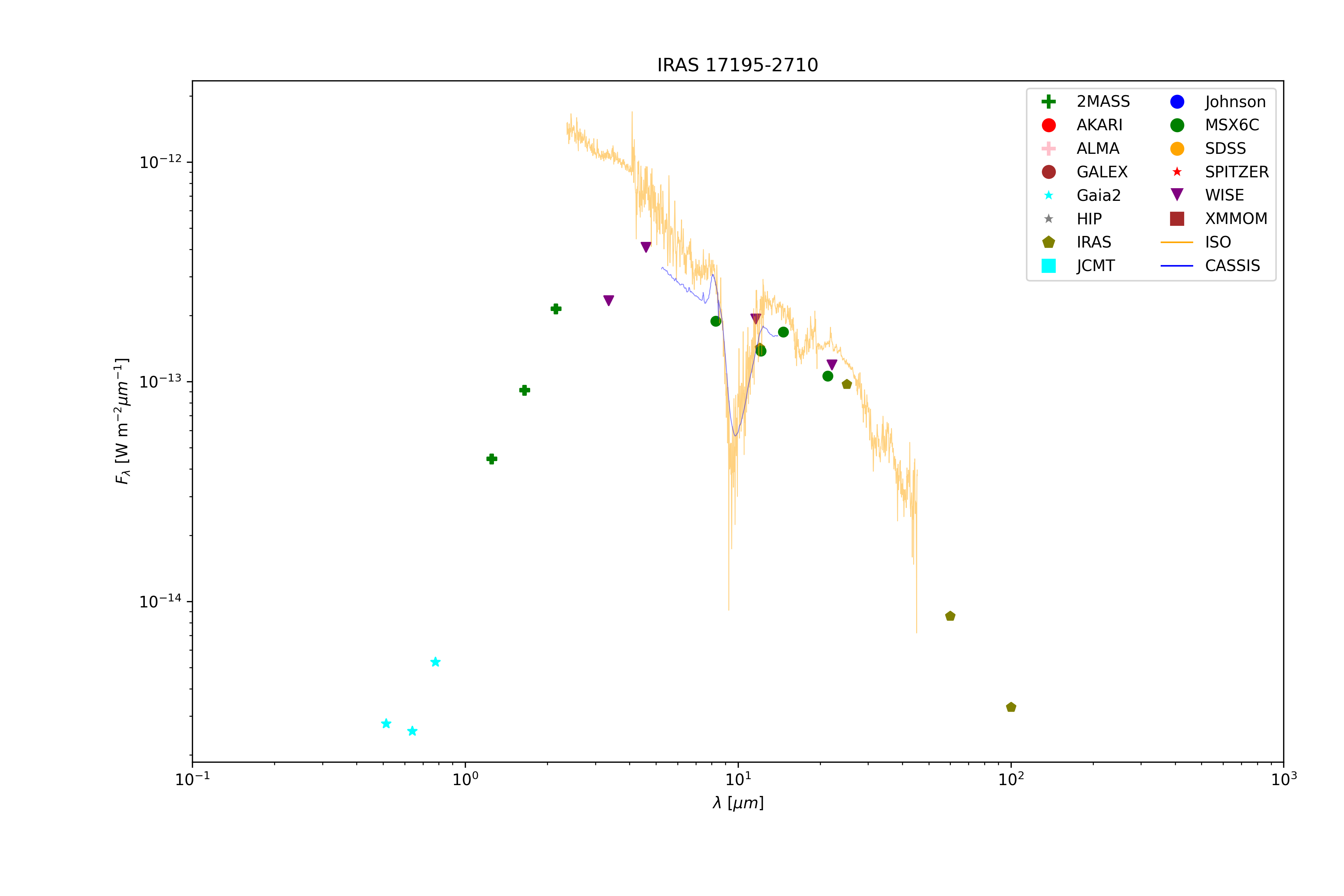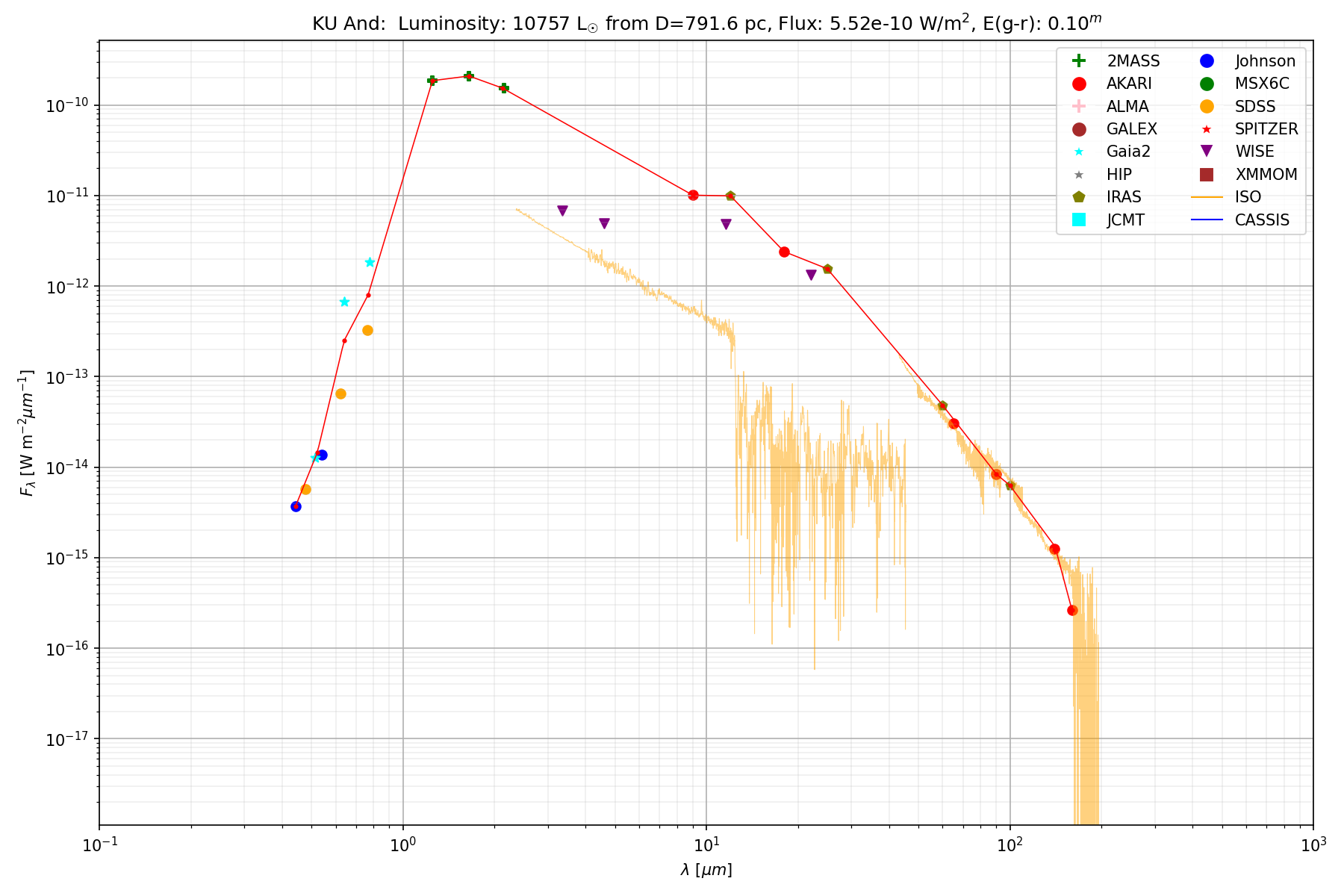 So, for each object, a file with our collected photometry, a file with the SED (corrected and uncorrected for interstellar absorption), a JSON containing all defined and collected data, and an archive with all ISO and Spitzer data and spectra (if available) are available.