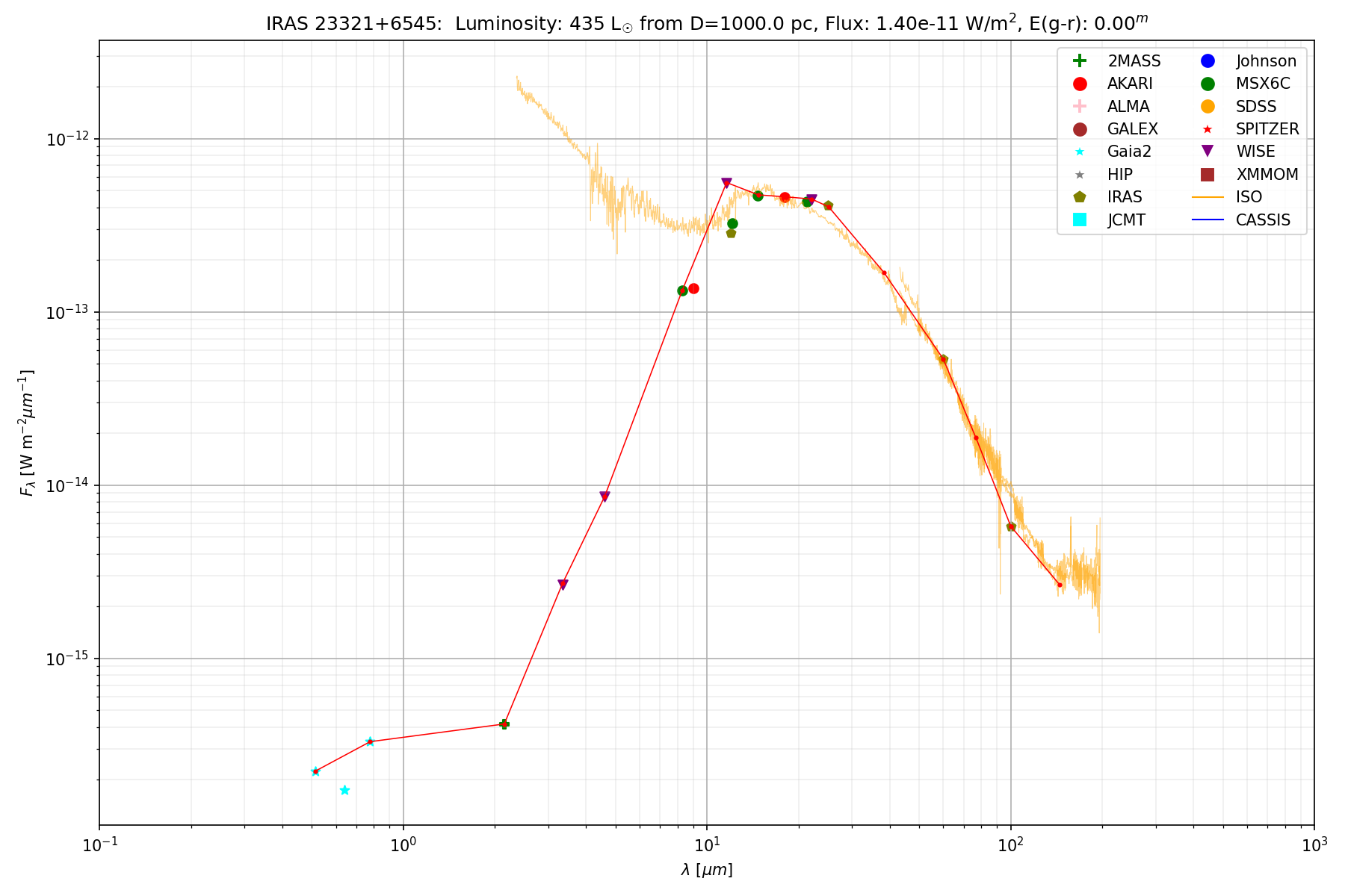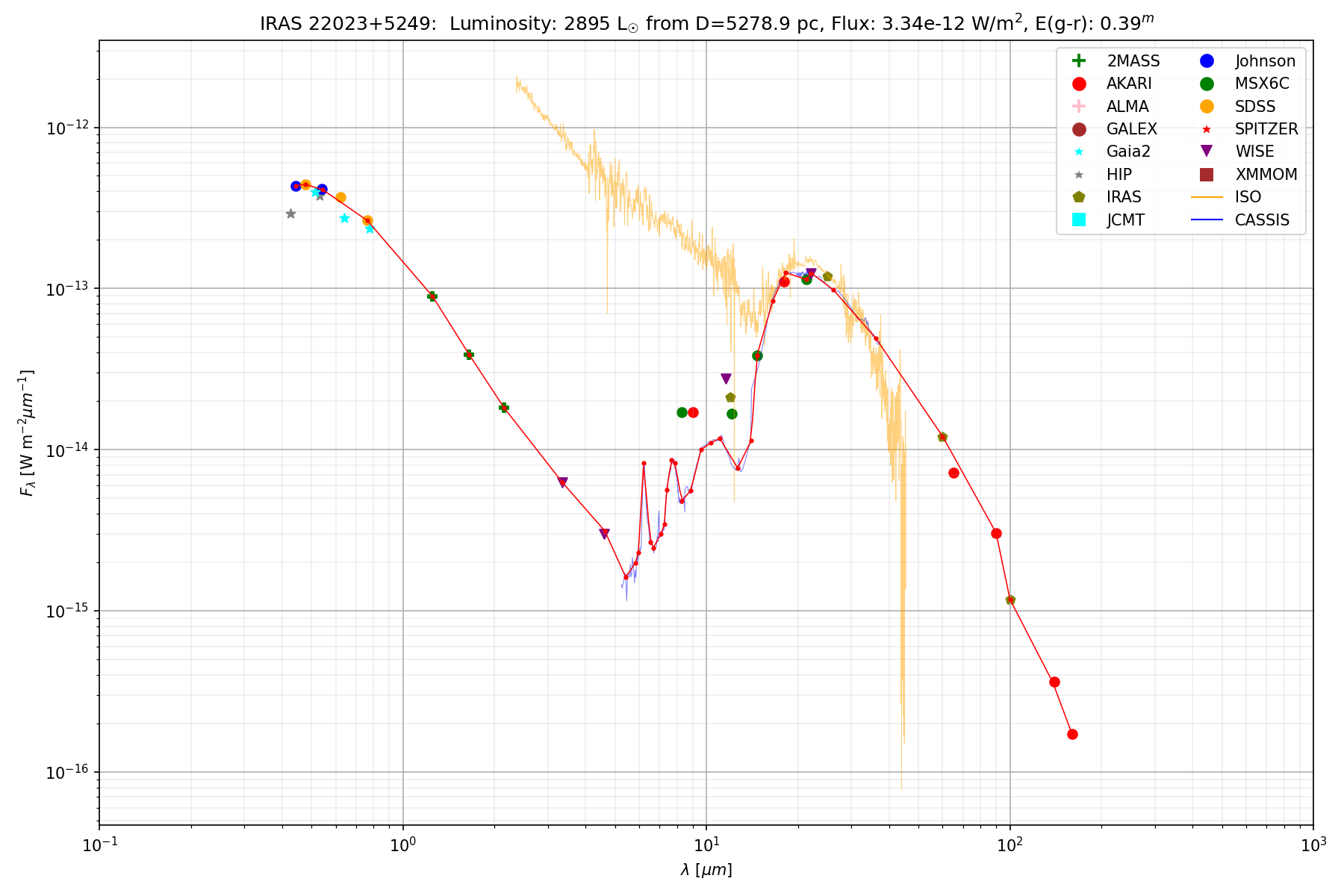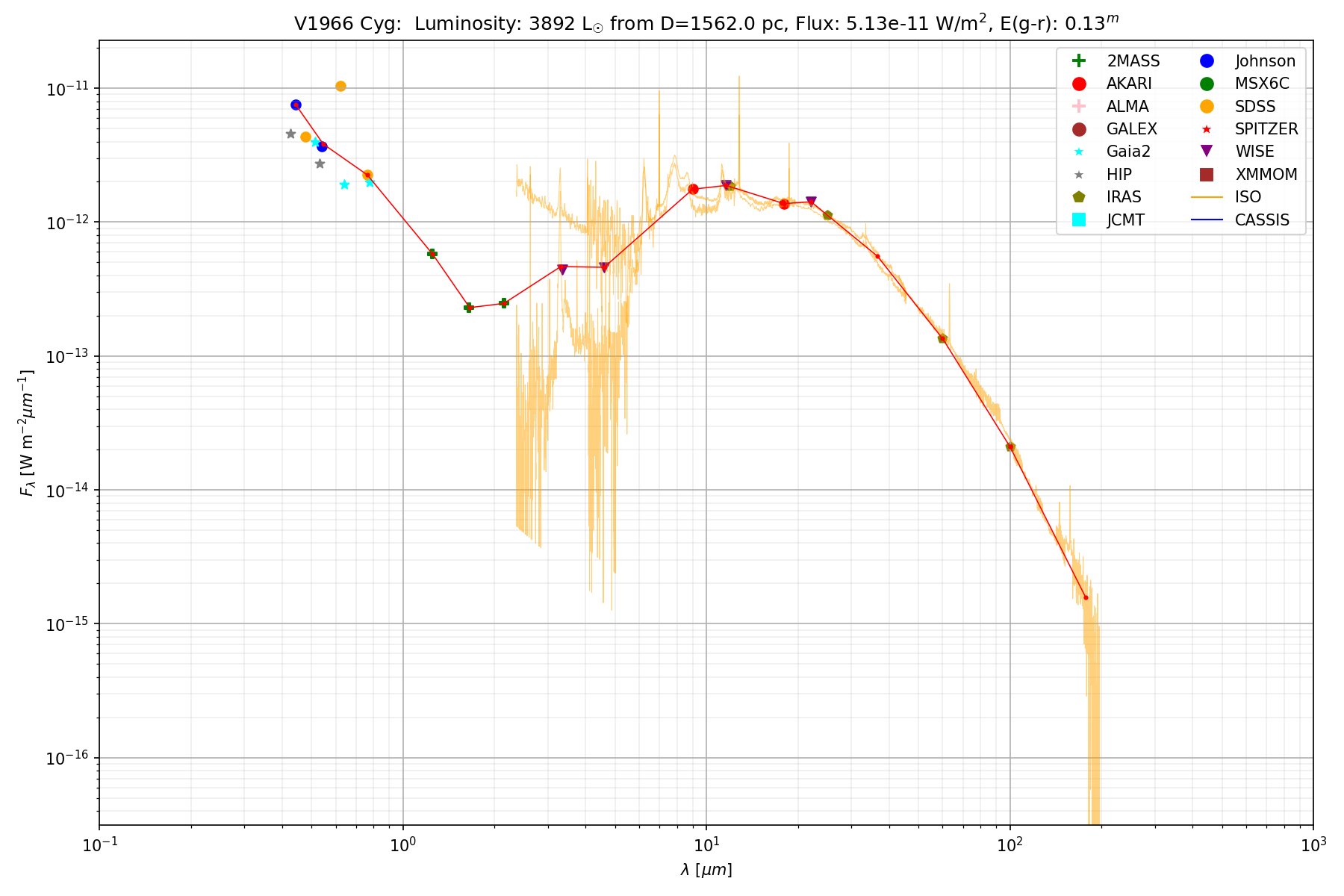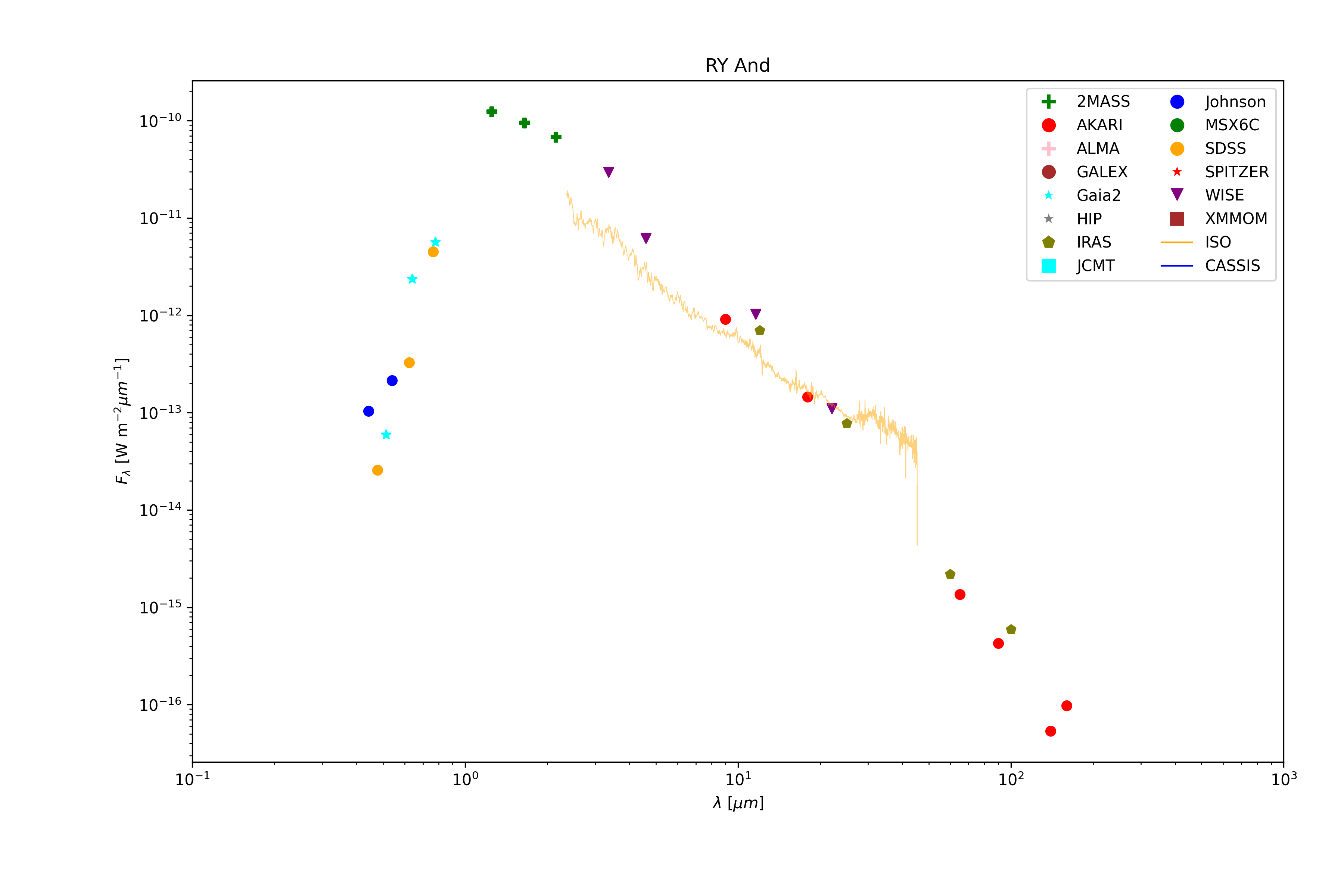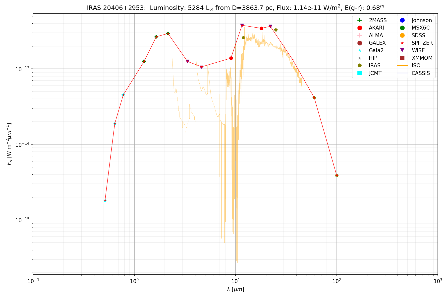 So, for each object, a file with our collected photometry, a file with the SED (corrected and uncorrected for interstellar absorption), a JSON containing all defined and collected data, and an archive with all ISO and Spitzer data and spectra (if available) are available.