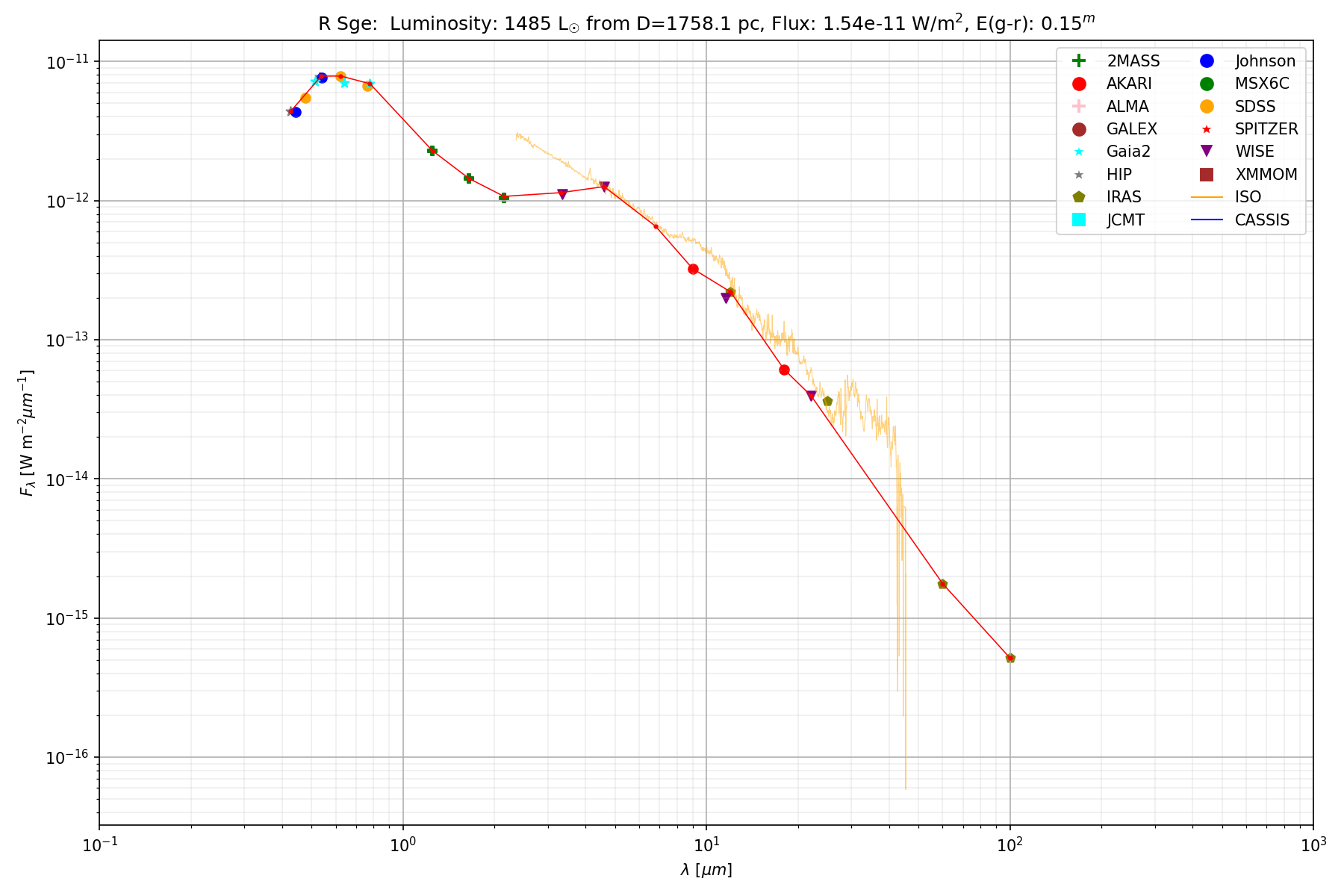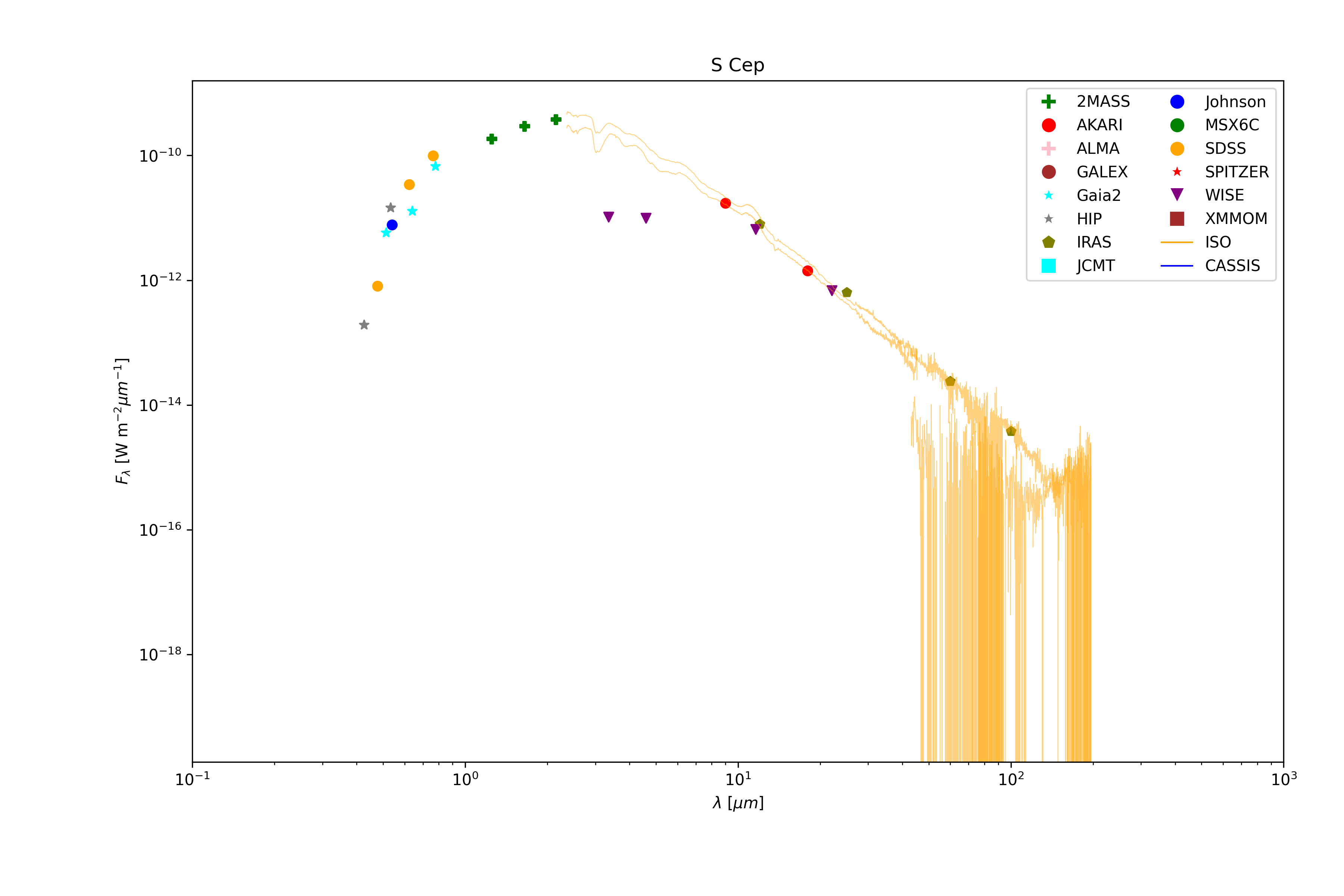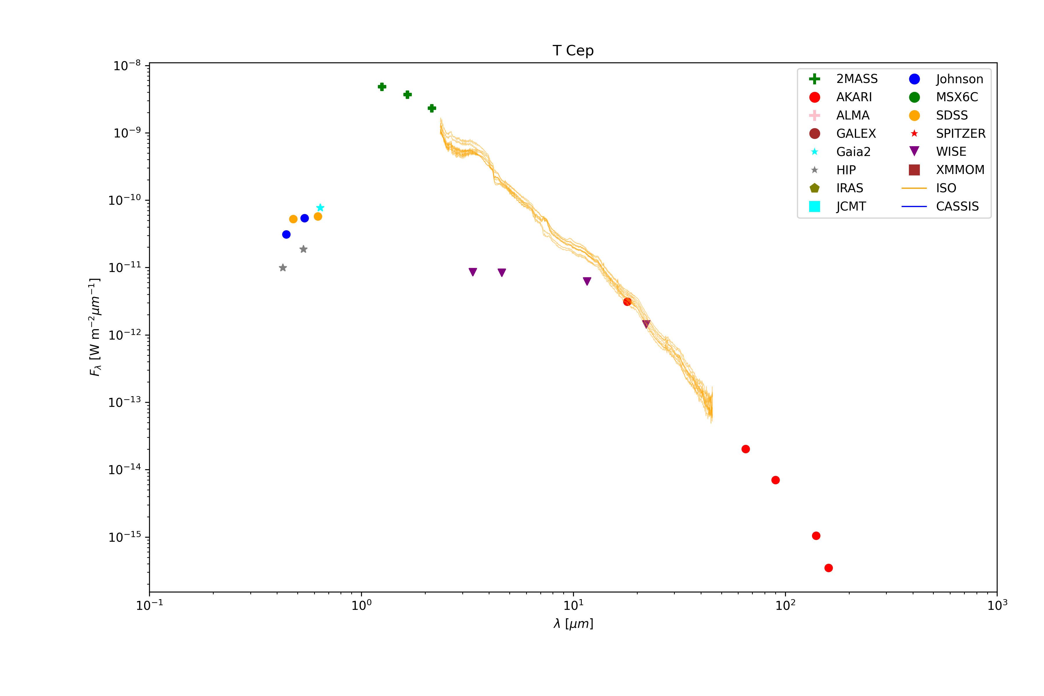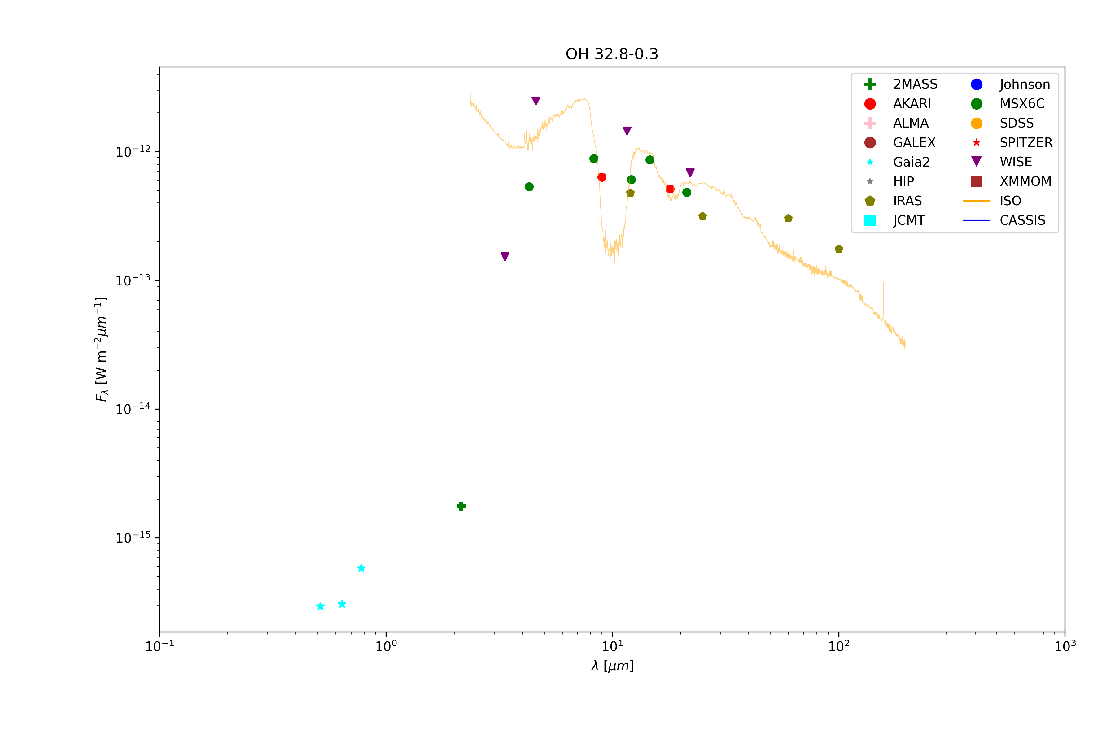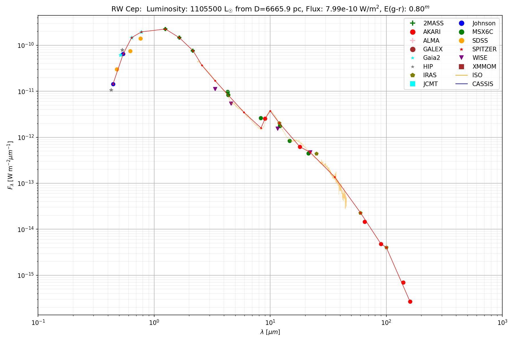 So, for each object, a file with our collected photometry, a file with the SED (corrected and uncorrected for interstellar absorption), a JSON containing all defined and collected data, and an archive with all ISO and Spitzer data and spectra (if available) are available.