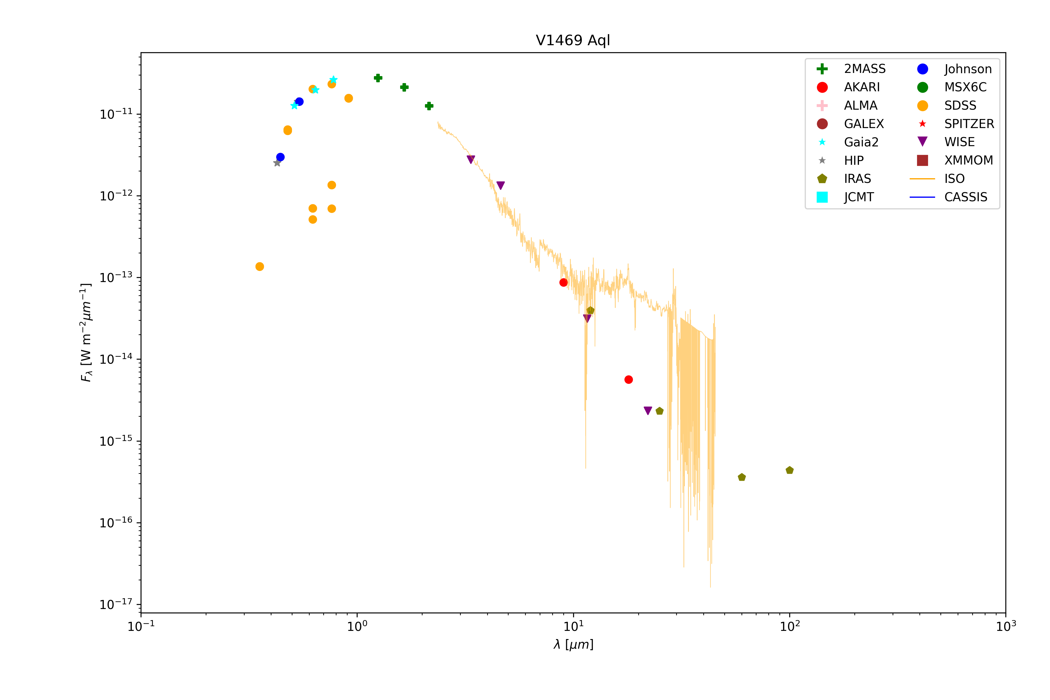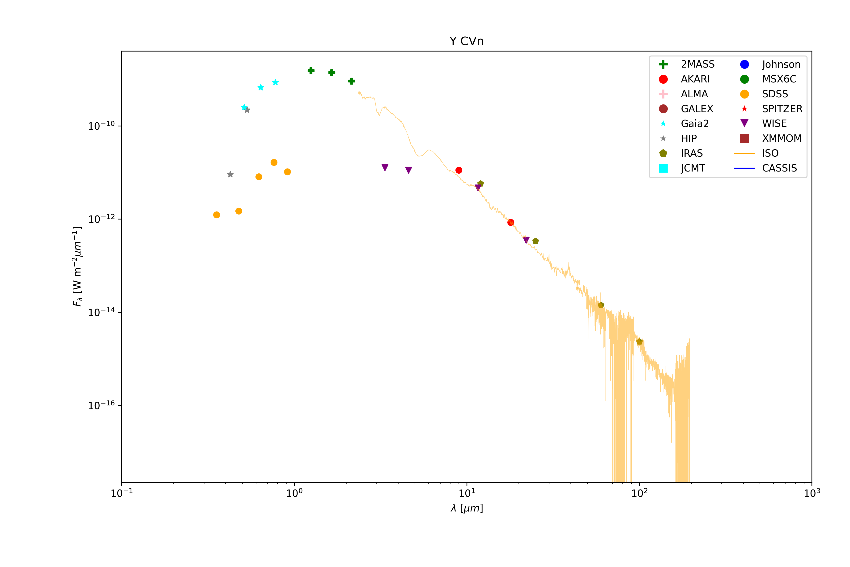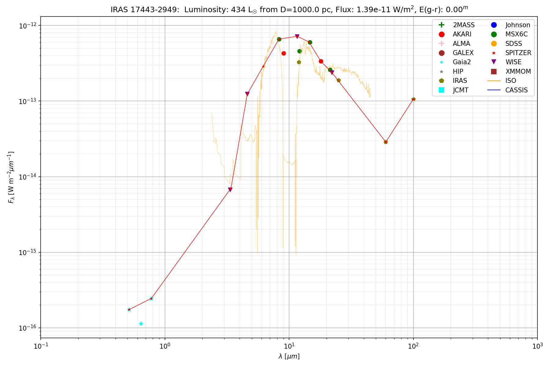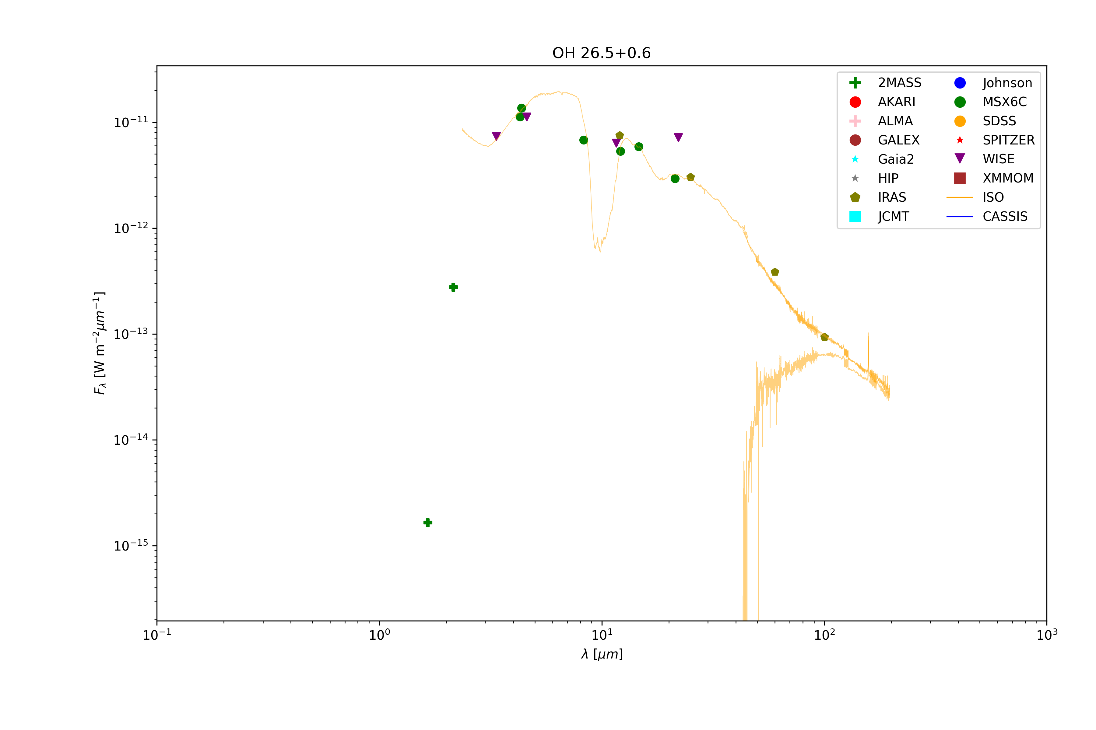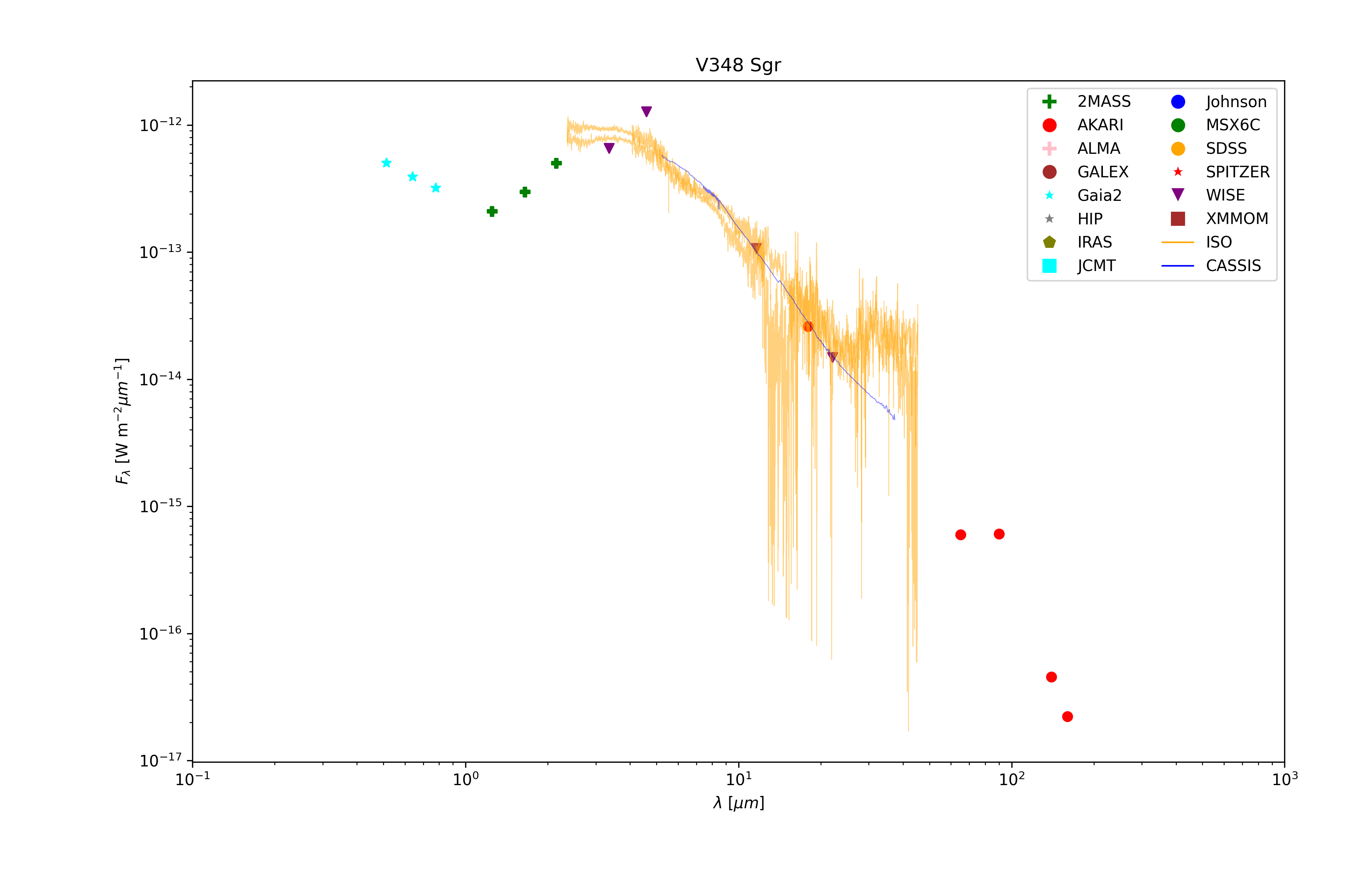 So, for each object, a file with our collected photometry, a file with the SED (corrected and uncorrected for interstellar absorption), a JSON containing all defined and collected data, and an archive with all ISO and Spitzer data and spectra (if available) are available.