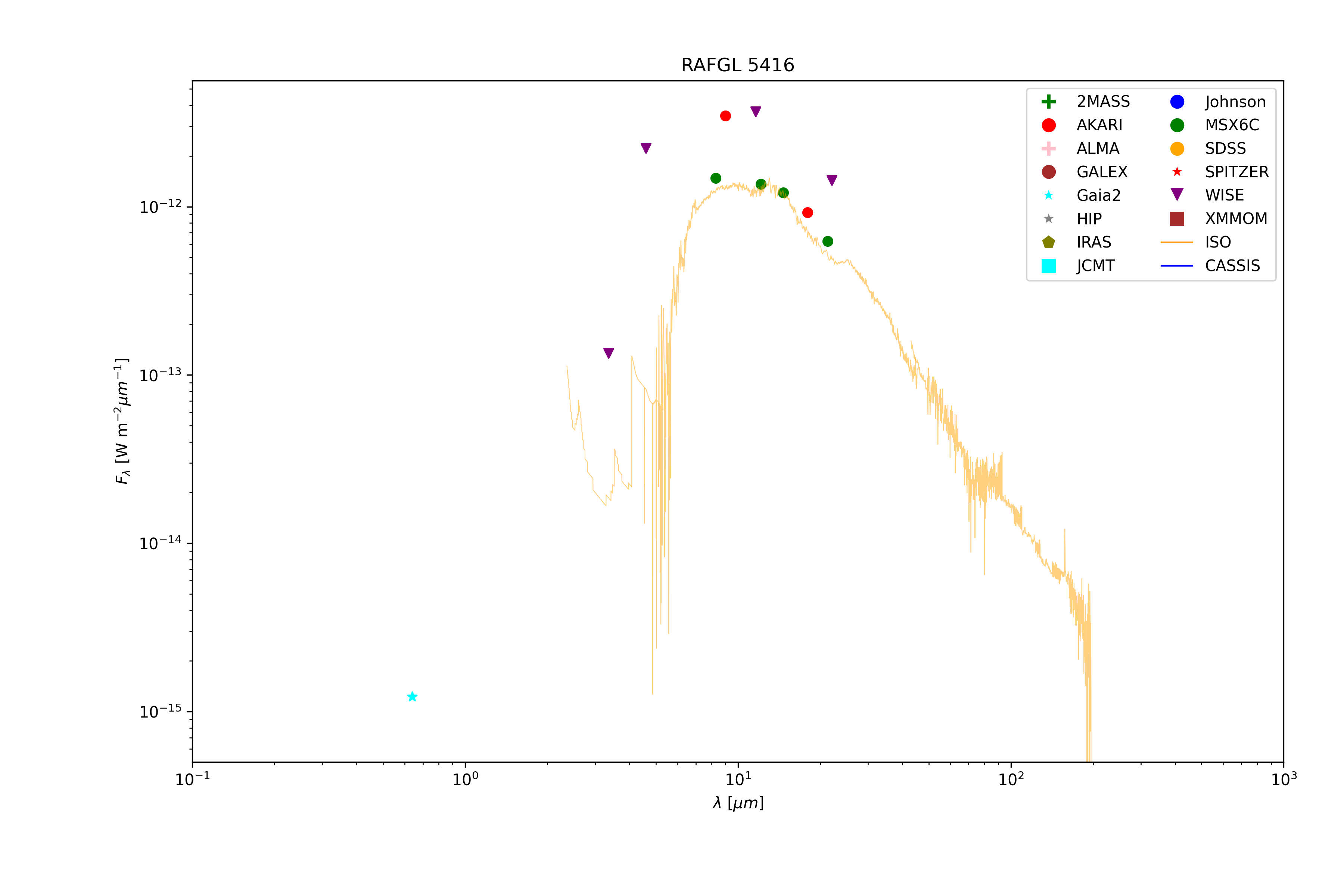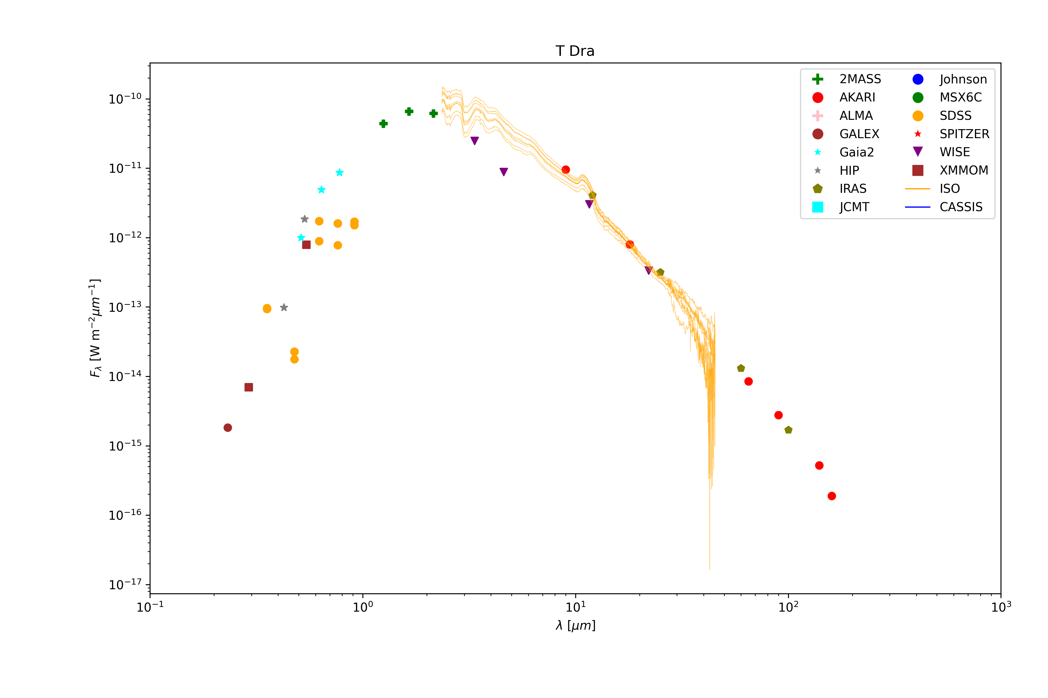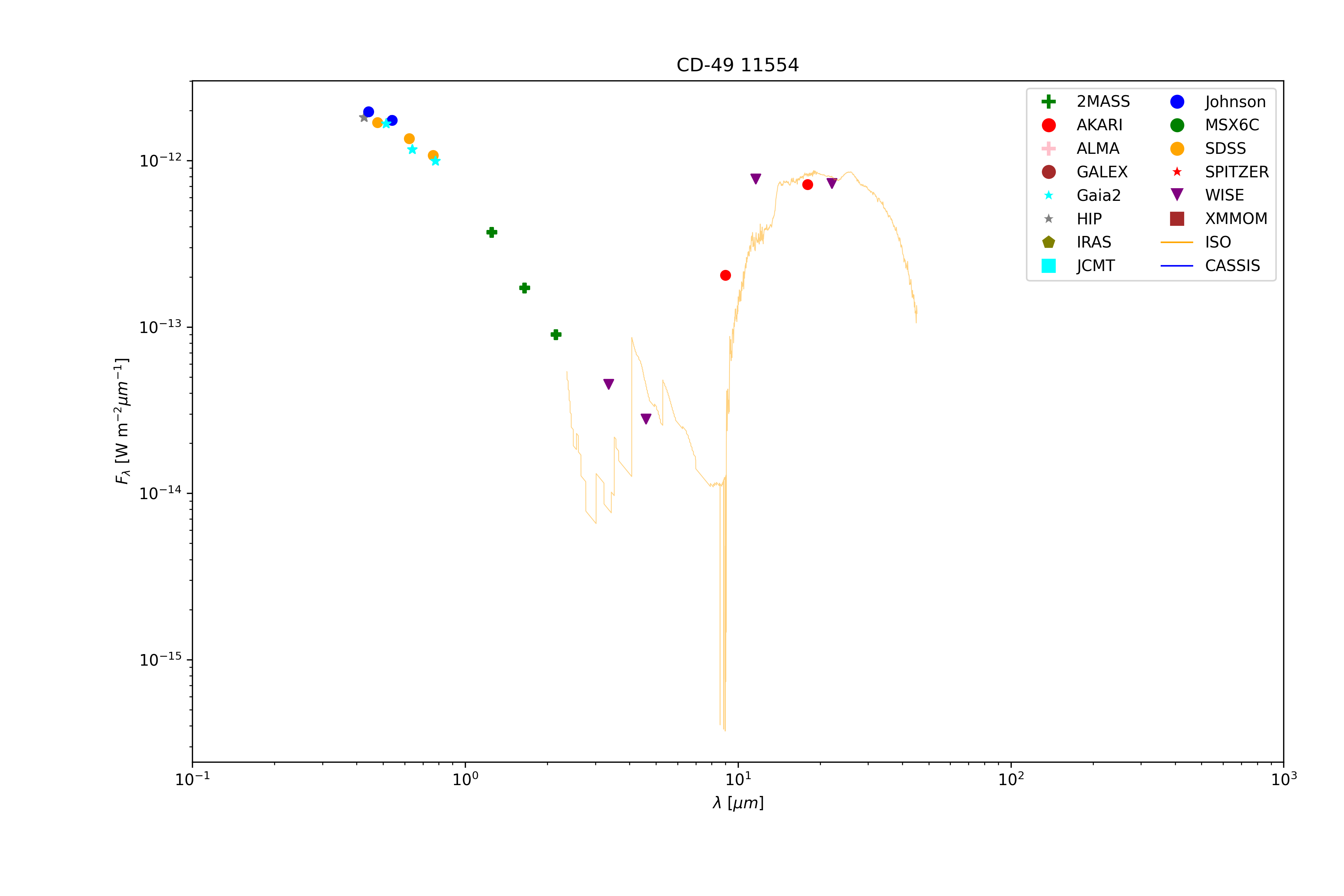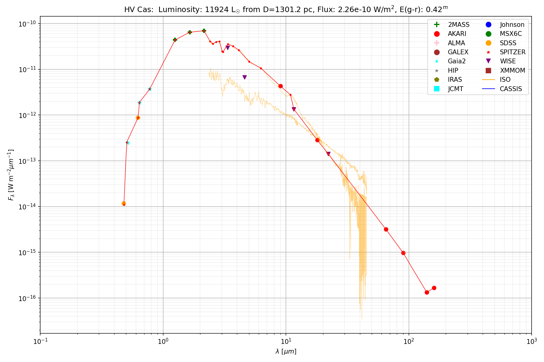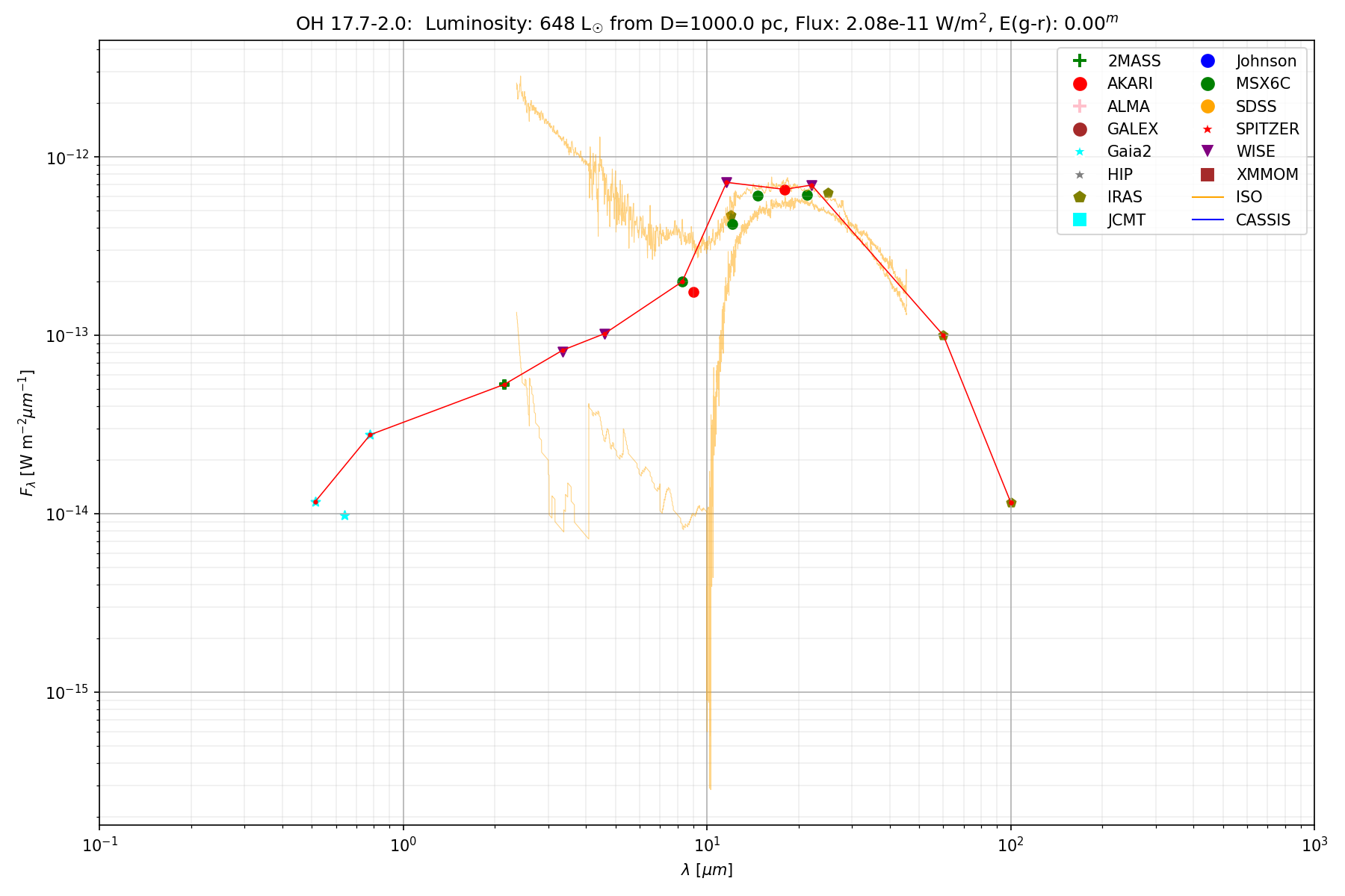 So, for each object, a file with our collected photometry, a file with the SED (corrected and uncorrected for interstellar absorption), a JSON containing all defined and collected data, and an archive with all ISO and Spitzer data and spectra (if available) are available.