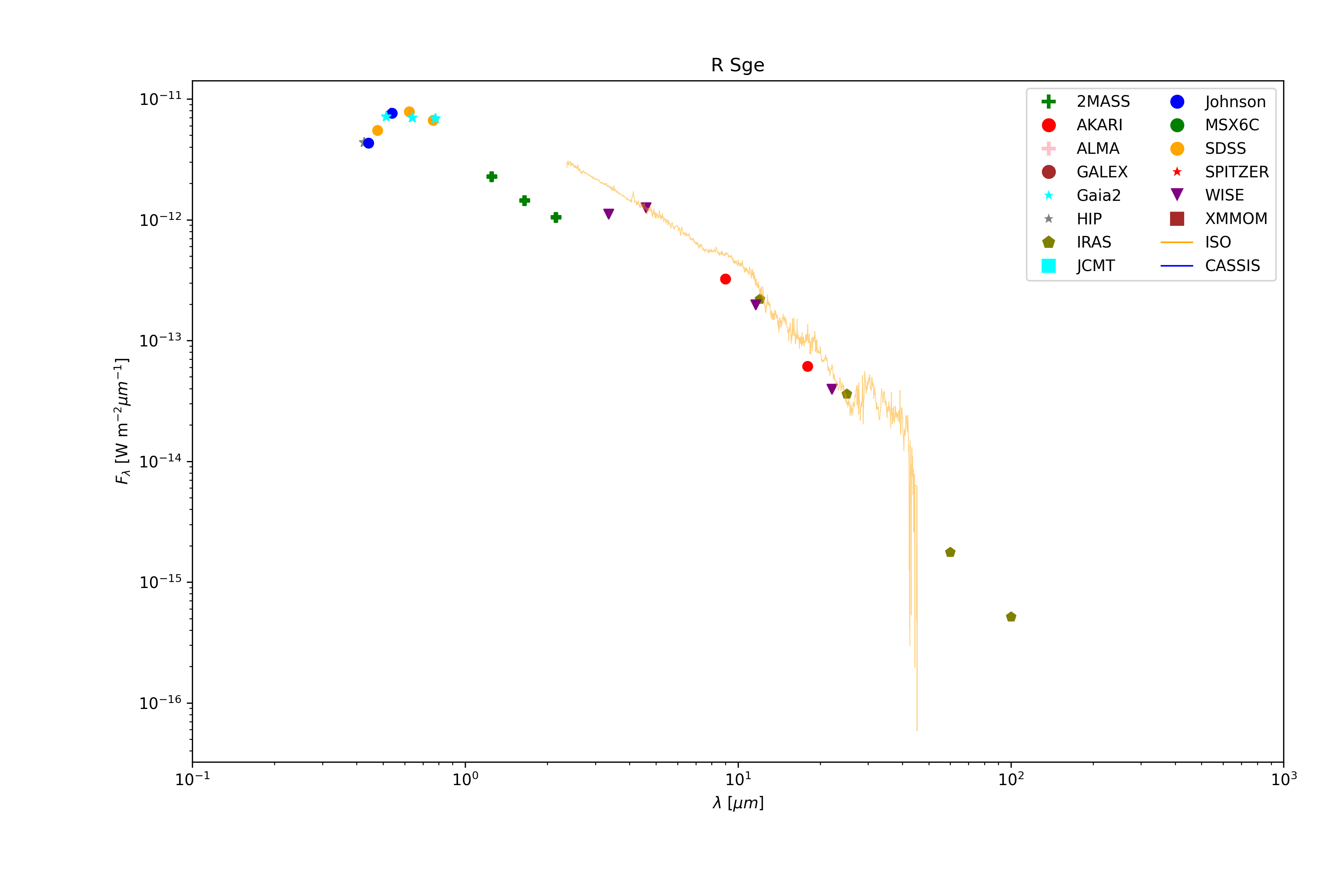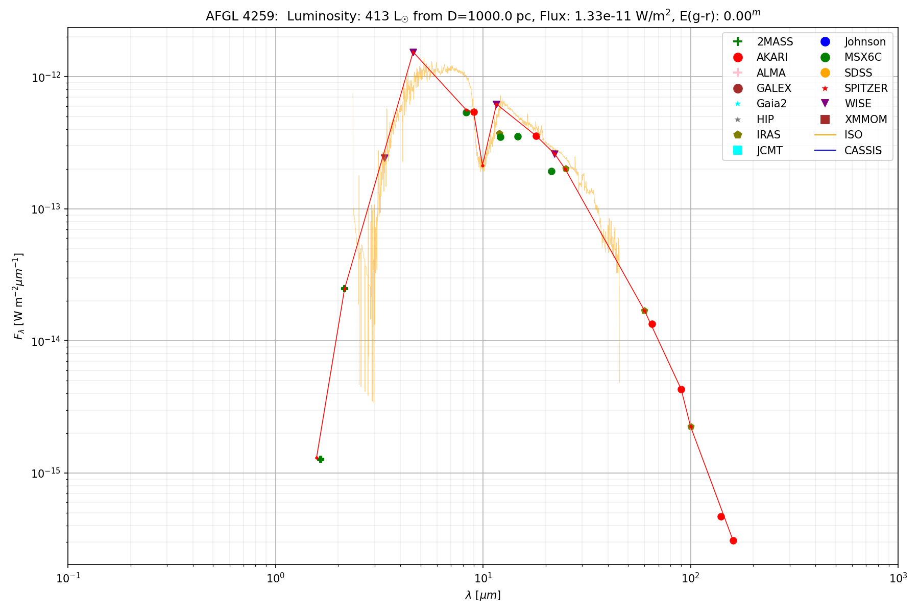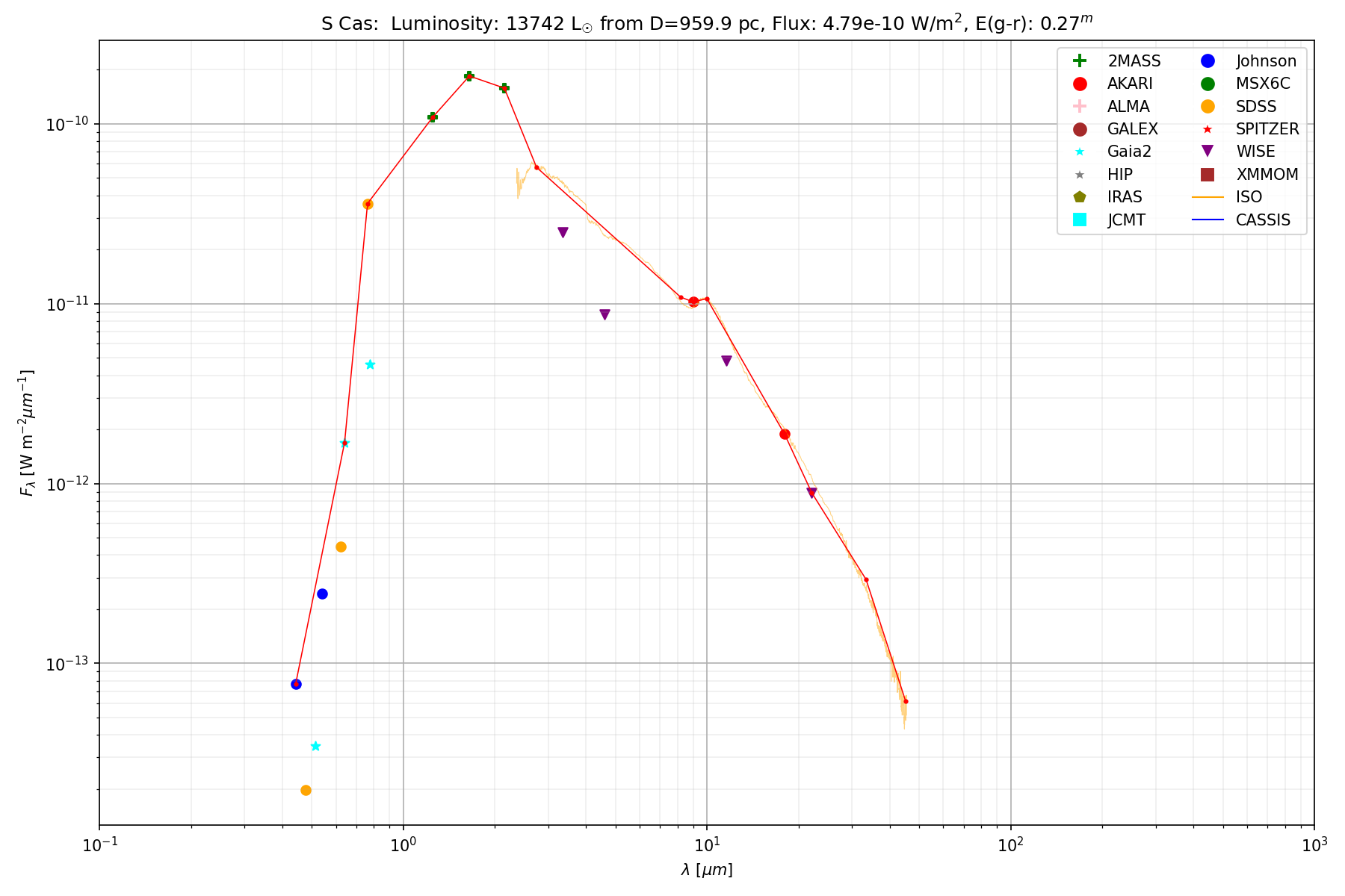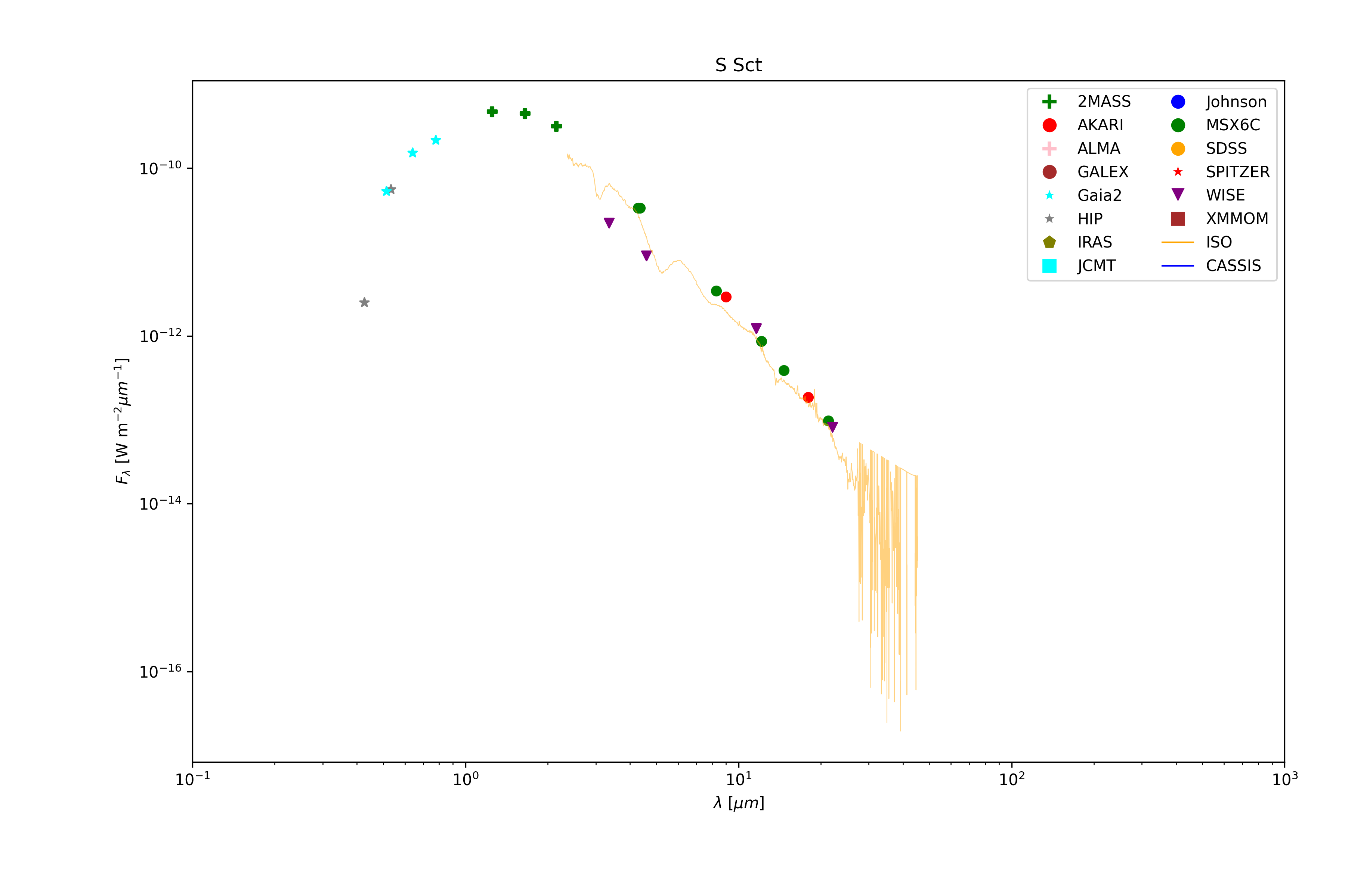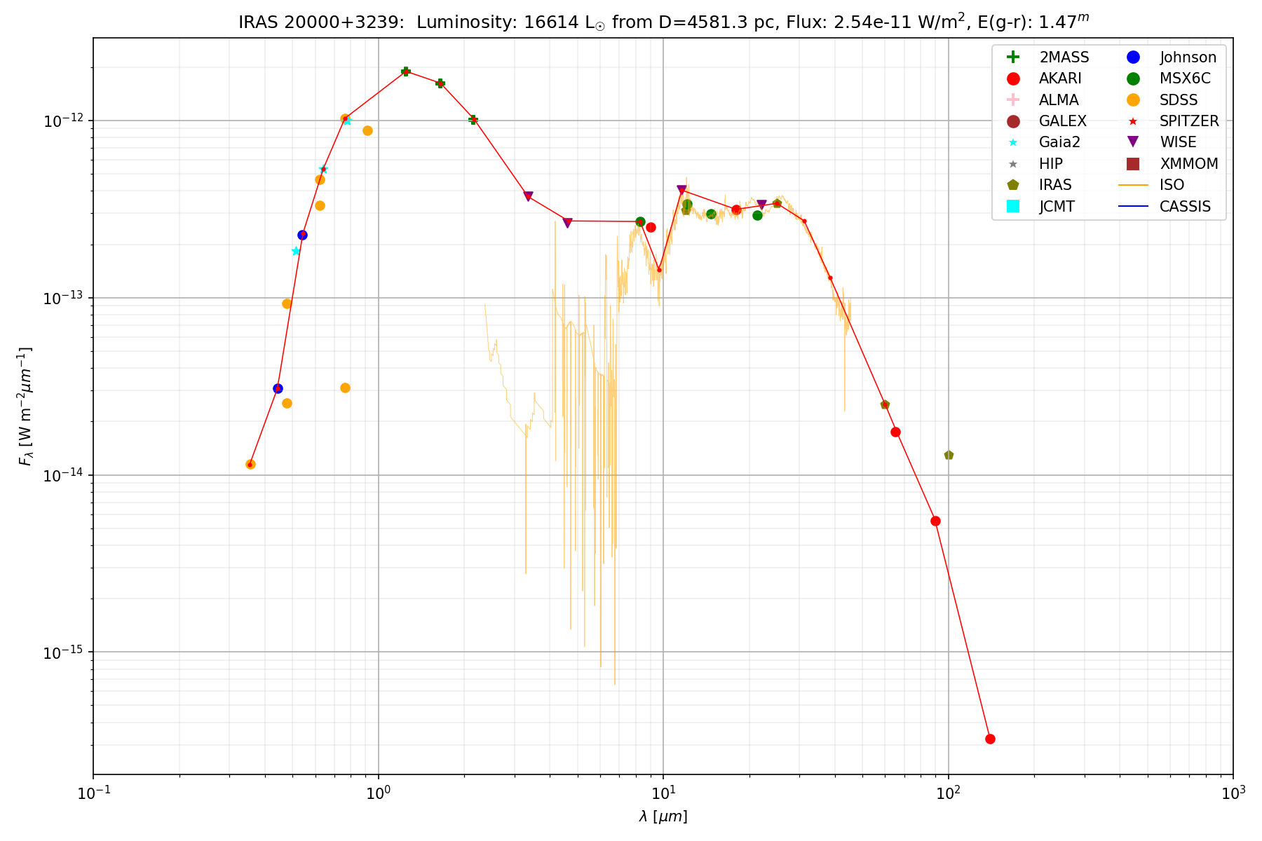 So, for each object, a file with our collected photometry, a file with the SED (corrected and uncorrected for interstellar absorption), a JSON containing all defined and collected data, and an archive with all ISO and Spitzer data and spectra (if available) are available.