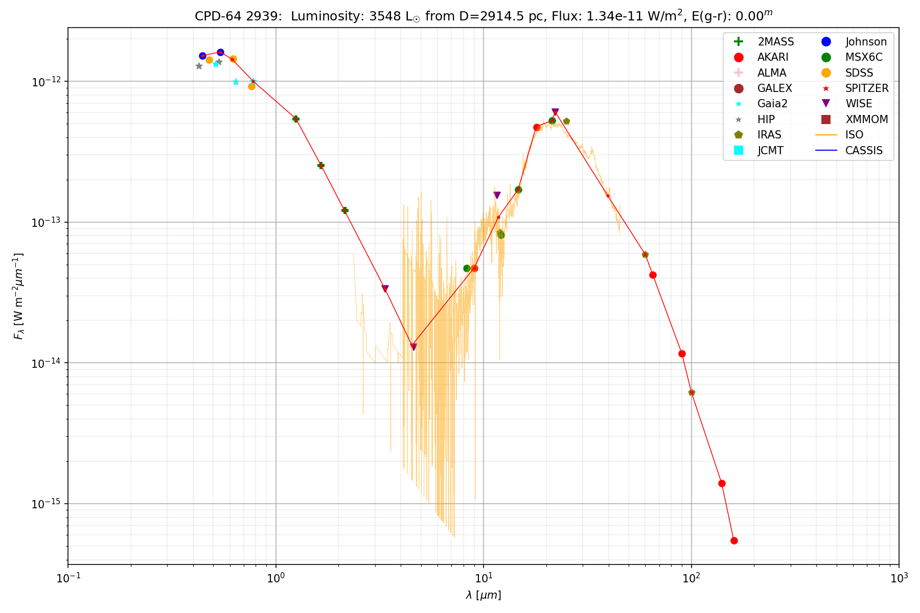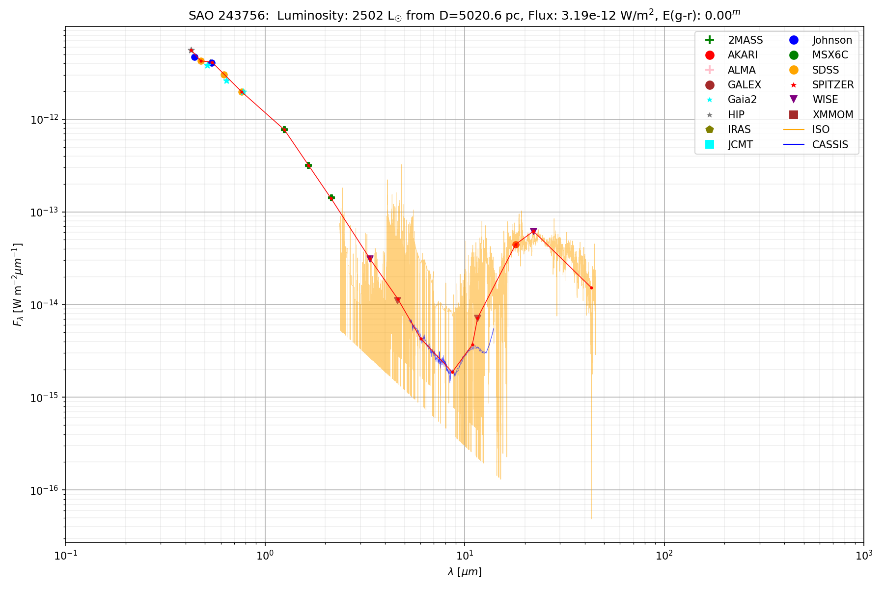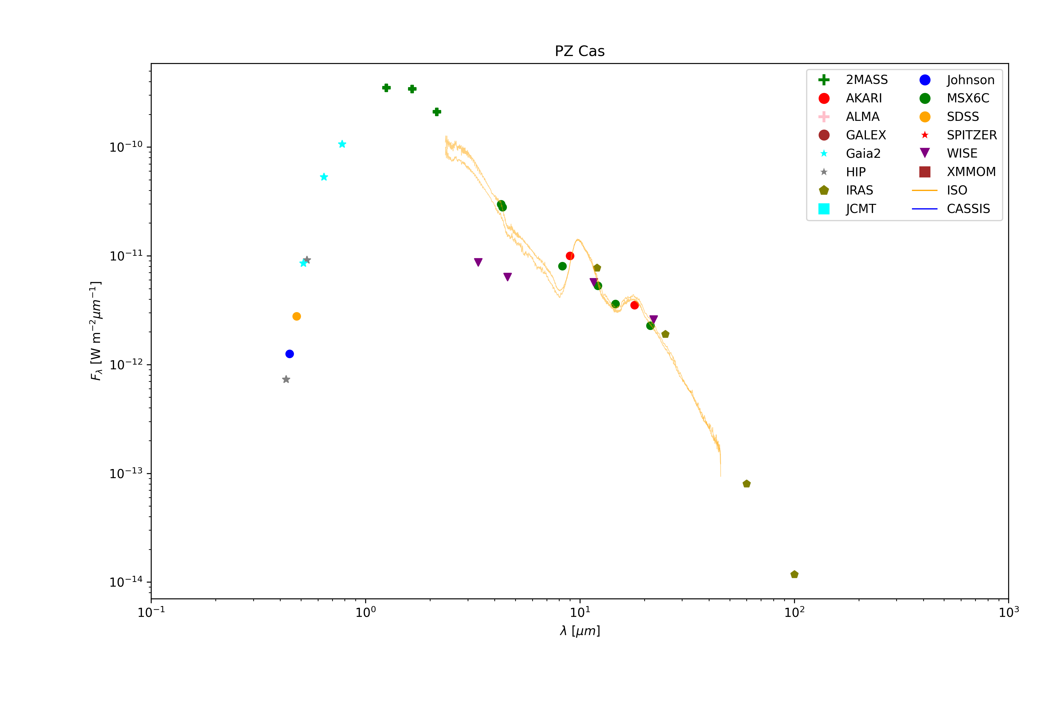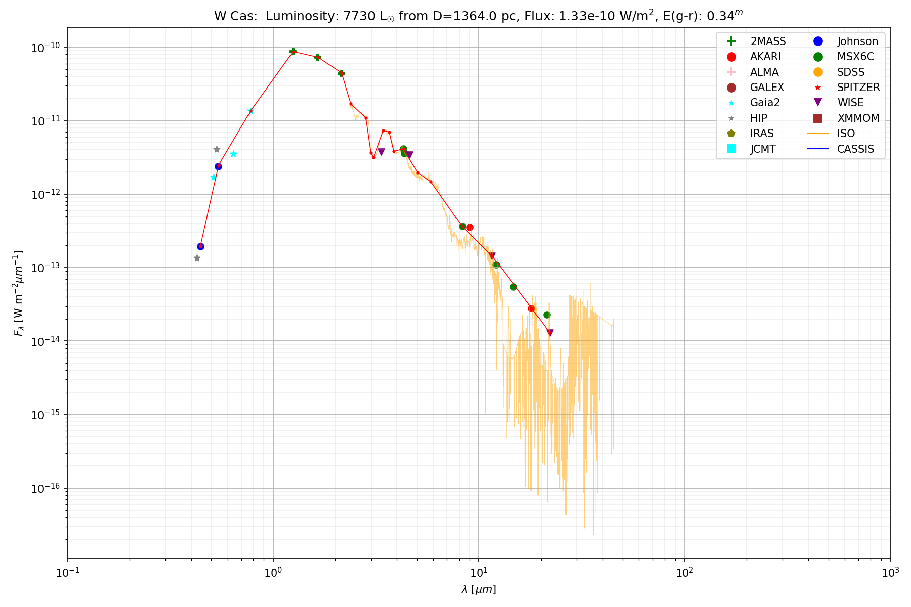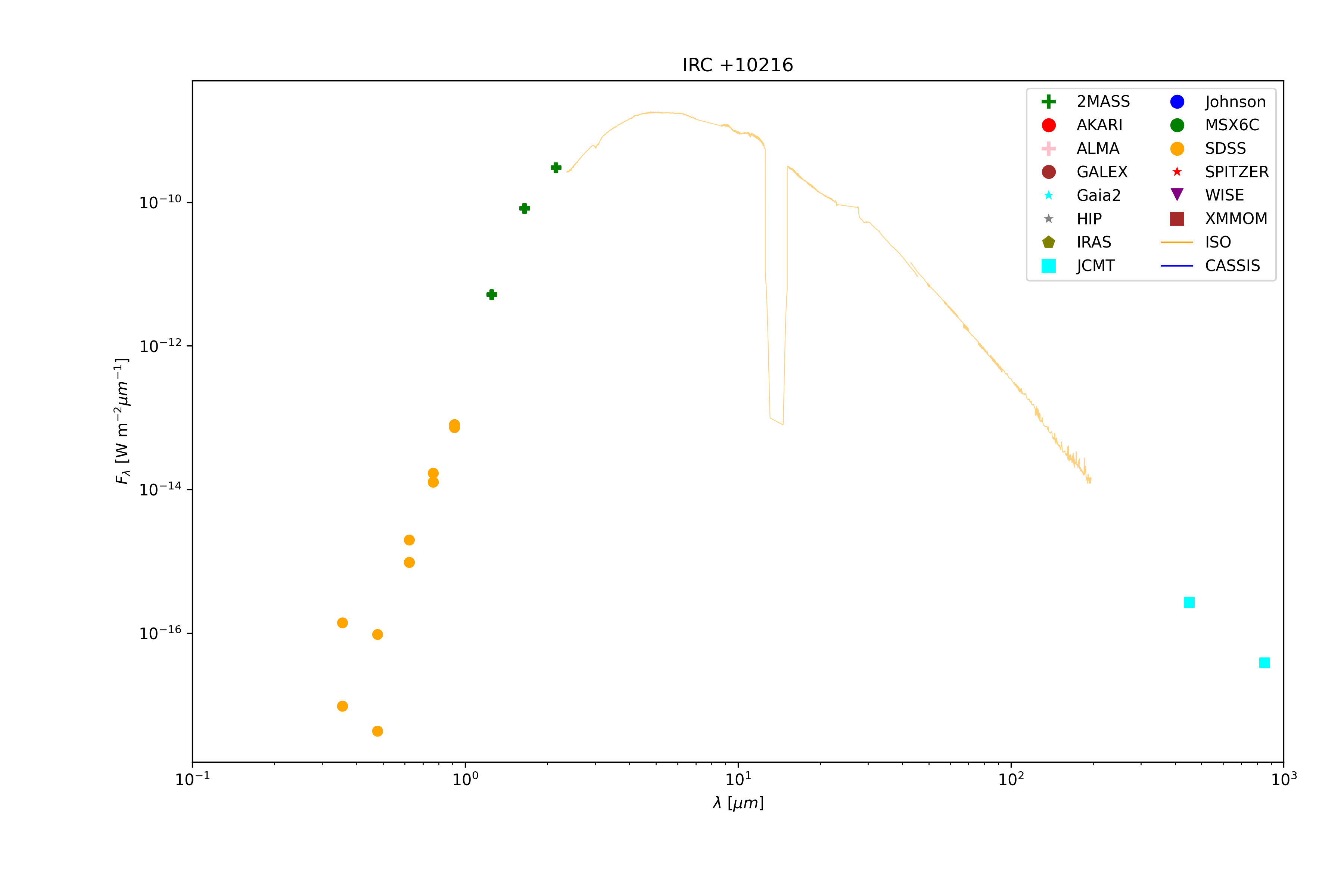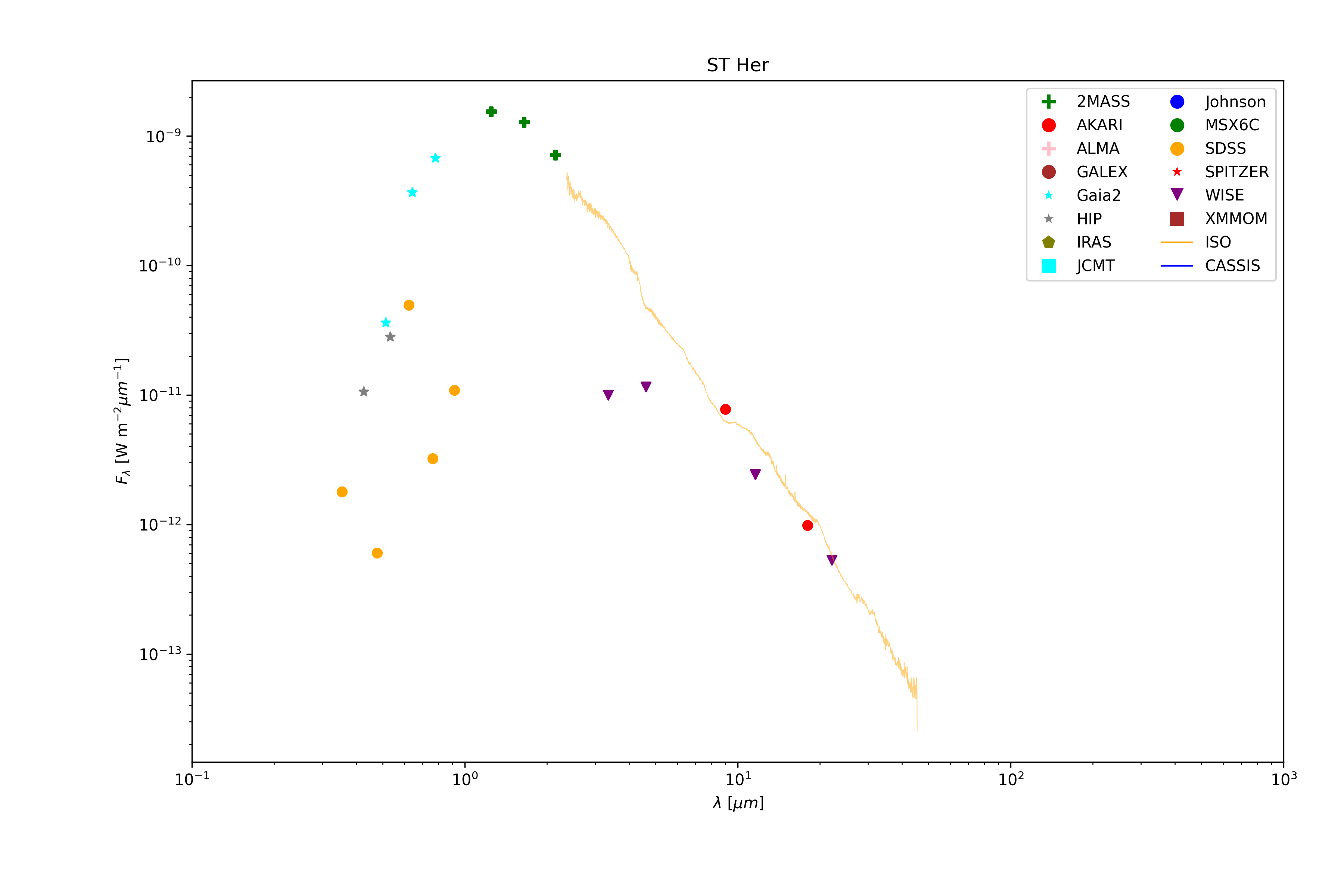 So, for each object, a file with our collected photometry, a file with the SED (corrected and uncorrected for interstellar absorption), a JSON containing all defined and collected data, and an archive with all ISO and Spitzer data and spectra (if available) are available.