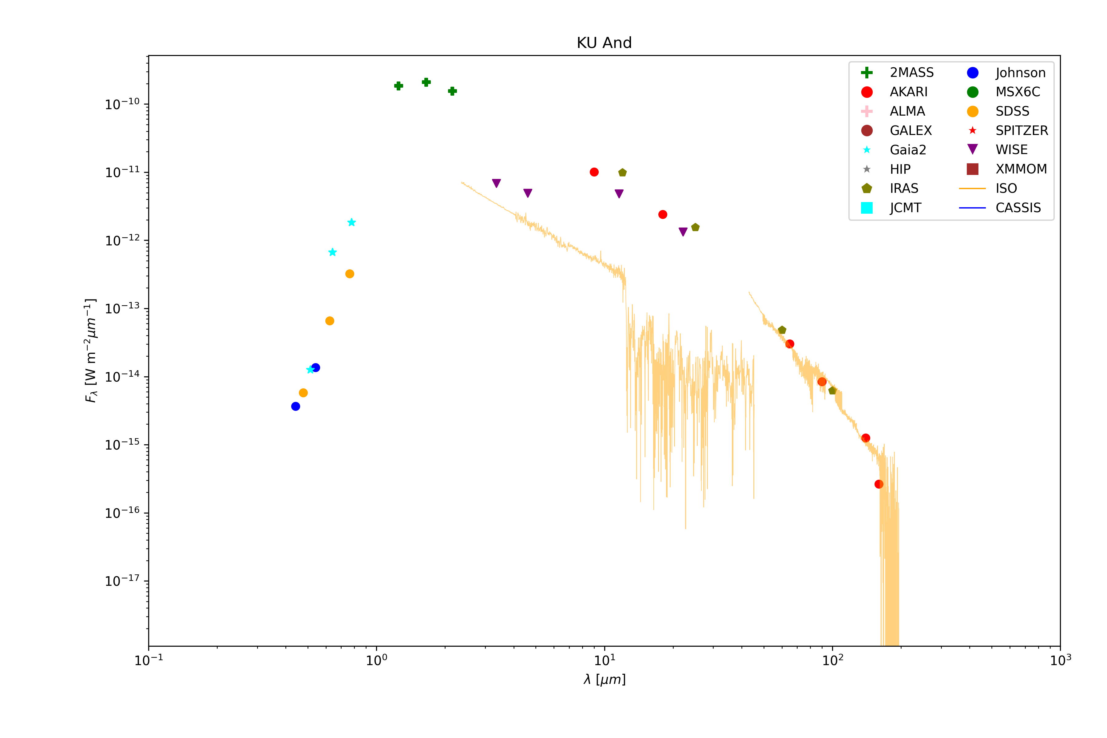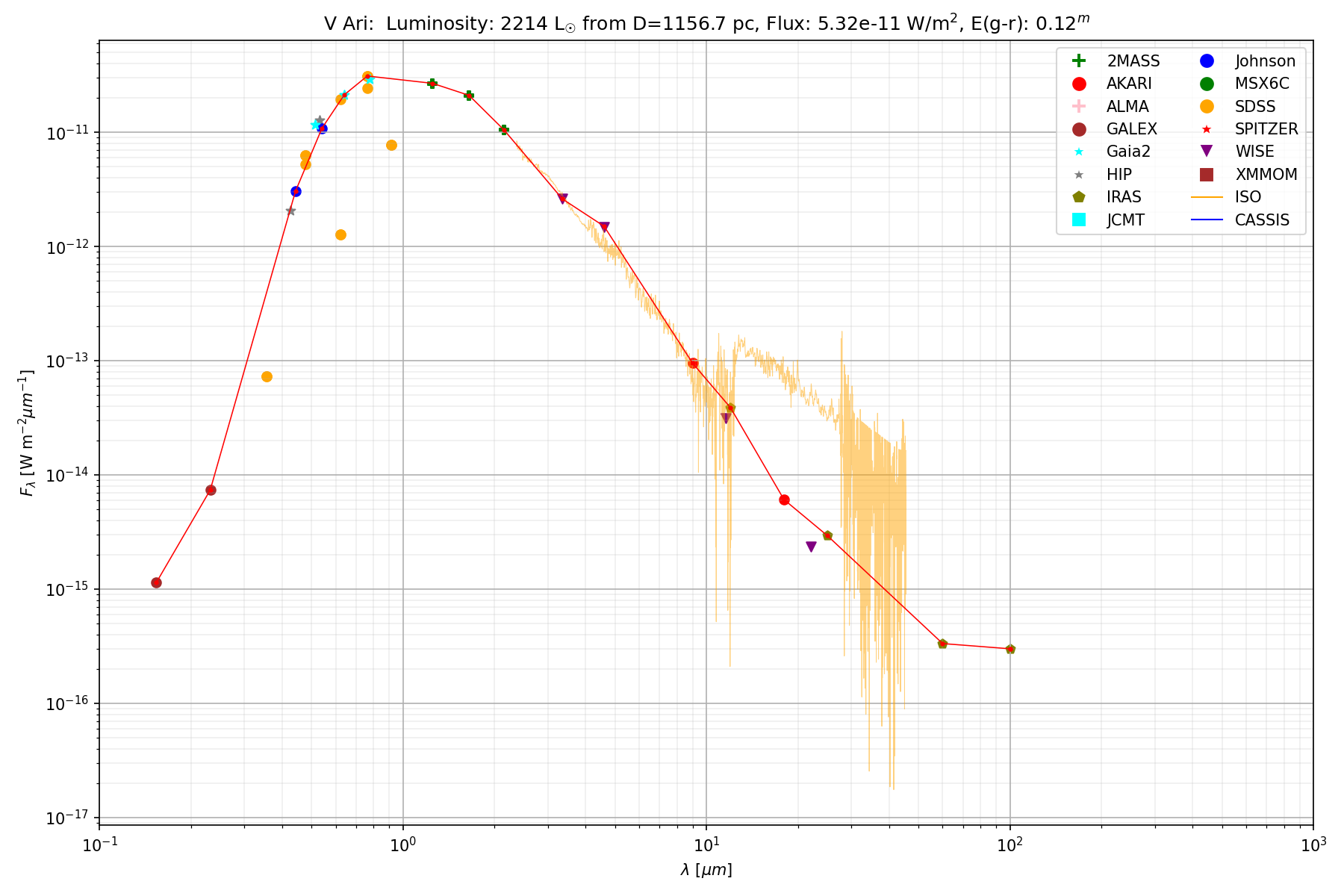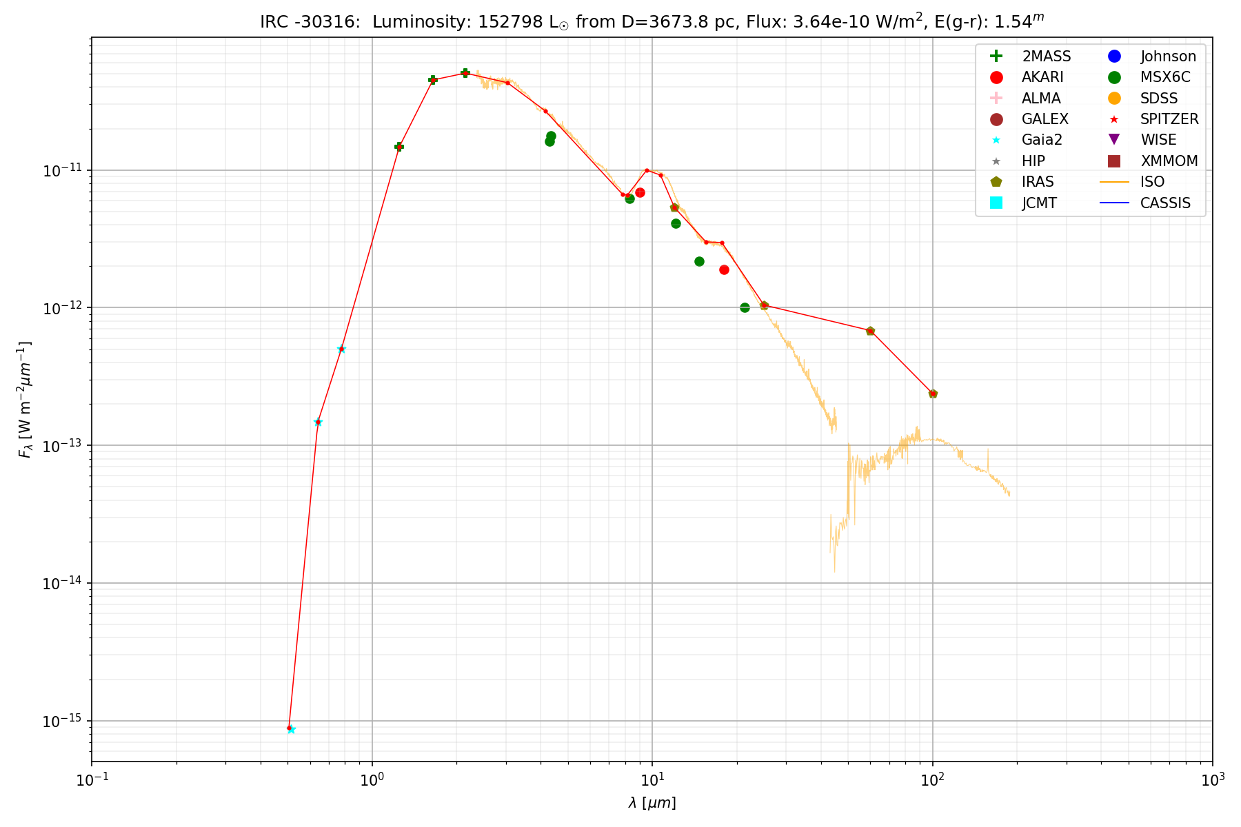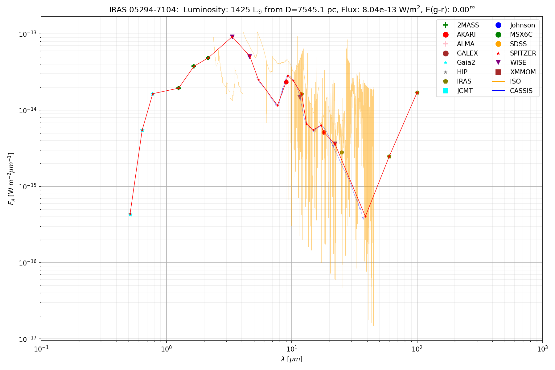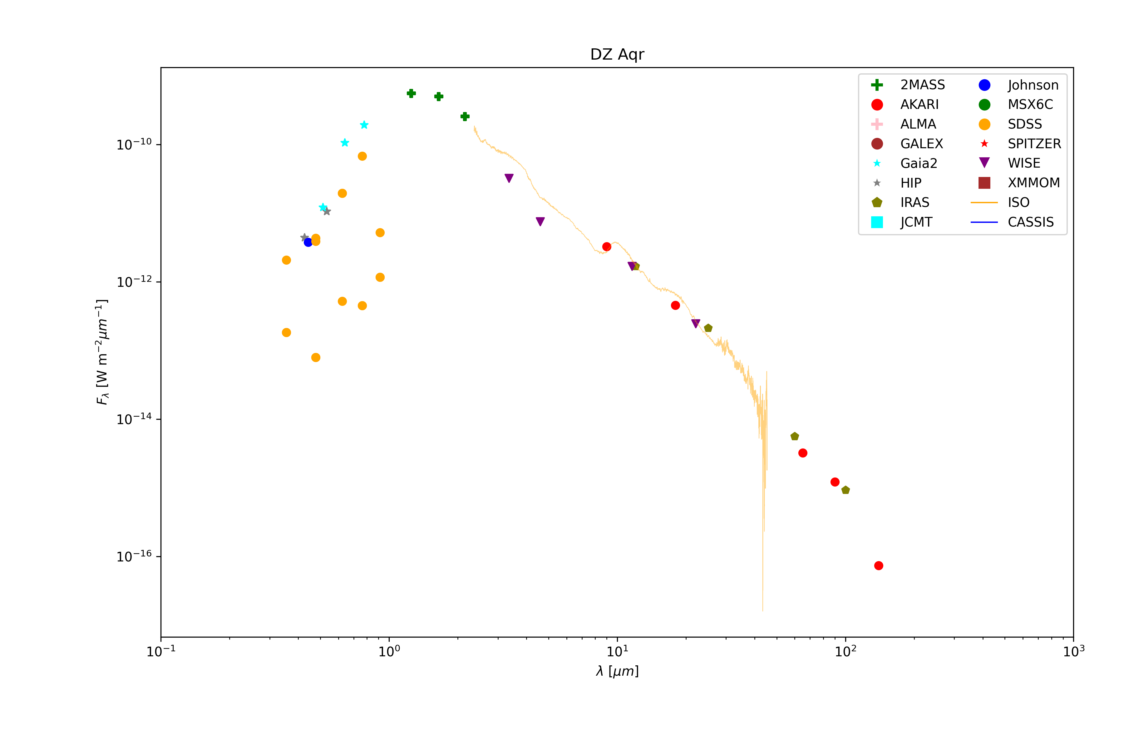 So, for each object, a file with our collected photometry, a file with the SED (corrected and uncorrected for interstellar absorption), a JSON containing all defined and collected data, and an archive with all ISO and Spitzer data and spectra (if available) are available.