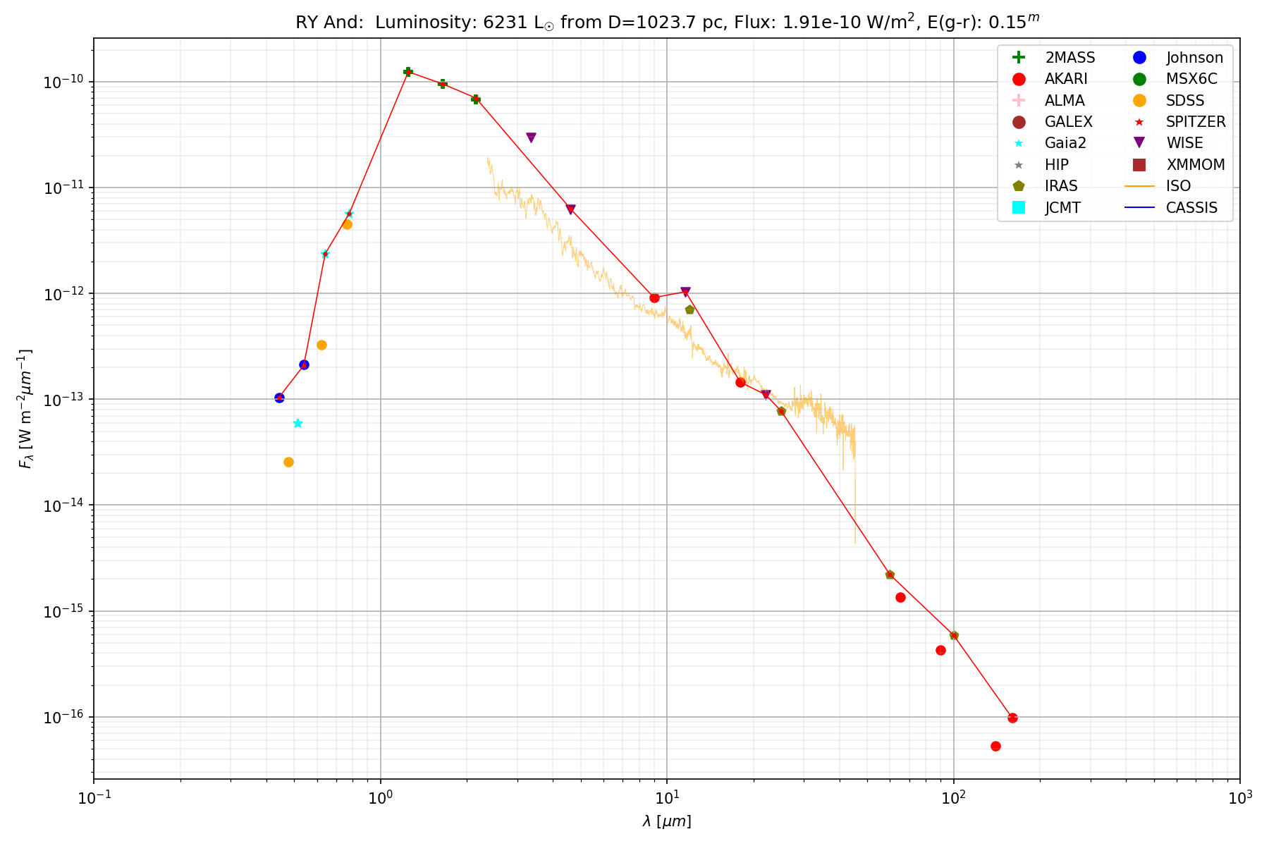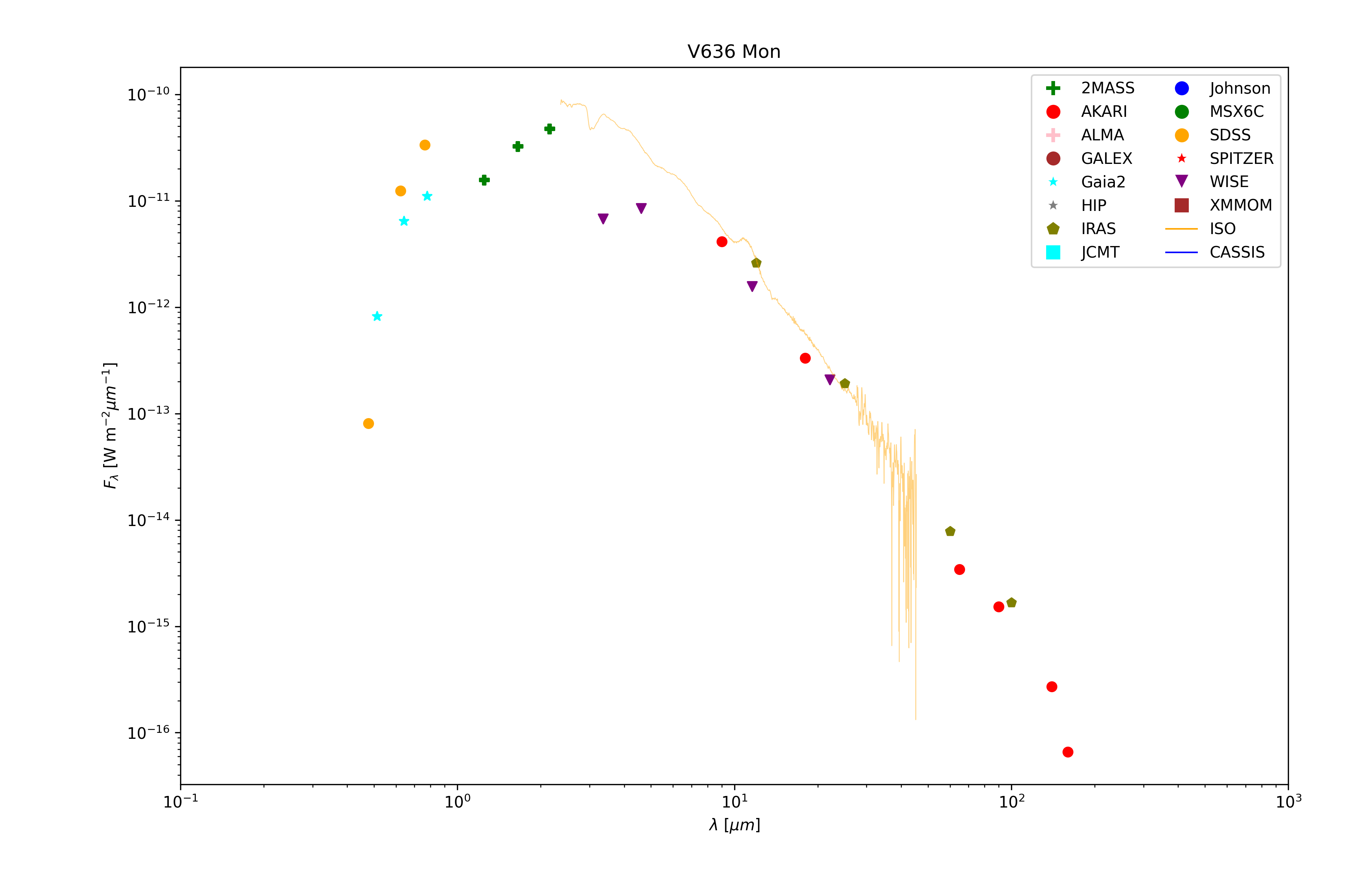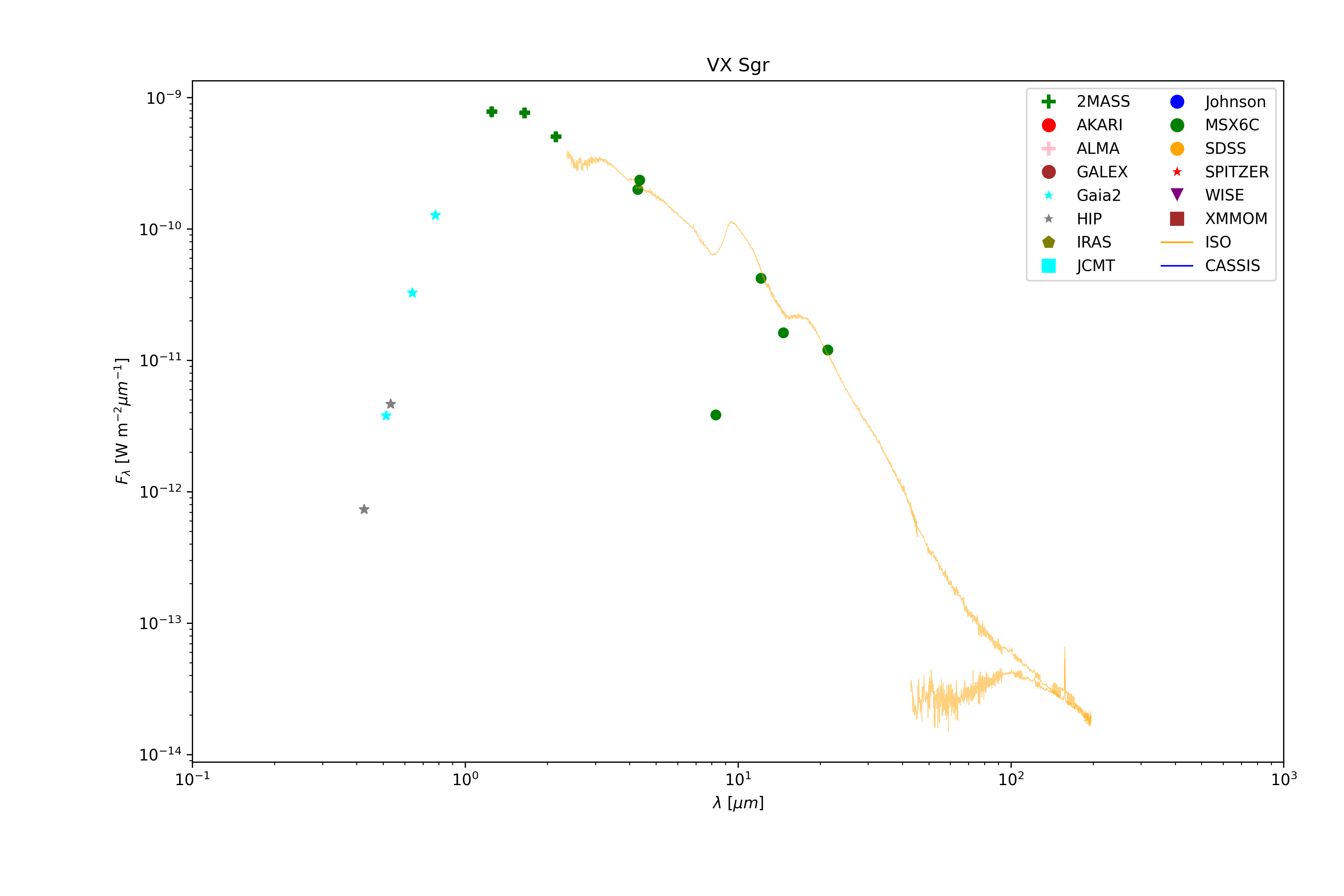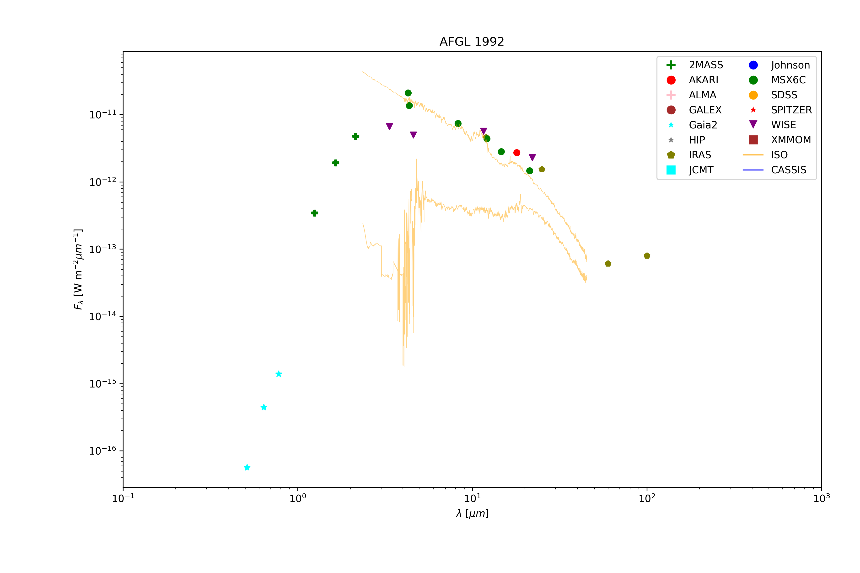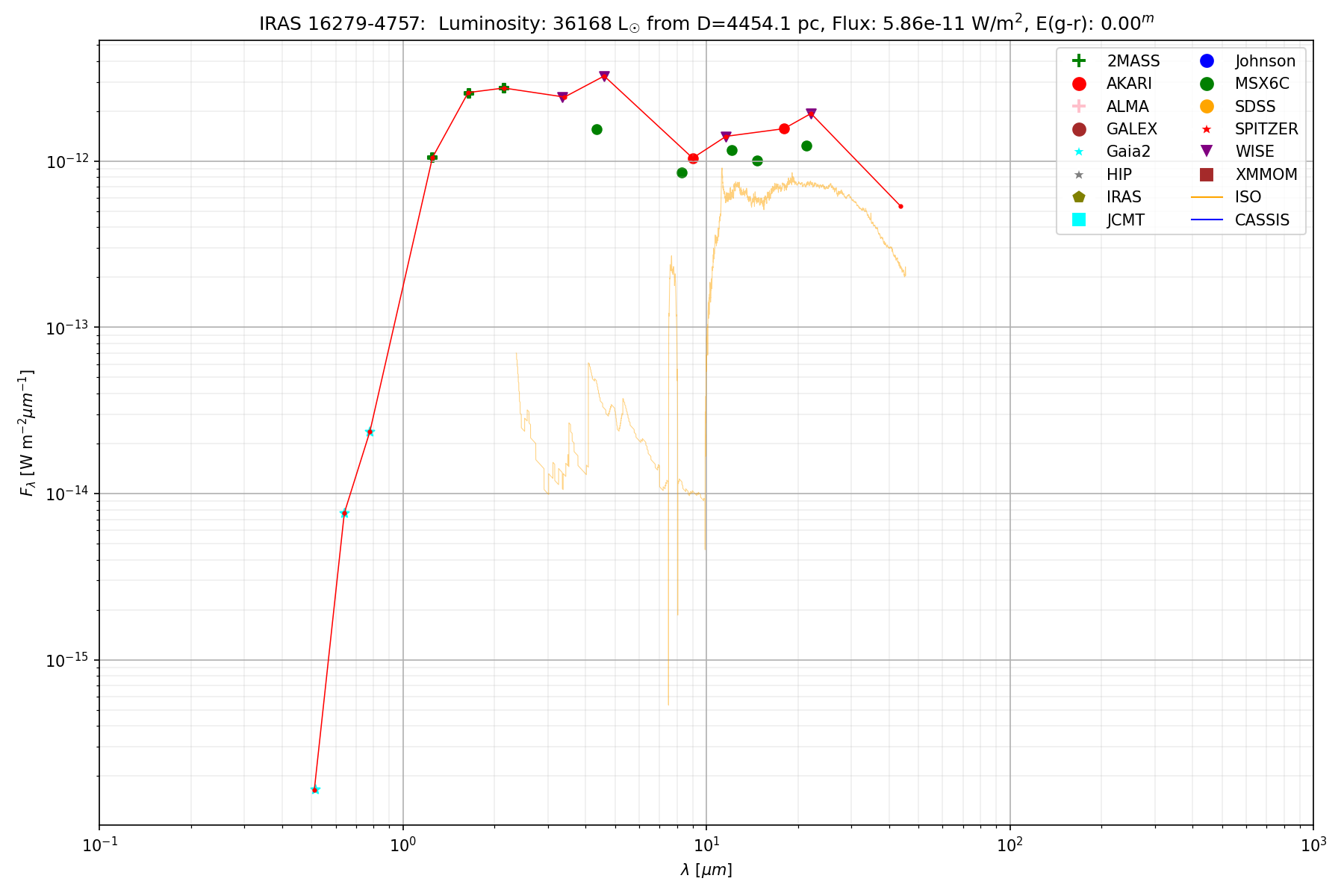 So, for each object, a file with our collected photometry, a file with the SED (corrected and uncorrected for interstellar absorption), a JSON containing all defined and collected data, and an archive with all ISO and Spitzer data and spectra (if available) are available.
