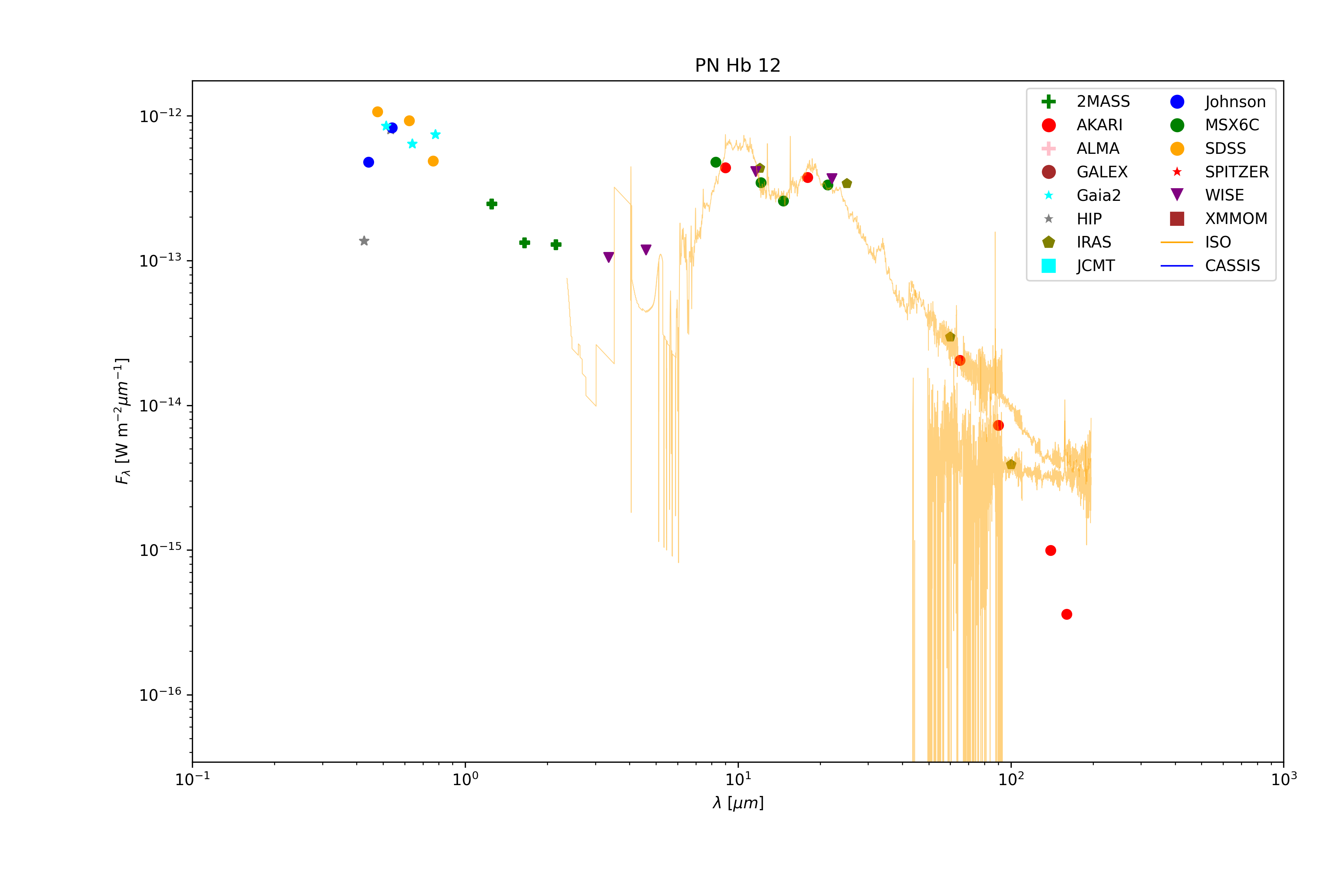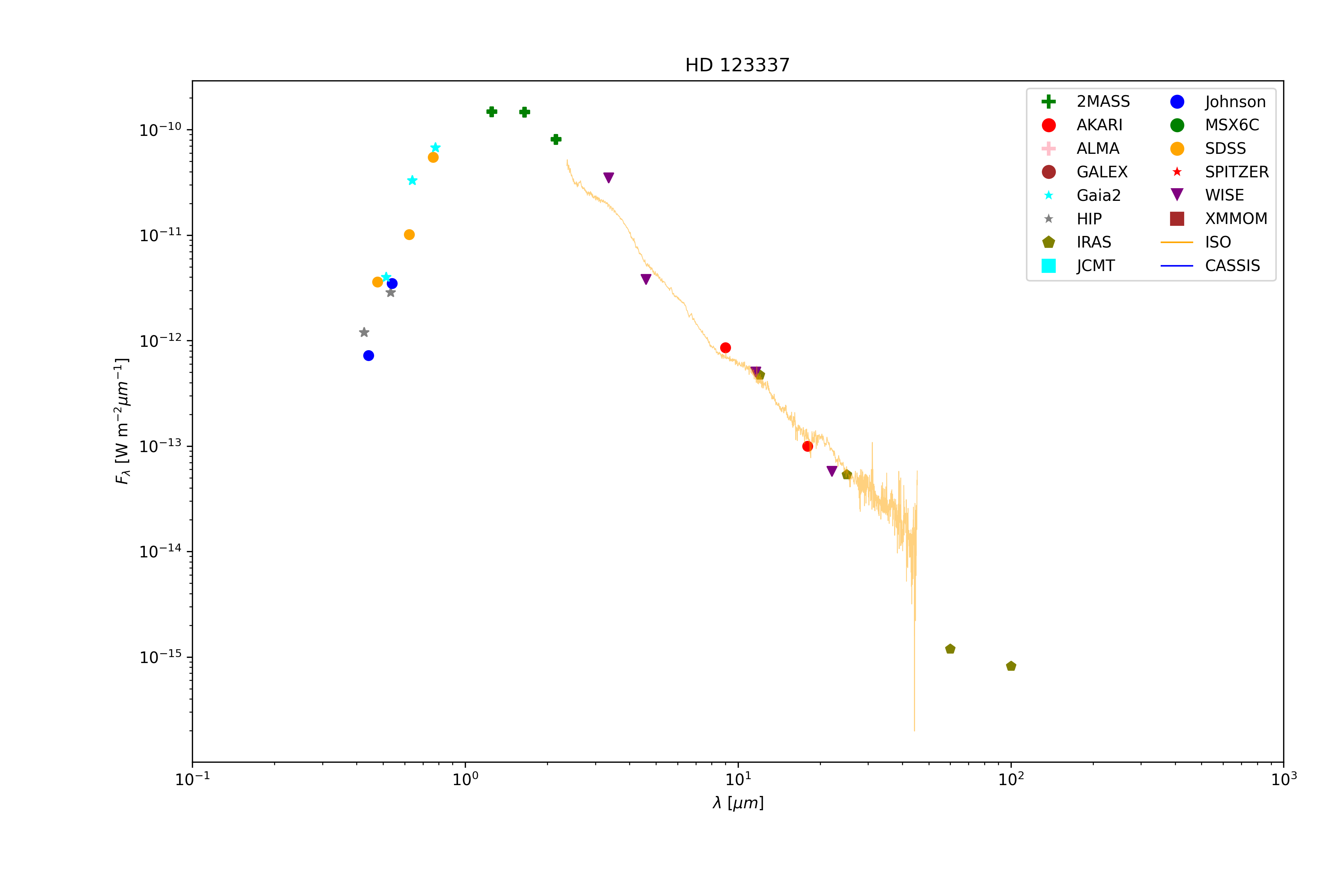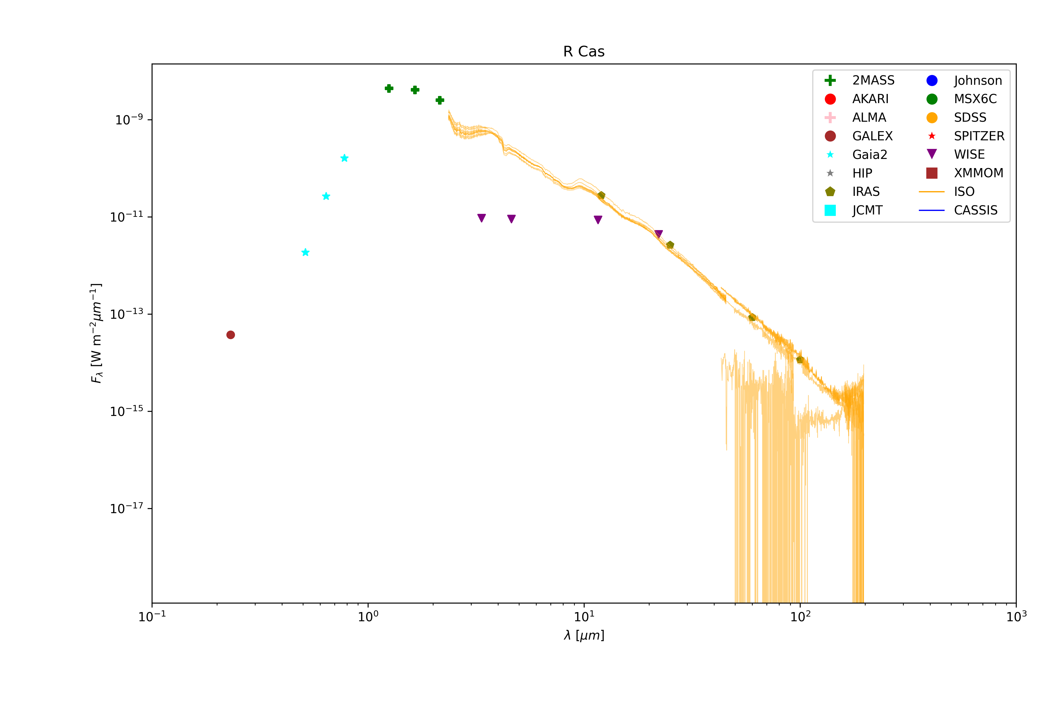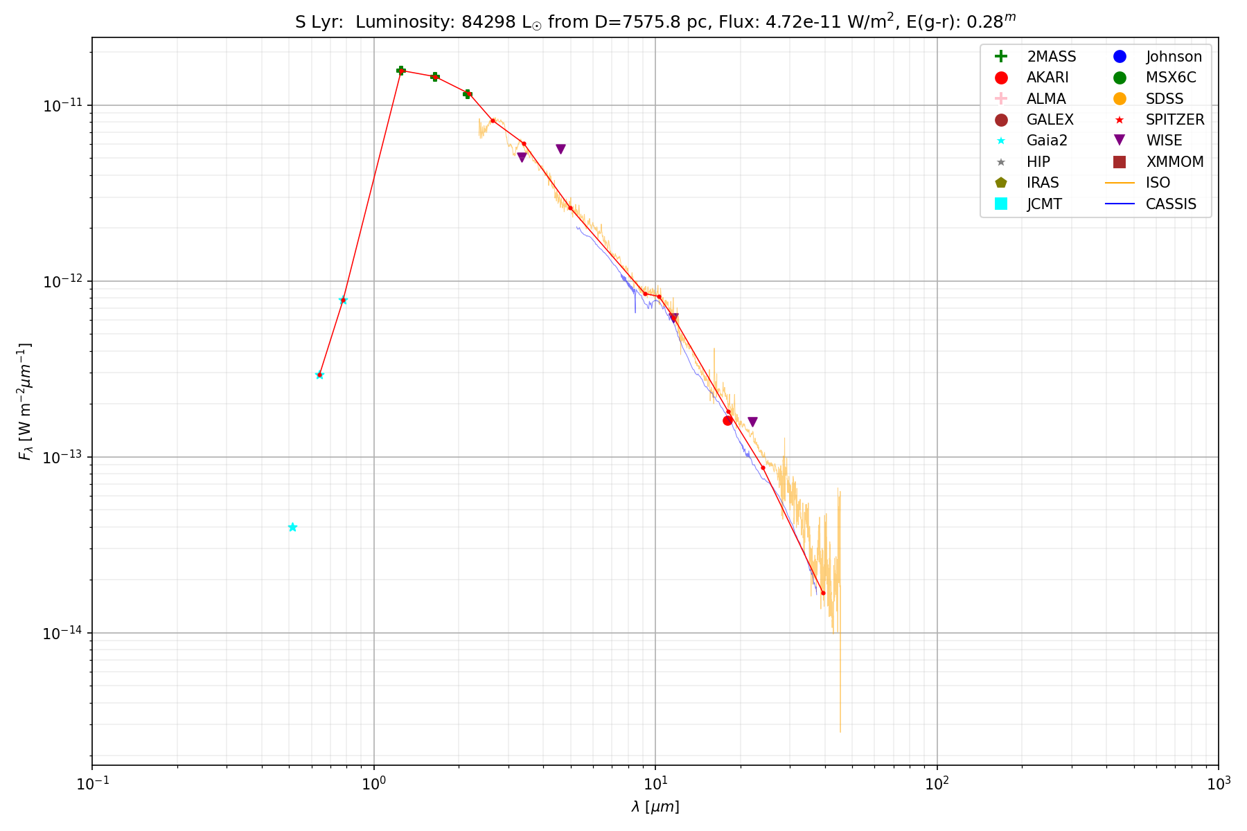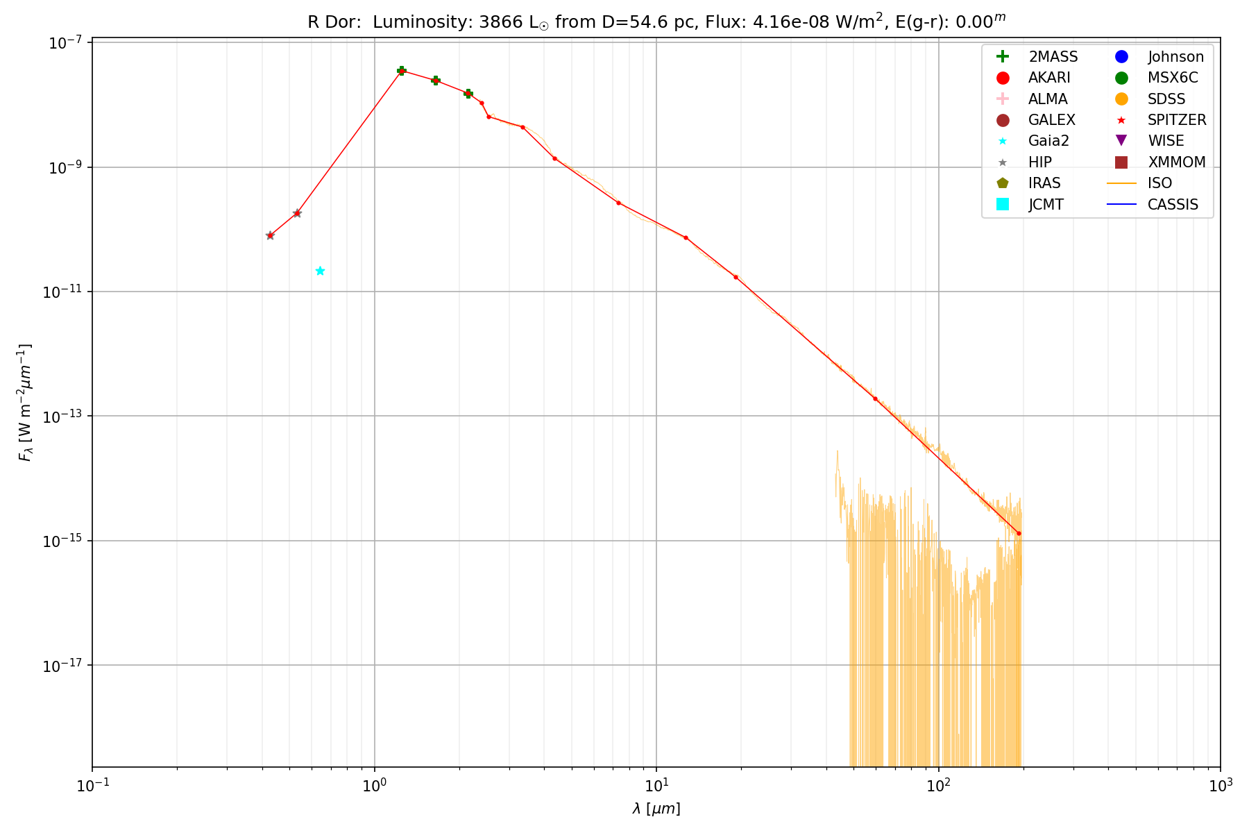 So, for each object, a file with our collected photometry, a file with the SED (corrected and uncorrected for interstellar absorption), a JSON containing all defined and collected data, and an archive with all ISO and Spitzer data and spectra (if available) are available.