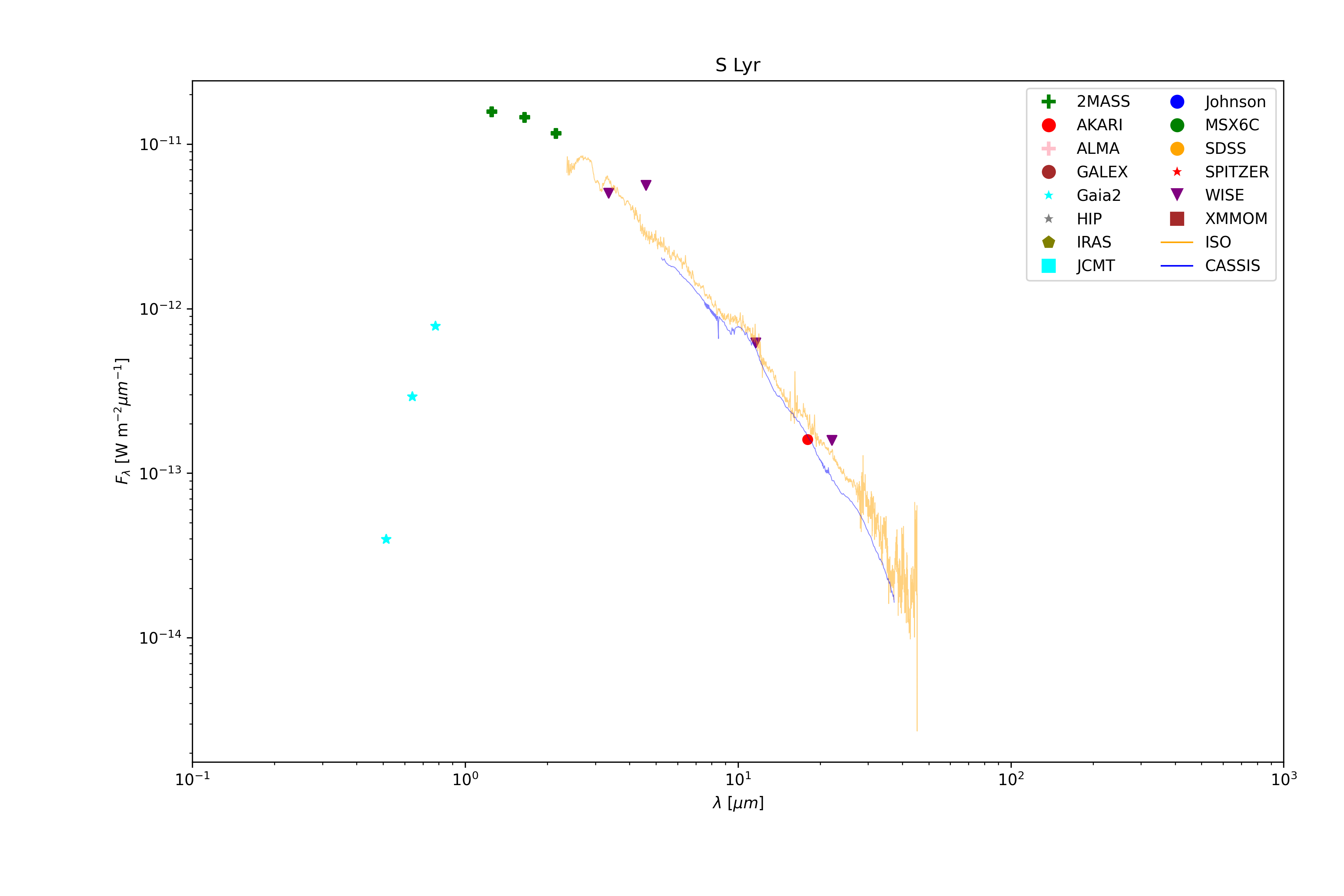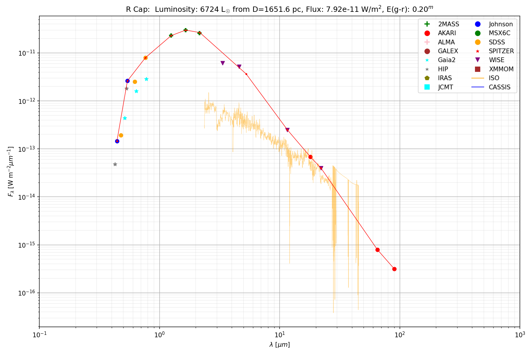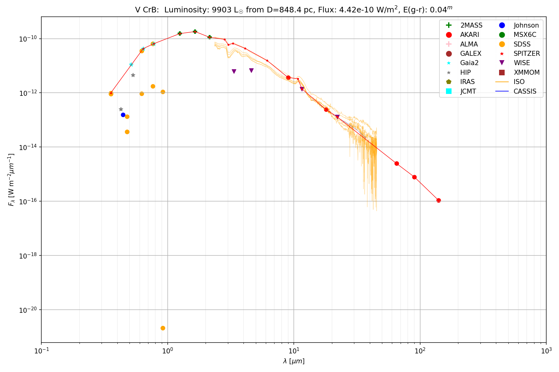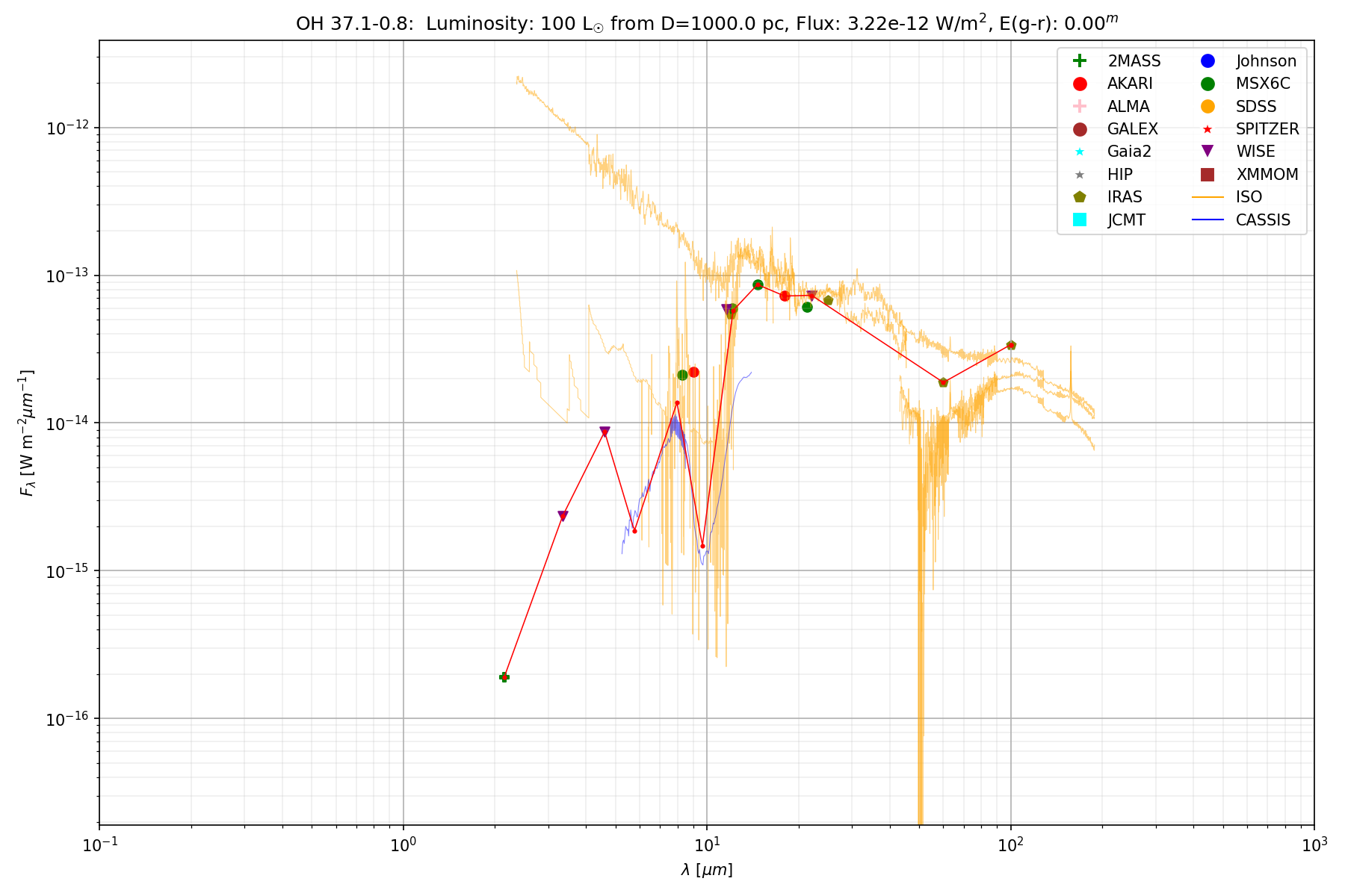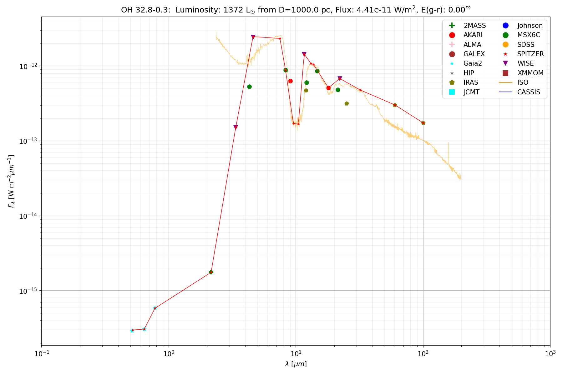 So, for each object, a file with our collected photometry, a file with the SED (corrected and uncorrected for interstellar absorption), a JSON containing all defined and collected data, and an archive with all ISO and Spitzer data and spectra (if available) are available.
