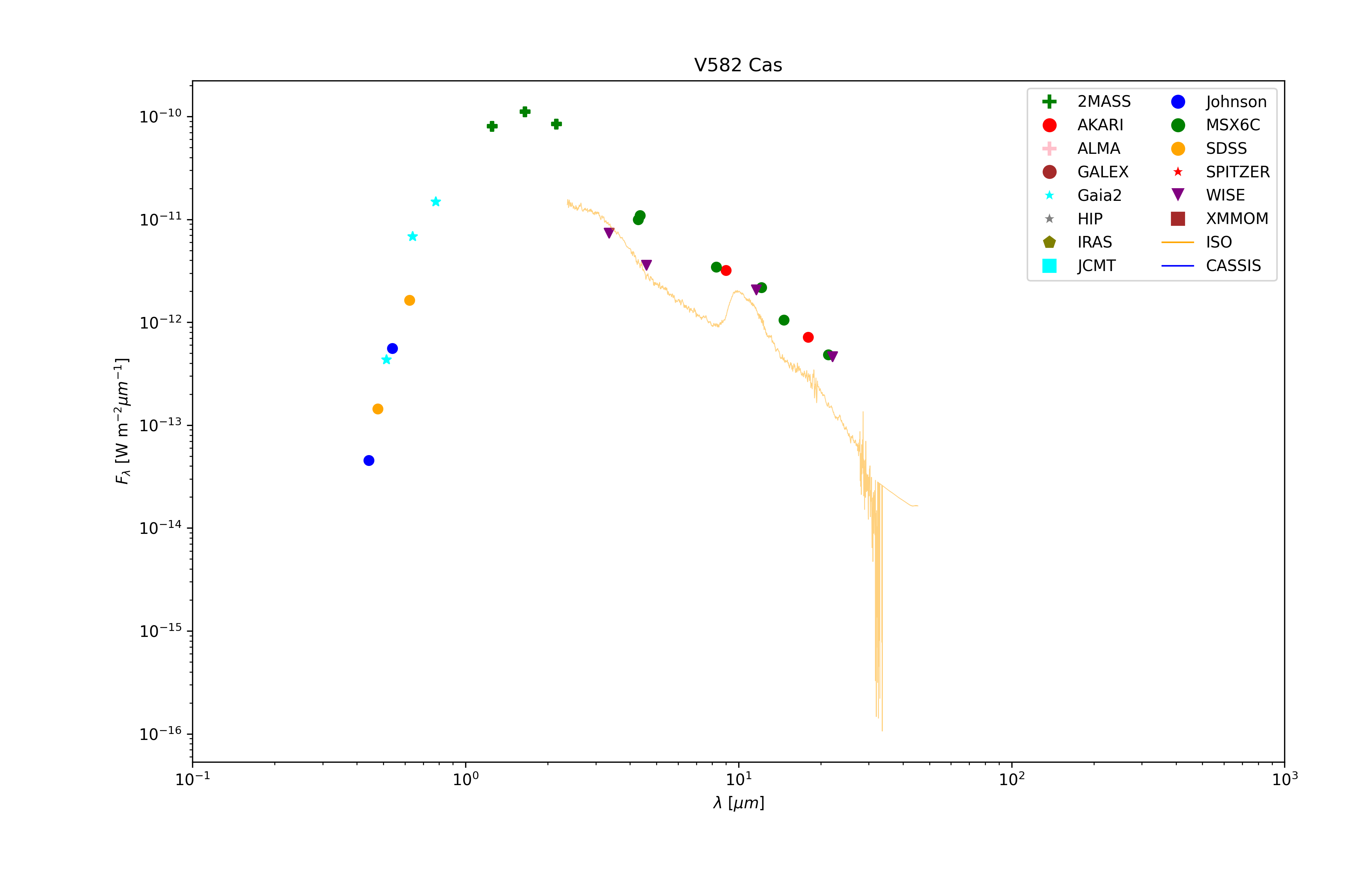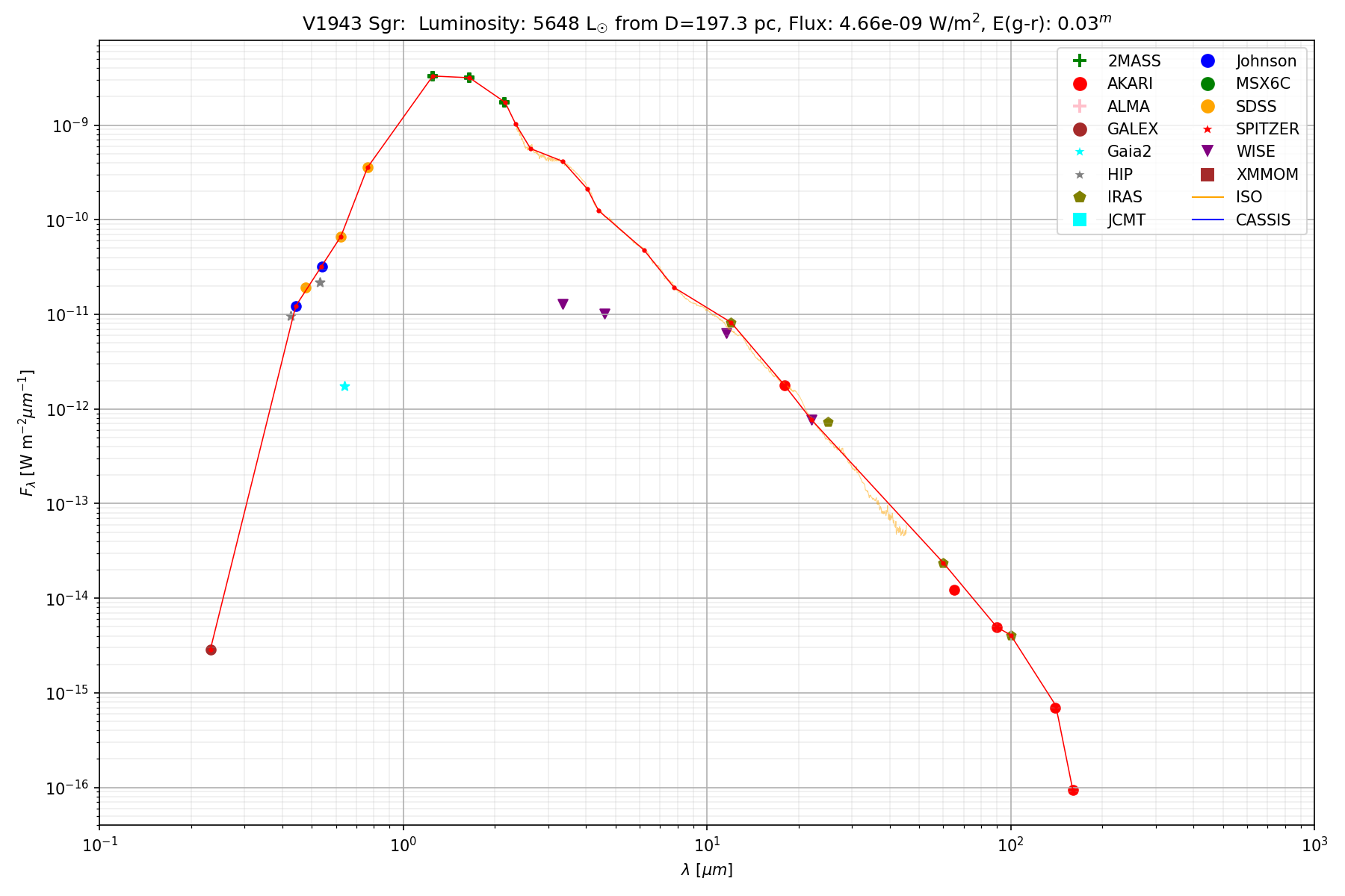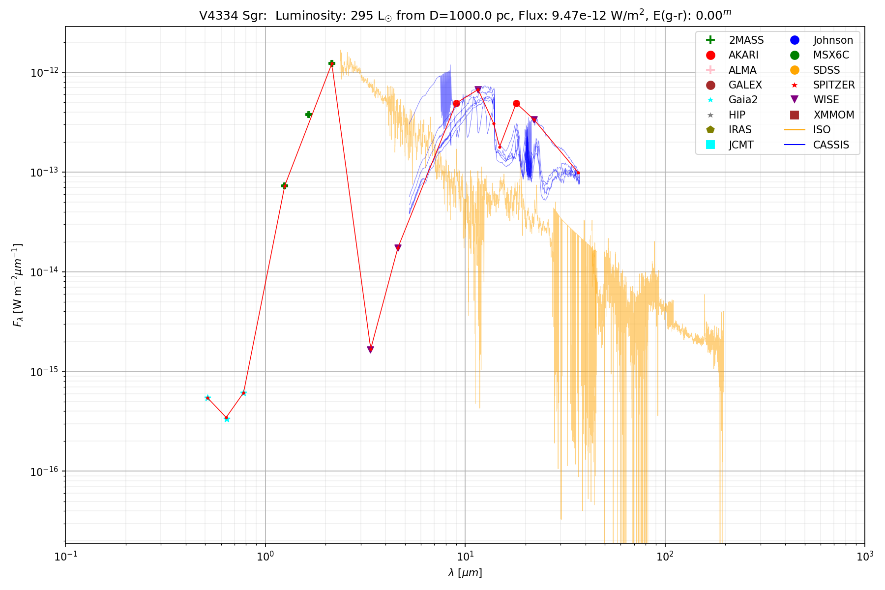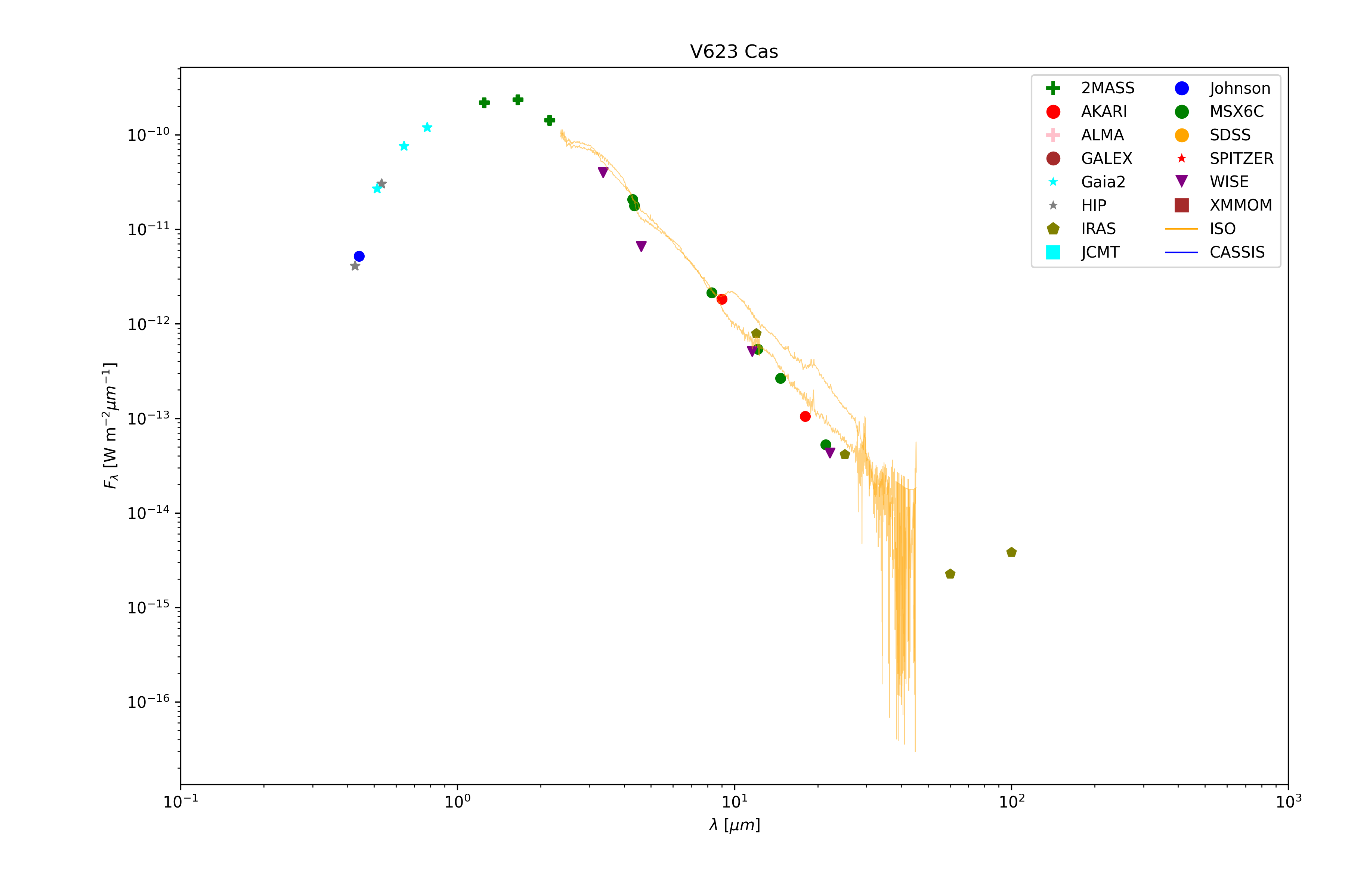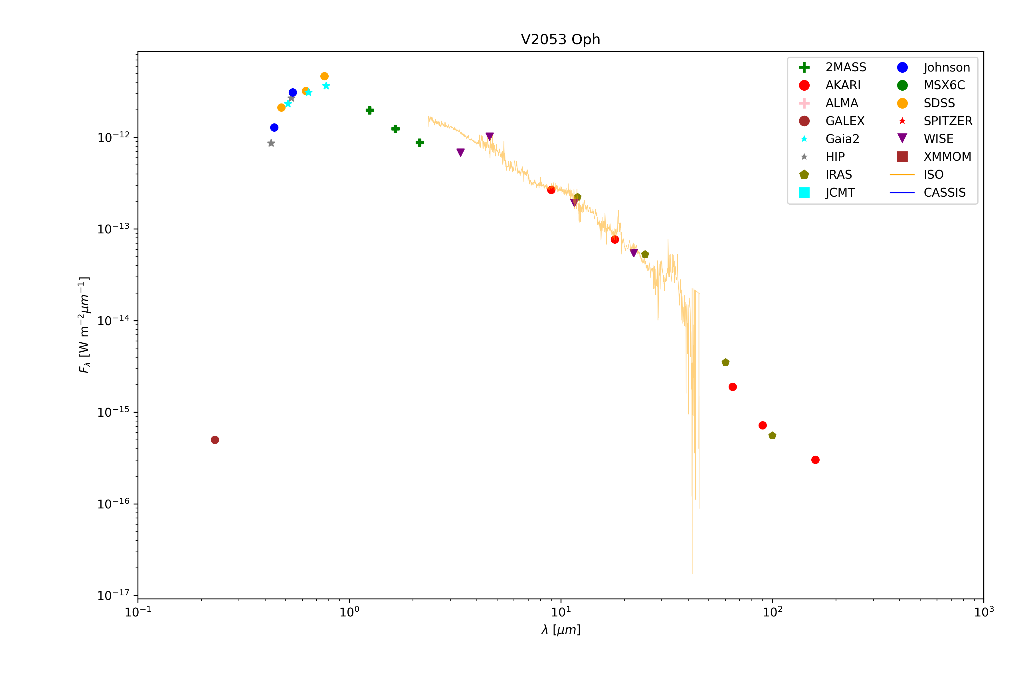 So, for each object, a file with our collected photometry, a file with the SED (corrected and uncorrected for interstellar absorption), a JSON containing all defined and collected data, and an archive with all ISO and Spitzer data and spectra (if available) are available.