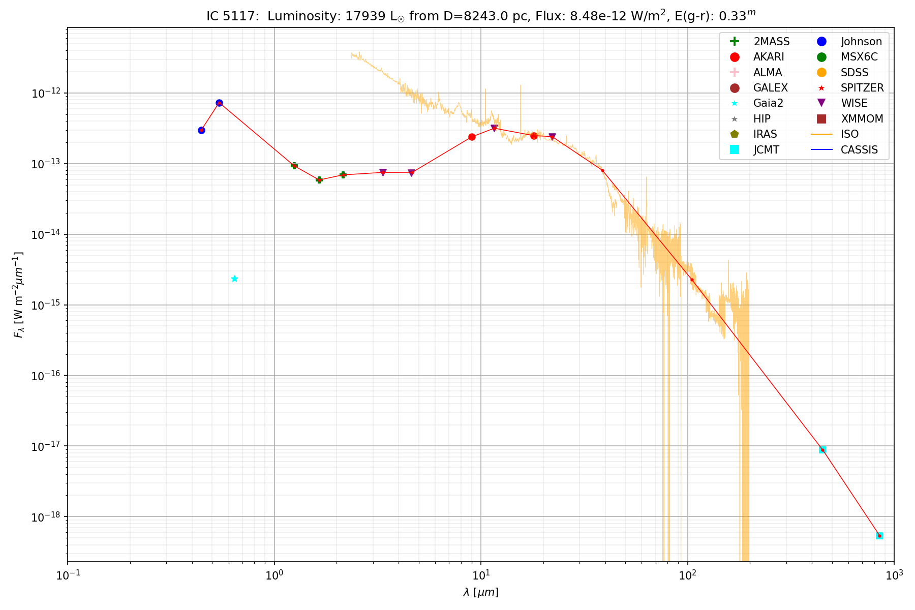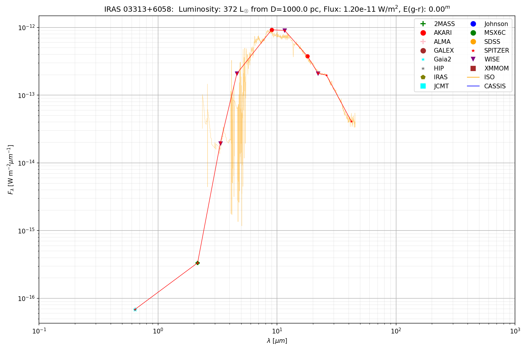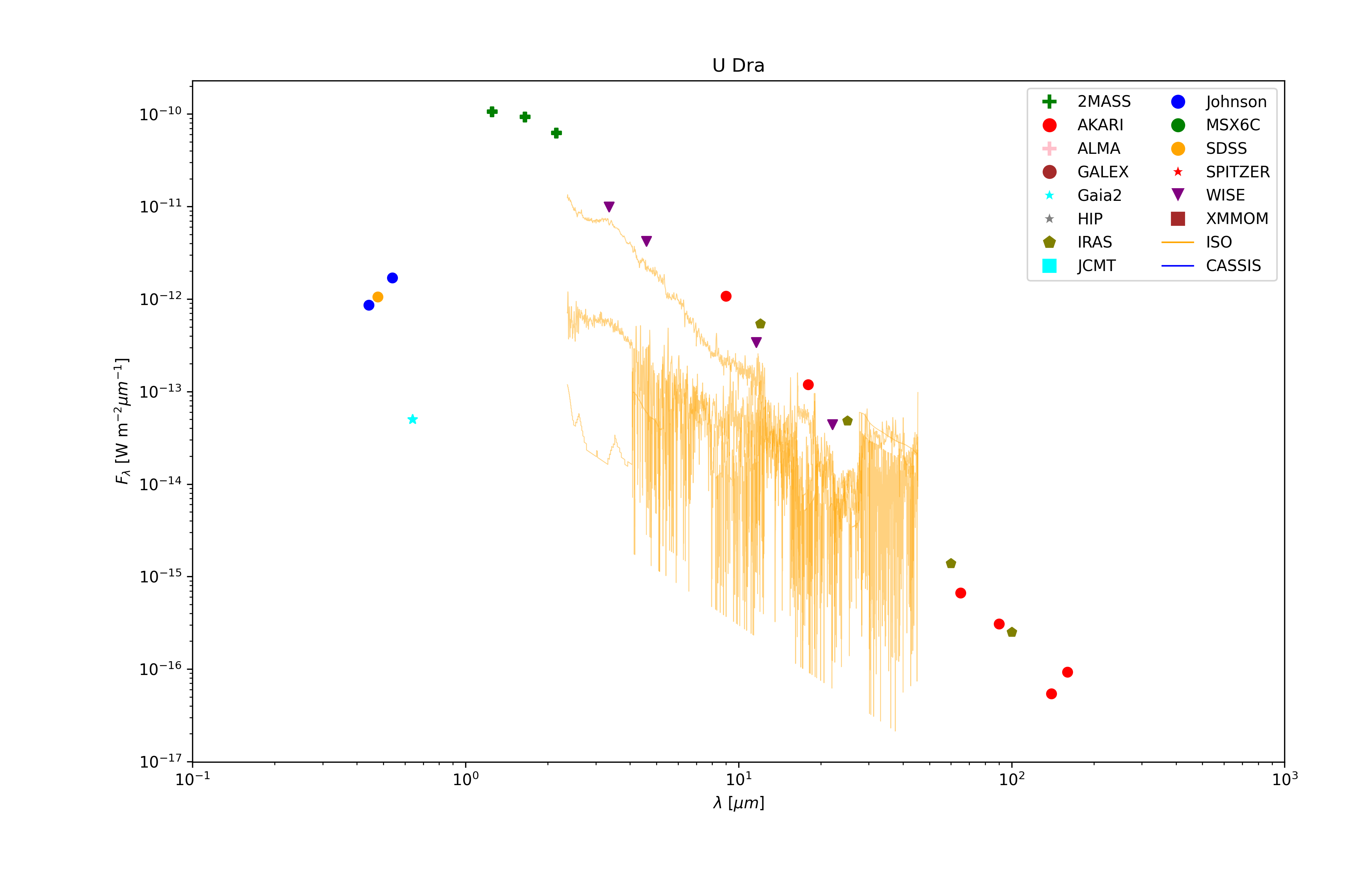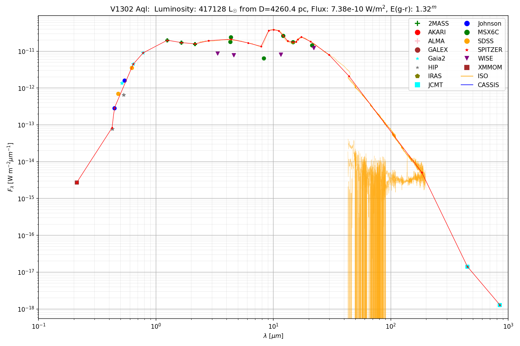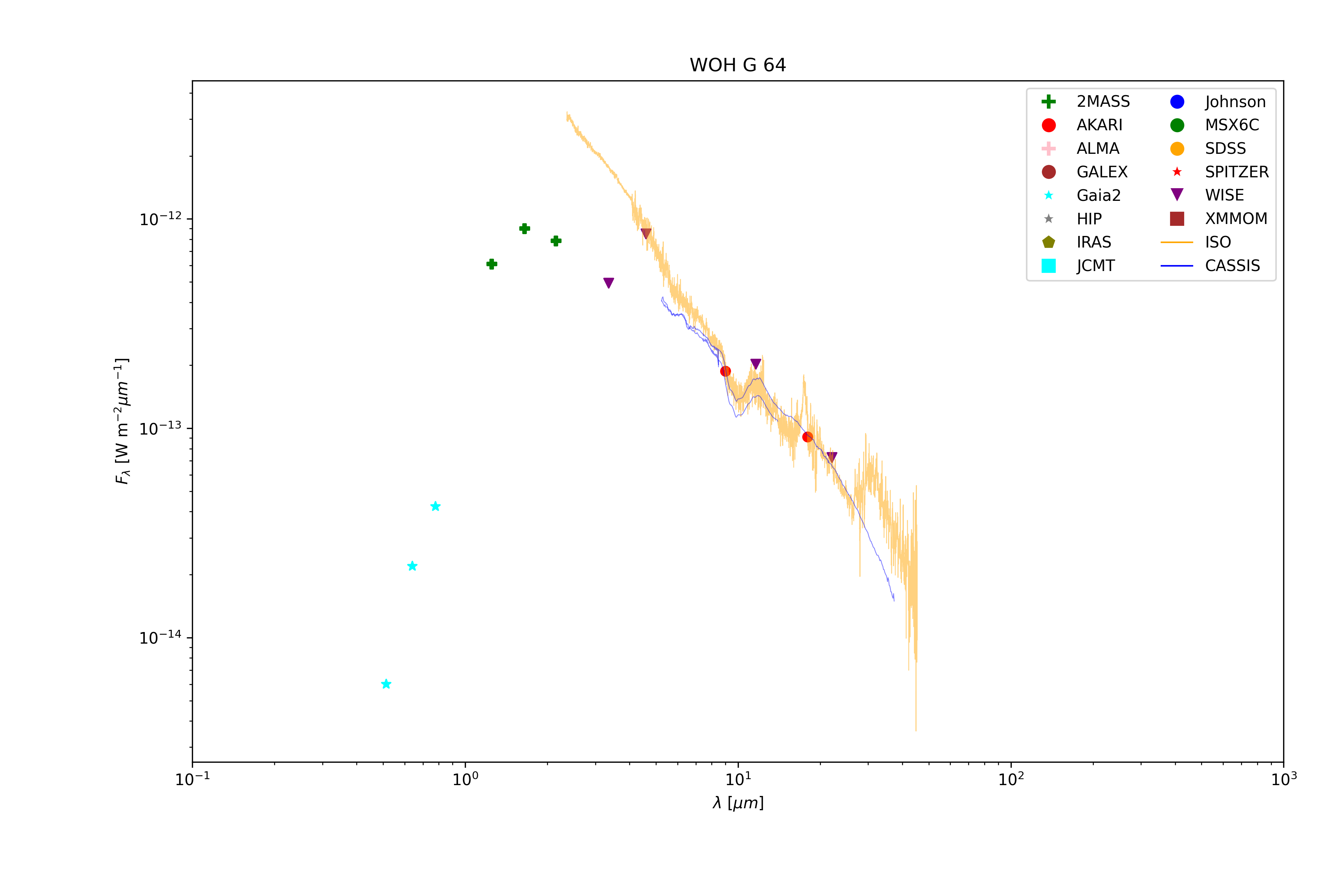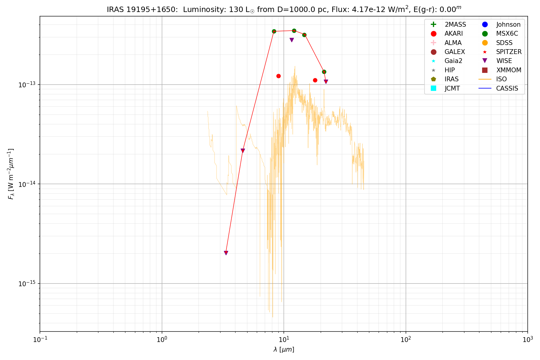 So, for each object, a file with our collected photometry, a file with the SED (corrected and uncorrected for interstellar absorption), a JSON containing all defined and collected data, and an archive with all ISO and Spitzer data and spectra (if available) are available.