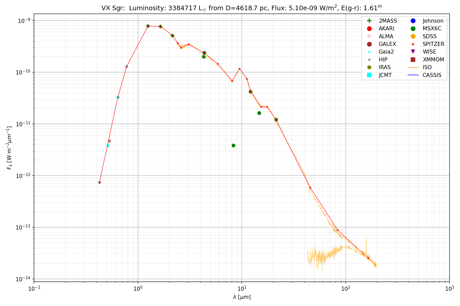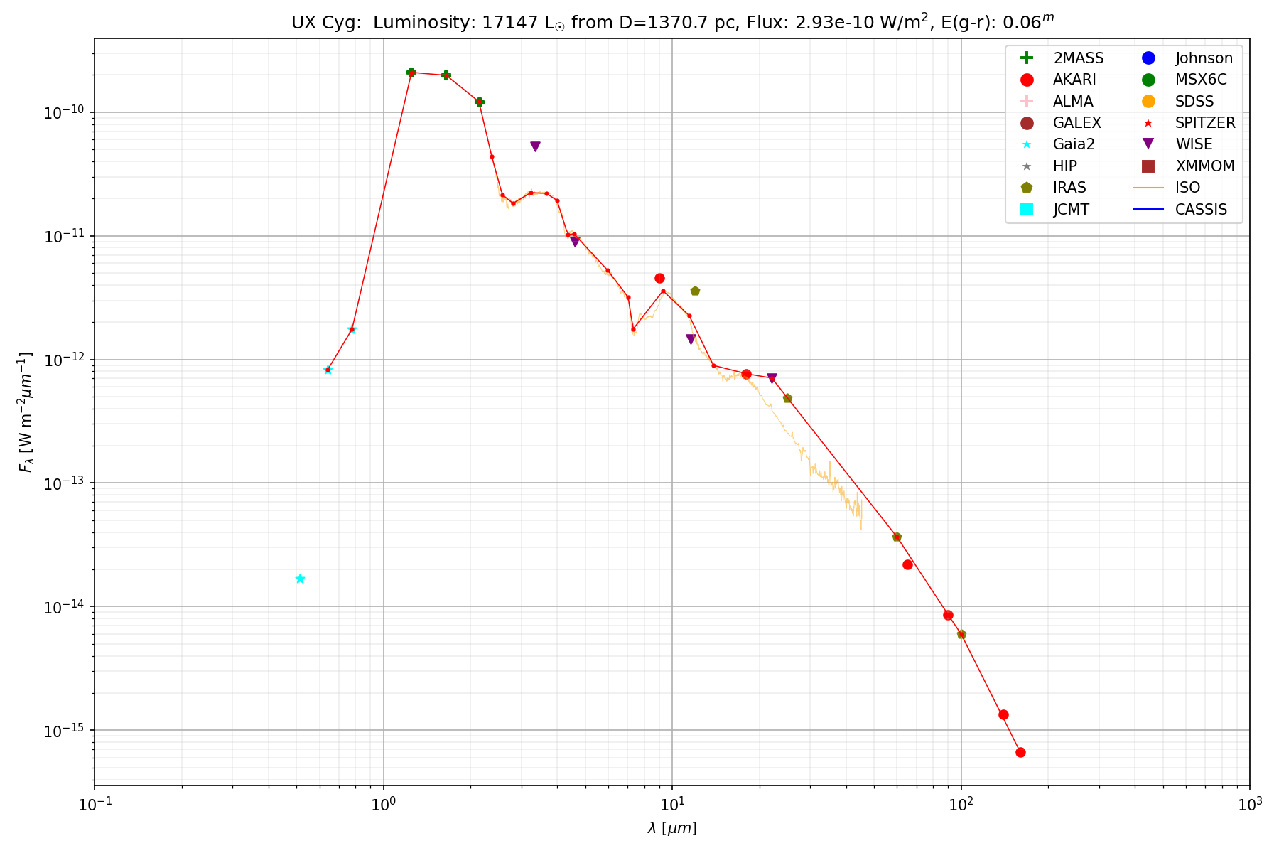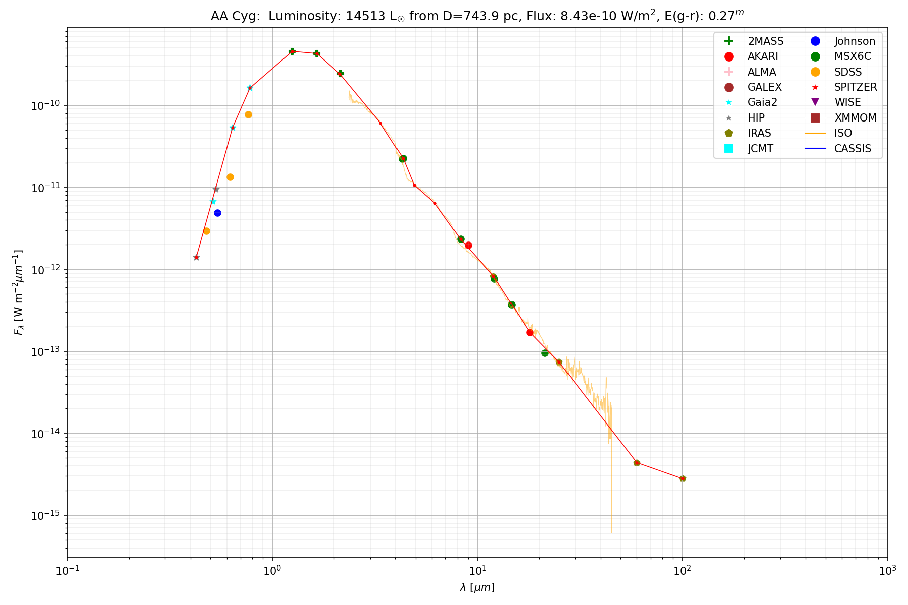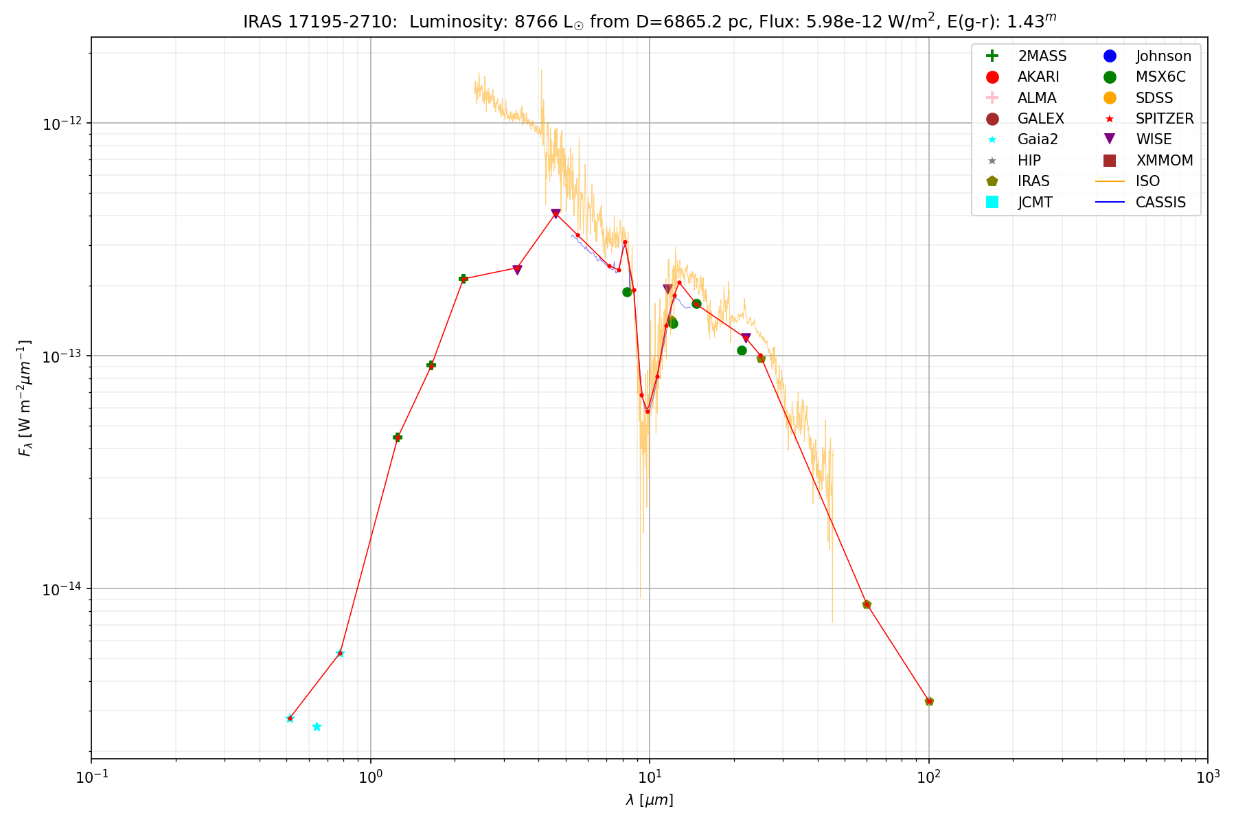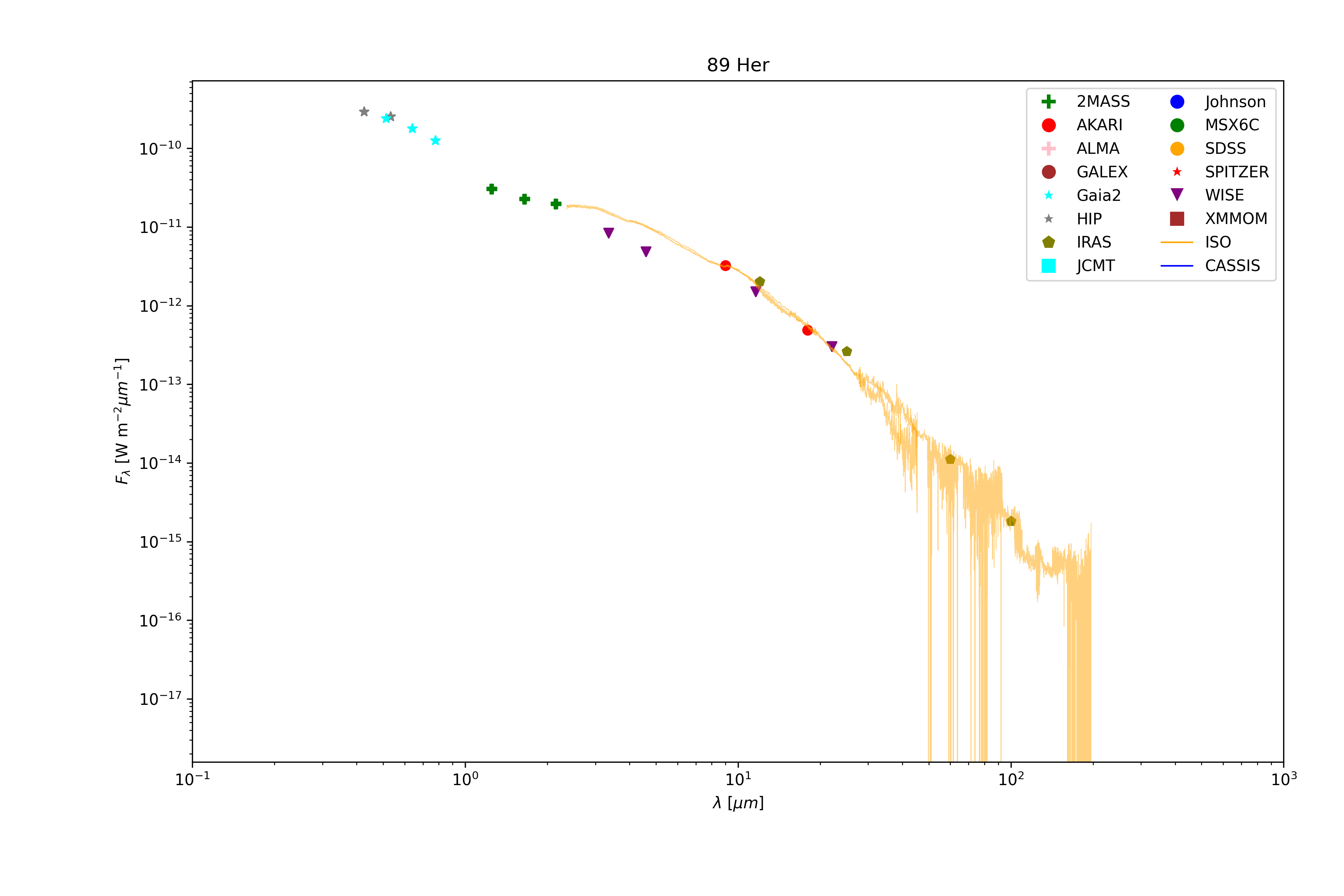 So, for each object, a file with our collected photometry, a file with the SED (corrected and uncorrected for interstellar absorption), a JSON containing all defined and collected data, and an archive with all ISO and Spitzer data and spectra (if available) are available.