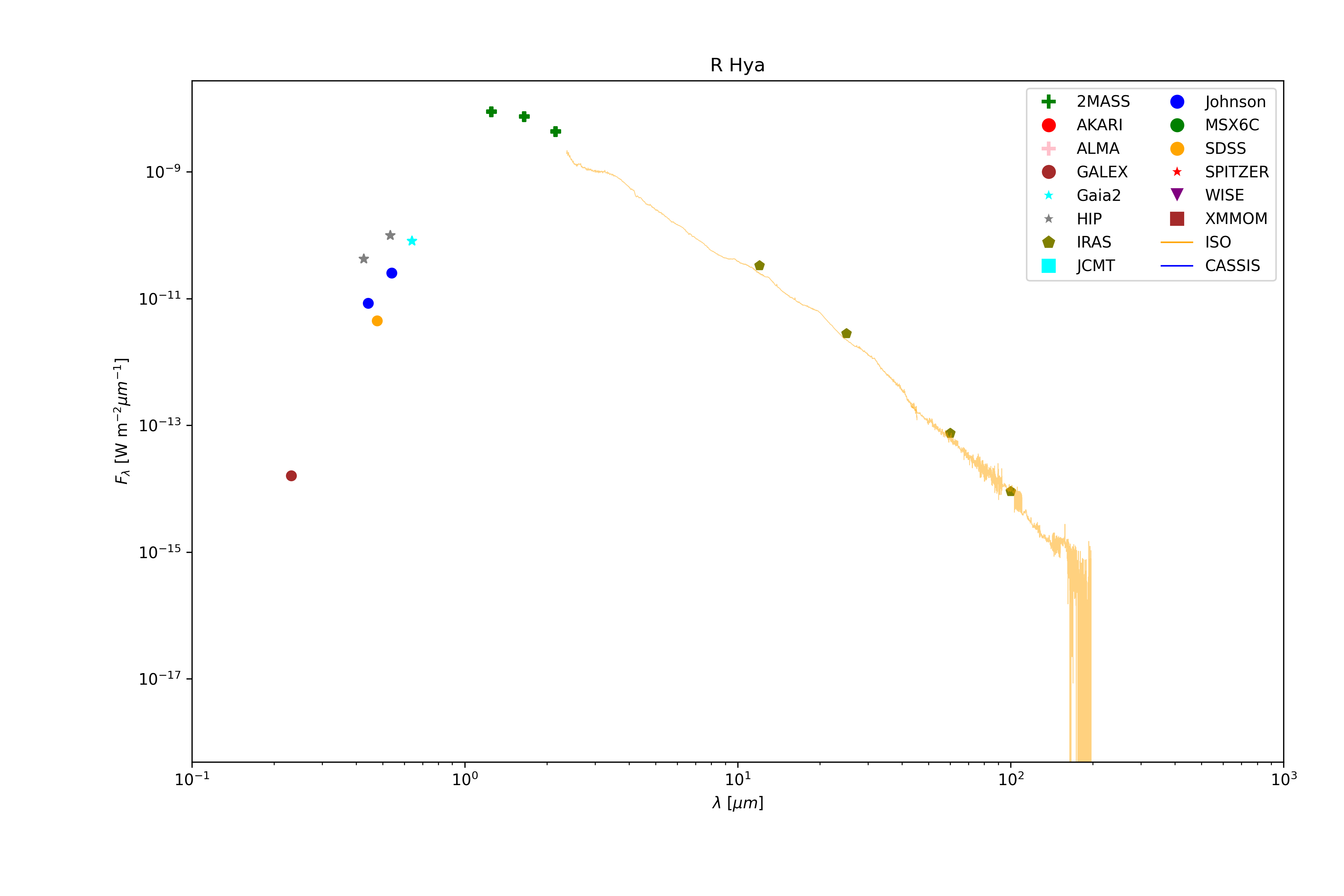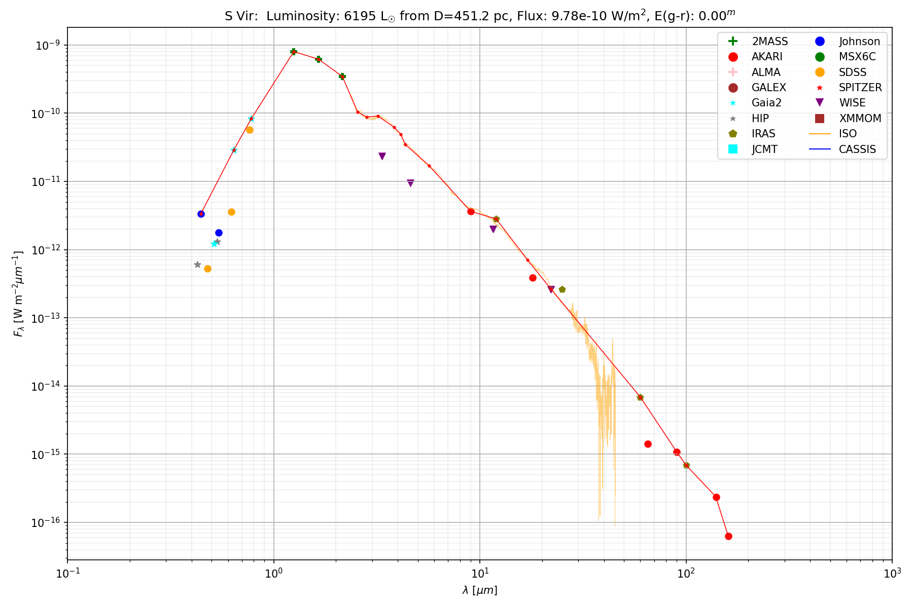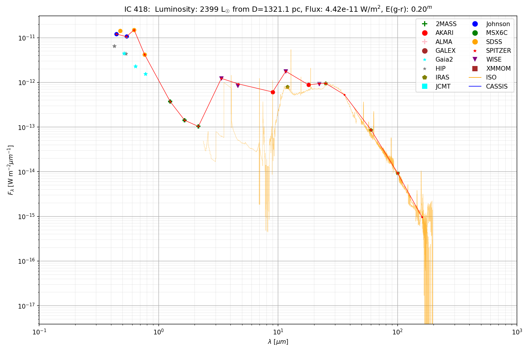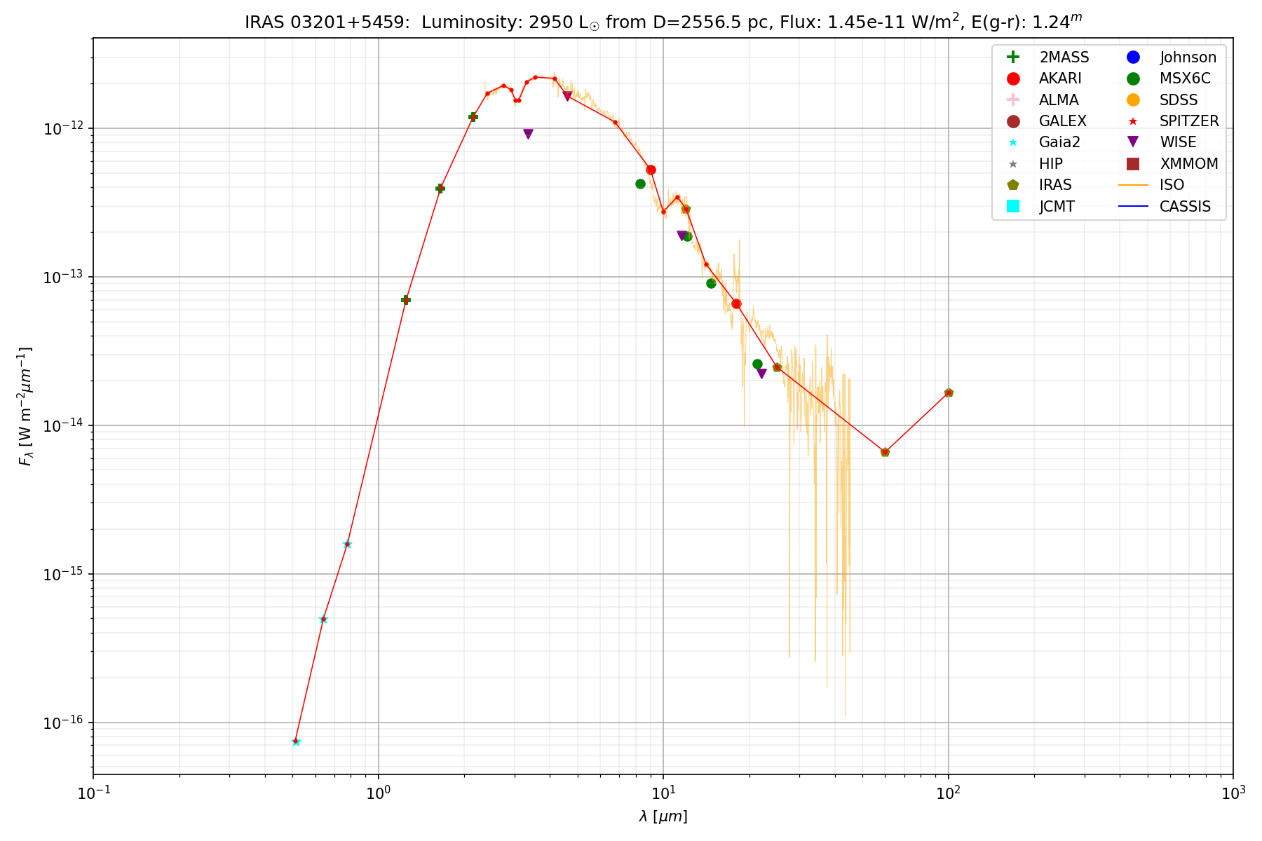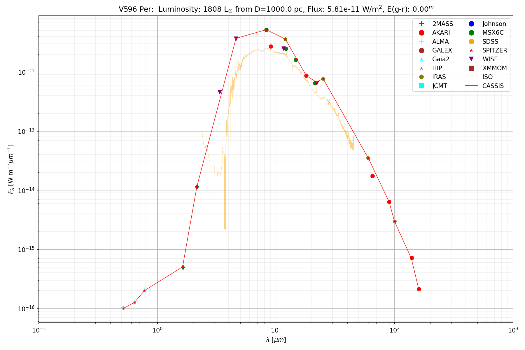 So, for each object, a file with our collected photometry, a file with the SED (corrected and uncorrected for interstellar absorption), a JSON containing all defined and collected data, and an archive with all ISO and Spitzer data and spectra (if available) are available.