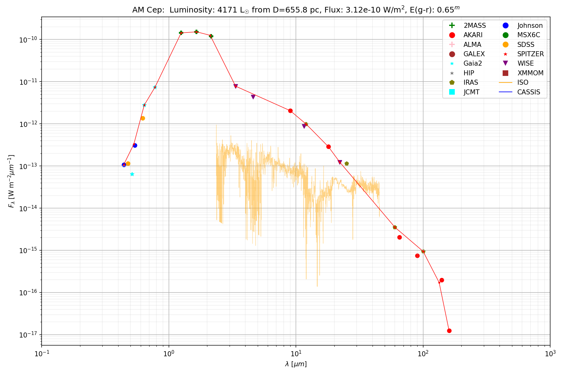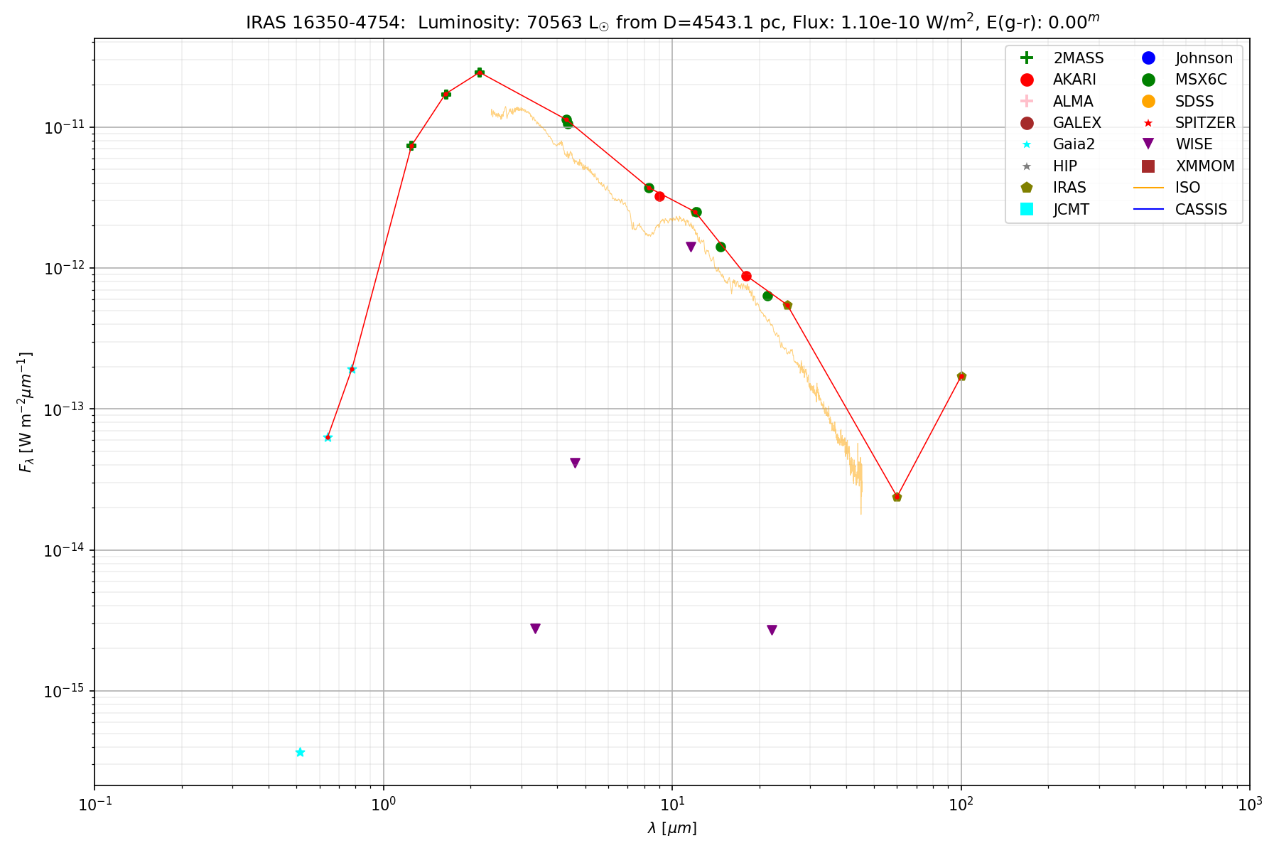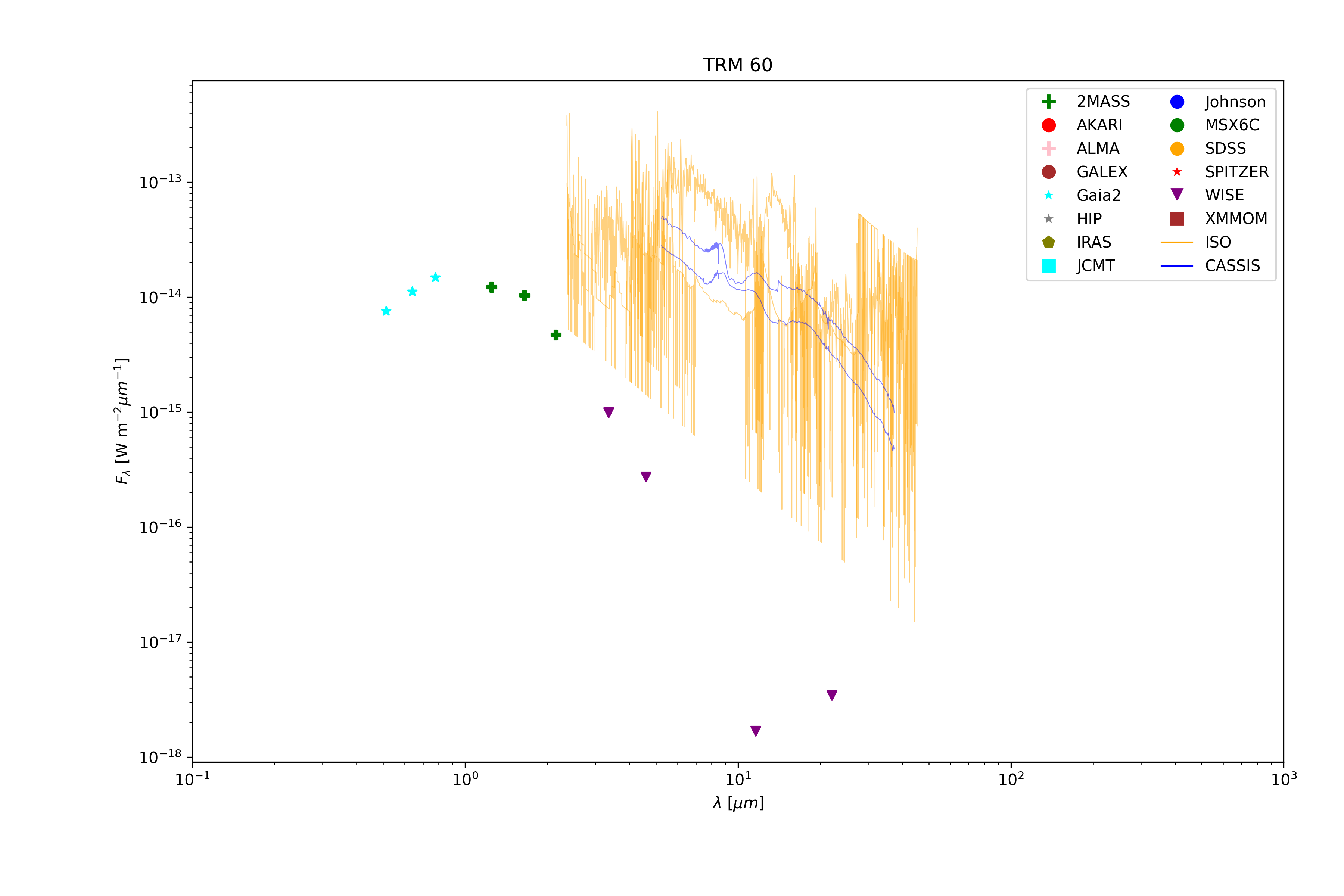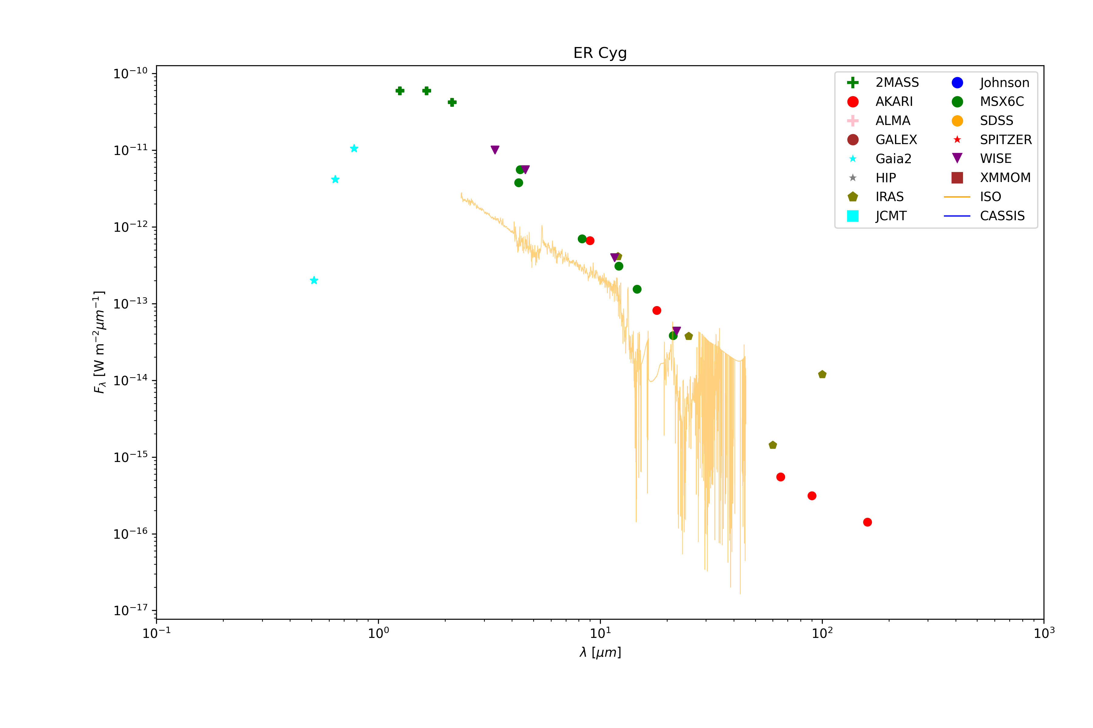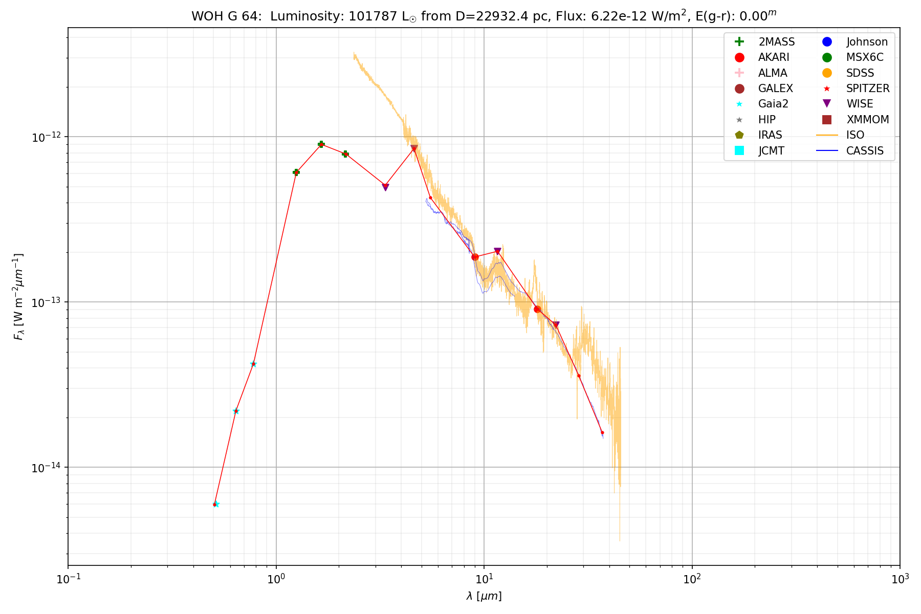 So, for each object, a file with our collected photometry, a file with the SED (corrected and uncorrected for interstellar absorption), a JSON containing all defined and collected data, and an archive with all ISO and Spitzer data and spectra (if available) are available.