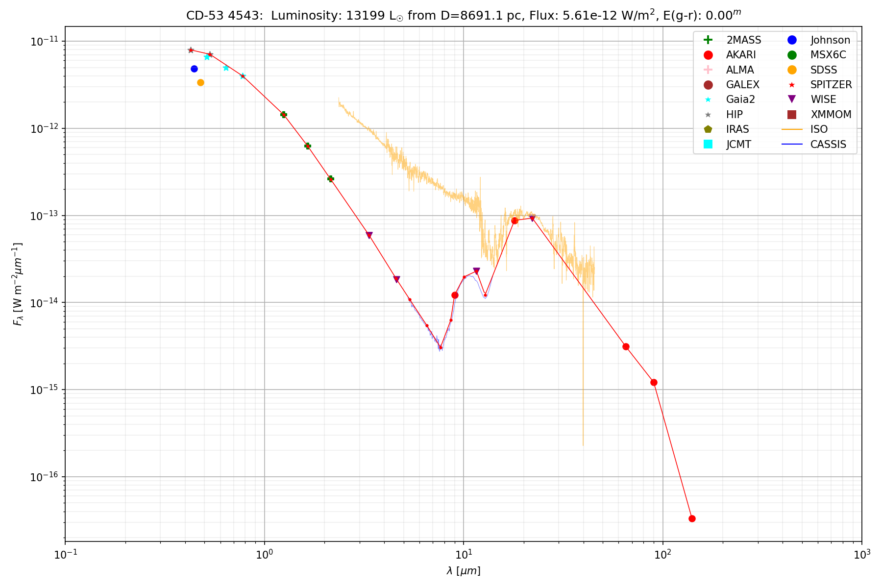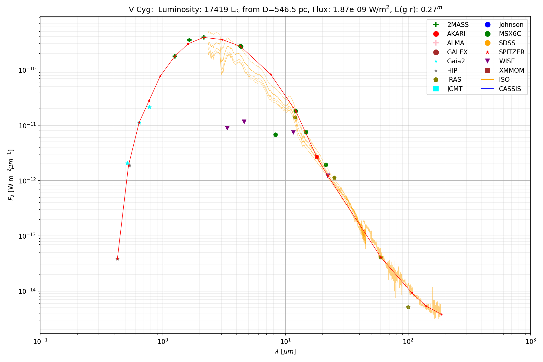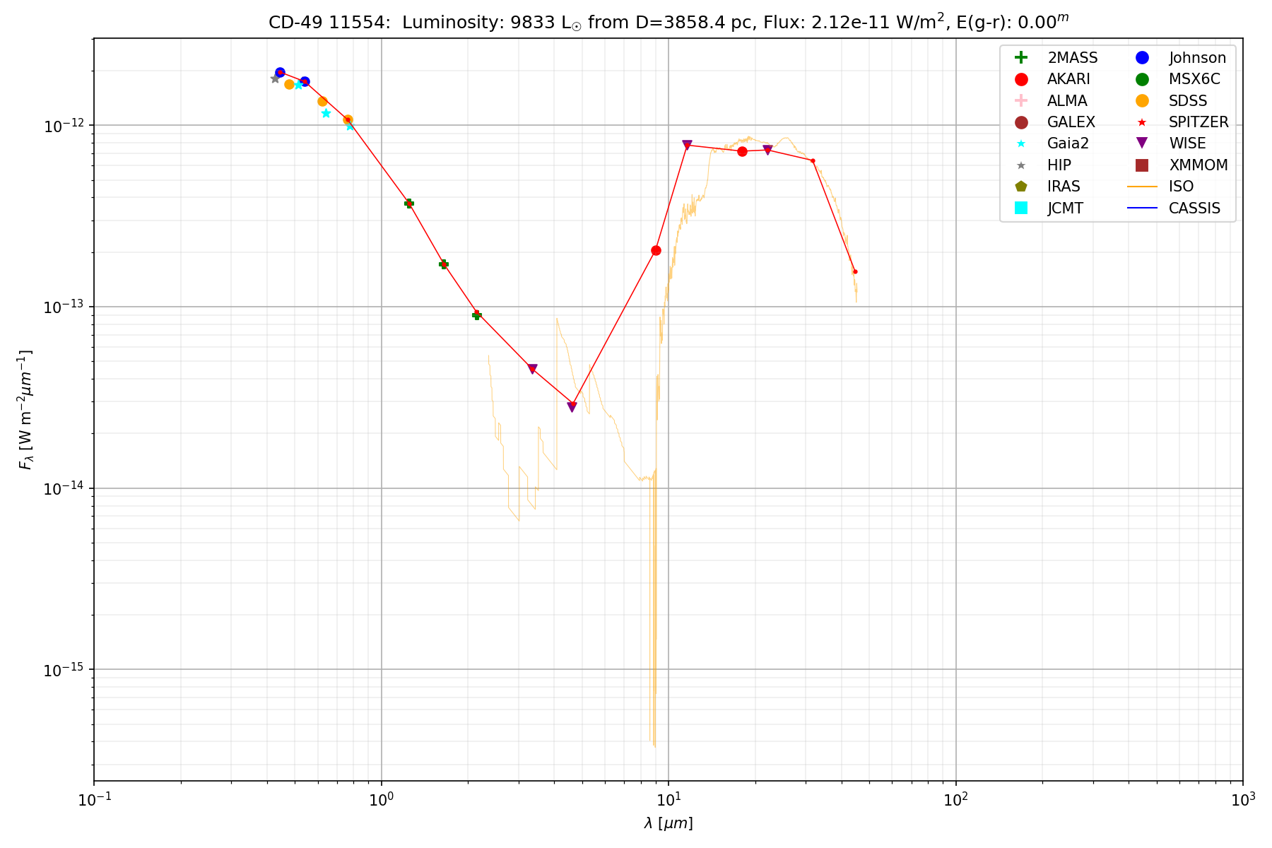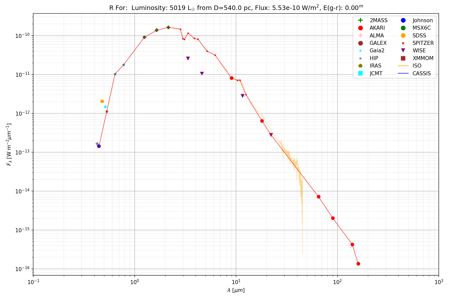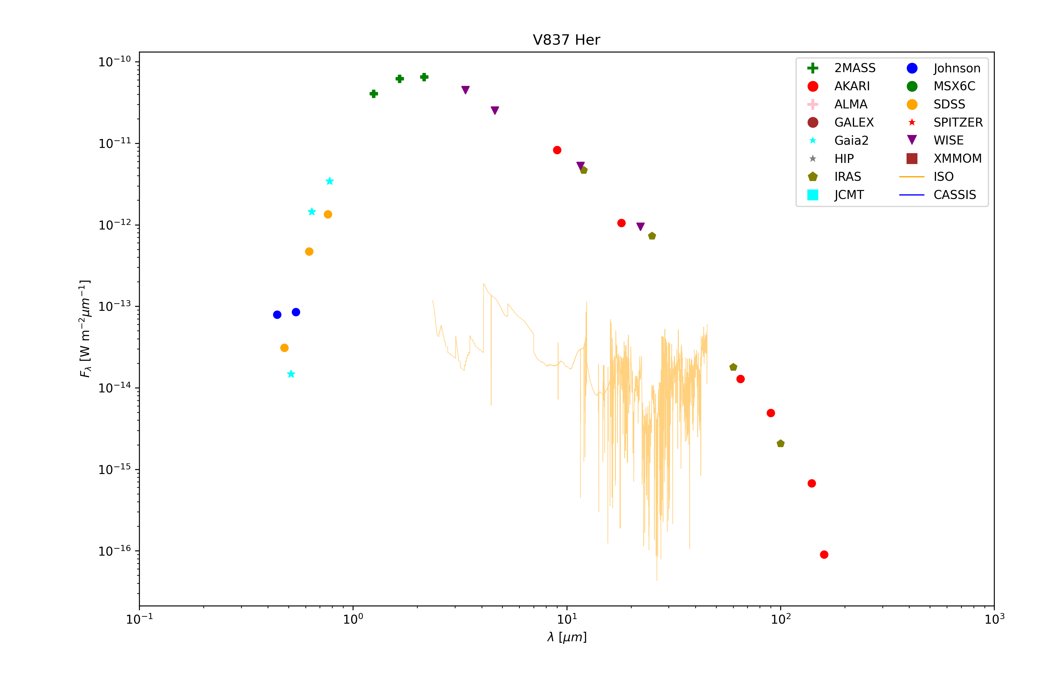So, for each object, a file with our collected photometry, a file with the SED (corrected and uncorrected for interstellar absorption), a JSON containing all defined and collected data, and an archive with all ISO and Spitzer data and spectra (if available) are available.
