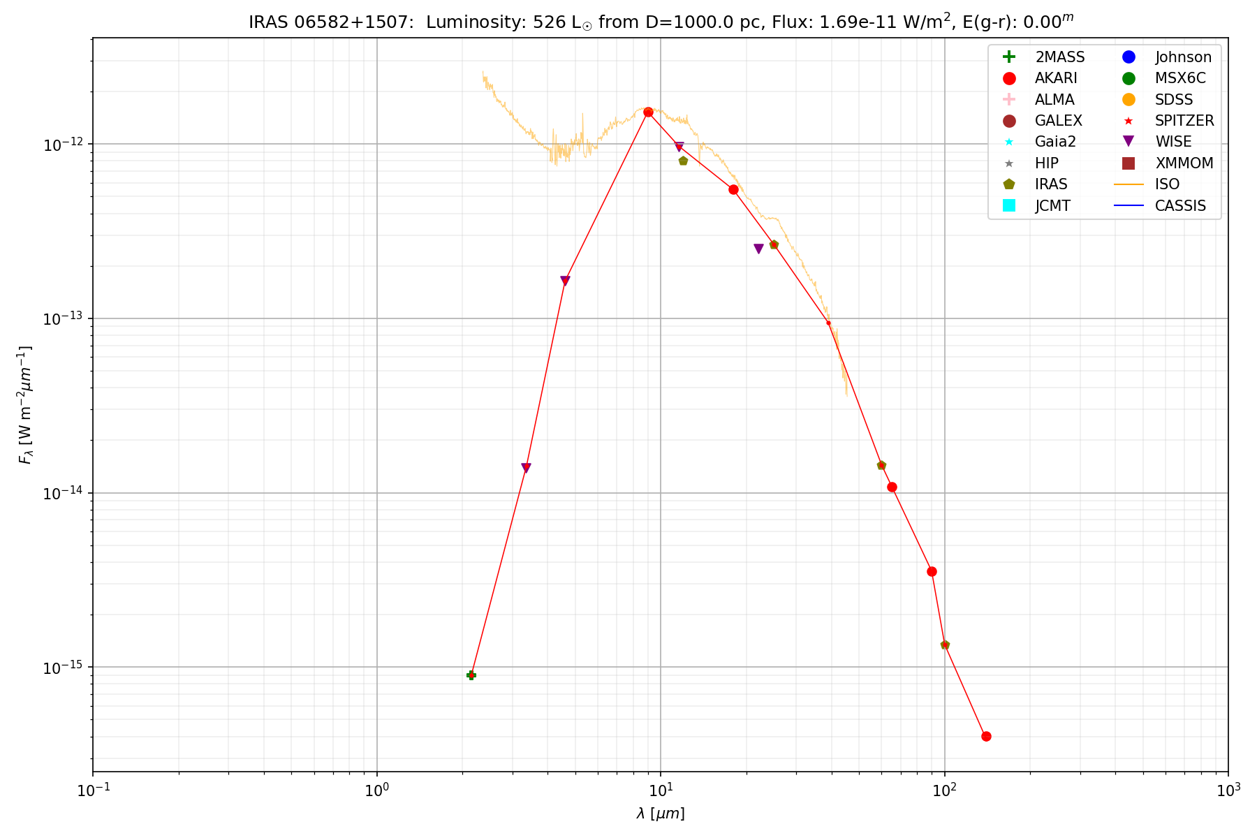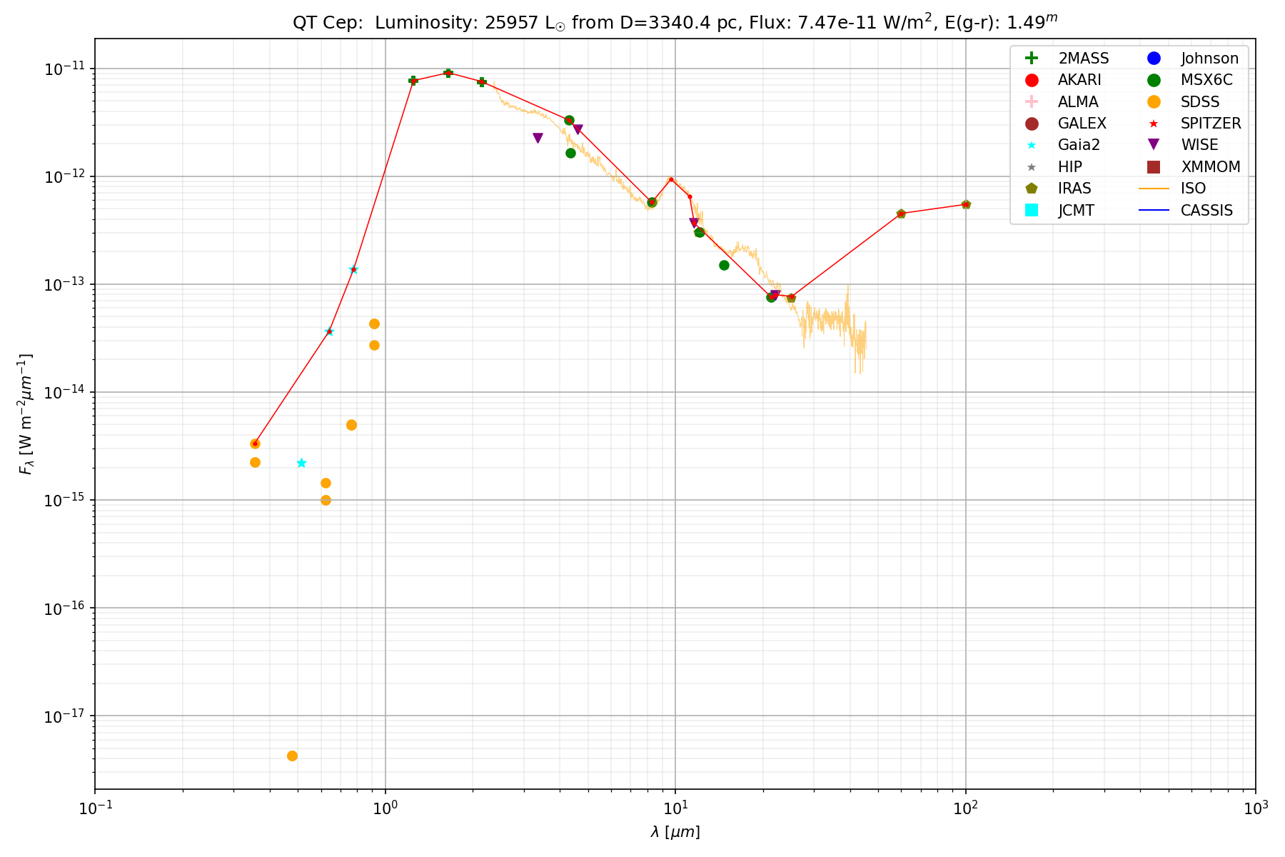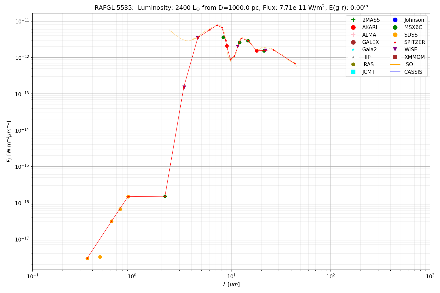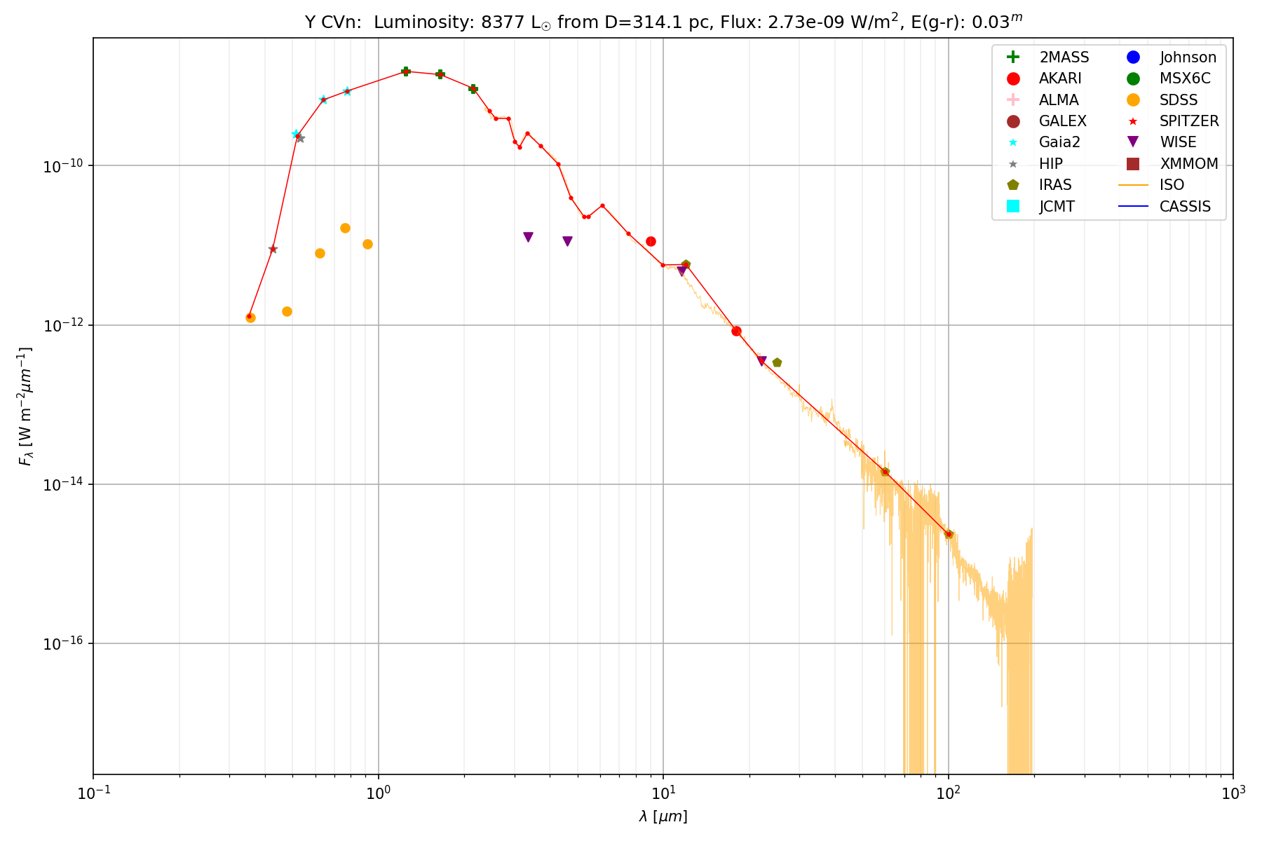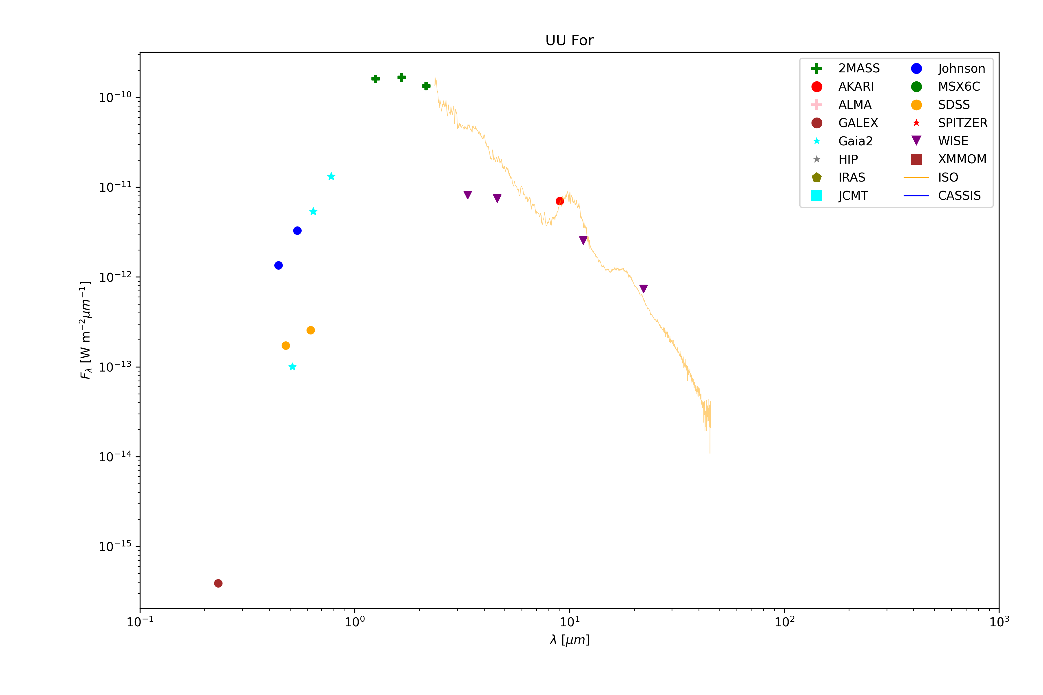 So, for each object, a file with our collected photometry, a file with the SED (corrected and uncorrected for interstellar absorption), a JSON containing all defined and collected data, and an archive with all ISO and Spitzer data and spectra (if available) are available.