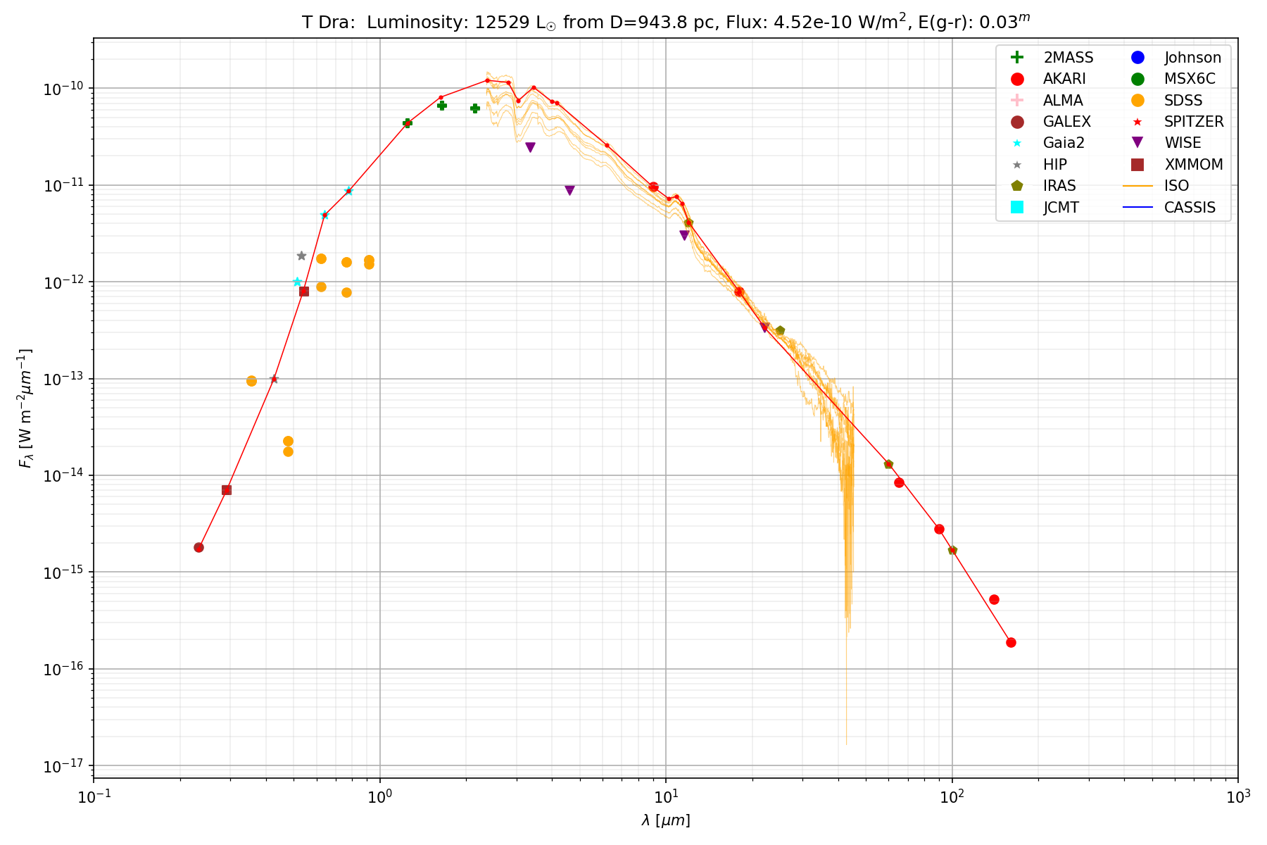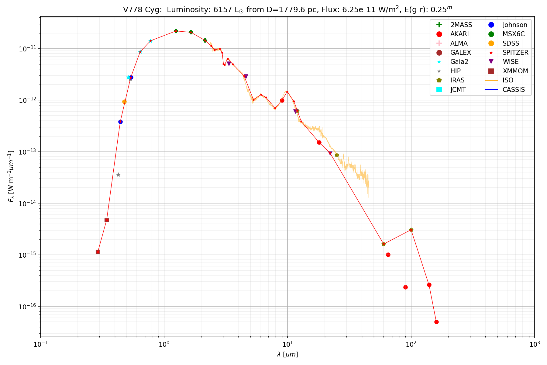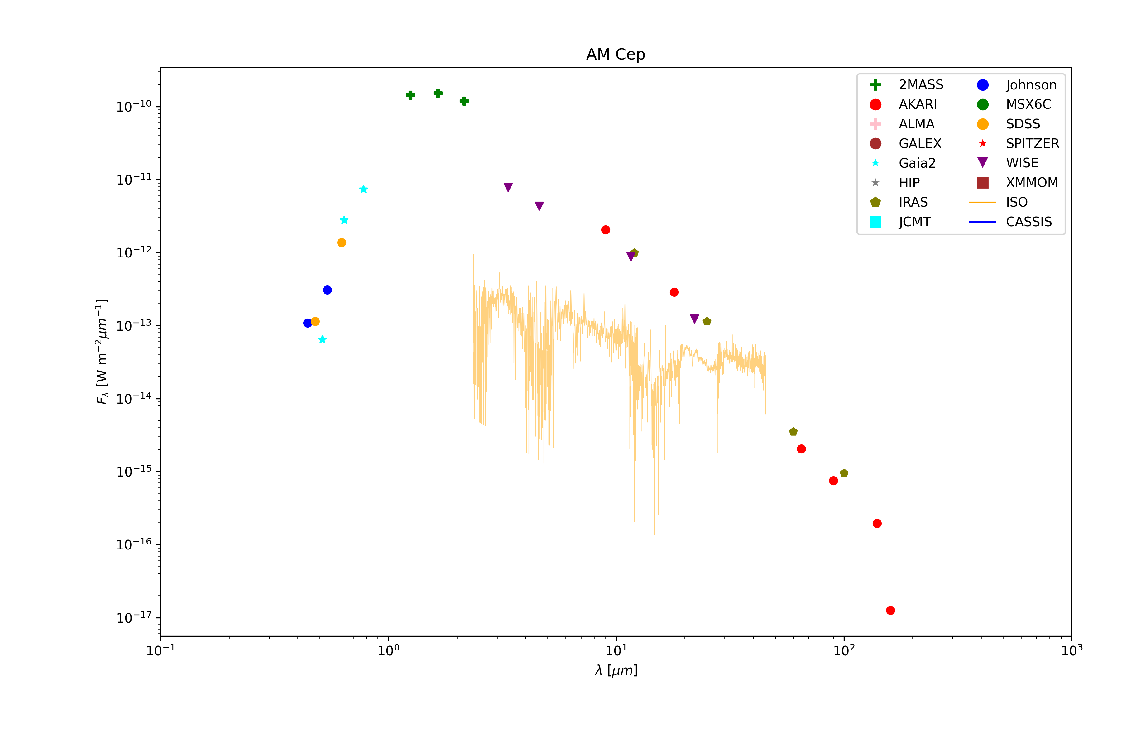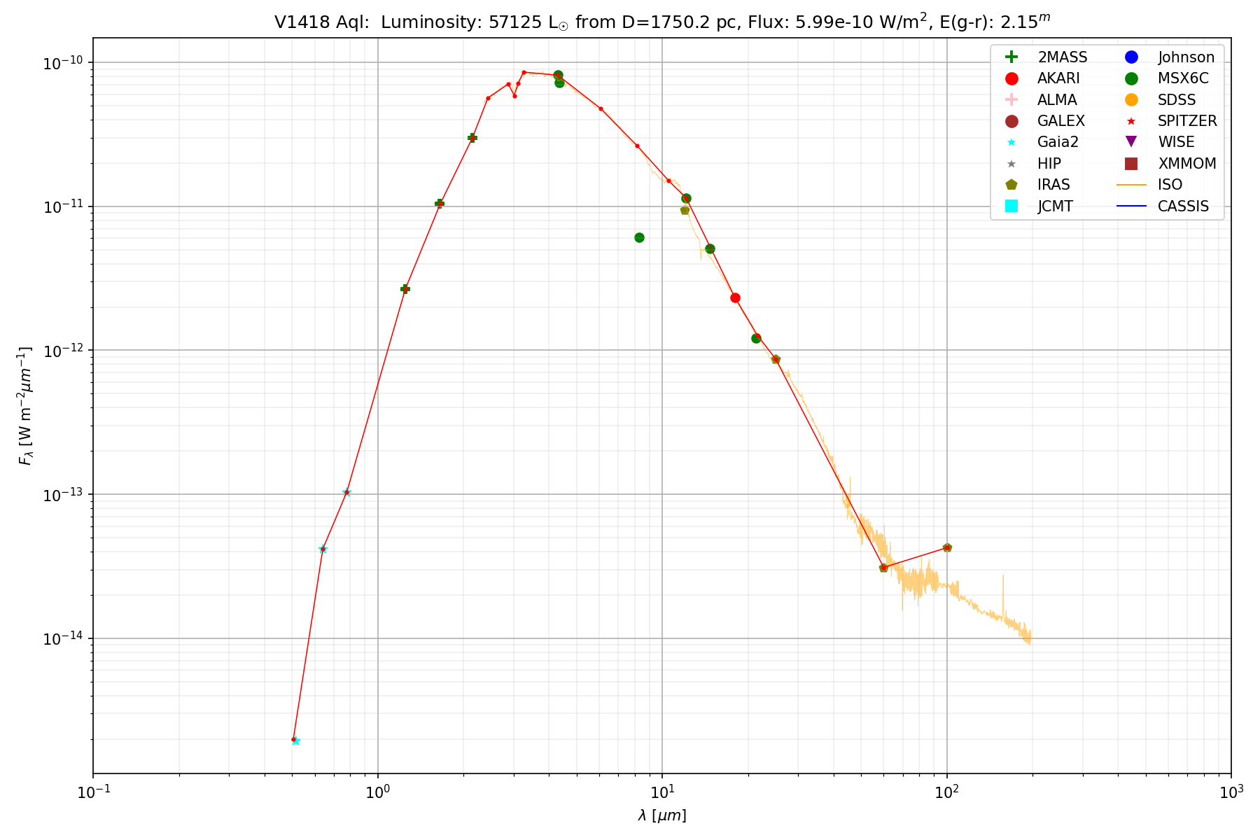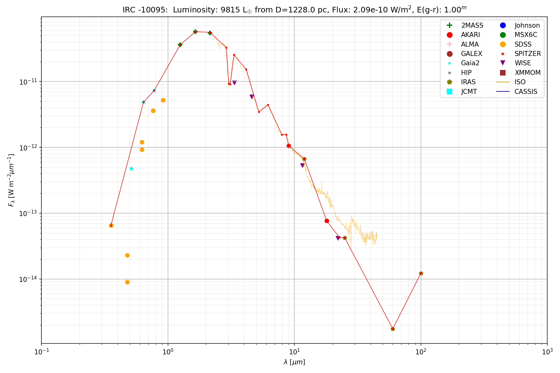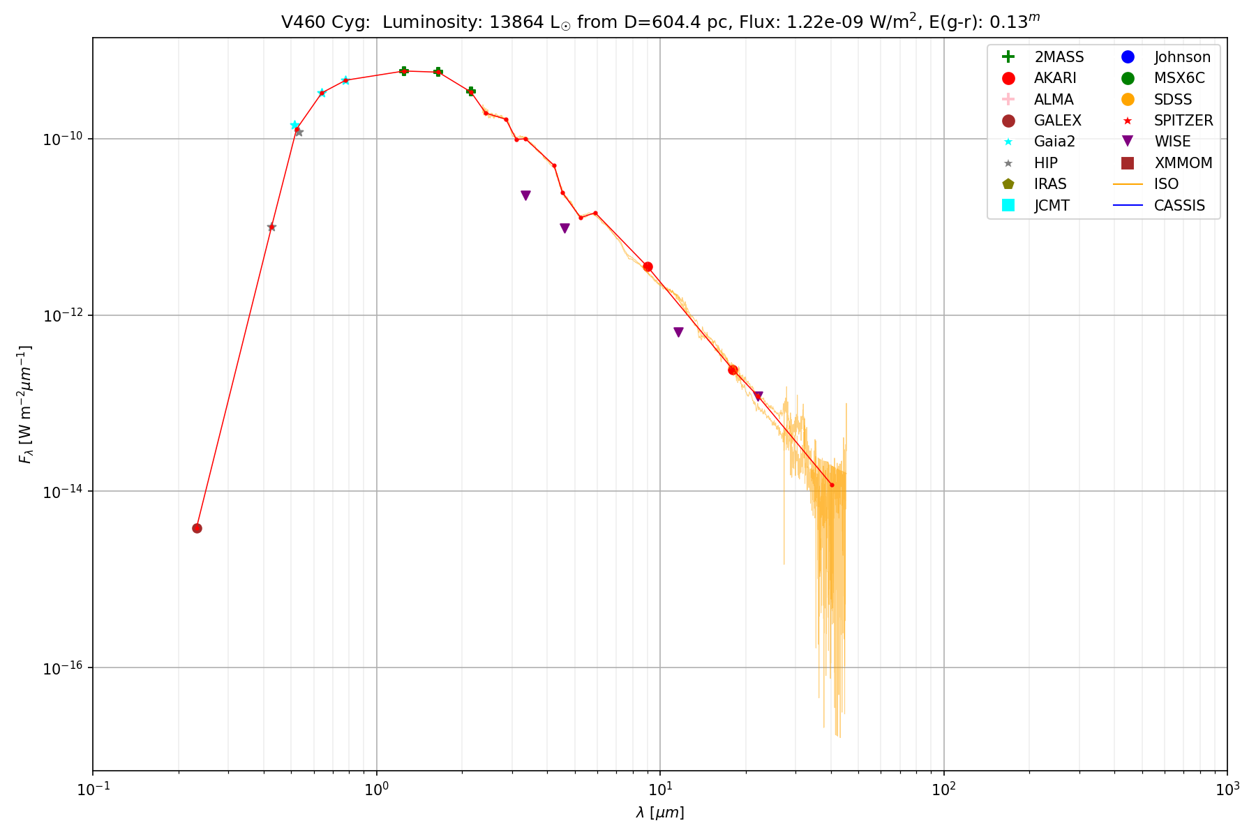 So, for each object, a file with our collected photometry, a file with the SED (corrected and uncorrected for interstellar absorption), a JSON containing all defined and collected data, and an archive with all ISO and Spitzer data and spectra (if available) are available.