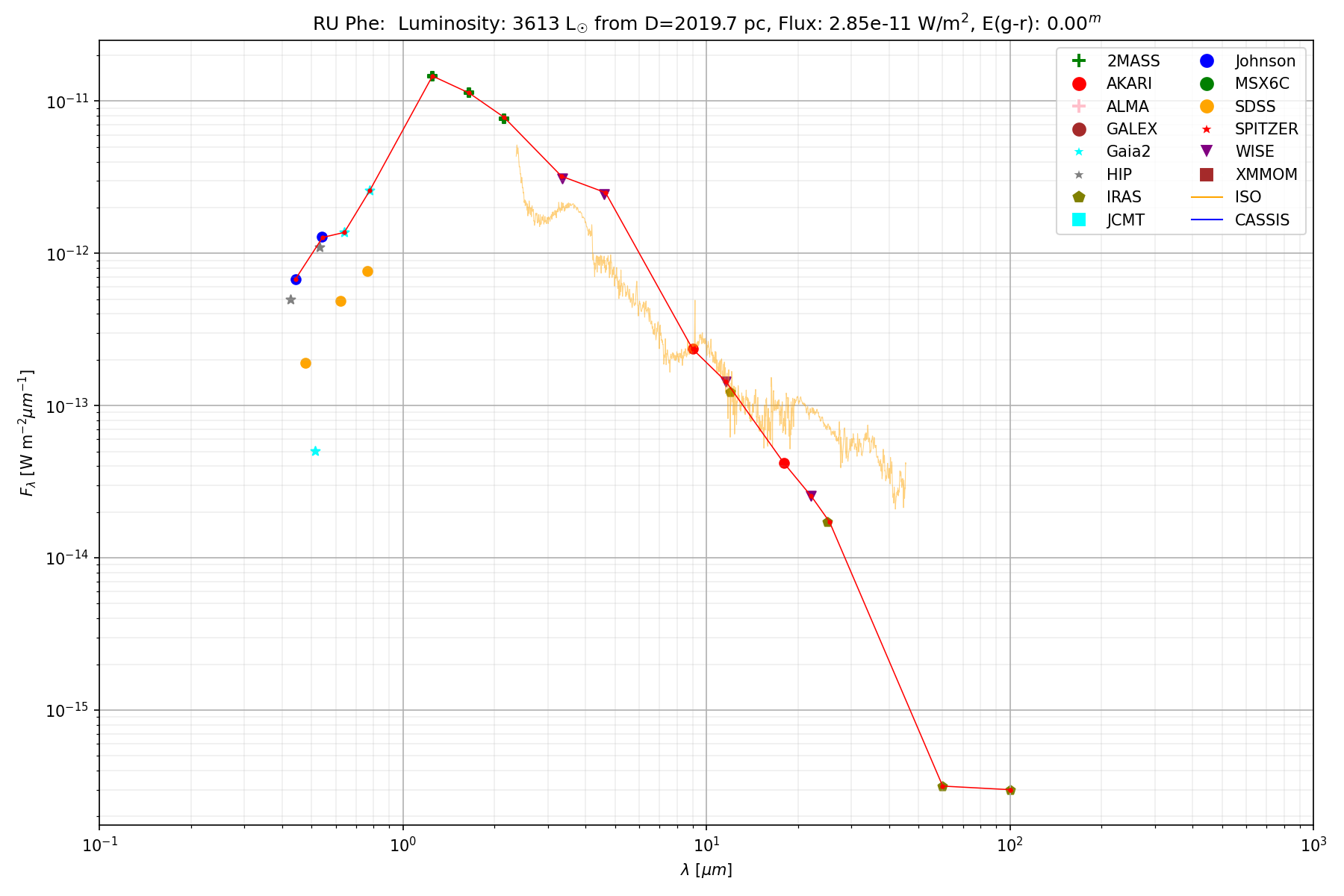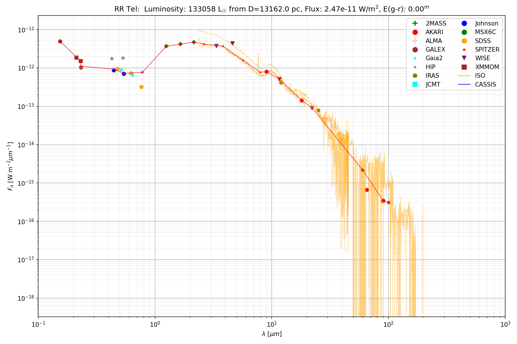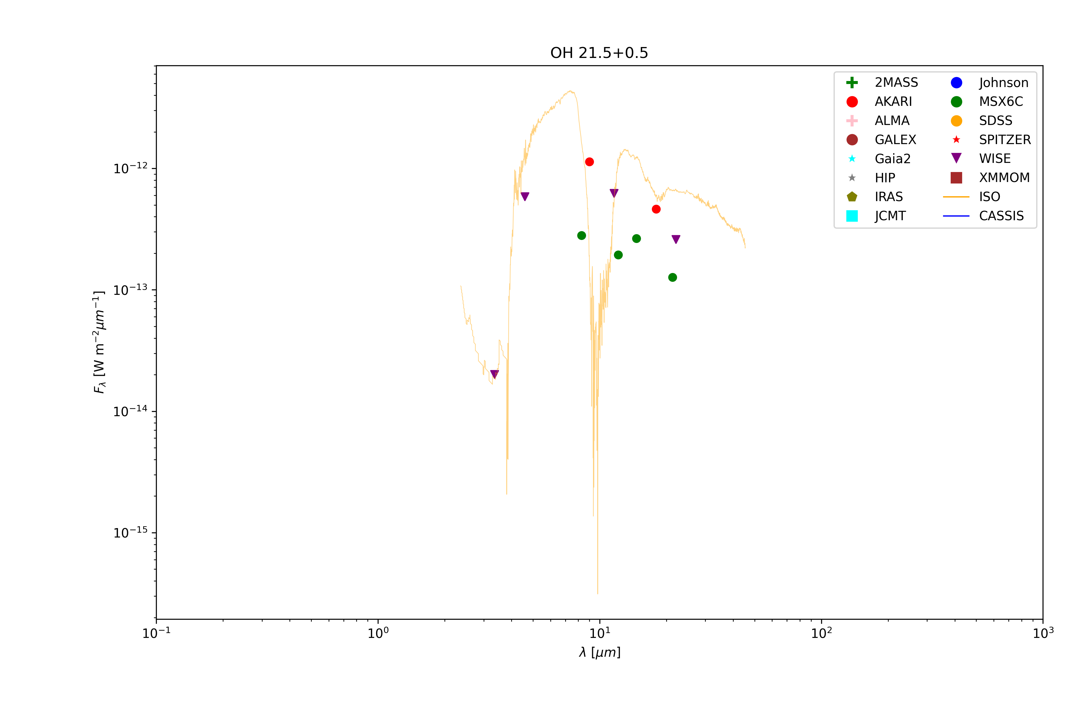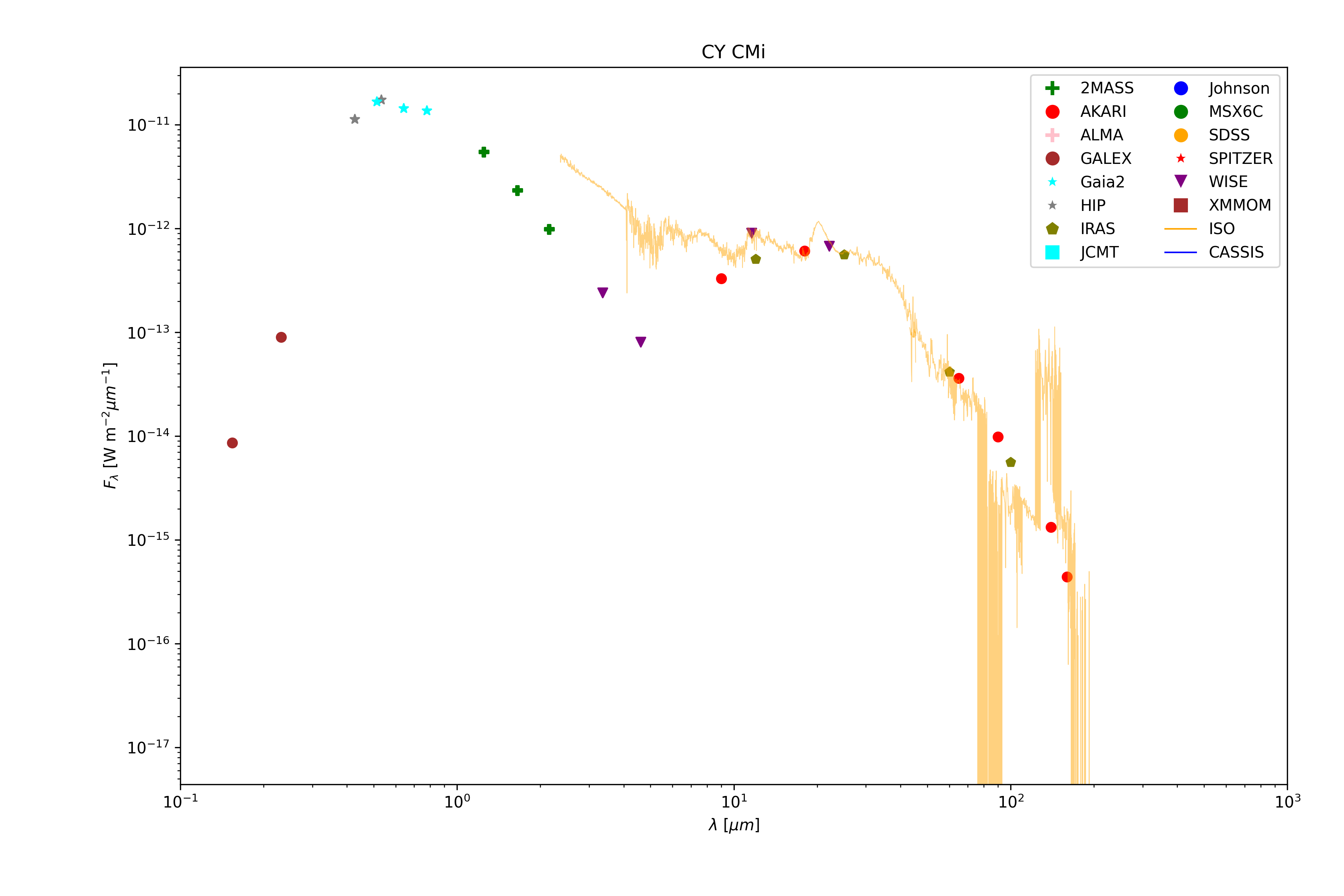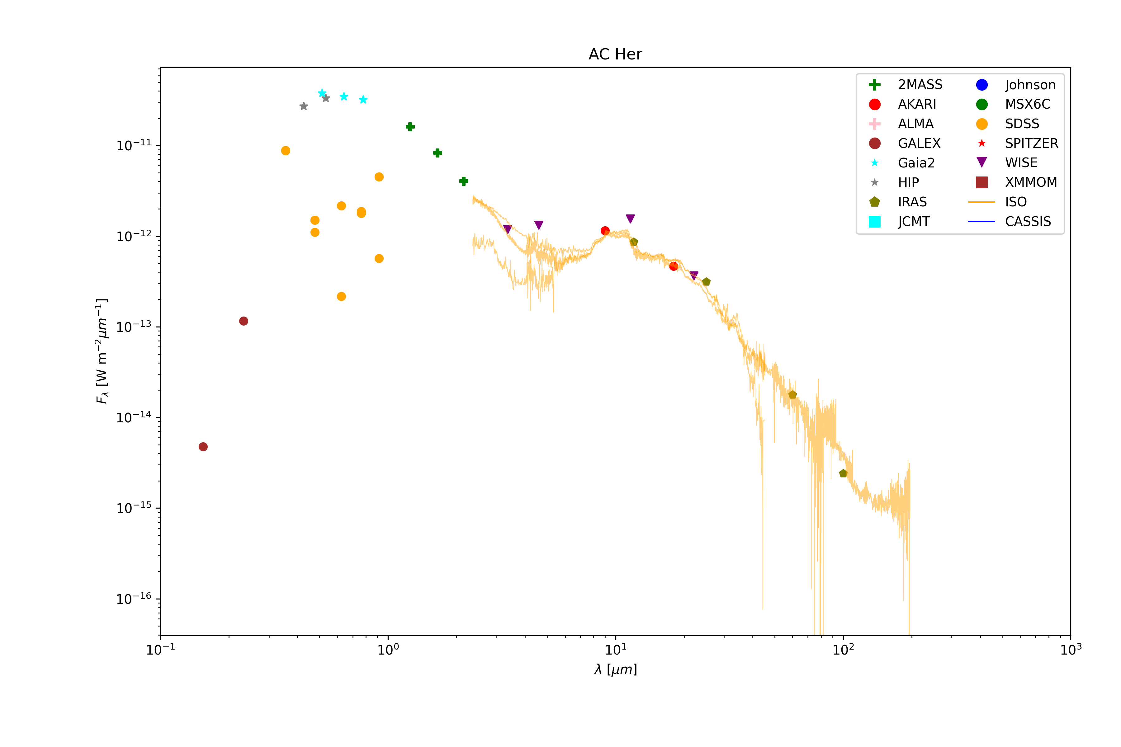 So, for each object, a file with our collected photometry, a file with the SED (corrected and uncorrected for interstellar absorption), a JSON containing all defined and collected data, and an archive with all ISO and Spitzer data and spectra (if available) are available.