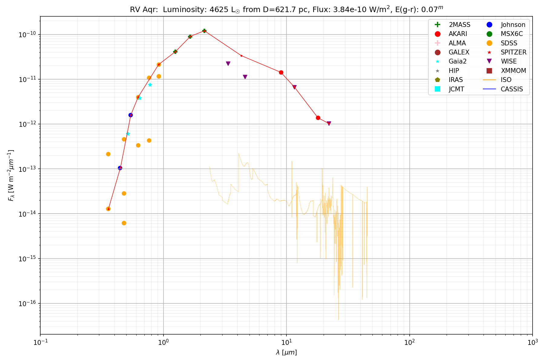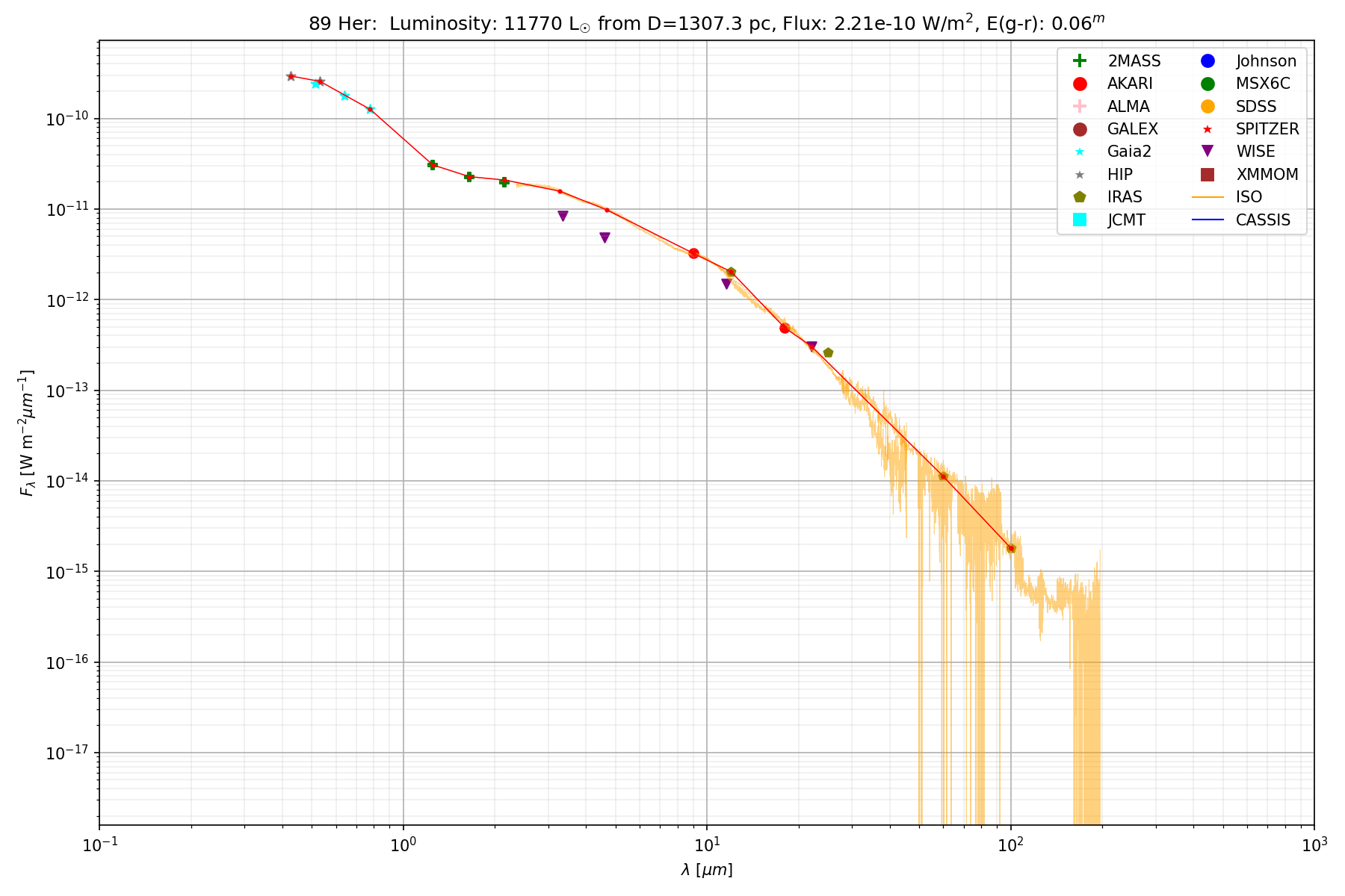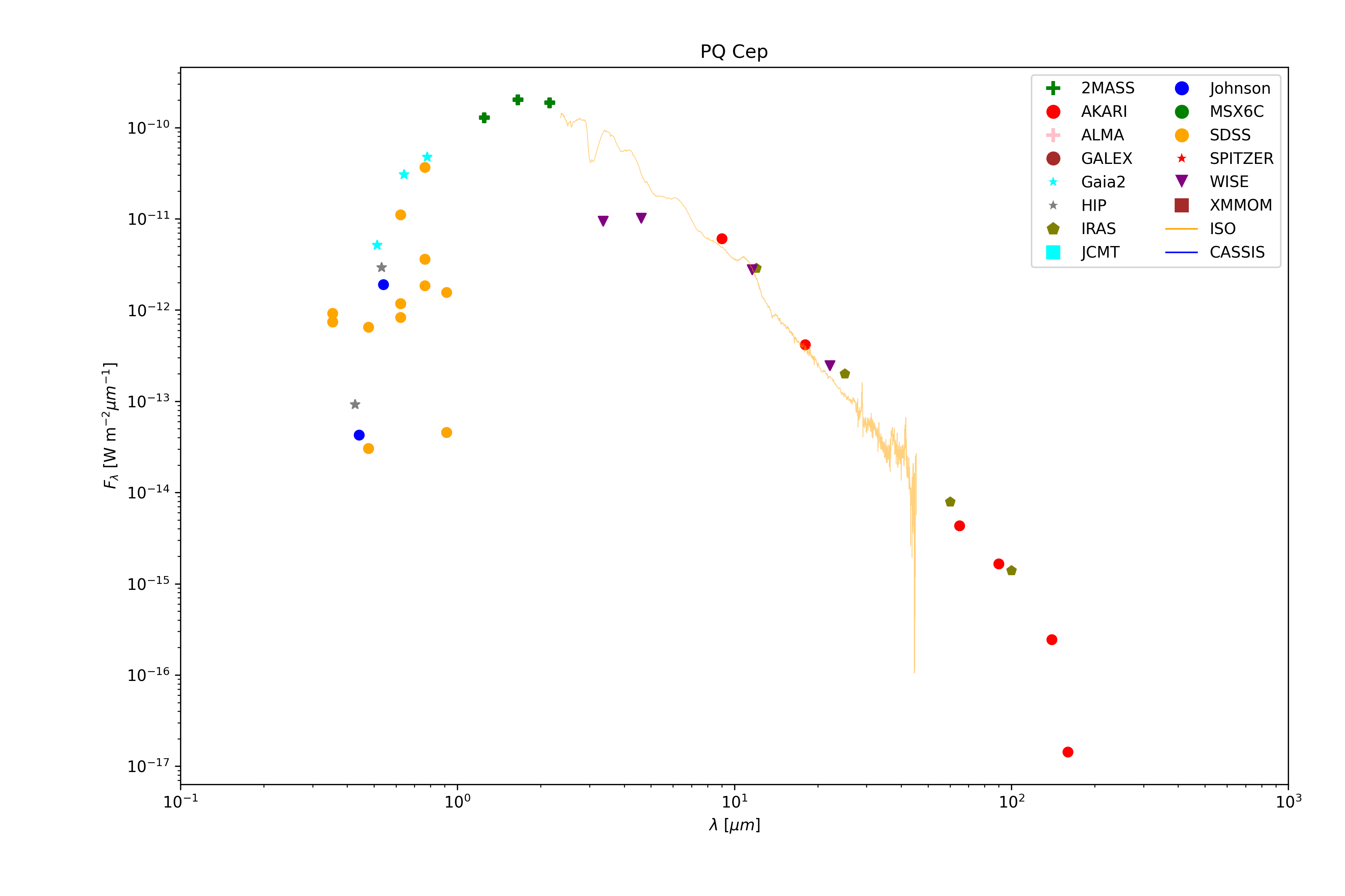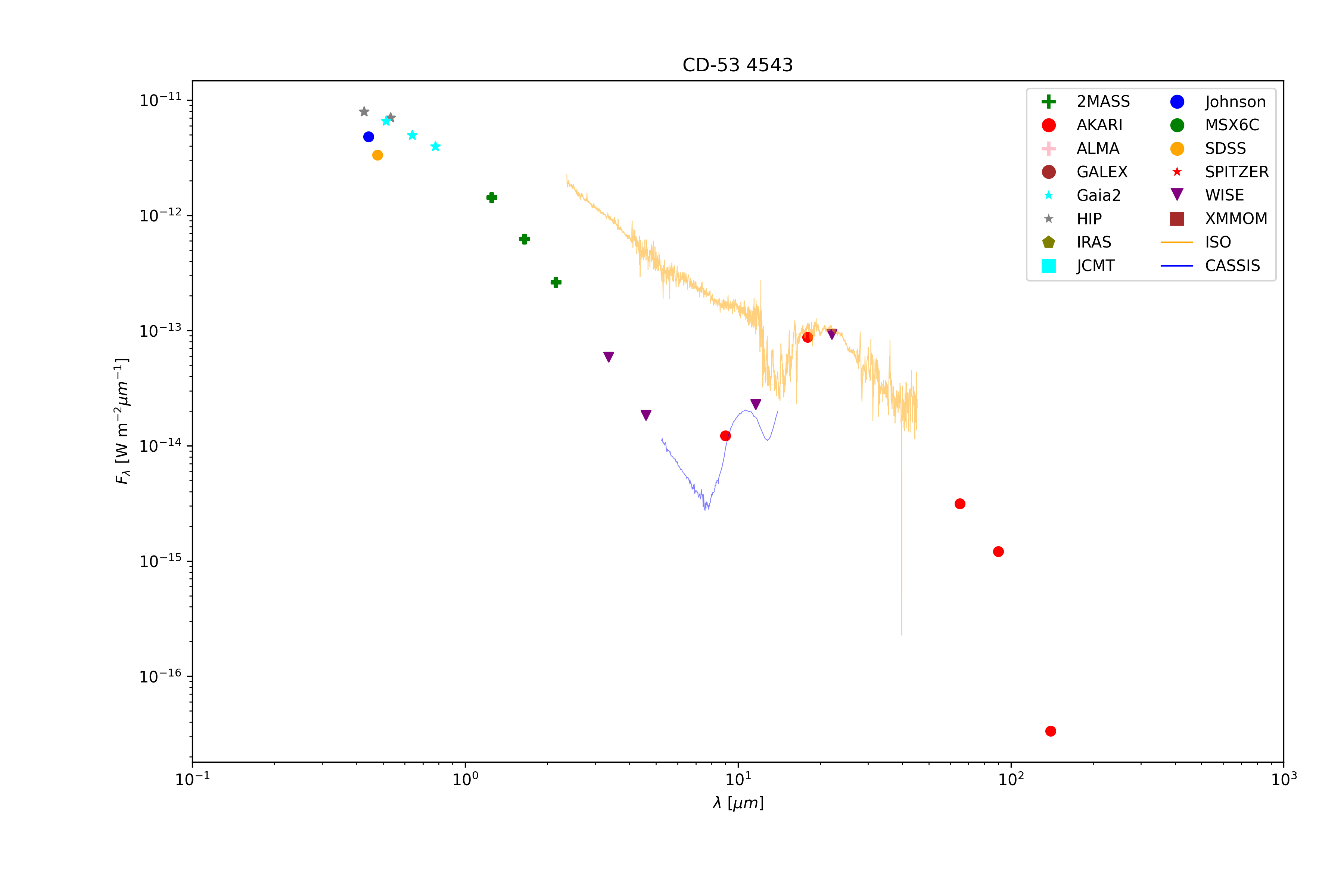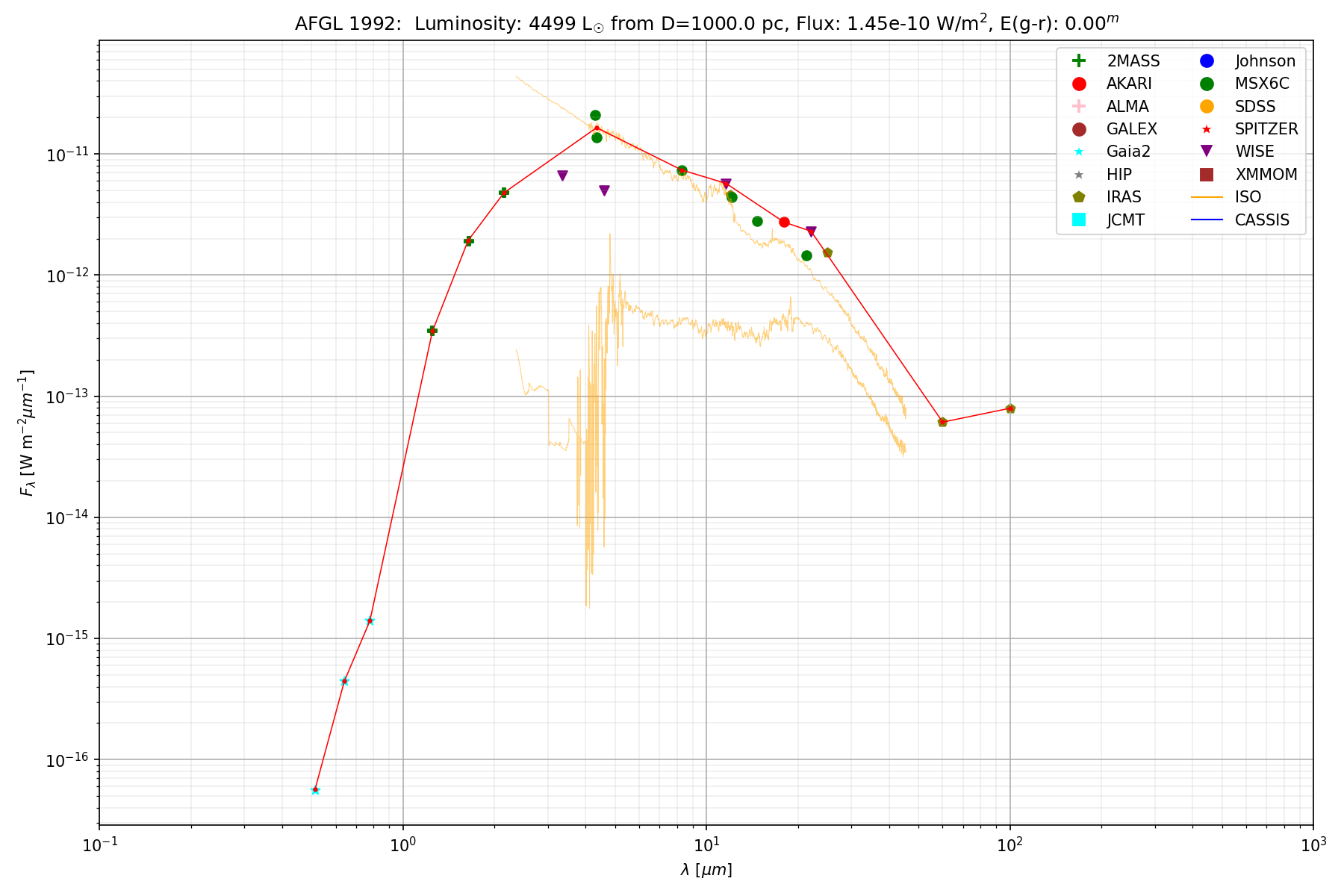 So, for each object, a file with our collected photometry, a file with the SED (corrected and uncorrected for interstellar absorption), a JSON containing all defined and collected data, and an archive with all ISO and Spitzer data and spectra (if available) are available.