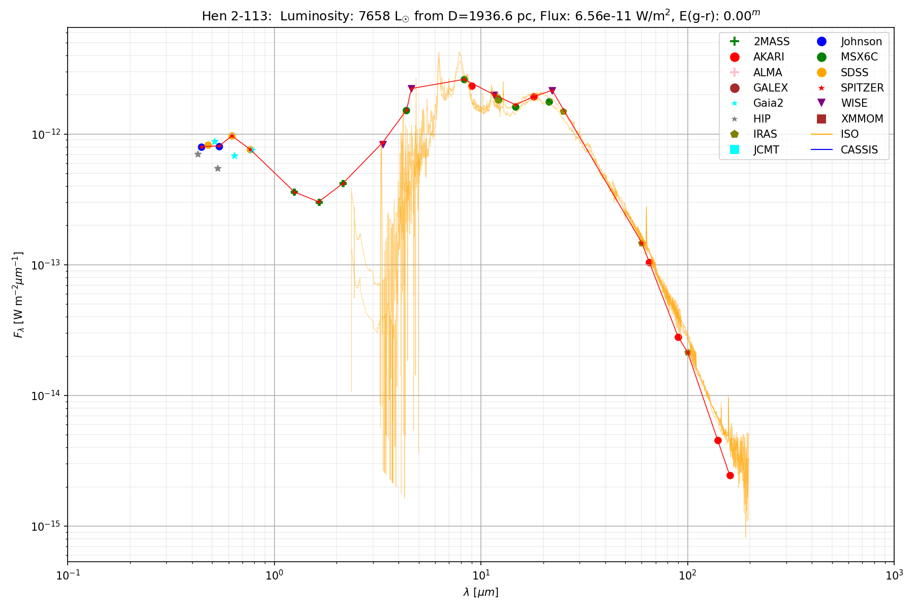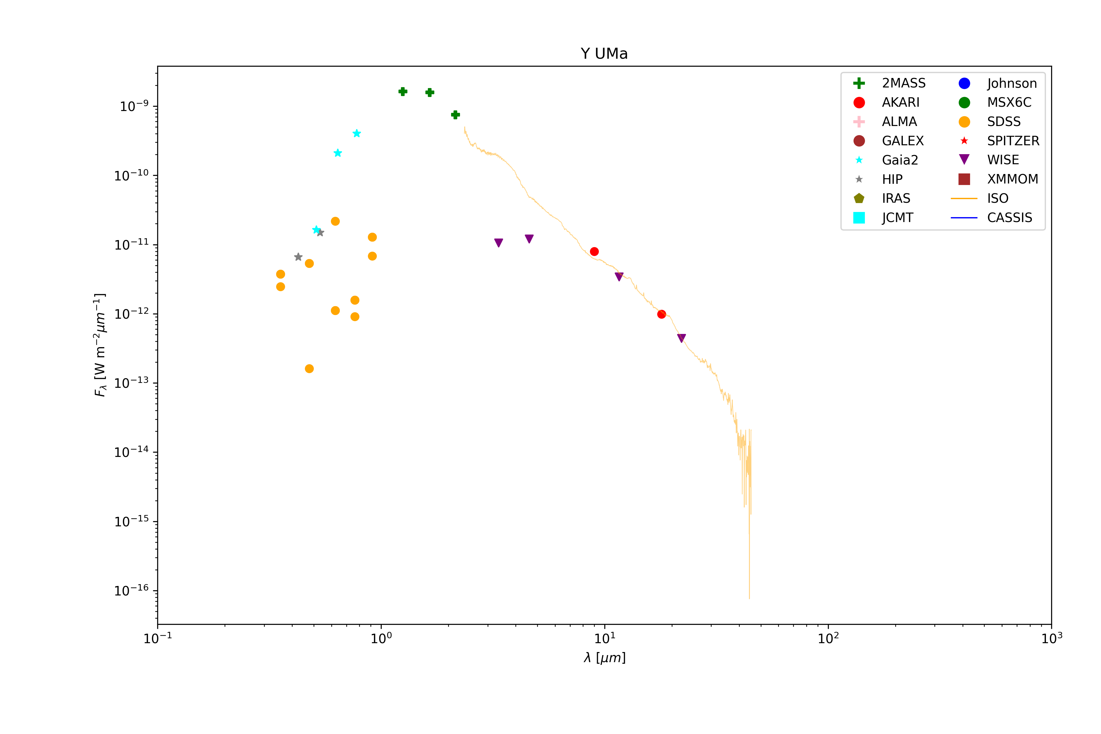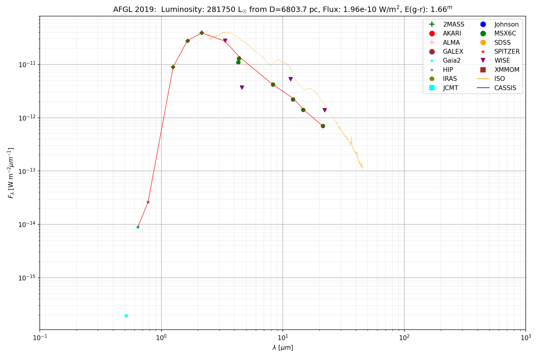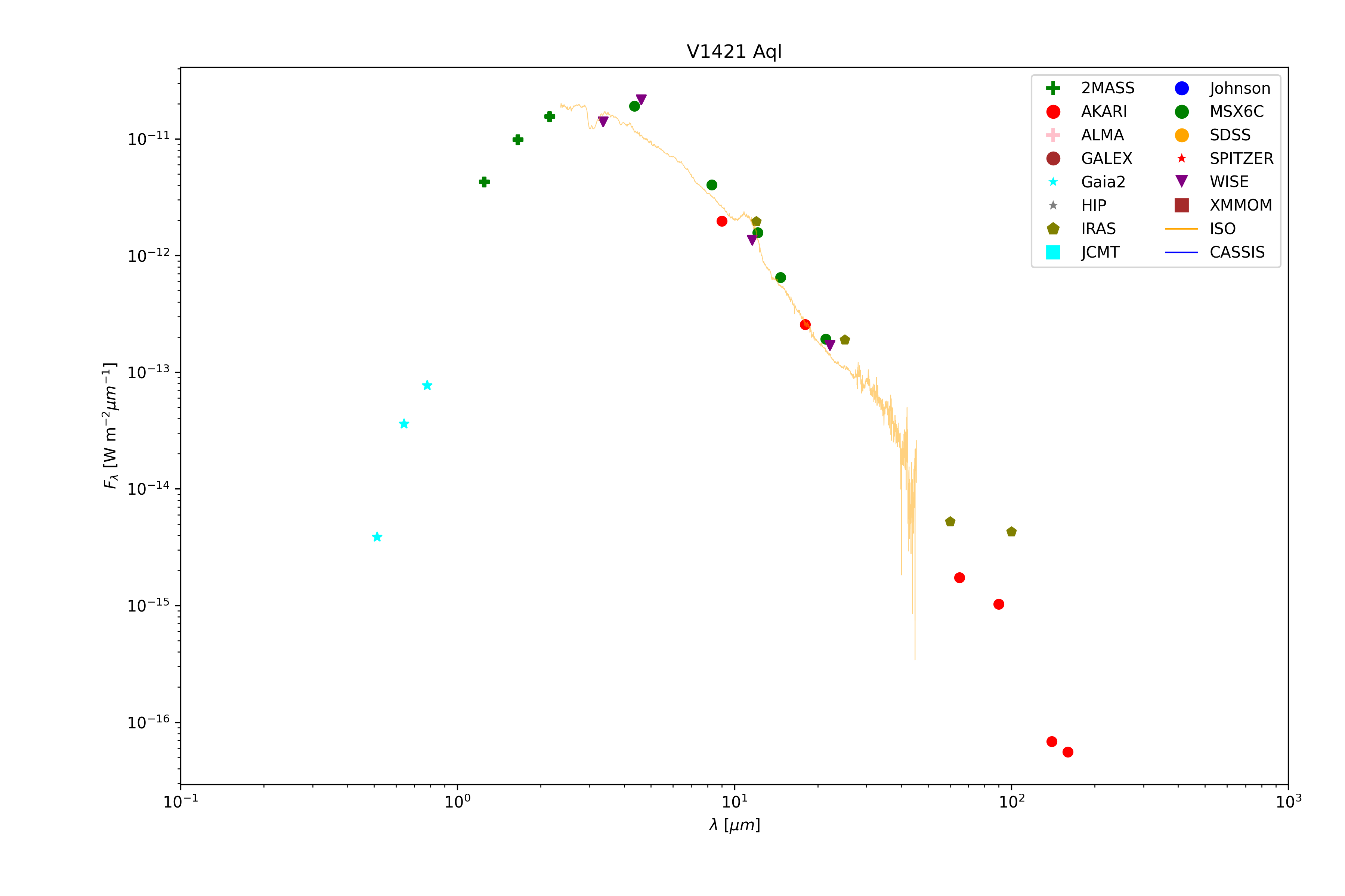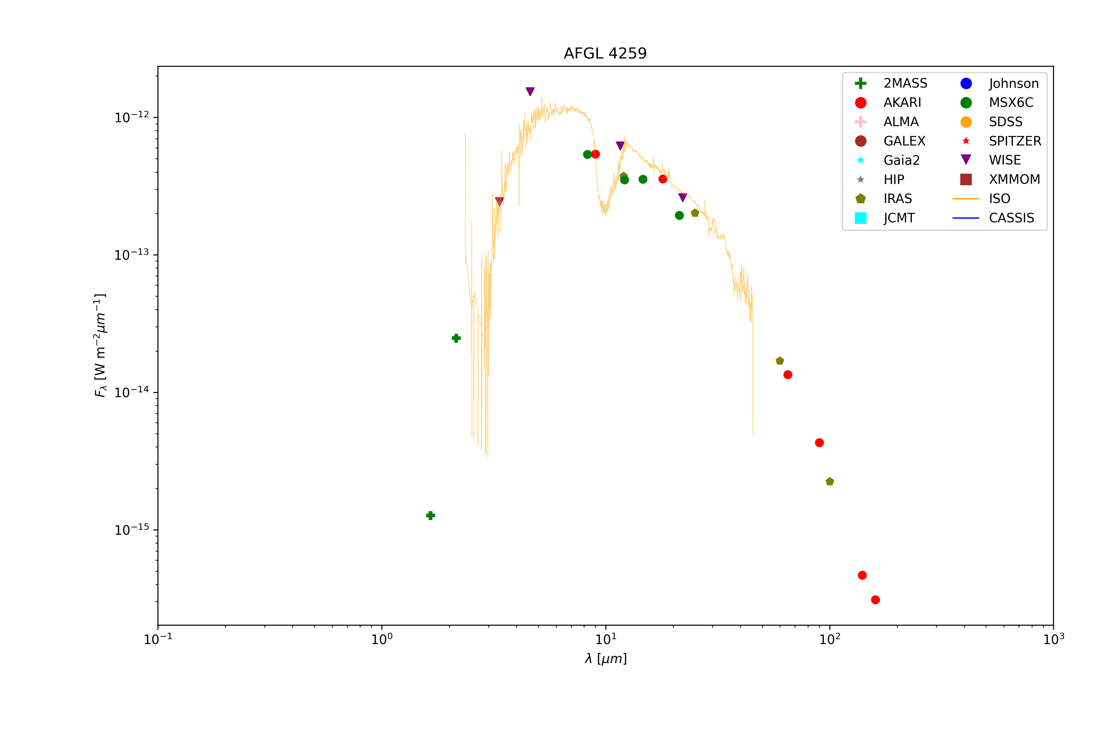 So, for each object, a file with our collected photometry, a file with the SED (corrected and uncorrected for interstellar absorption), a JSON containing all defined and collected data, and an archive with all ISO and Spitzer data and spectra (if available) are available.