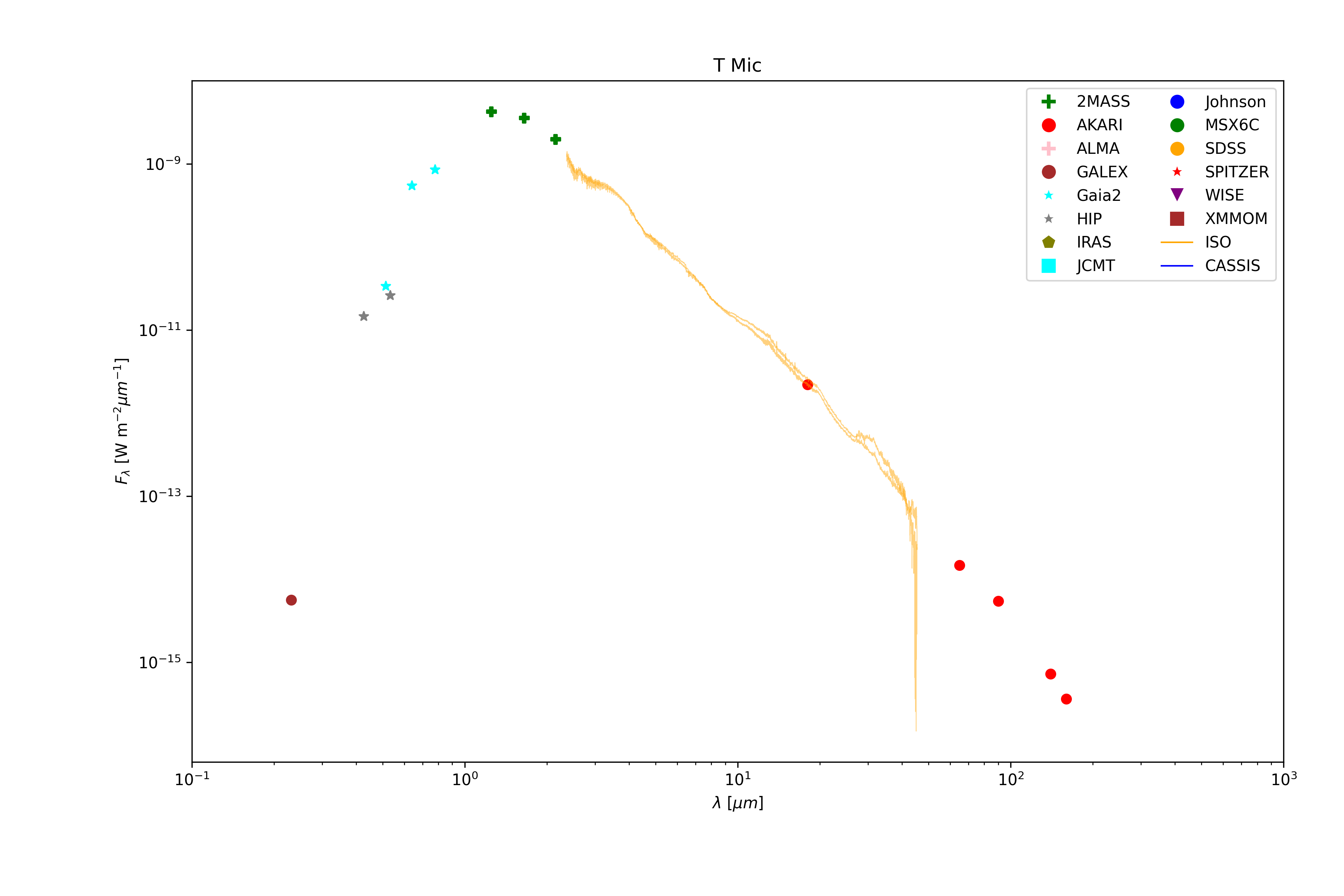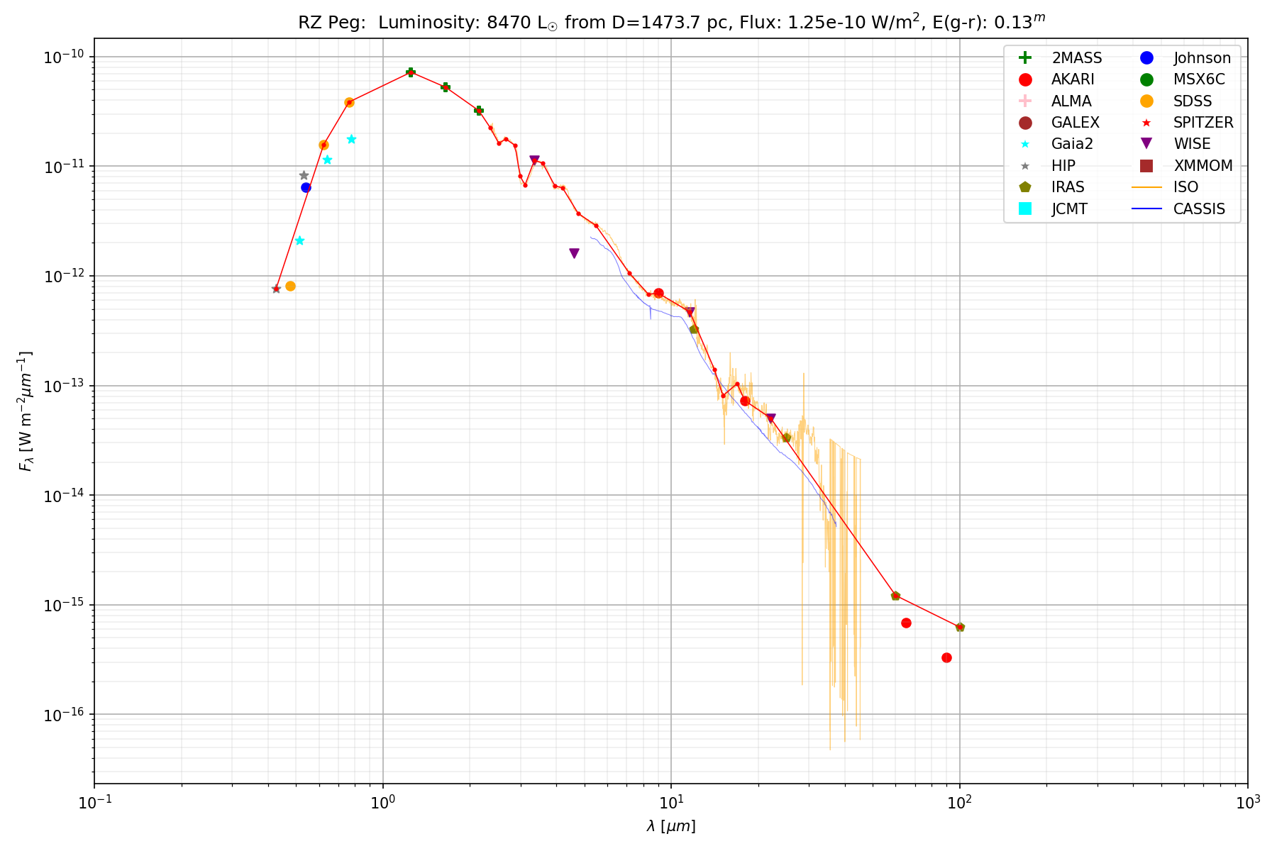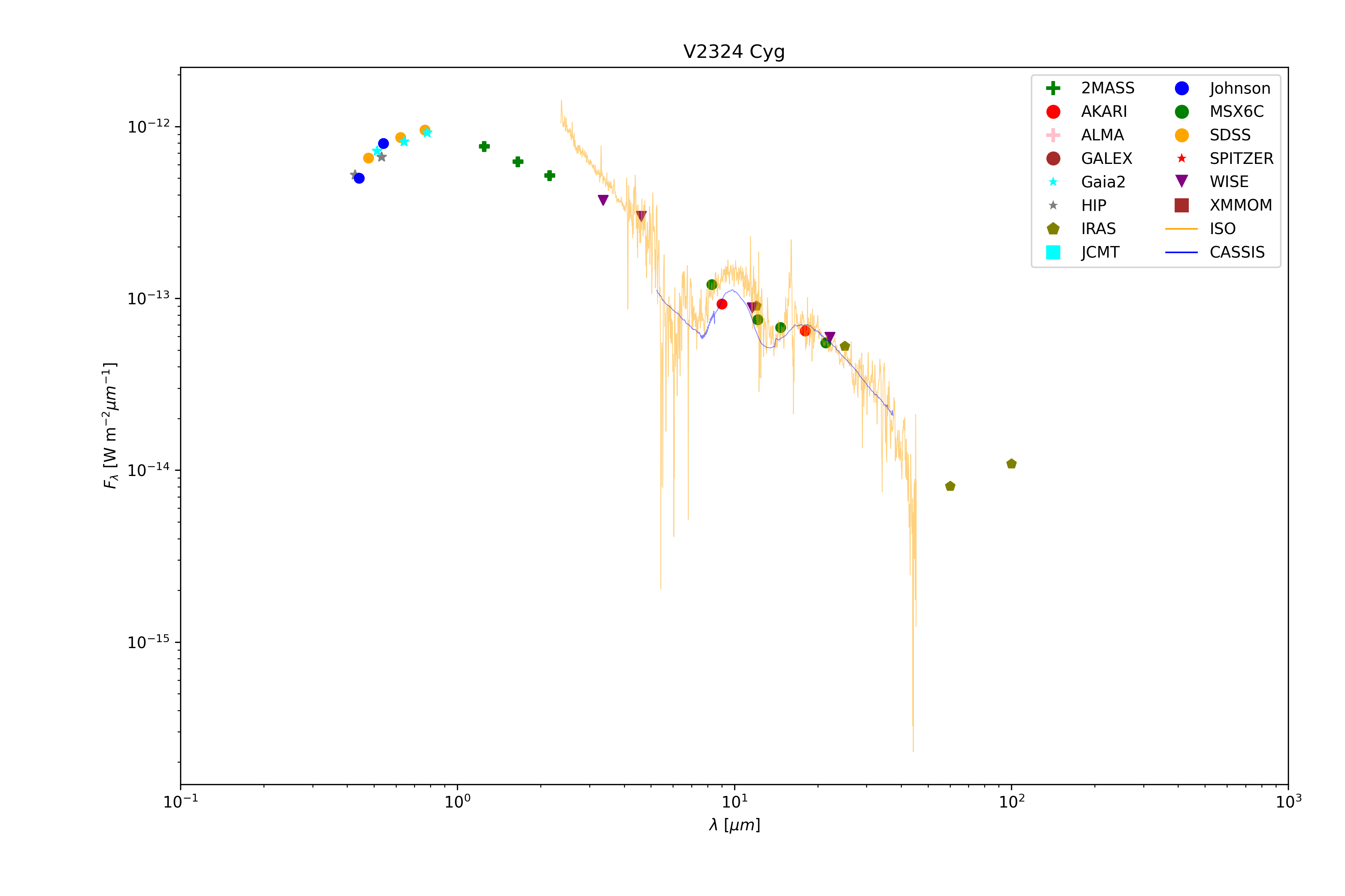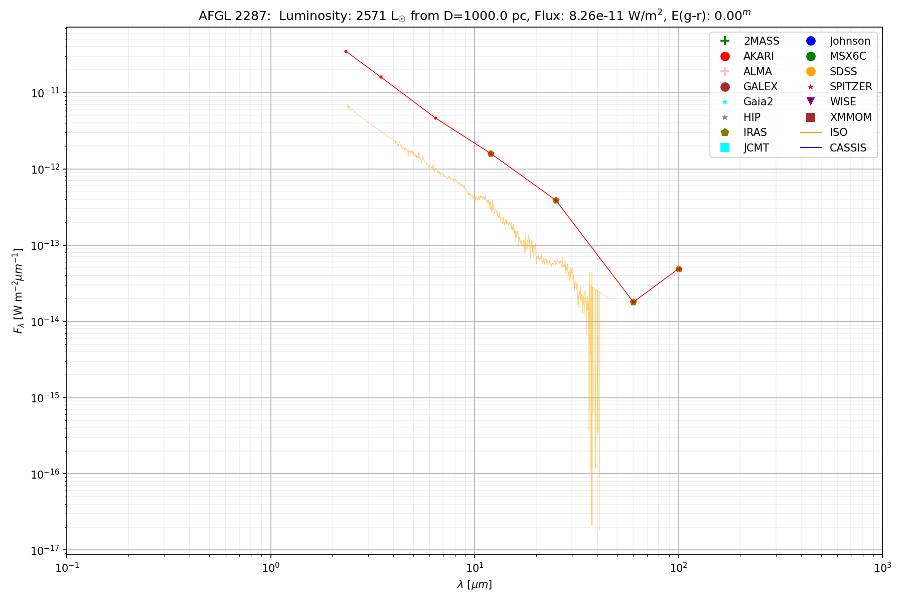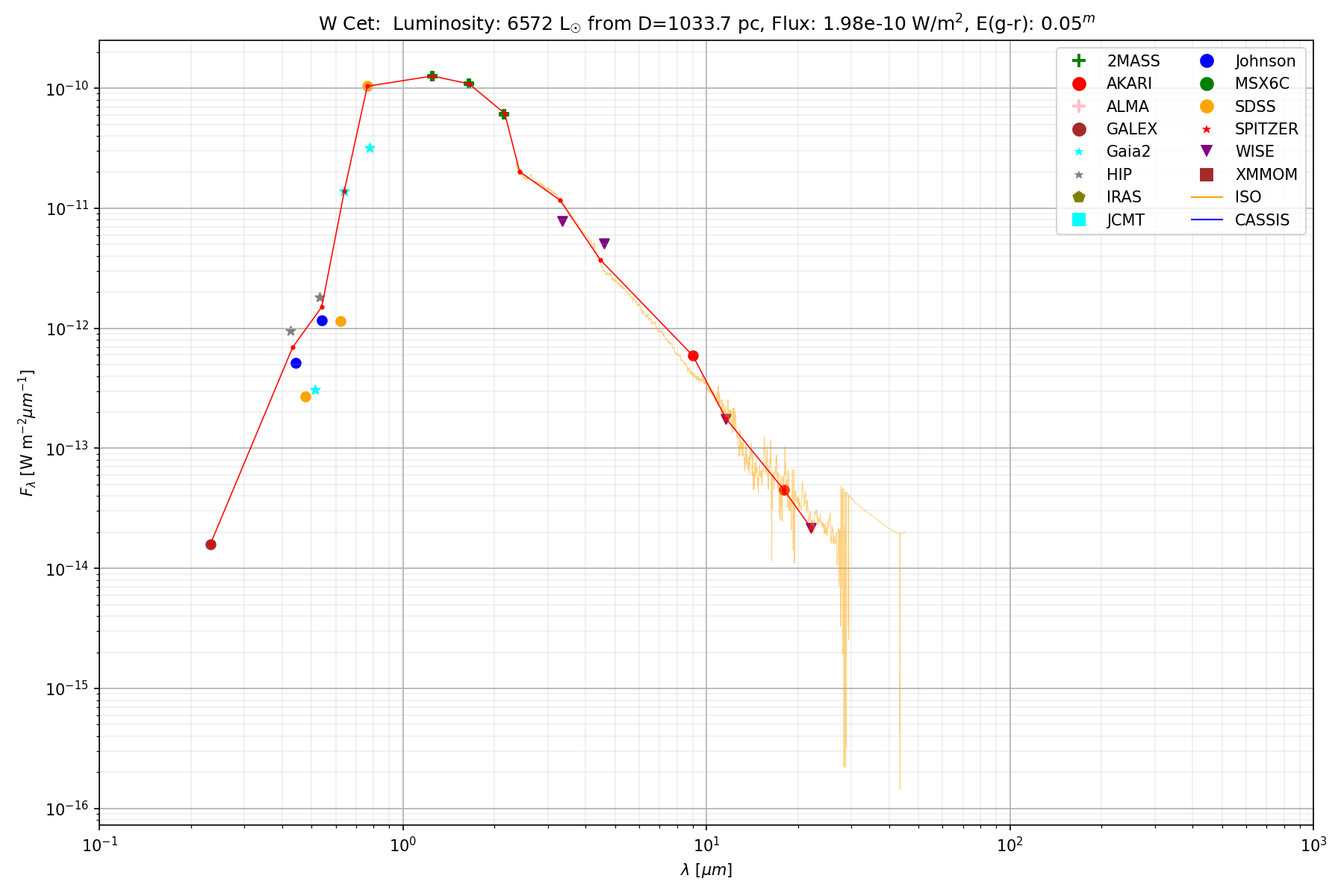 So, for each object, a file with our collected photometry, a file with the SED (corrected and uncorrected for interstellar absorption), a JSON containing all defined and collected data, and an archive with all ISO and Spitzer data and spectra (if available) are available.