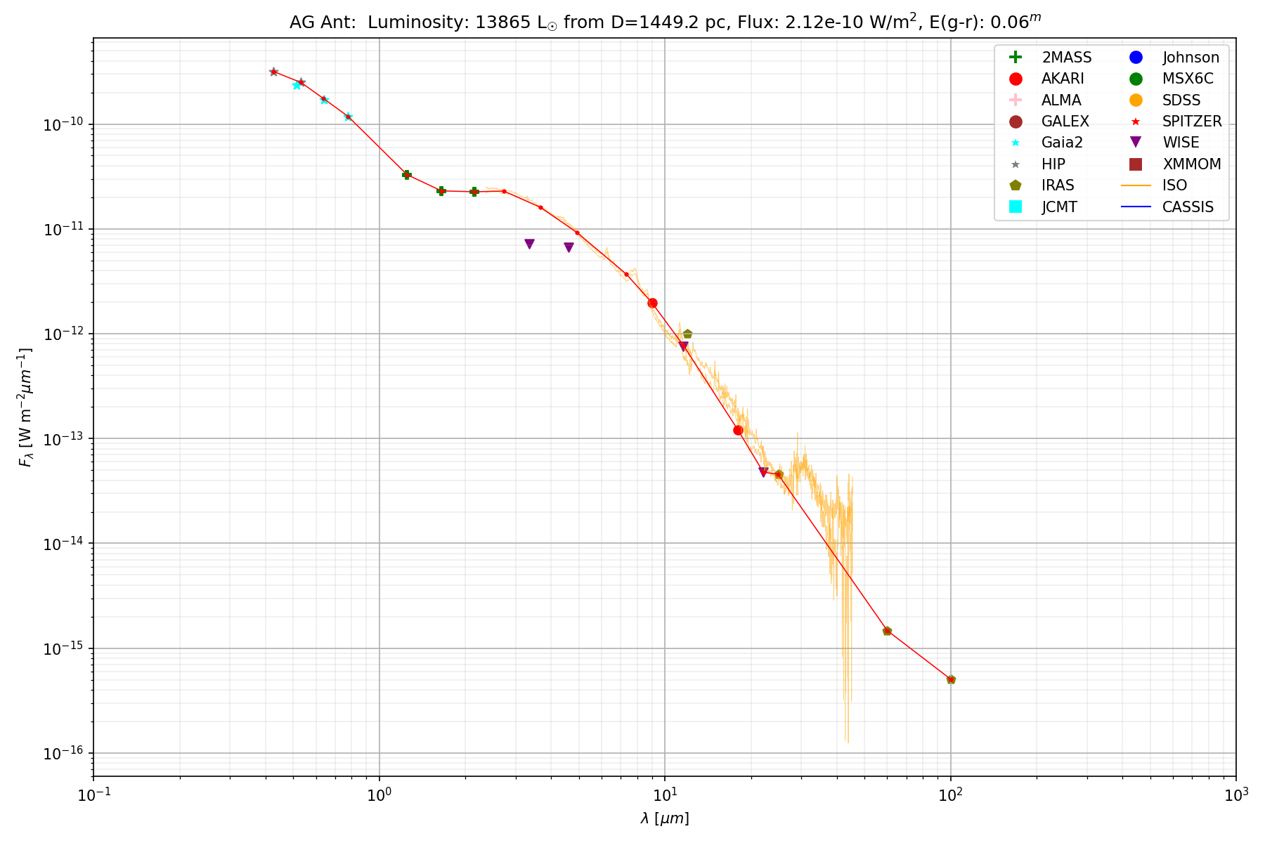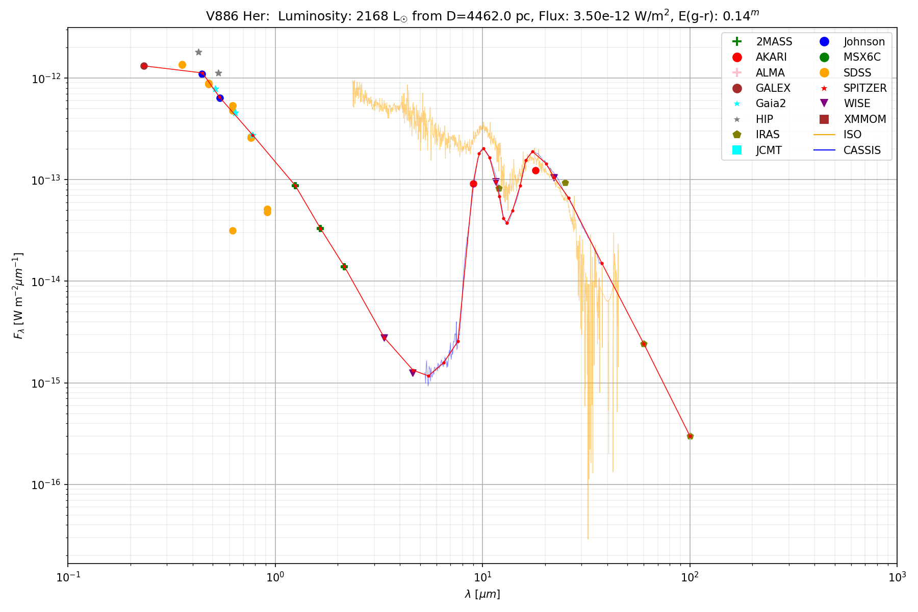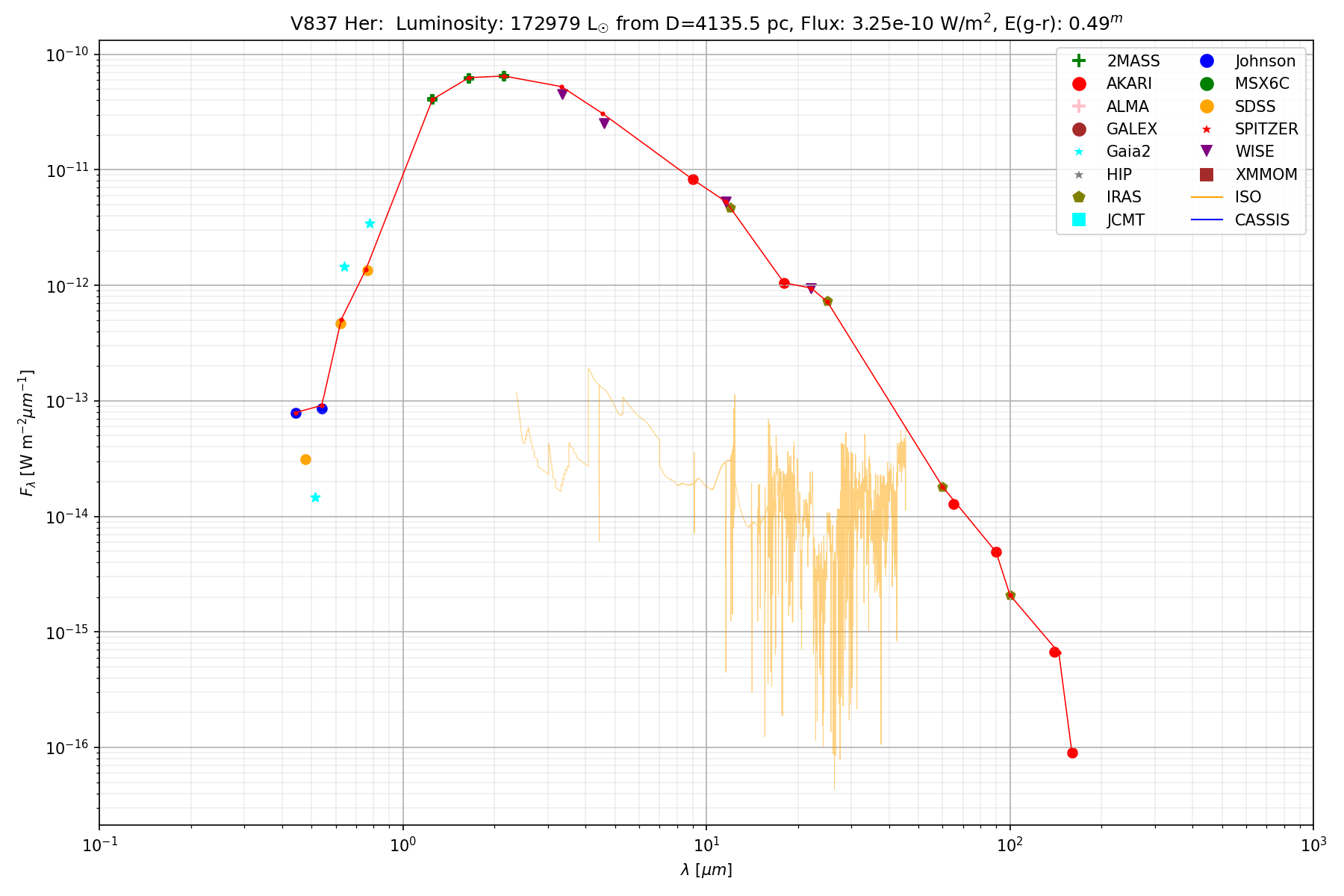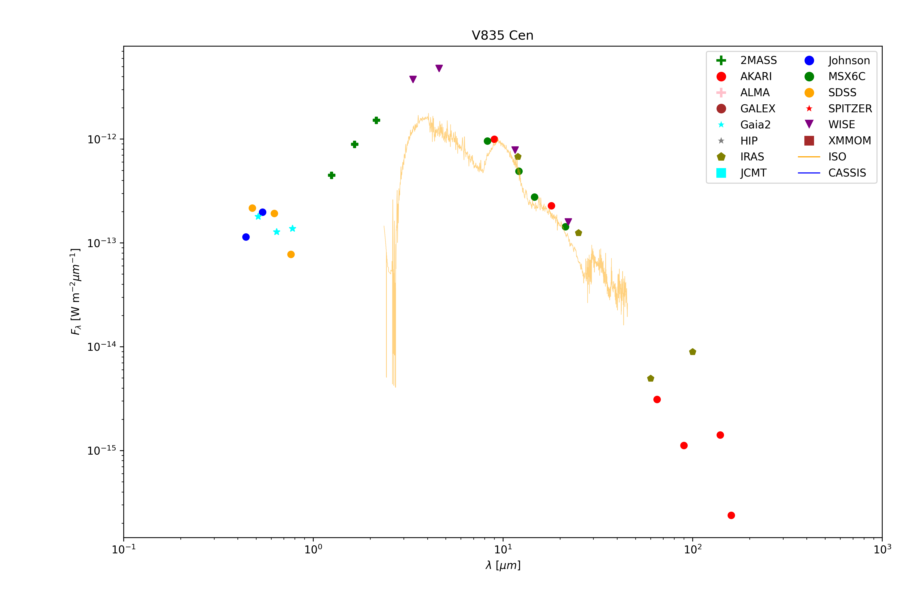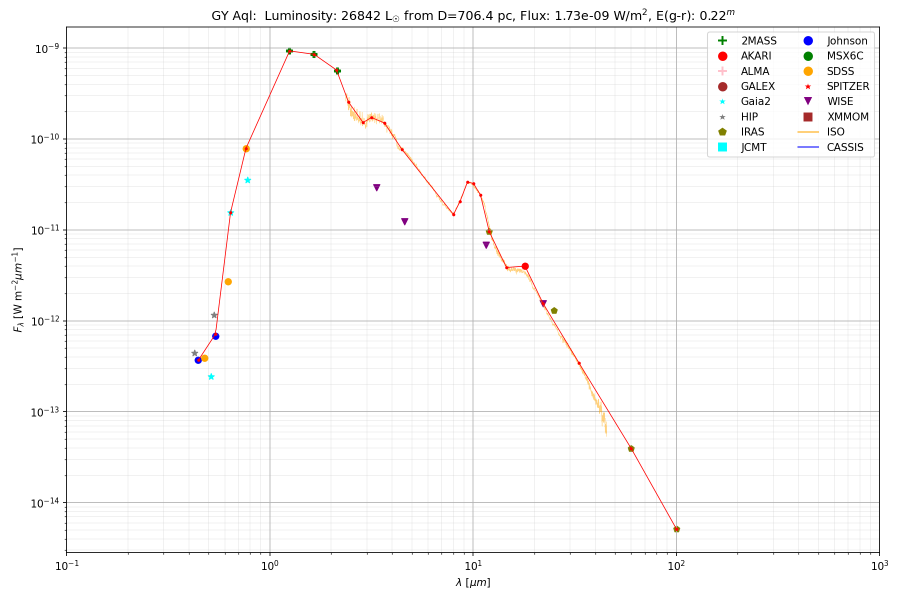 So, for each object, a file with our collected photometry, a file with the SED (corrected and uncorrected for interstellar absorption), a JSON containing all defined and collected data, and an archive with all ISO and Spitzer data and spectra (if available) are available.