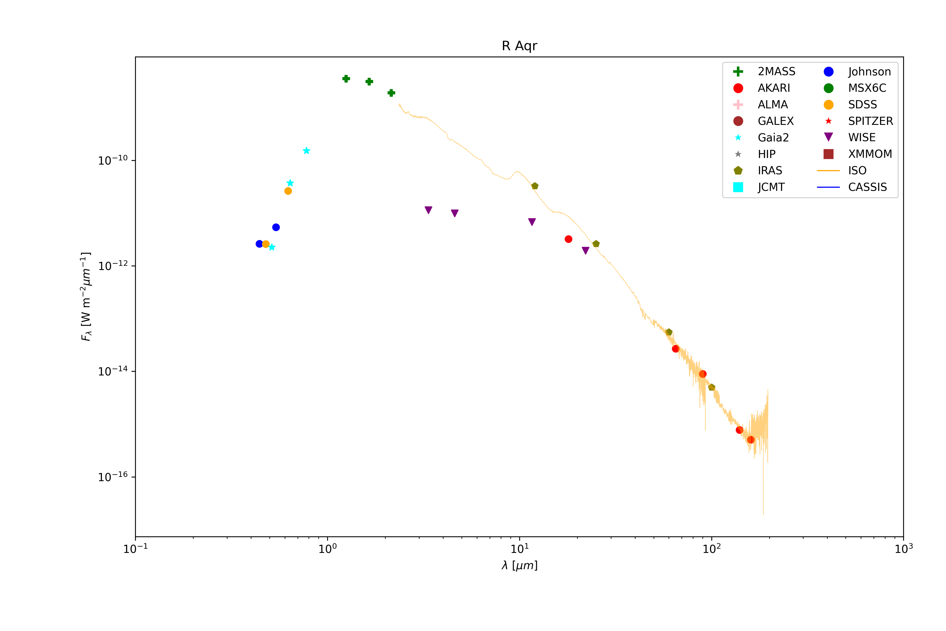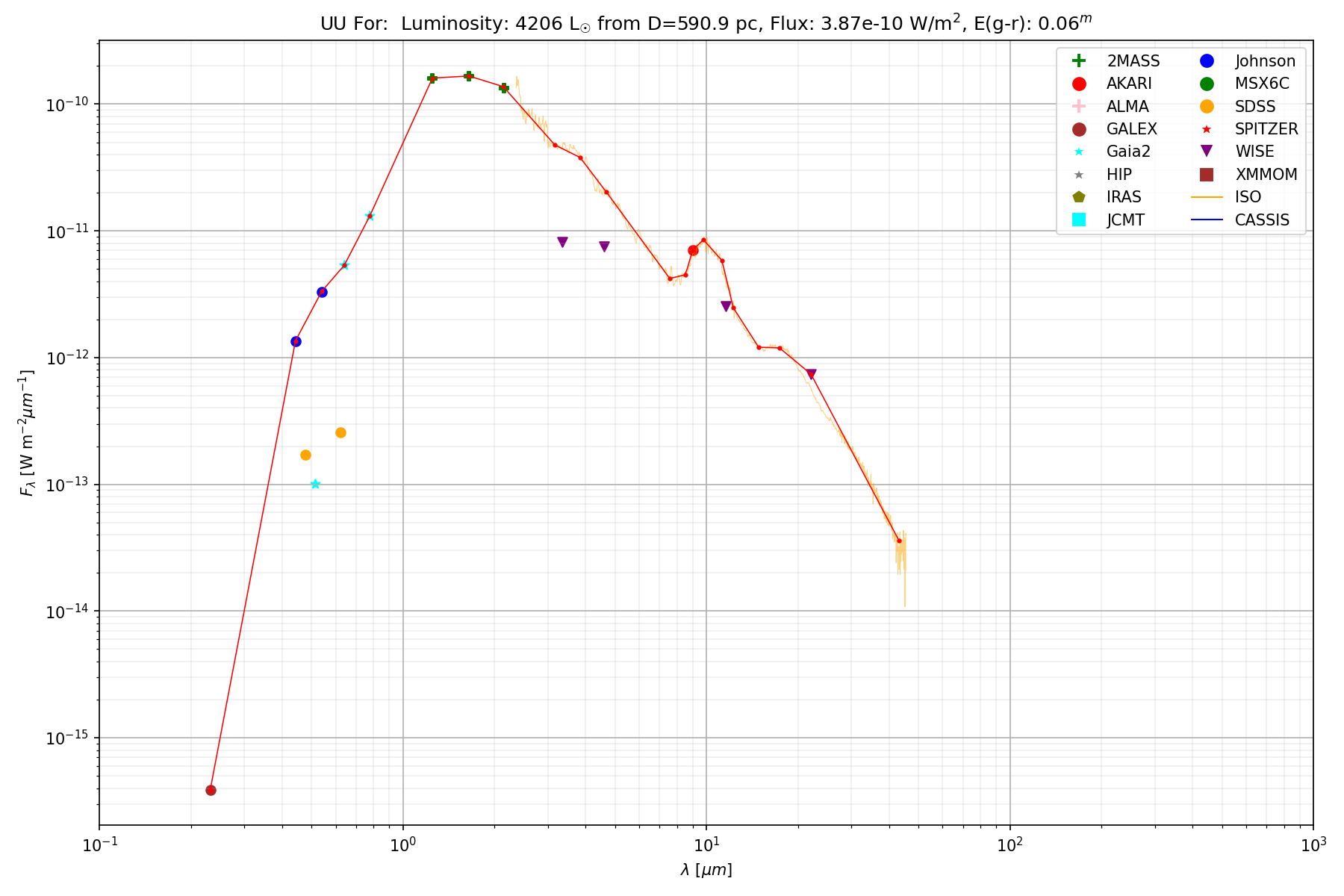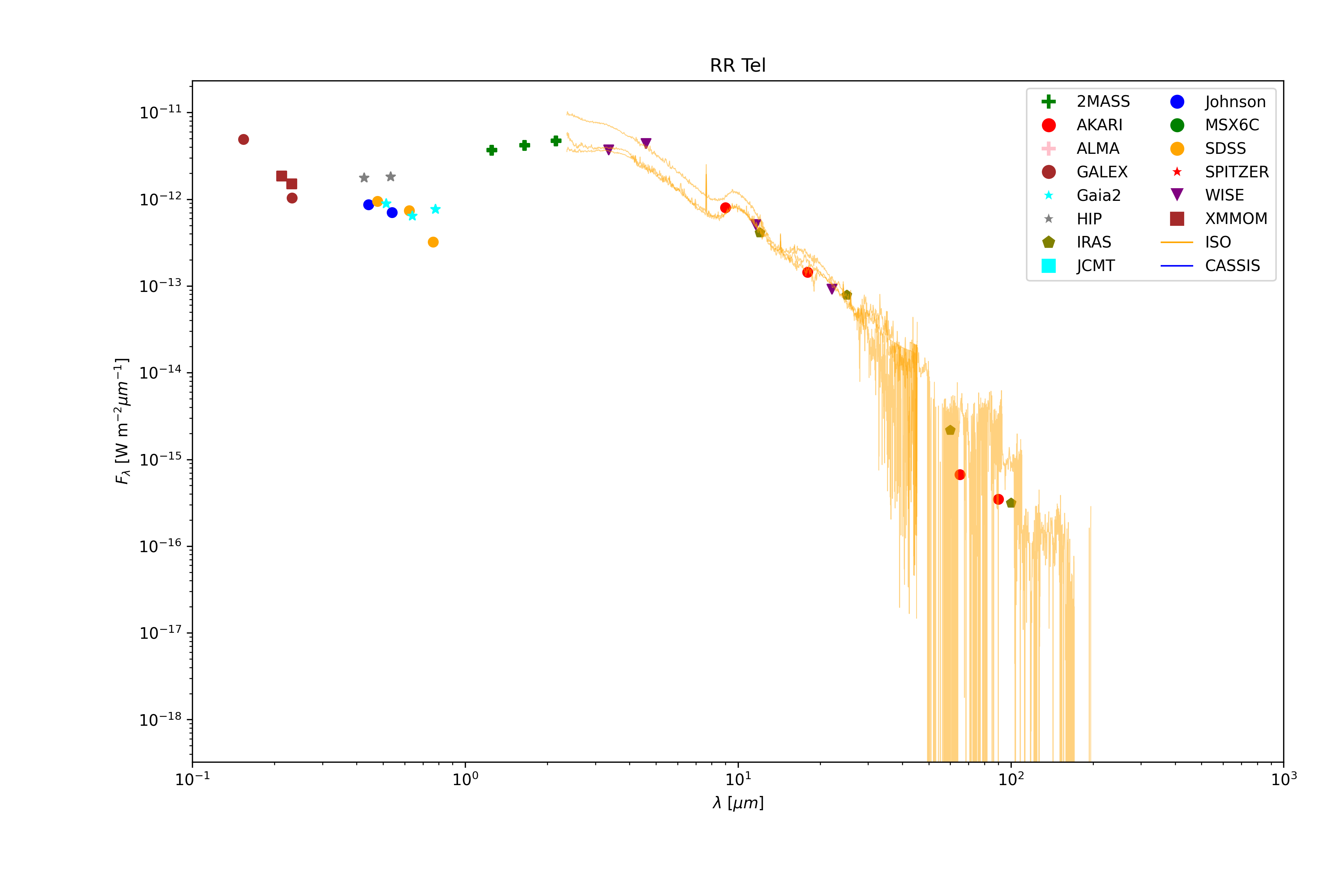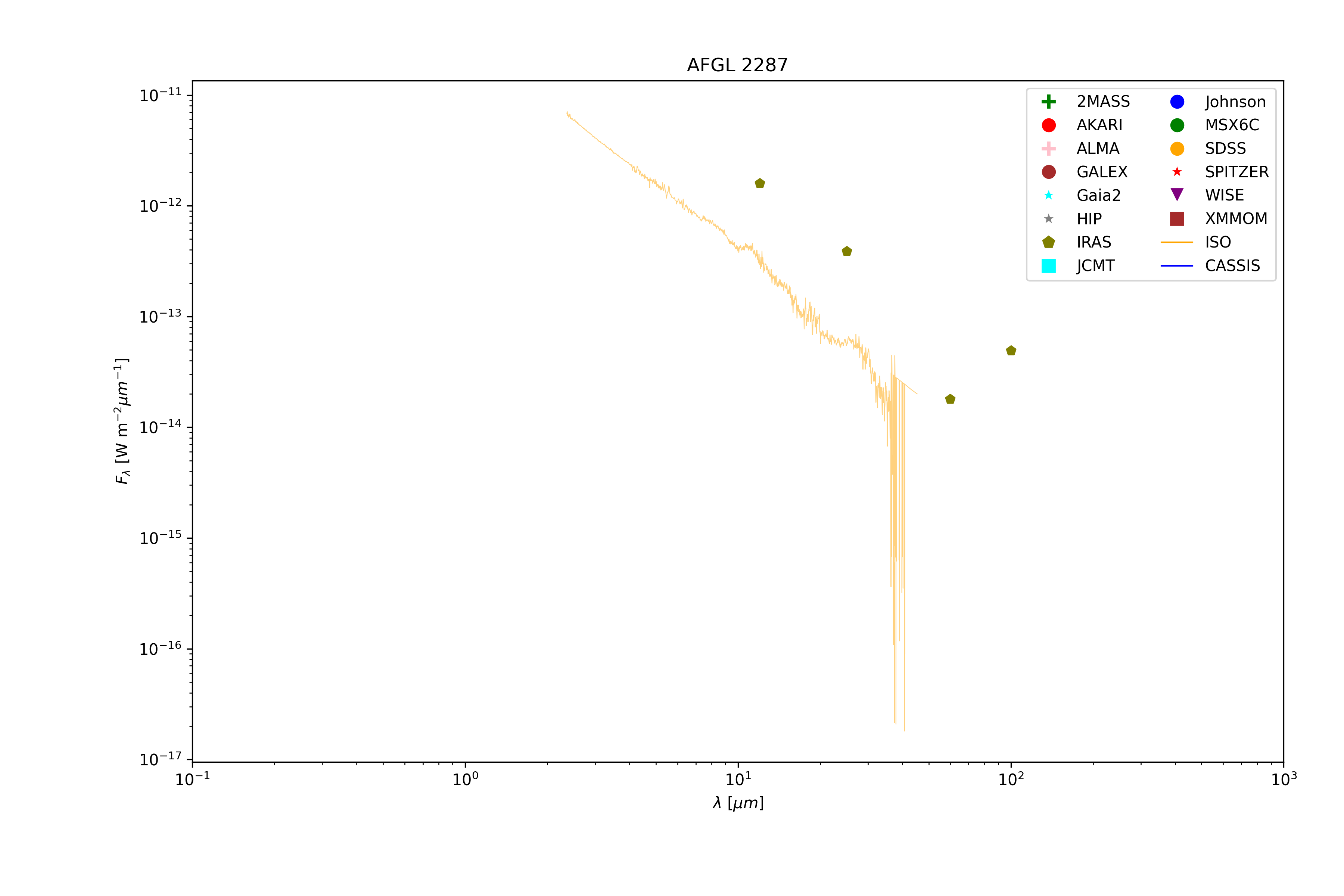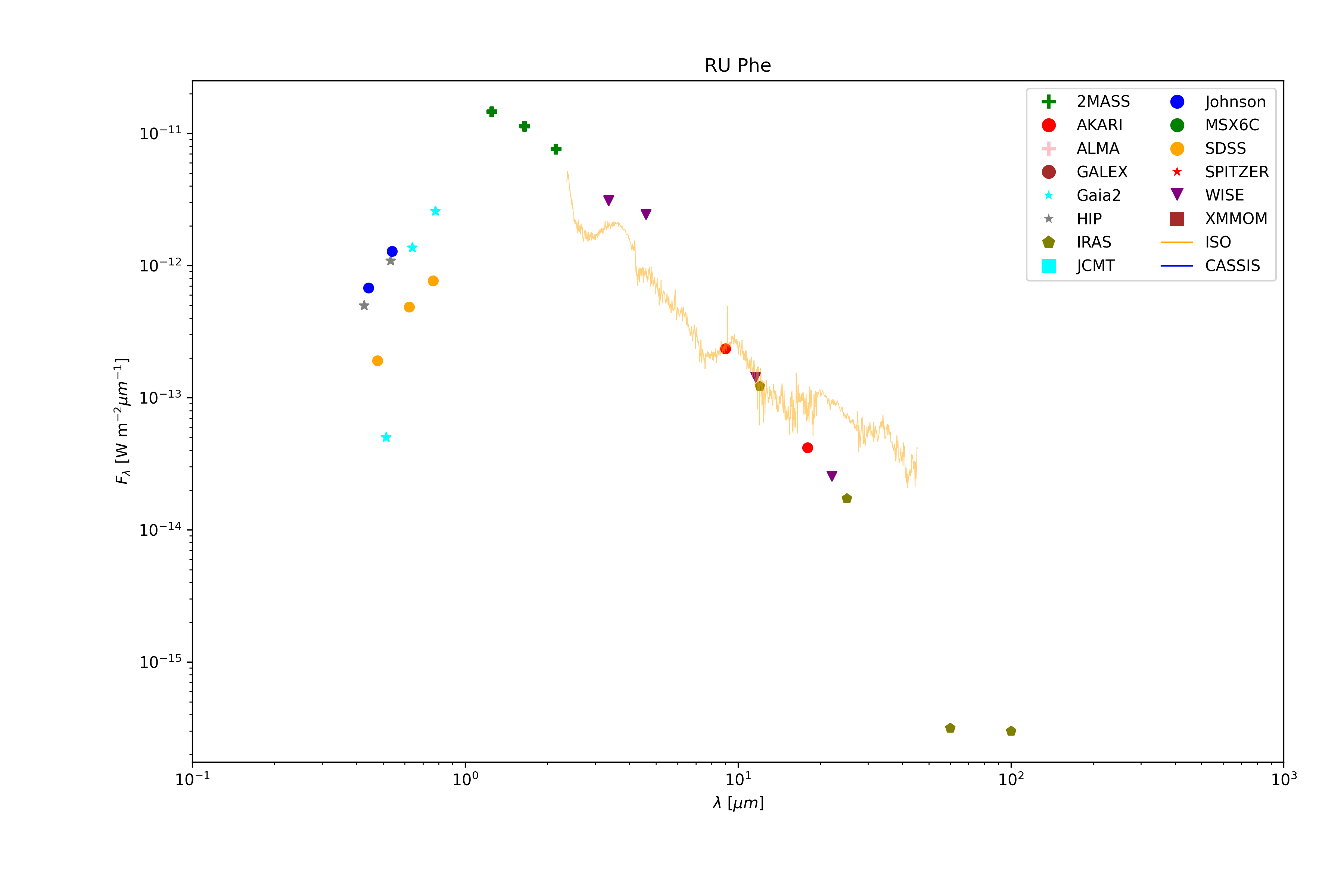 So, for each object, a file with our collected photometry, a file with the SED (corrected and uncorrected for interstellar absorption), a JSON containing all defined and collected data, and an archive with all ISO and Spitzer data and spectra (if available) are available.