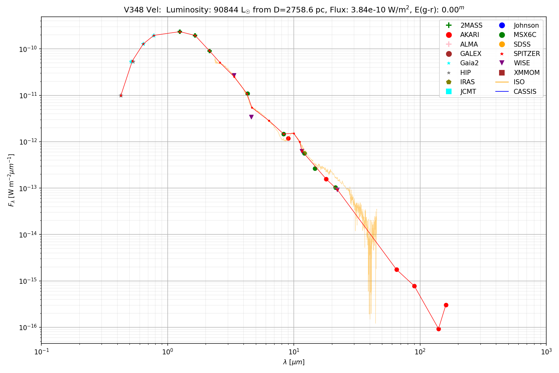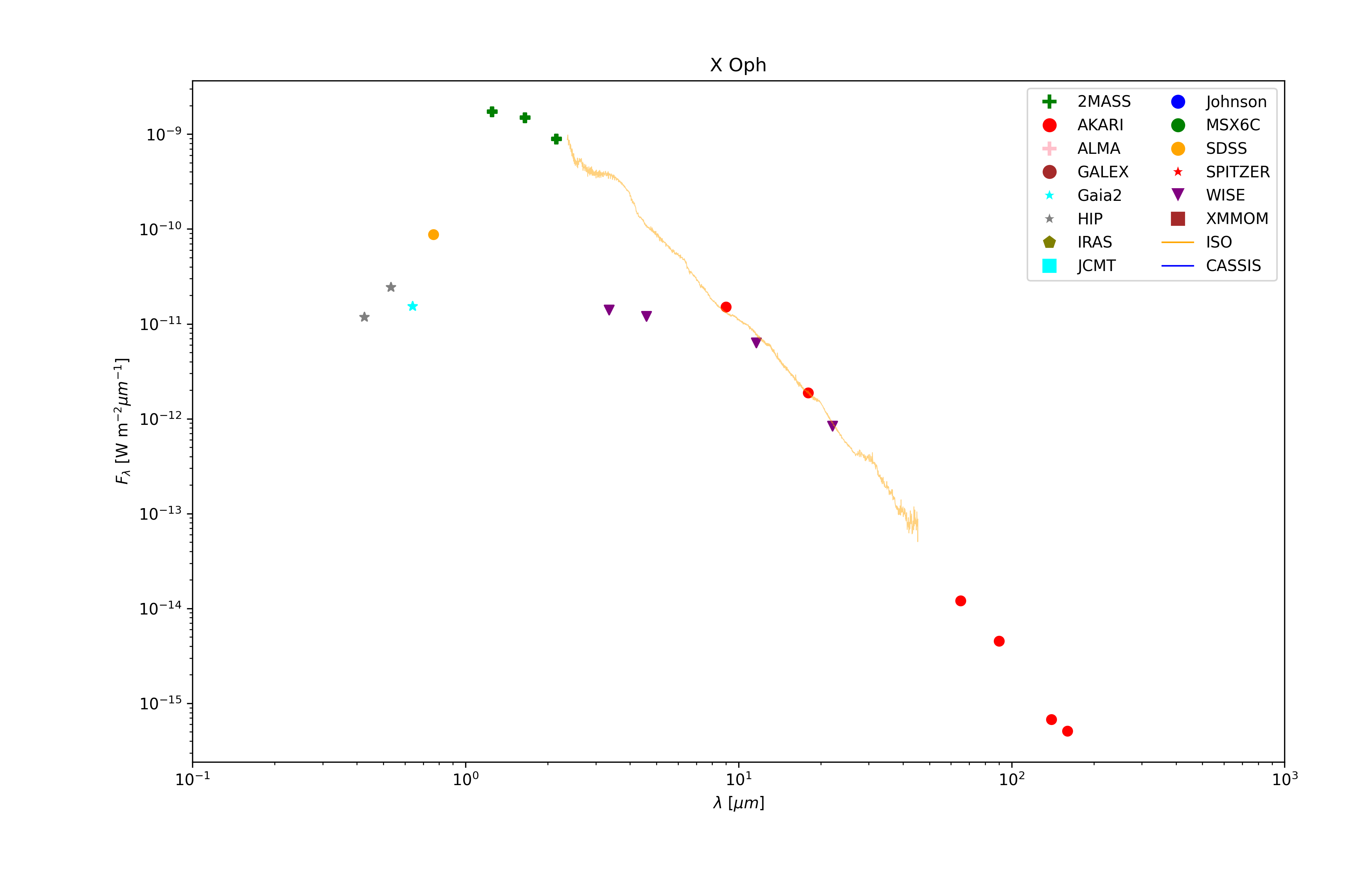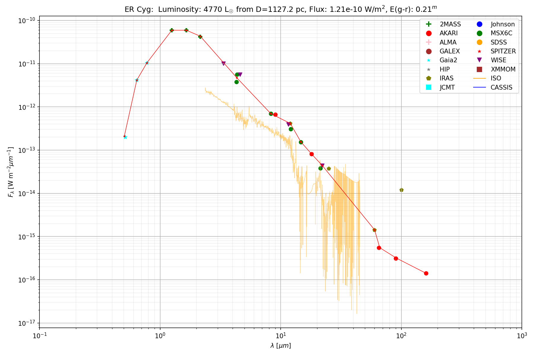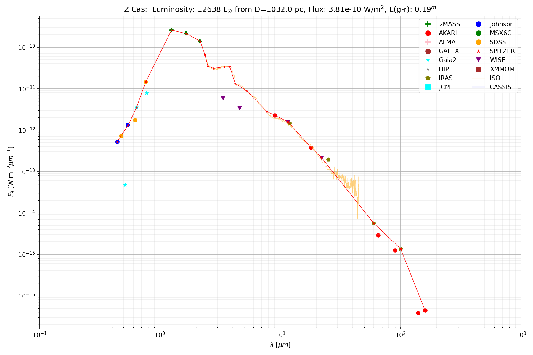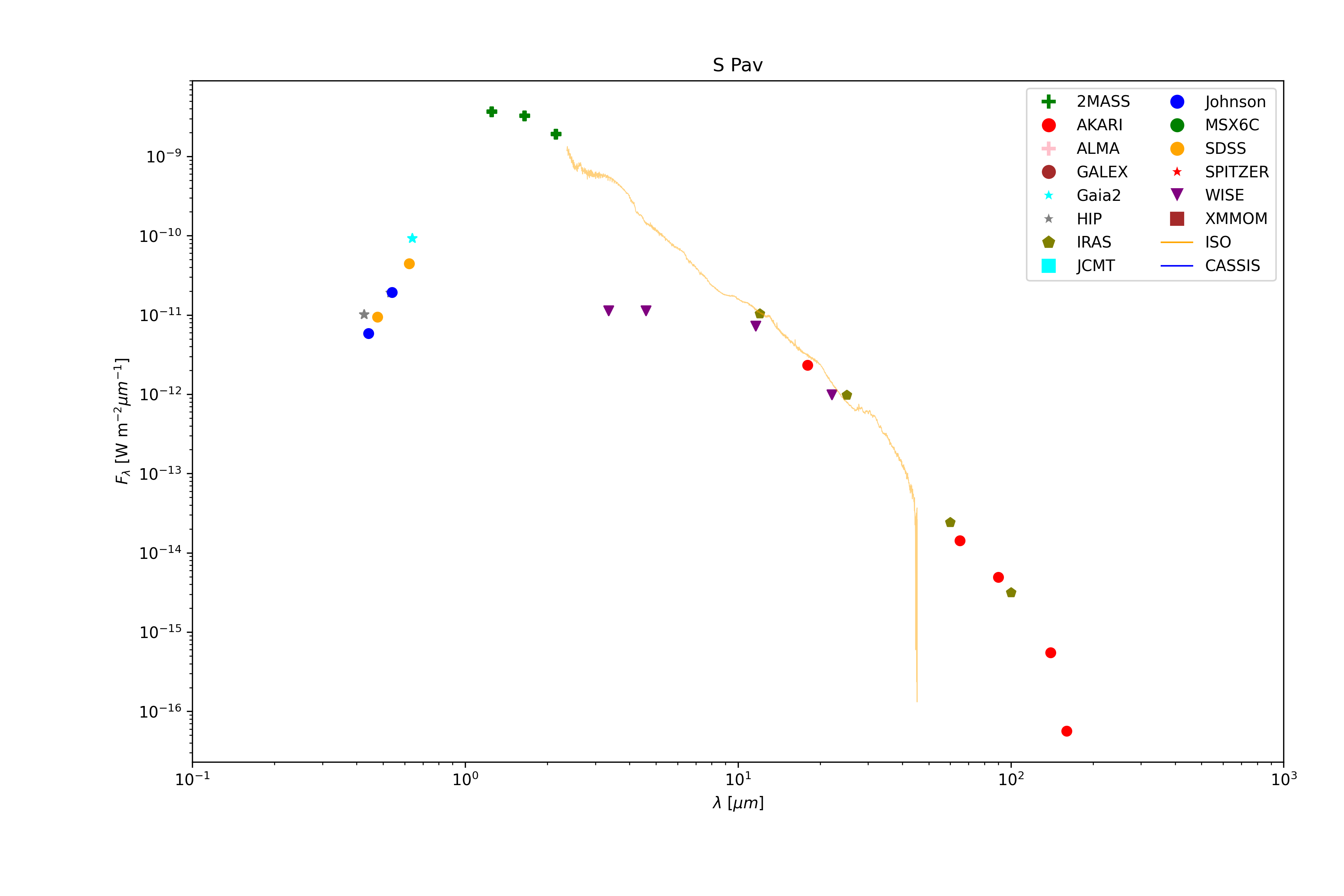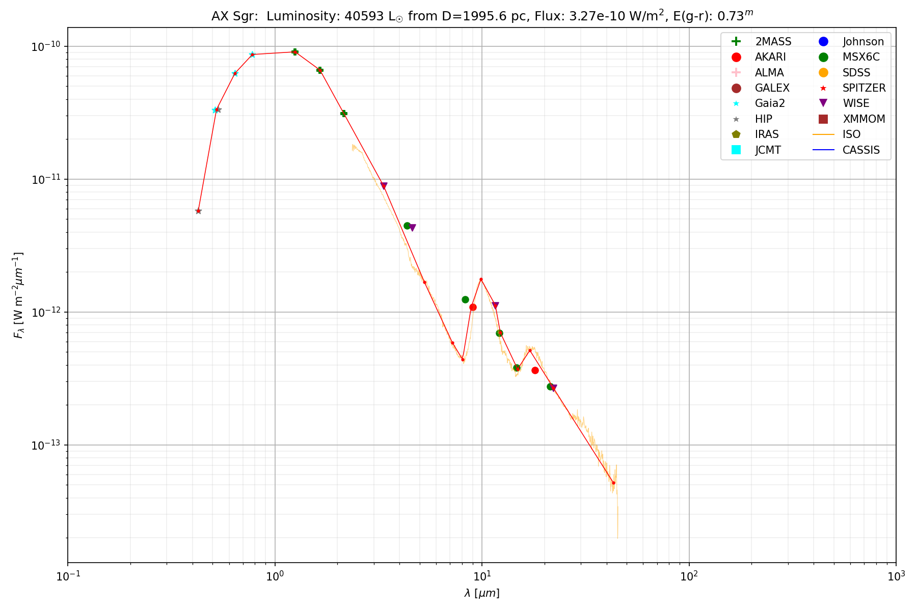 So, for each object, a file with our collected photometry, a file with the SED (corrected and uncorrected for interstellar absorption), a JSON containing all defined and collected data, and an archive with all ISO and Spitzer data and spectra (if available) are available.