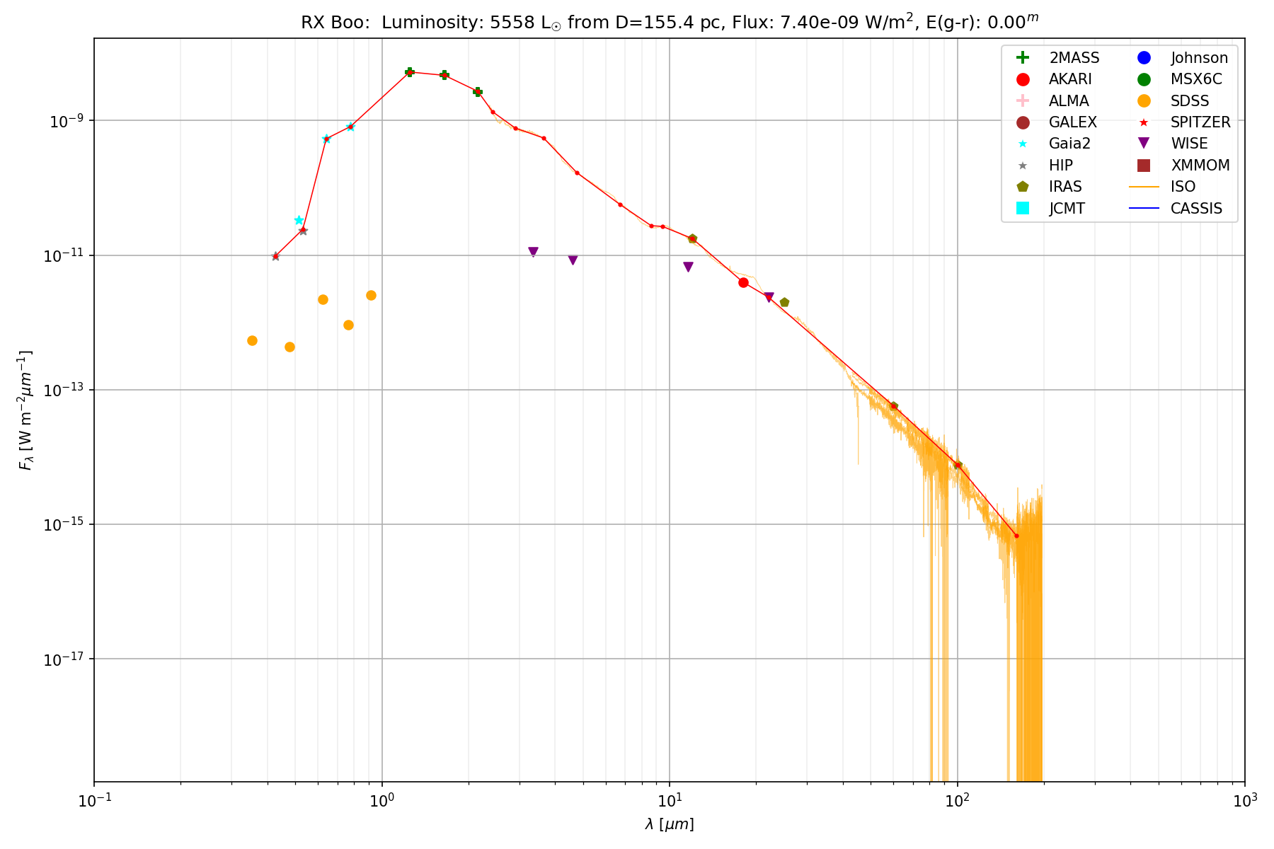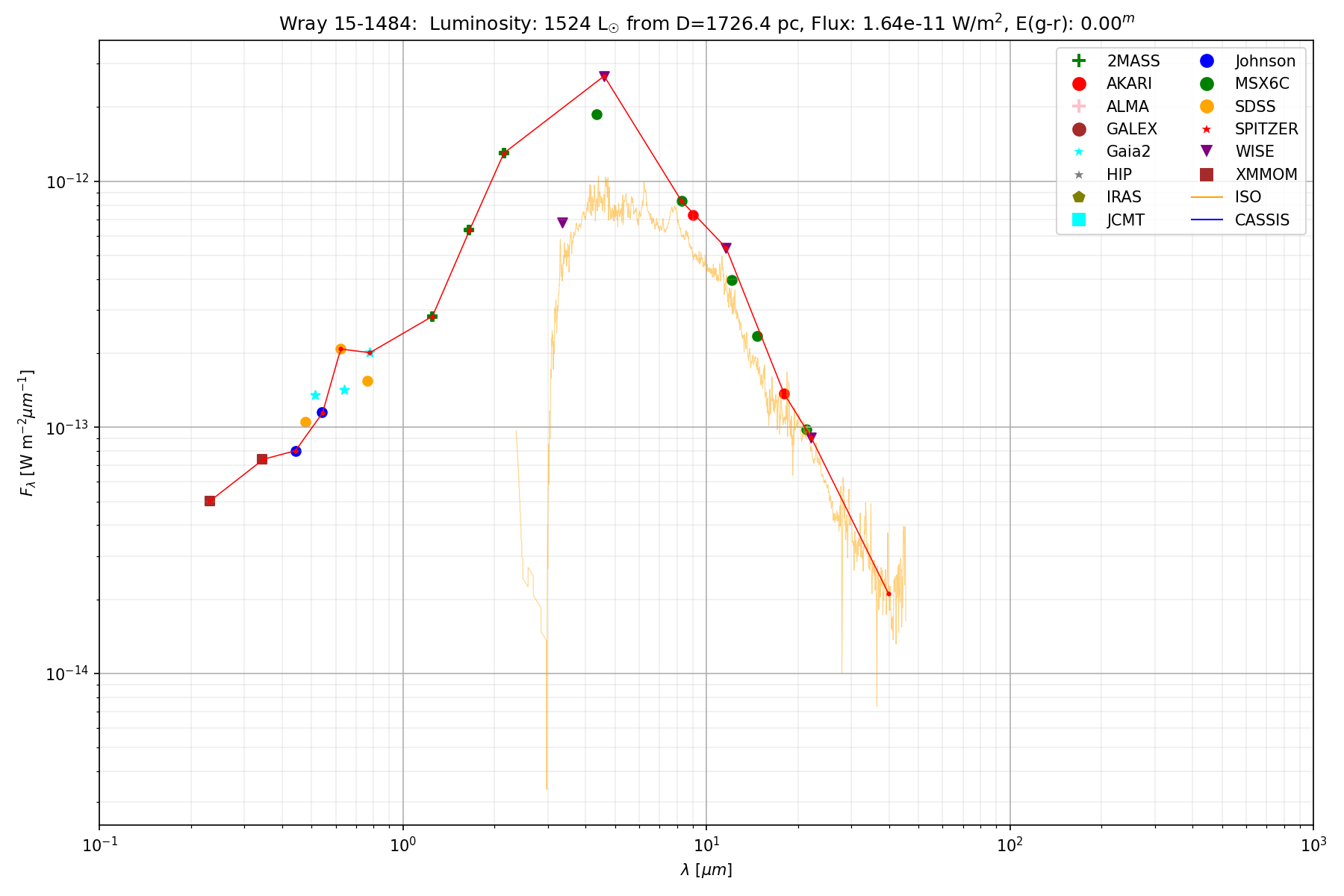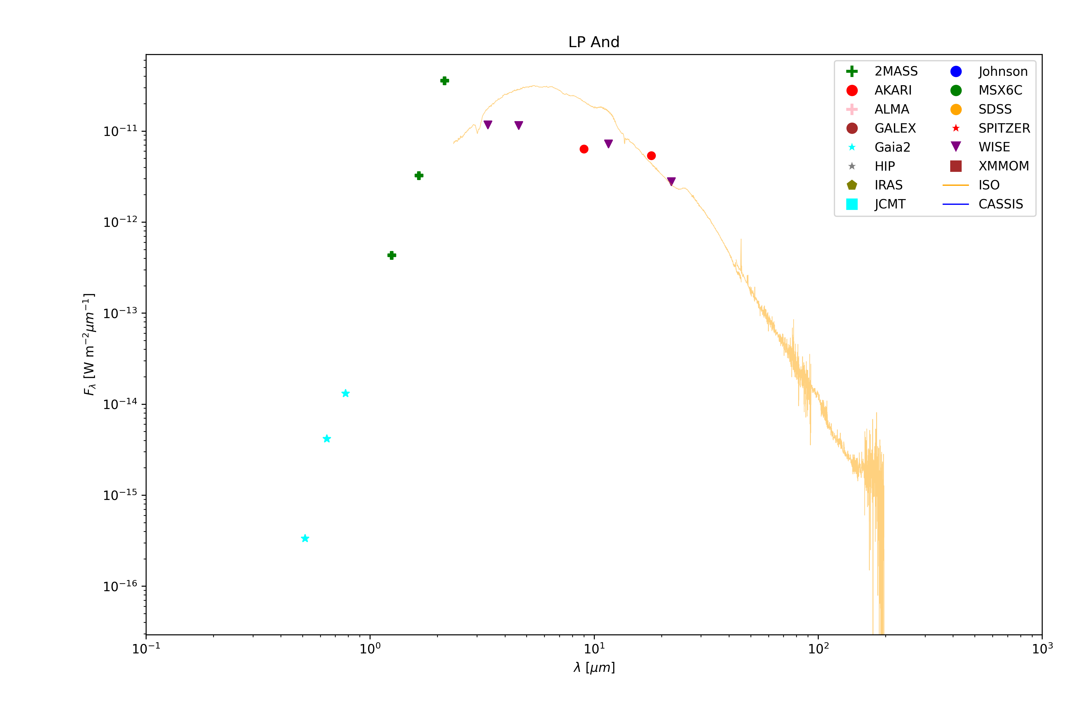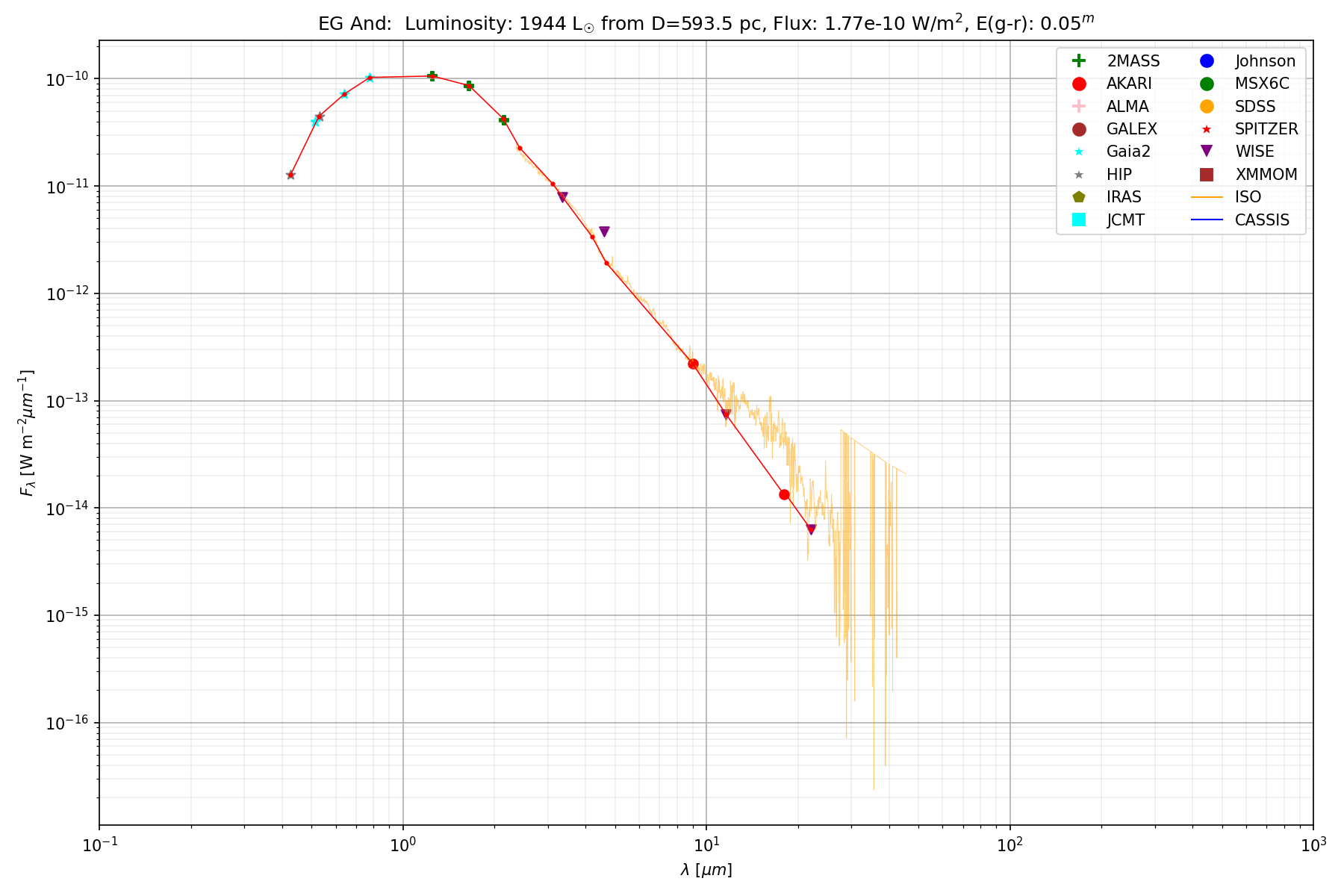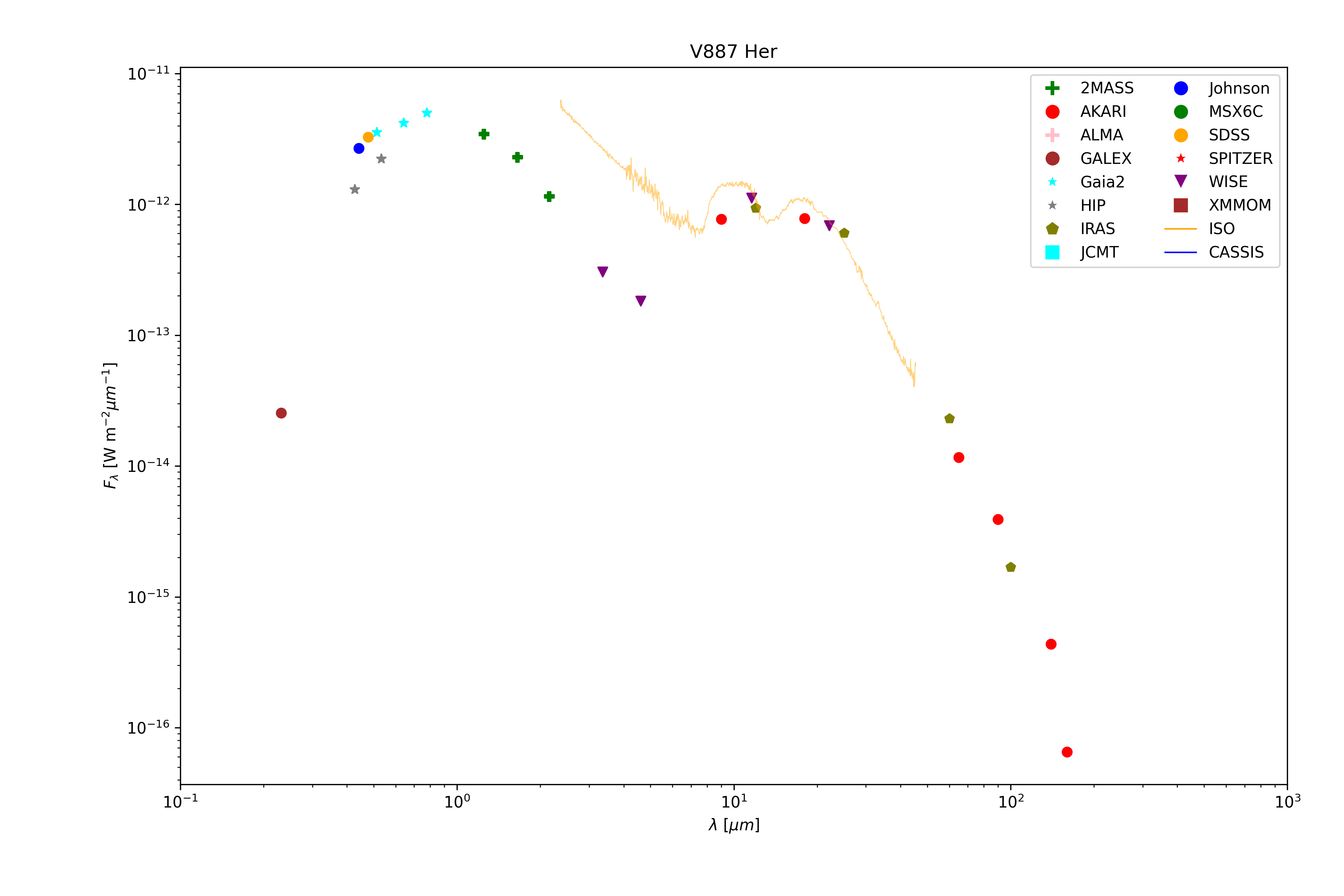 So, for each object, a file with our collected photometry, a file with the SED (corrected and uncorrected for interstellar absorption), a JSON containing all defined and collected data, and an archive with all ISO and Spitzer data and spectra (if available) are available.