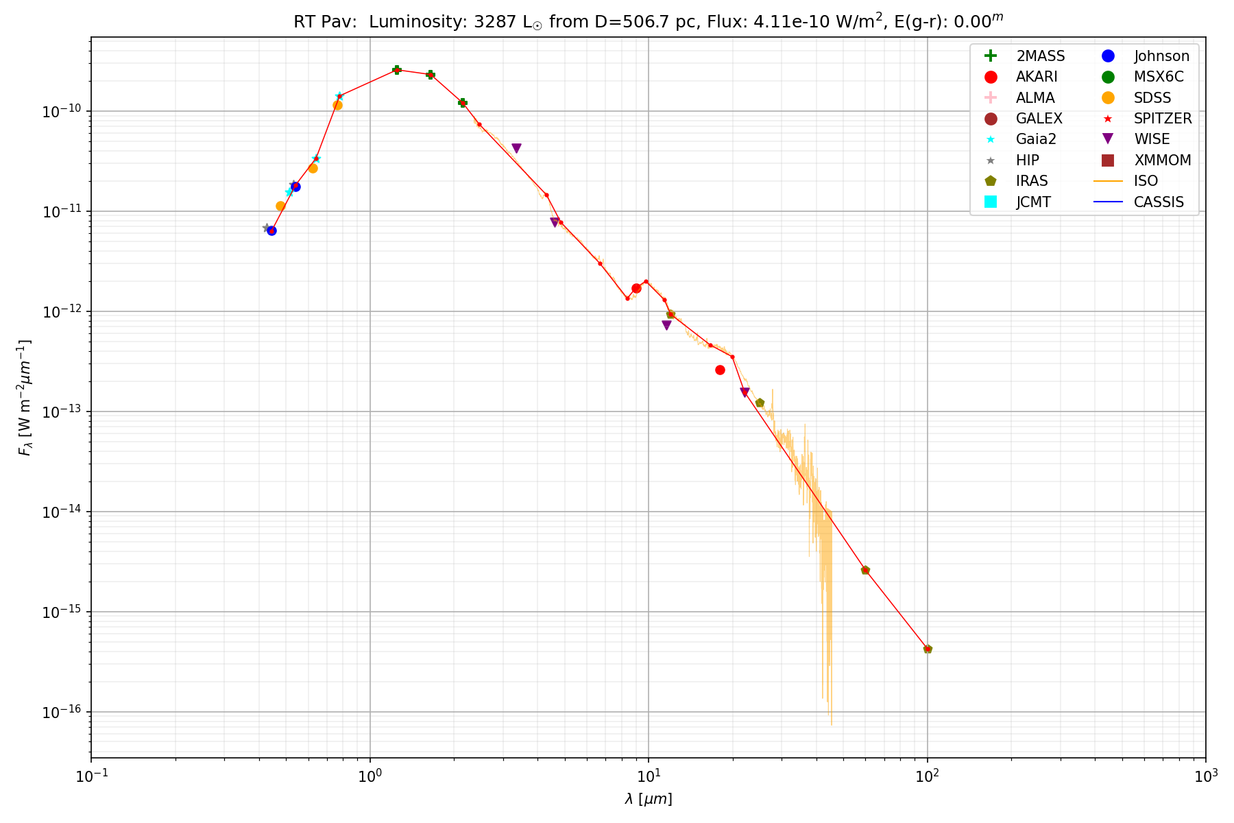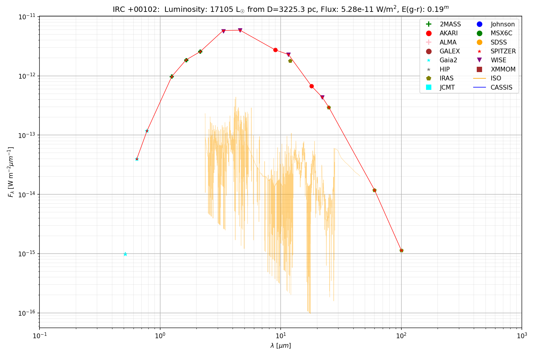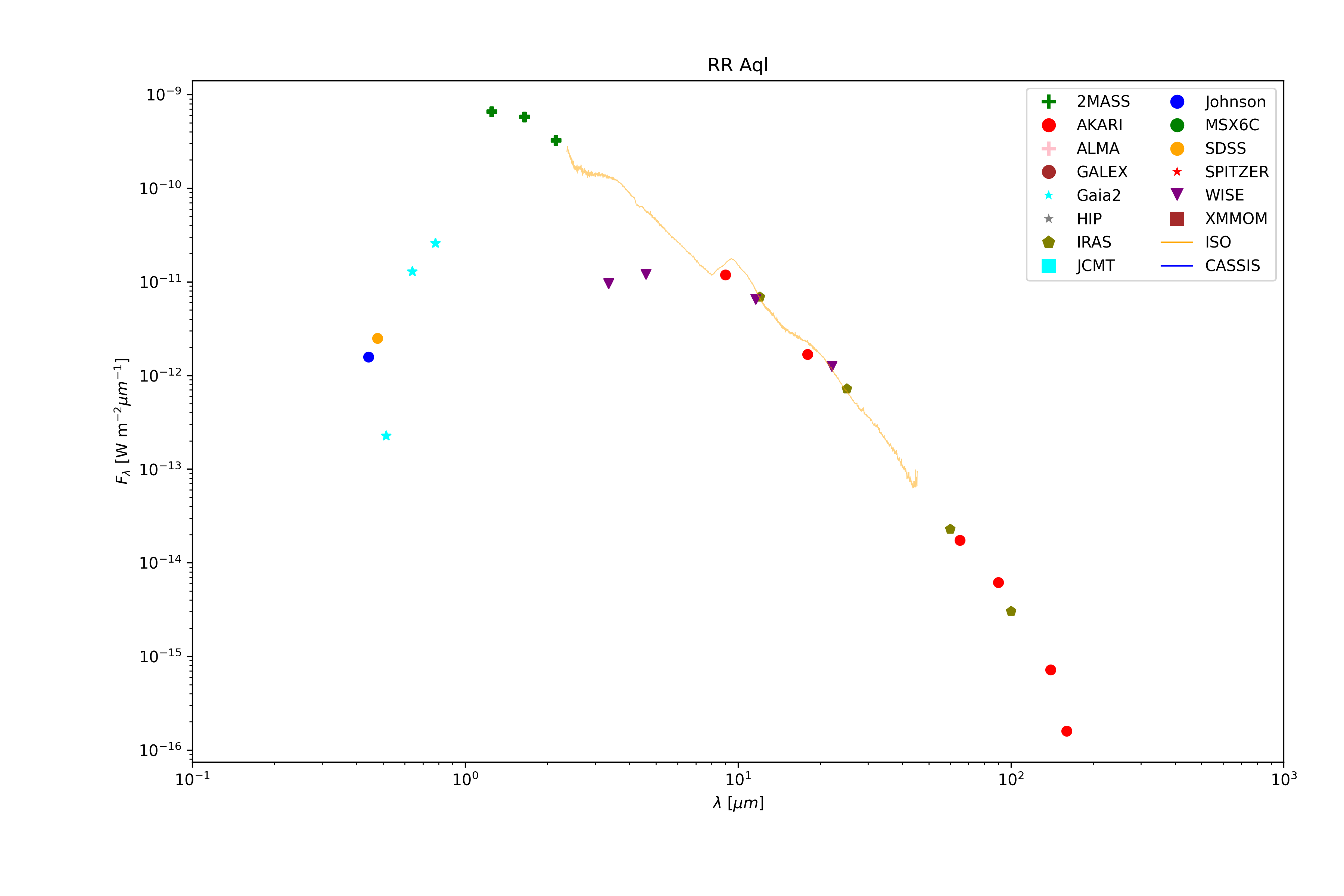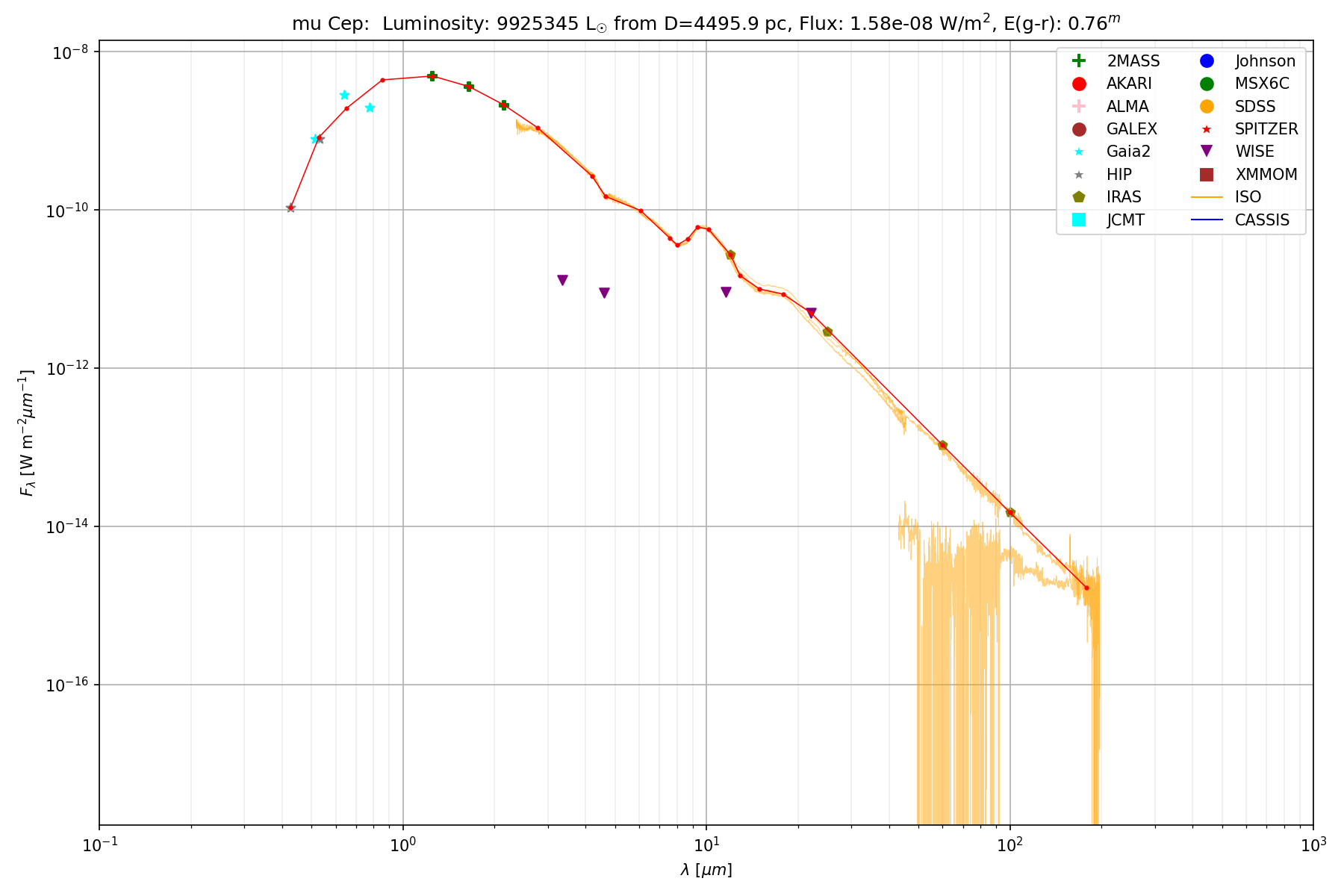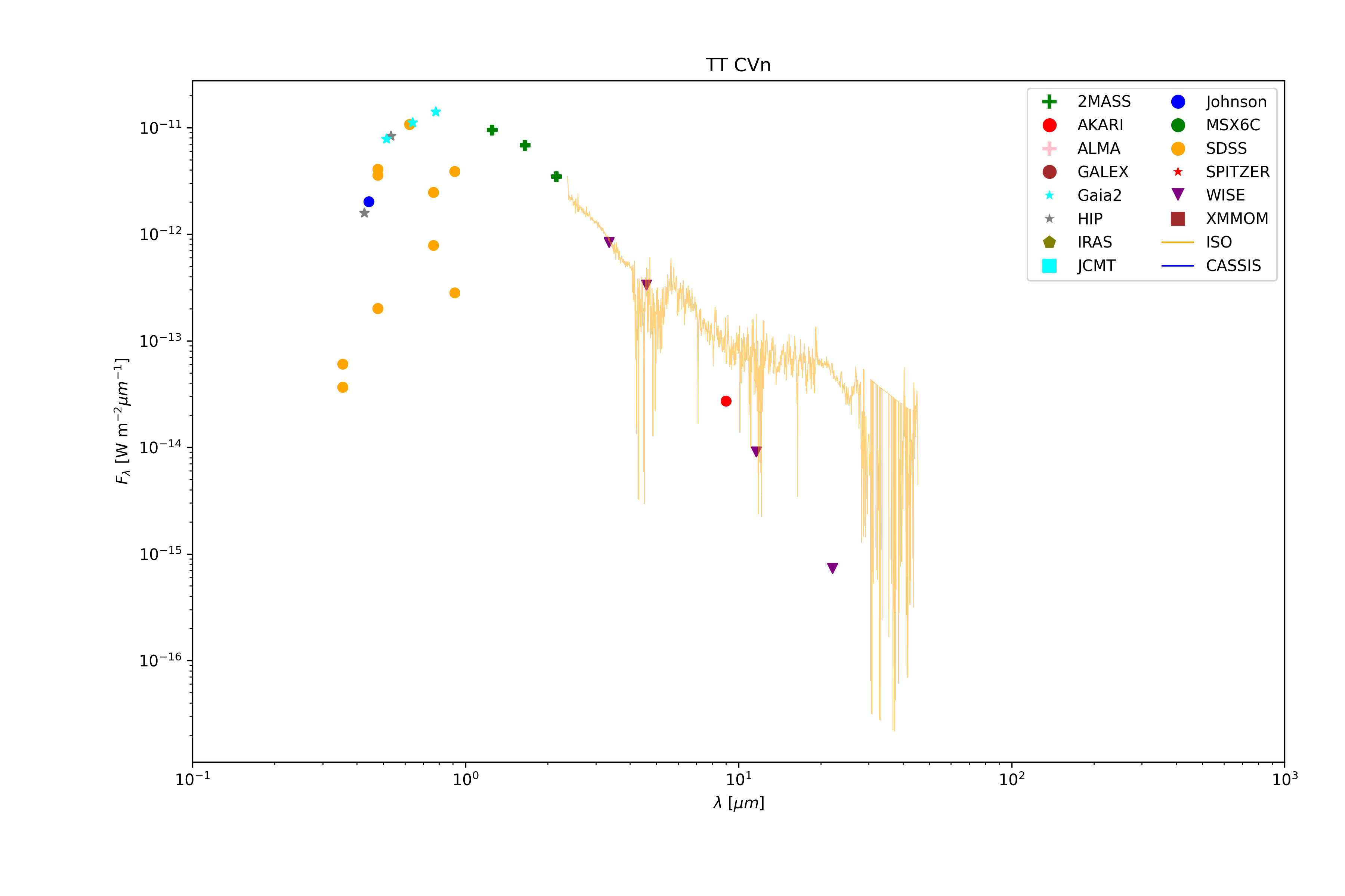 So, for each object, a file with our collected photometry, a file with the SED (corrected and uncorrected for interstellar absorption), a JSON containing all defined and collected data, and an archive with all ISO and Spitzer data and spectra (if available) are available.