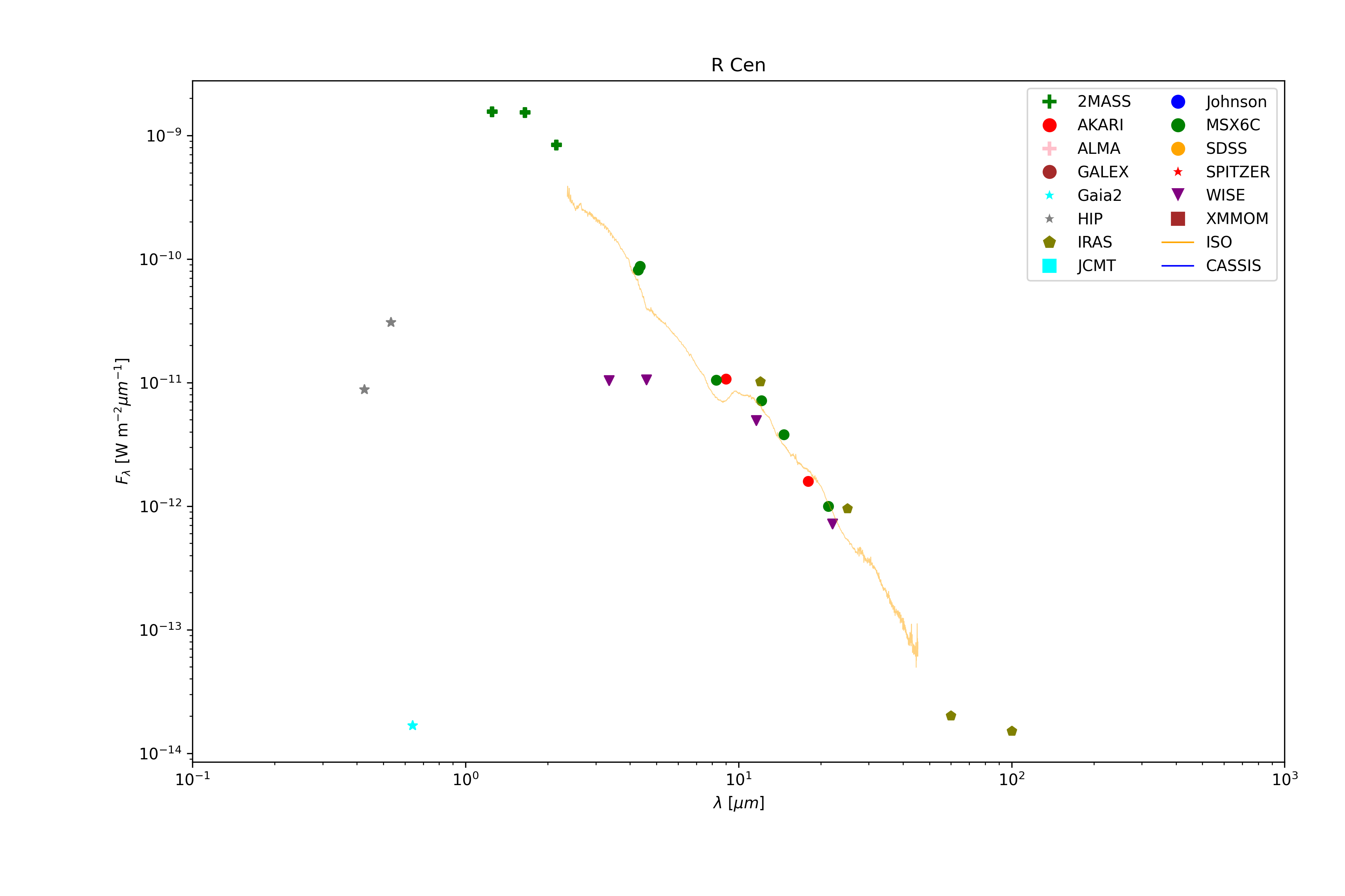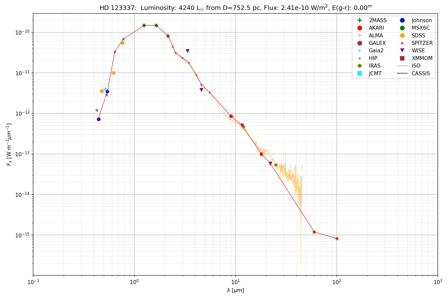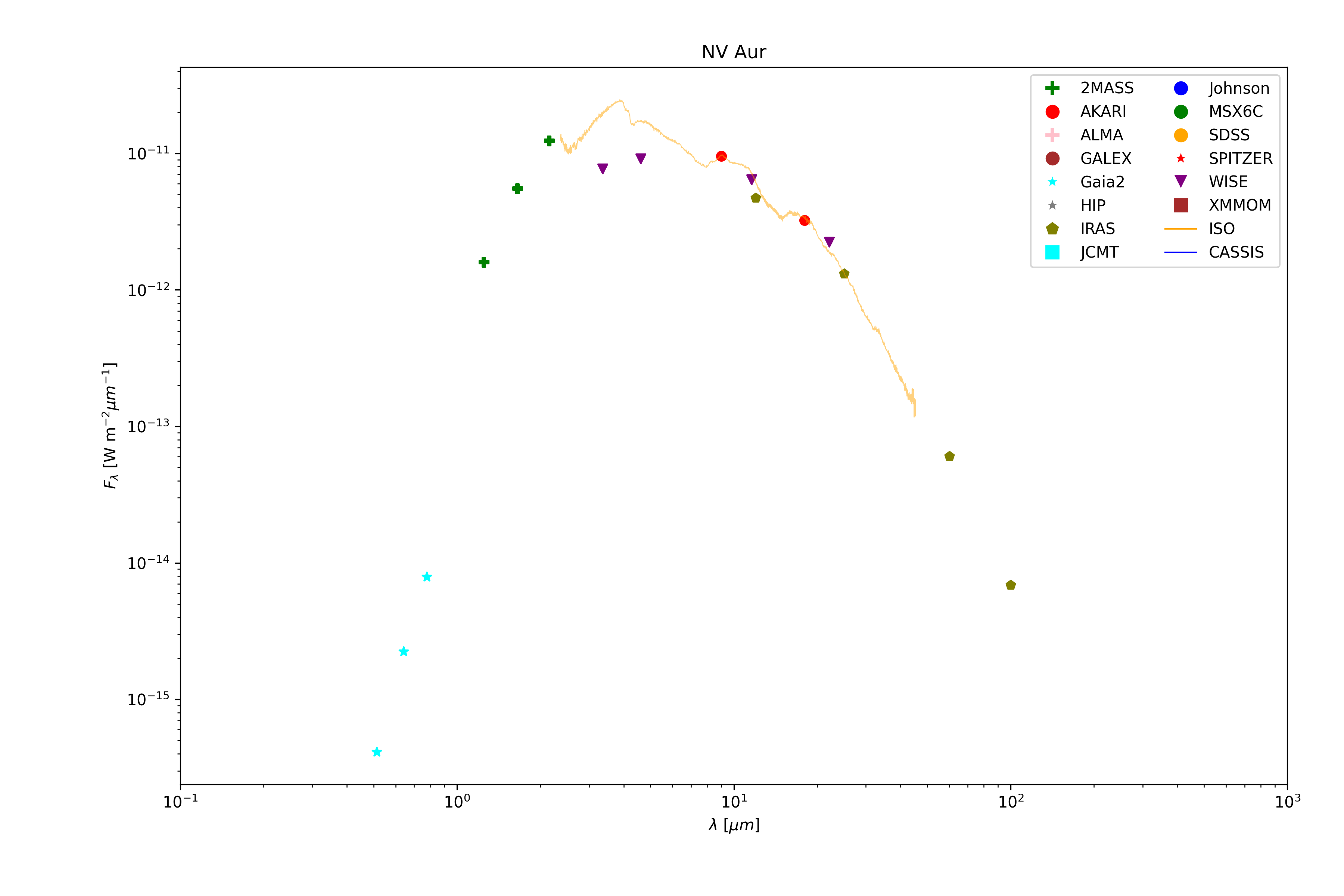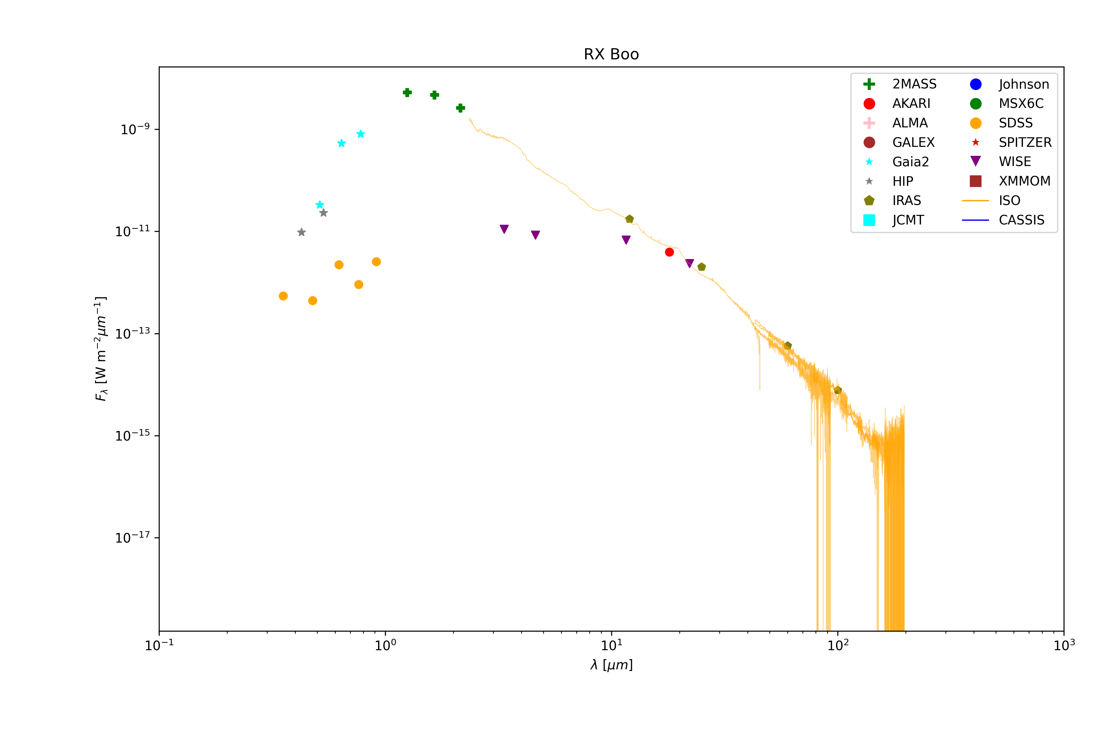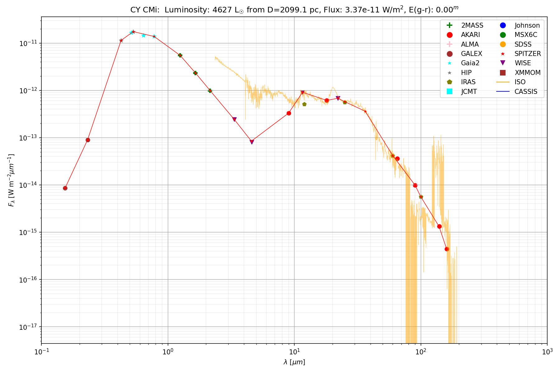 So, for each object, a file with our collected photometry, a file with the SED (corrected and uncorrected for interstellar absorption), a JSON containing all defined and collected data, and an archive with all ISO and Spitzer data and spectra (if available) are available.
