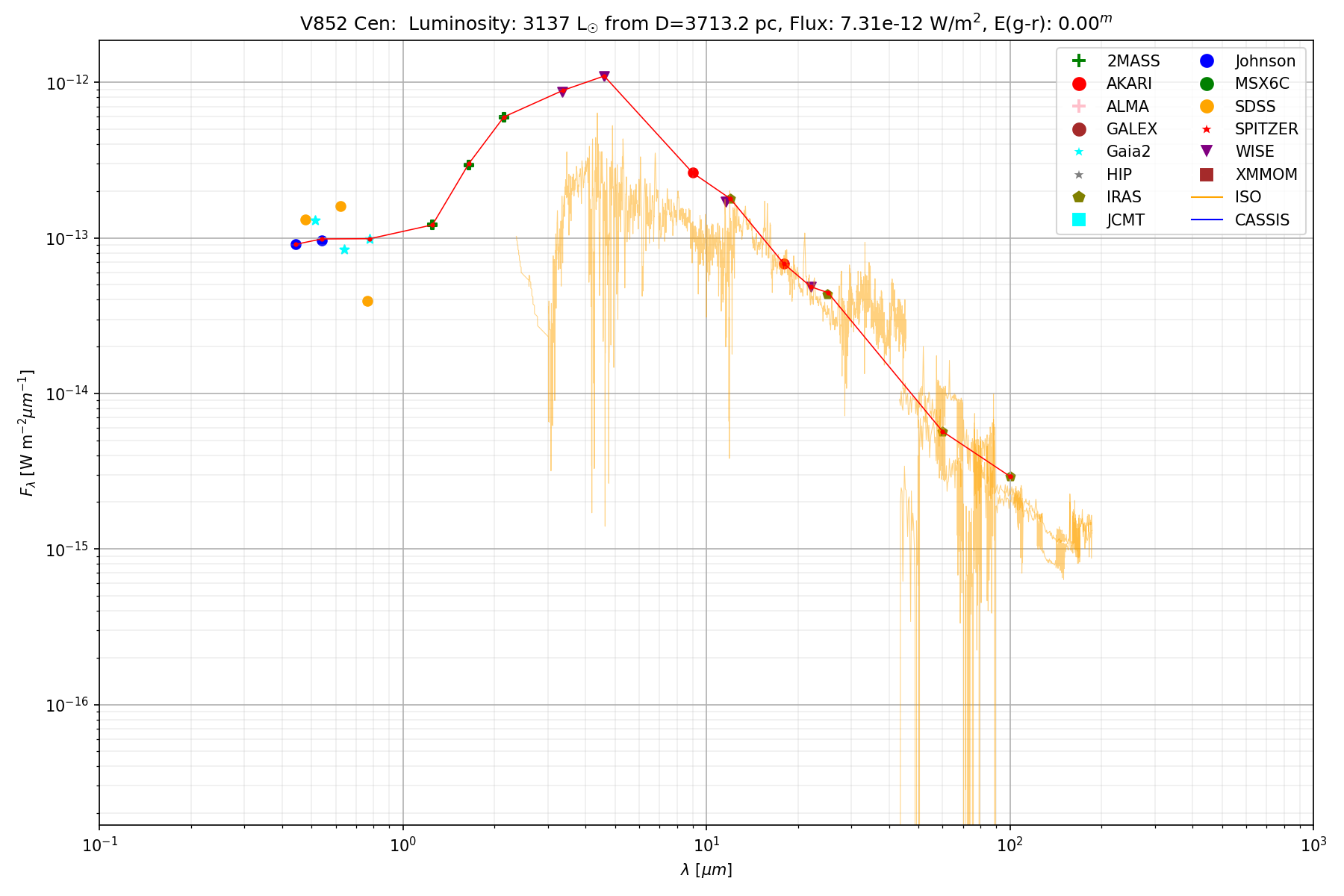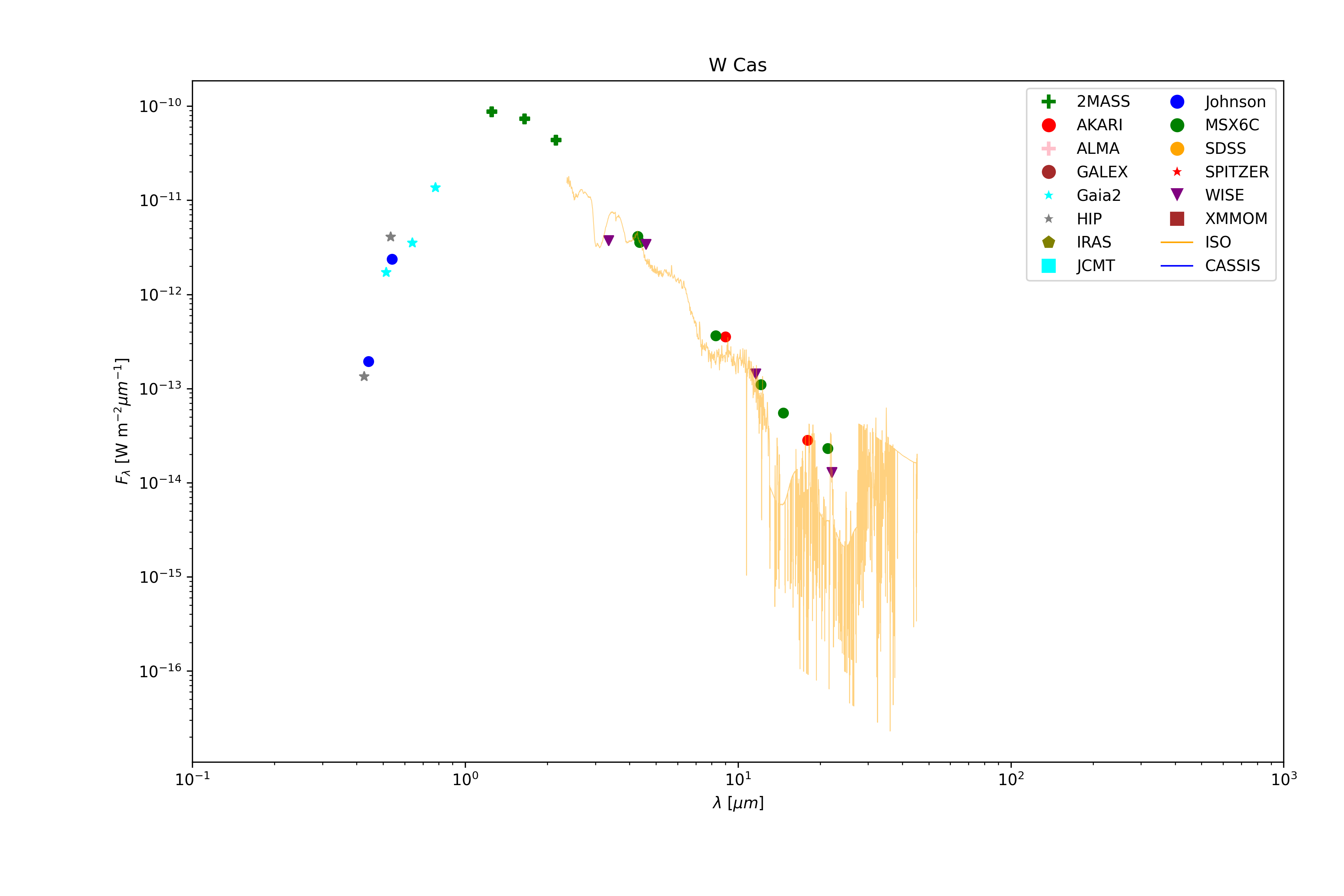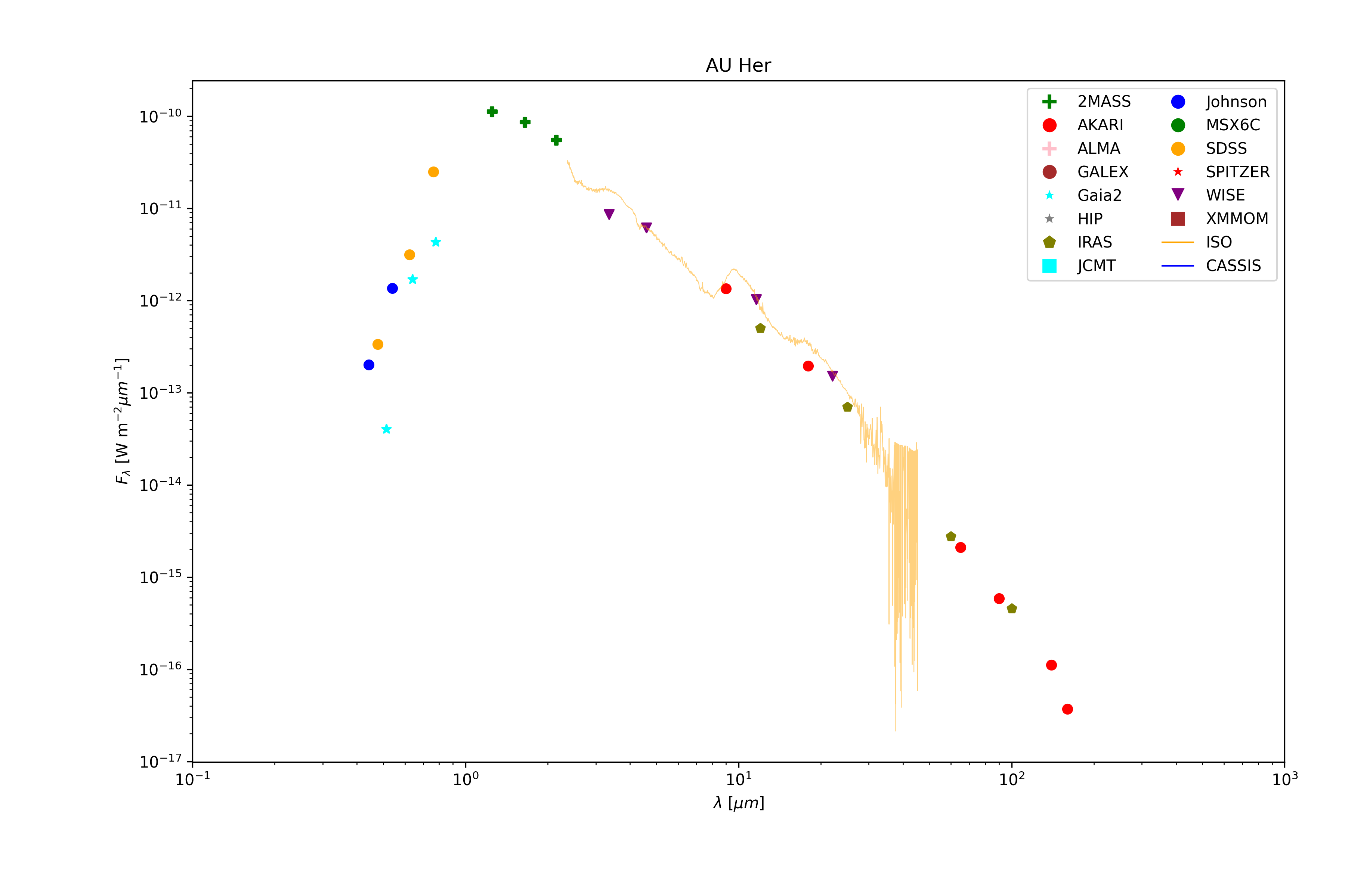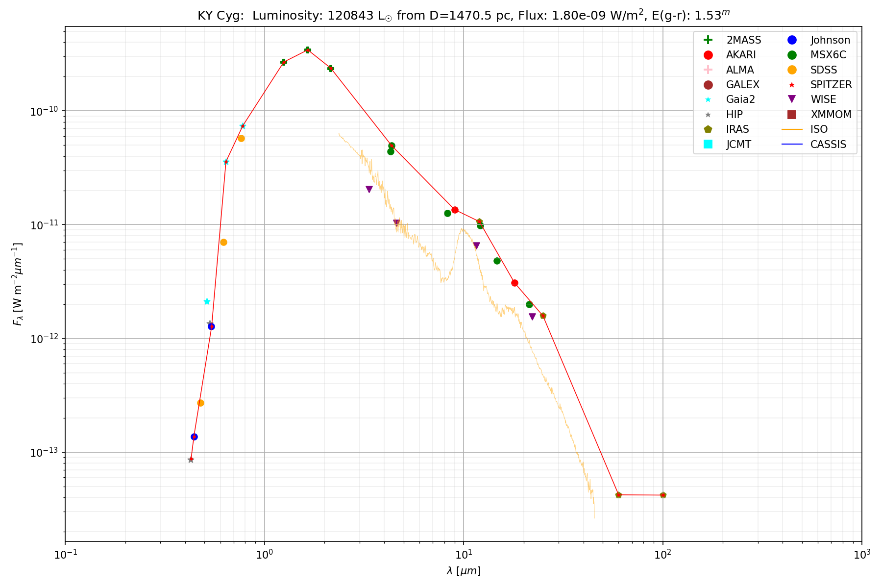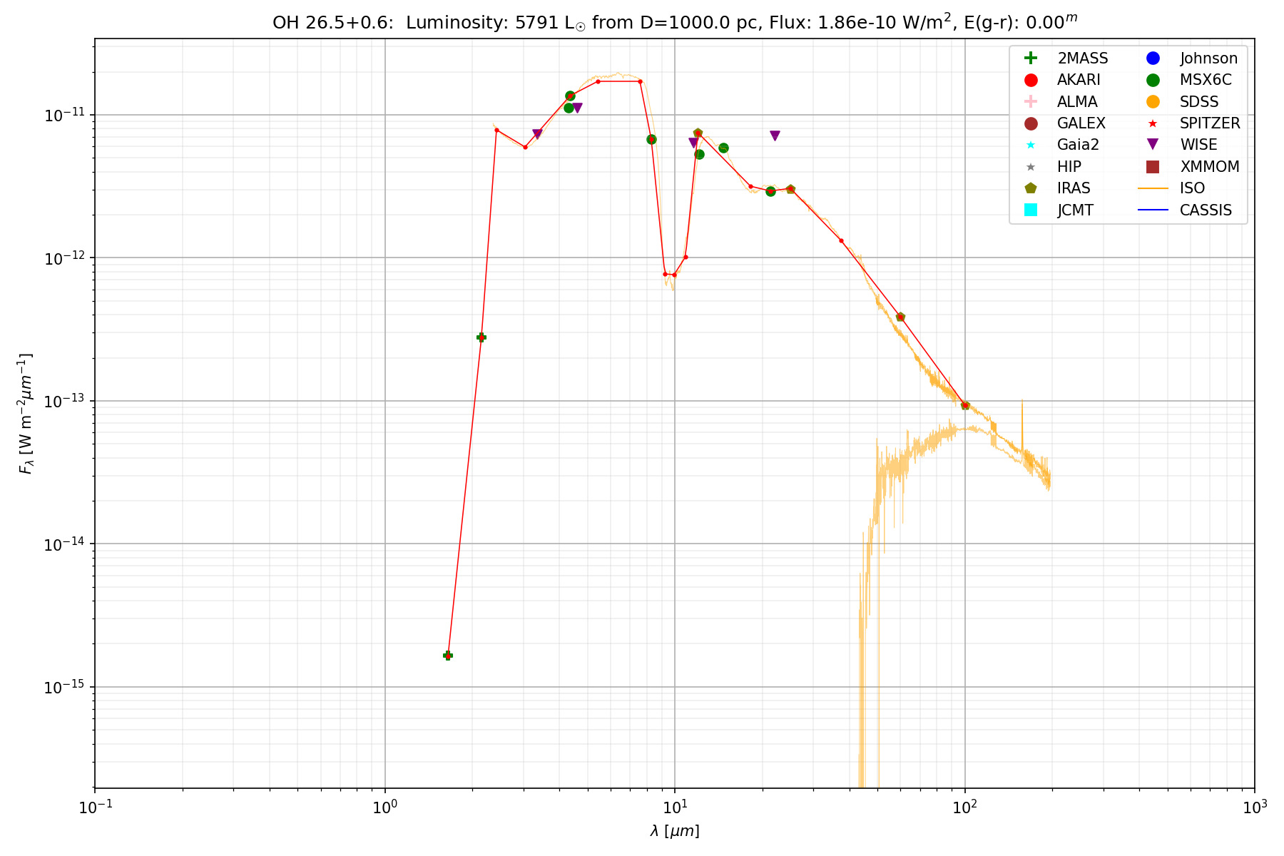 So, for each object, a file with our collected photometry, a file with the SED (corrected and uncorrected for interstellar absorption), a JSON containing all defined and collected data, and an archive with all ISO and Spitzer data and spectra (if available) are available.