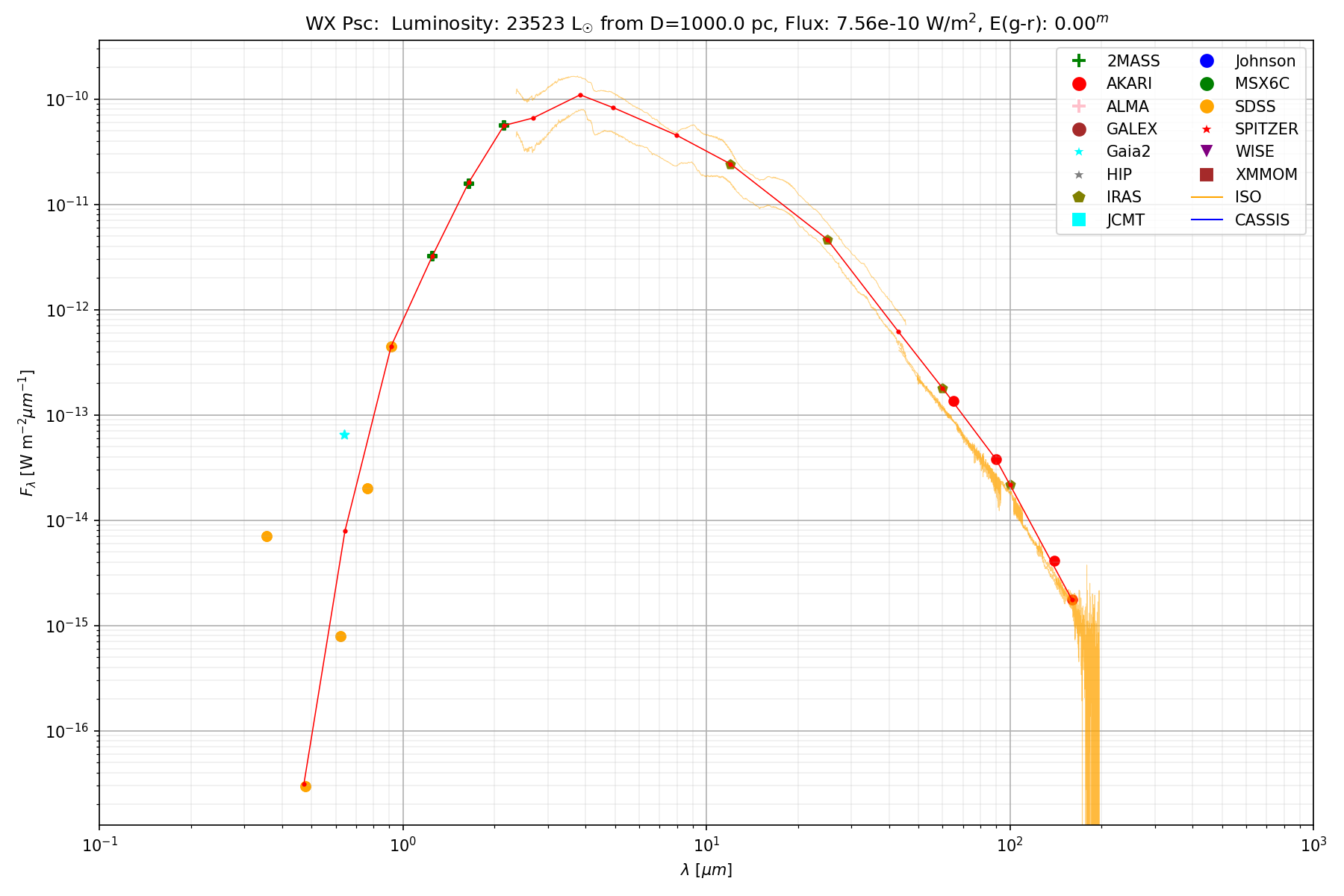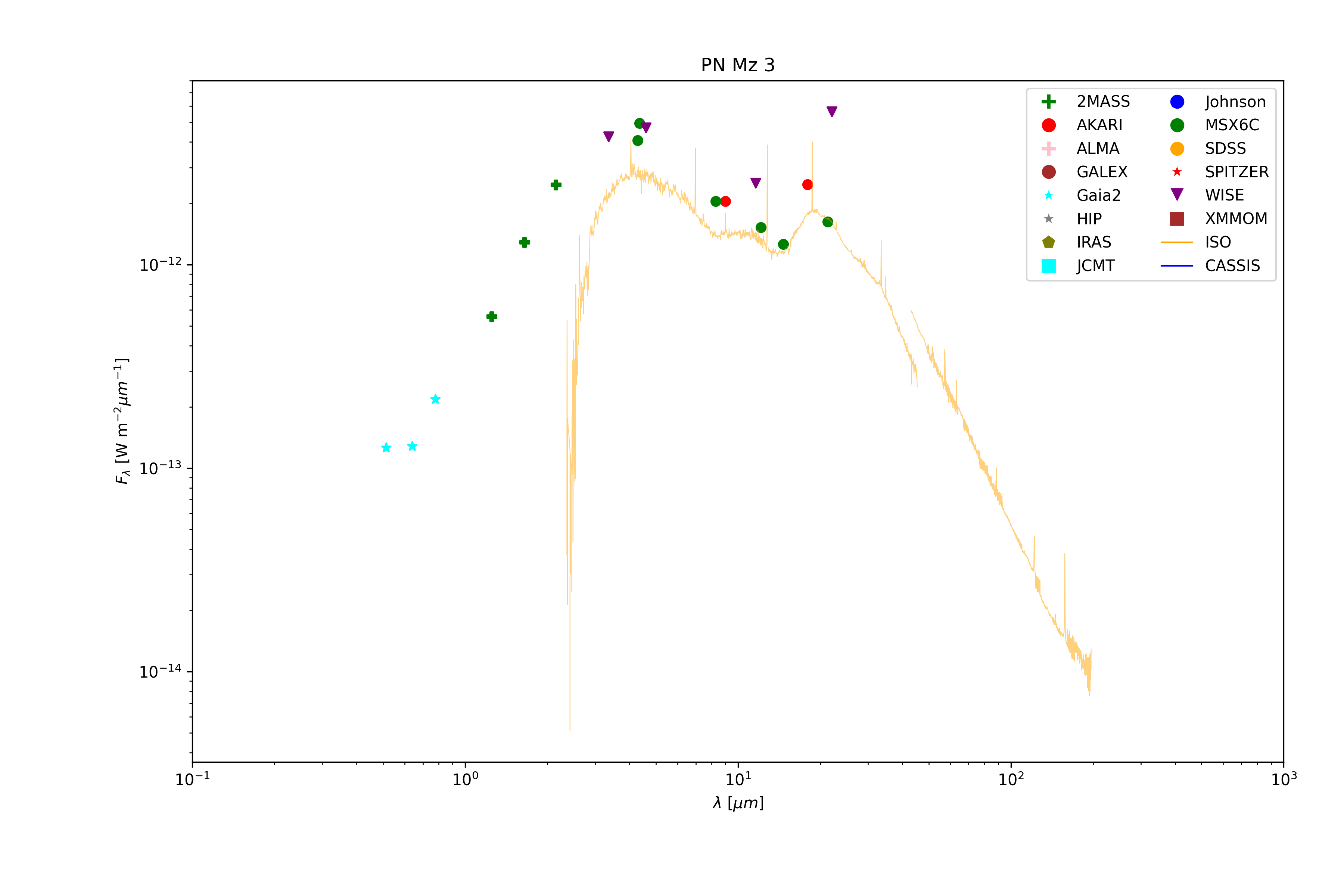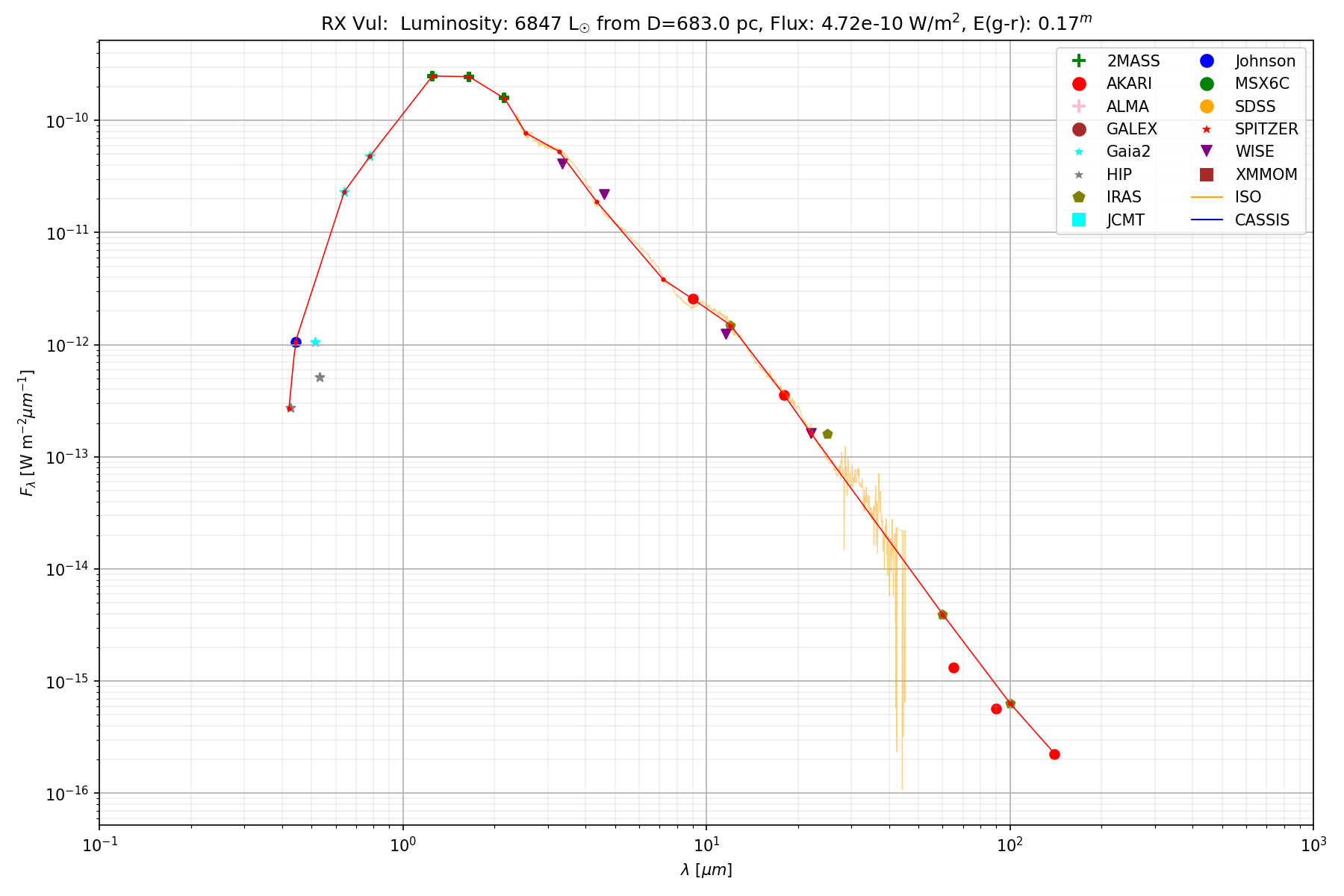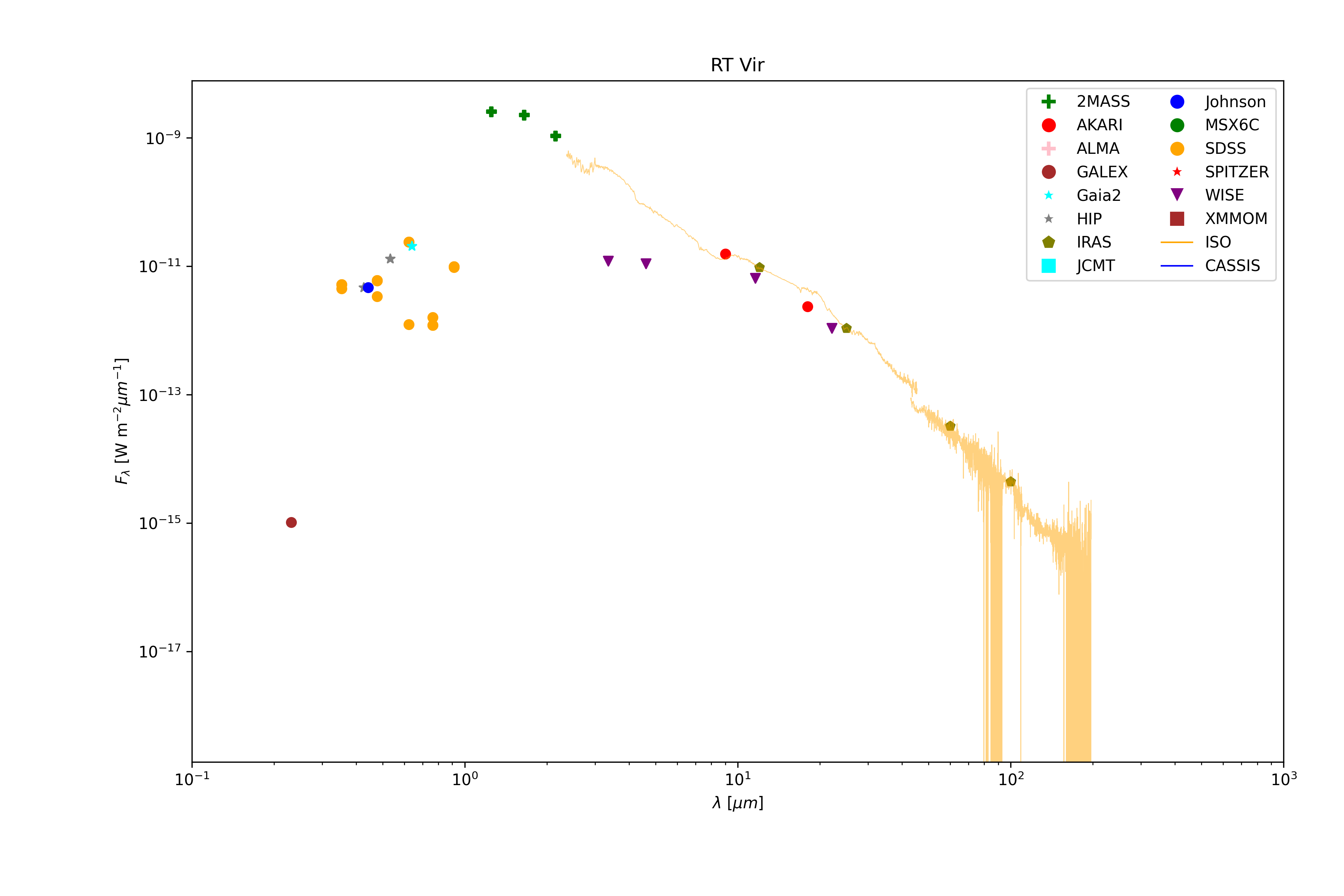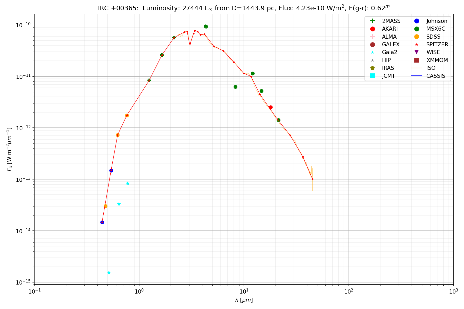 So, for each object, a file with our collected photometry, a file with the SED (corrected and uncorrected for interstellar absorption), a JSON containing all defined and collected data, and an archive with all ISO and Spitzer data and spectra (if available) are available.