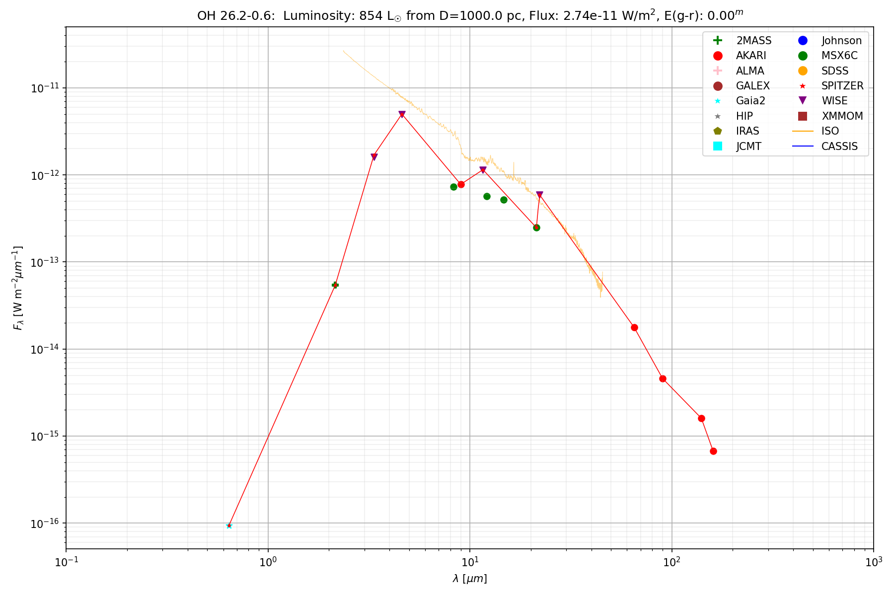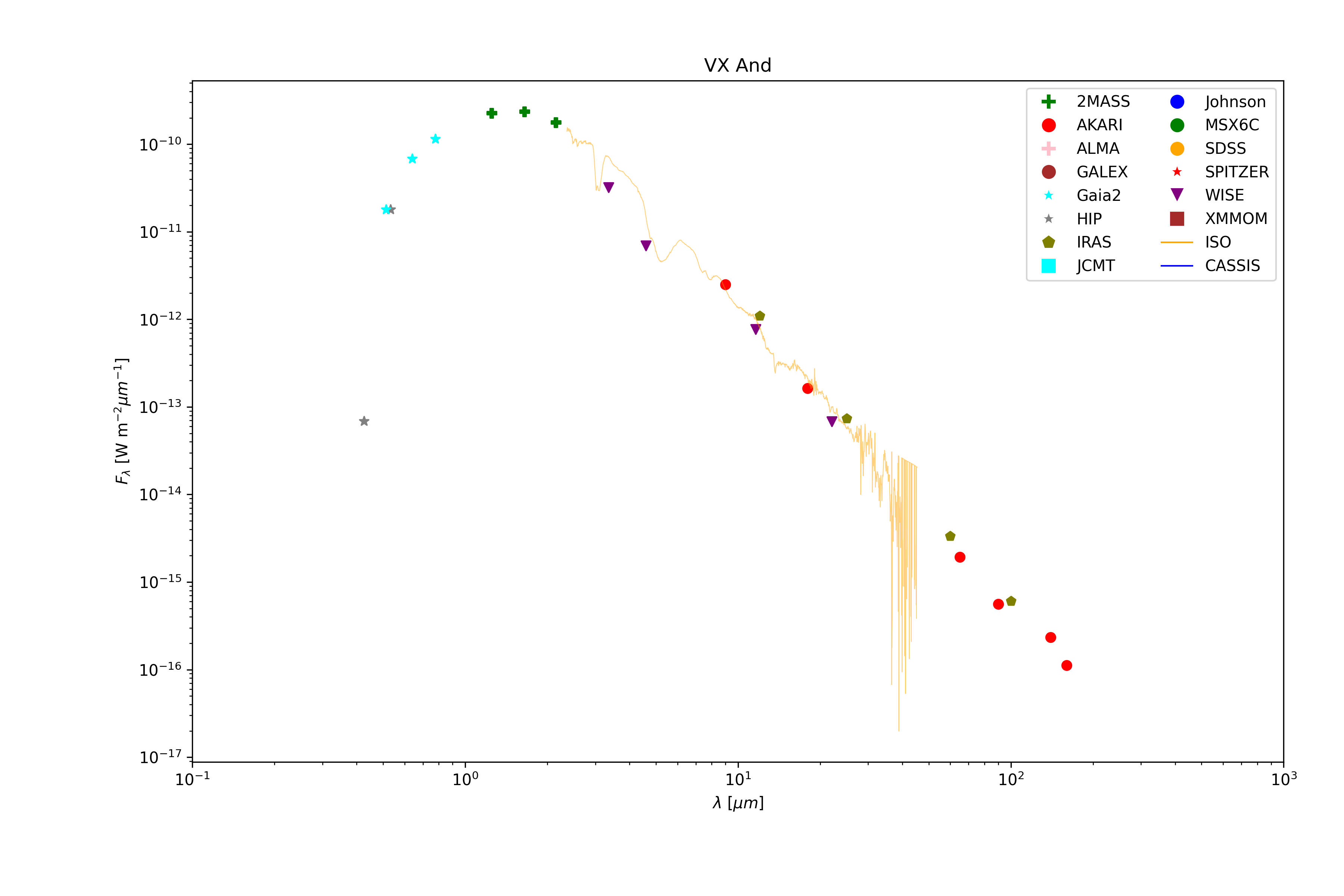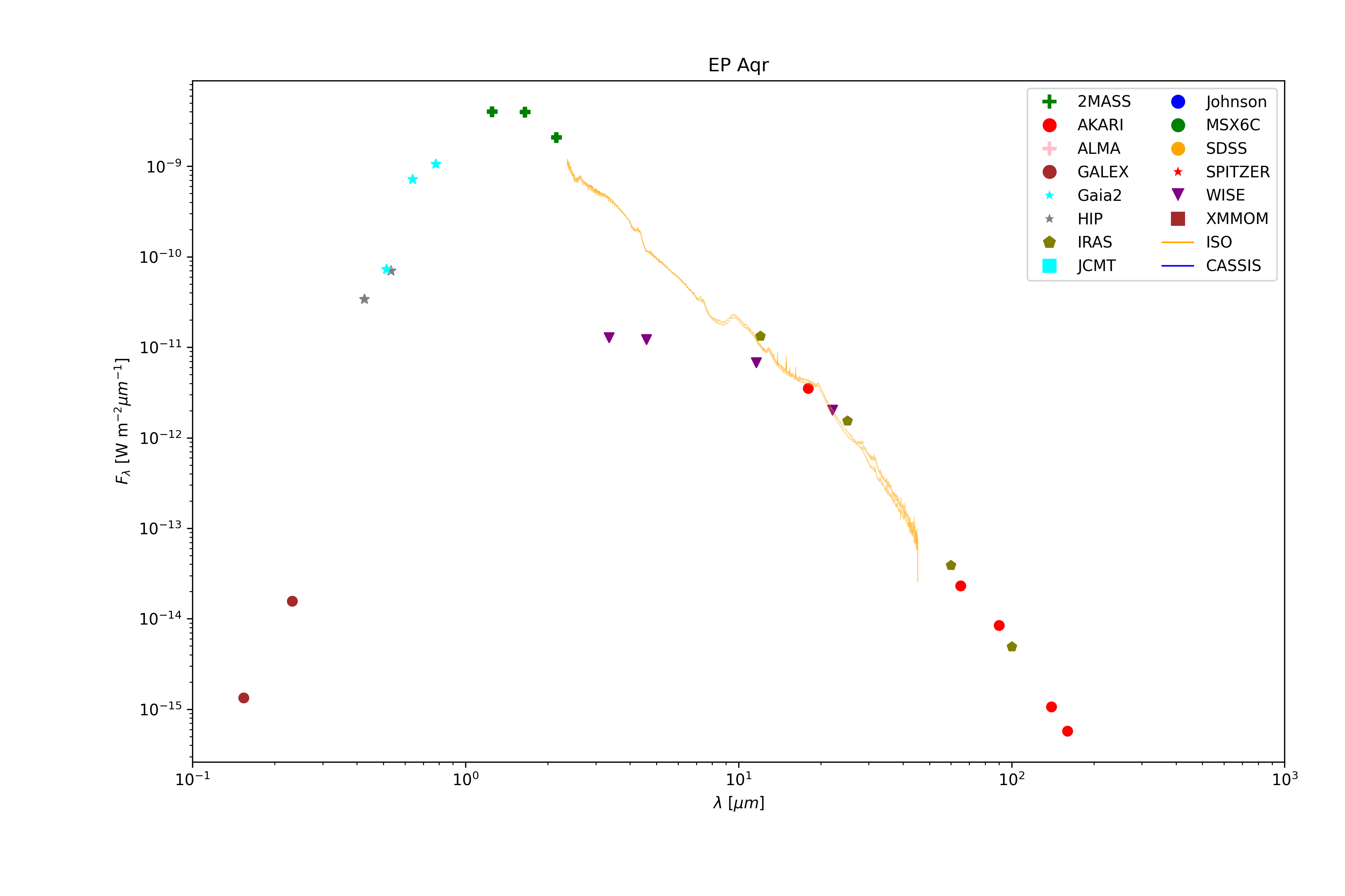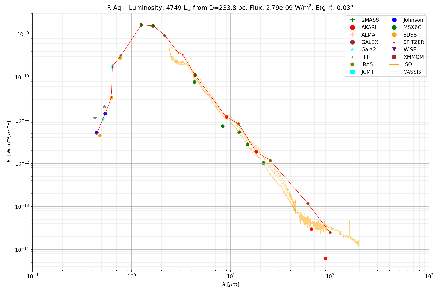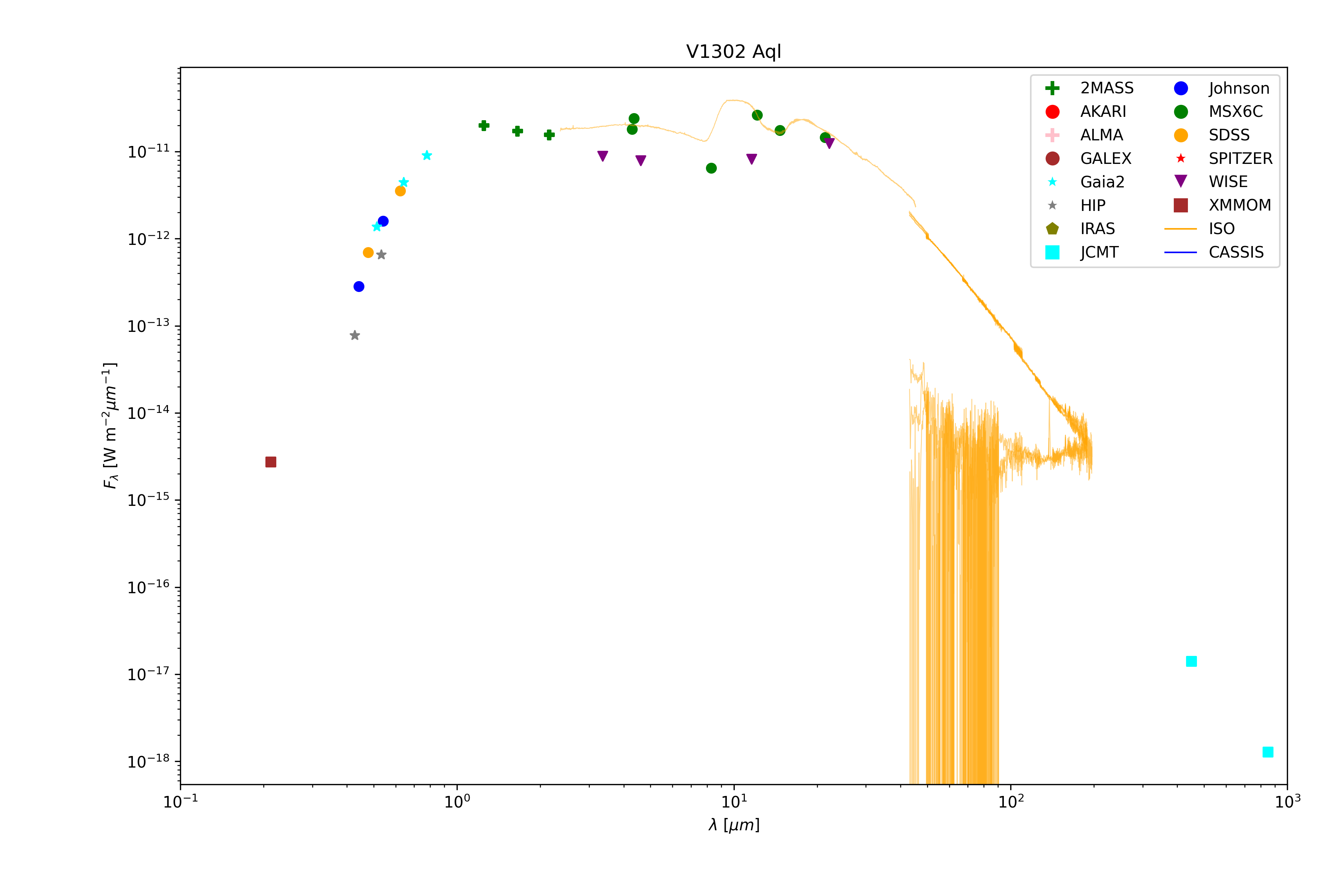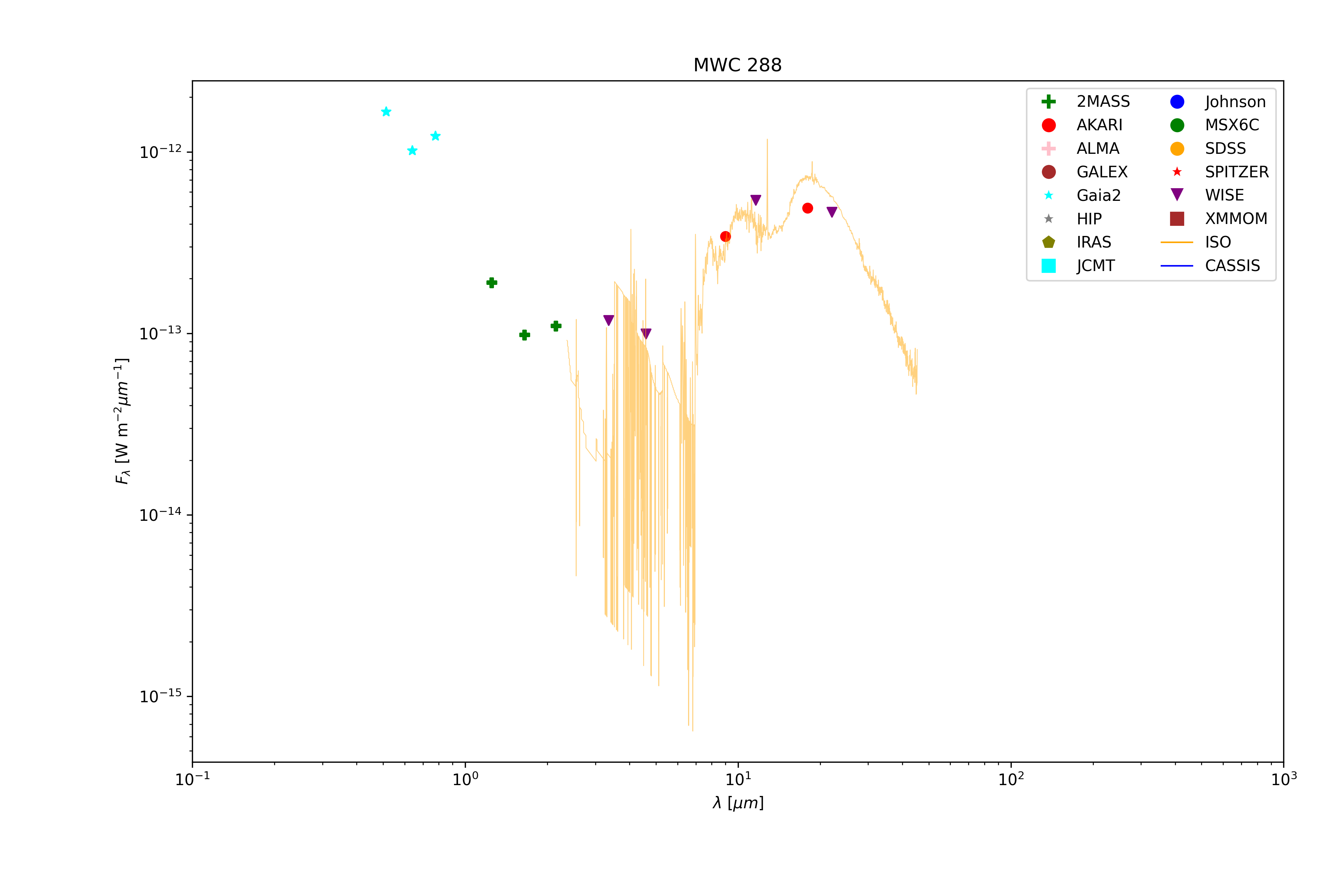 So, for each object, a file with our collected photometry, a file with the SED (corrected and uncorrected for interstellar absorption), a JSON containing all defined and collected data, and an archive with all ISO and Spitzer data and spectra (if available) are available.